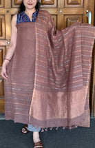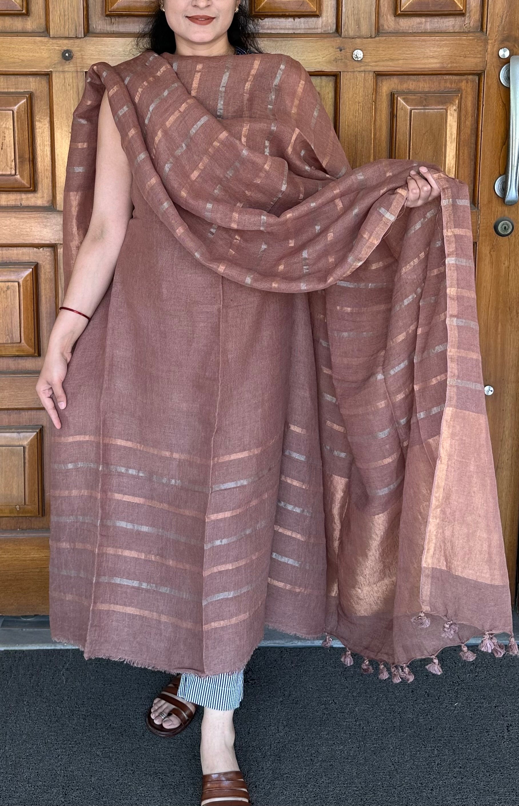 Mauve Linen Handloom Zari Stripes Kurta Duppata Set