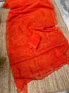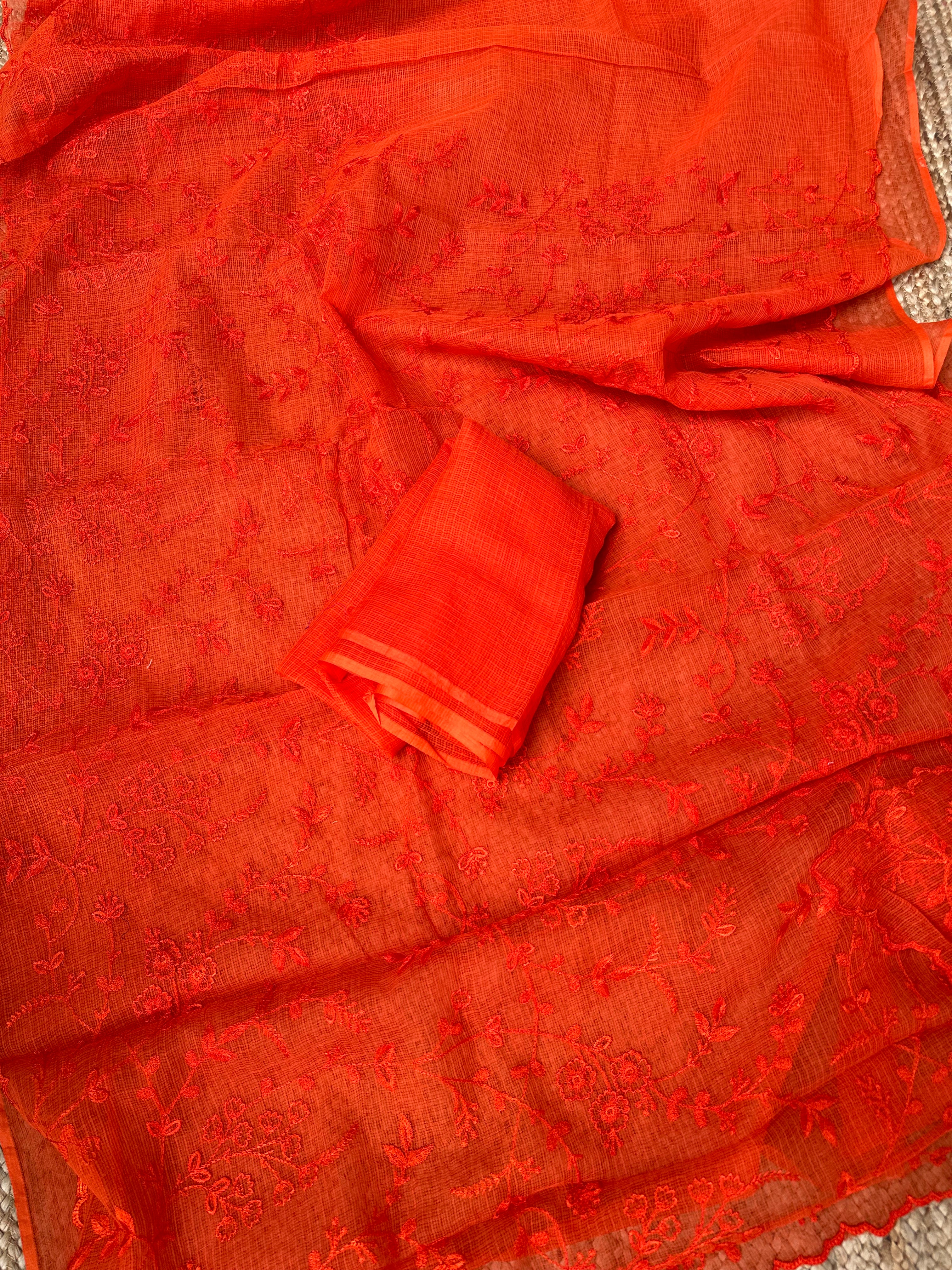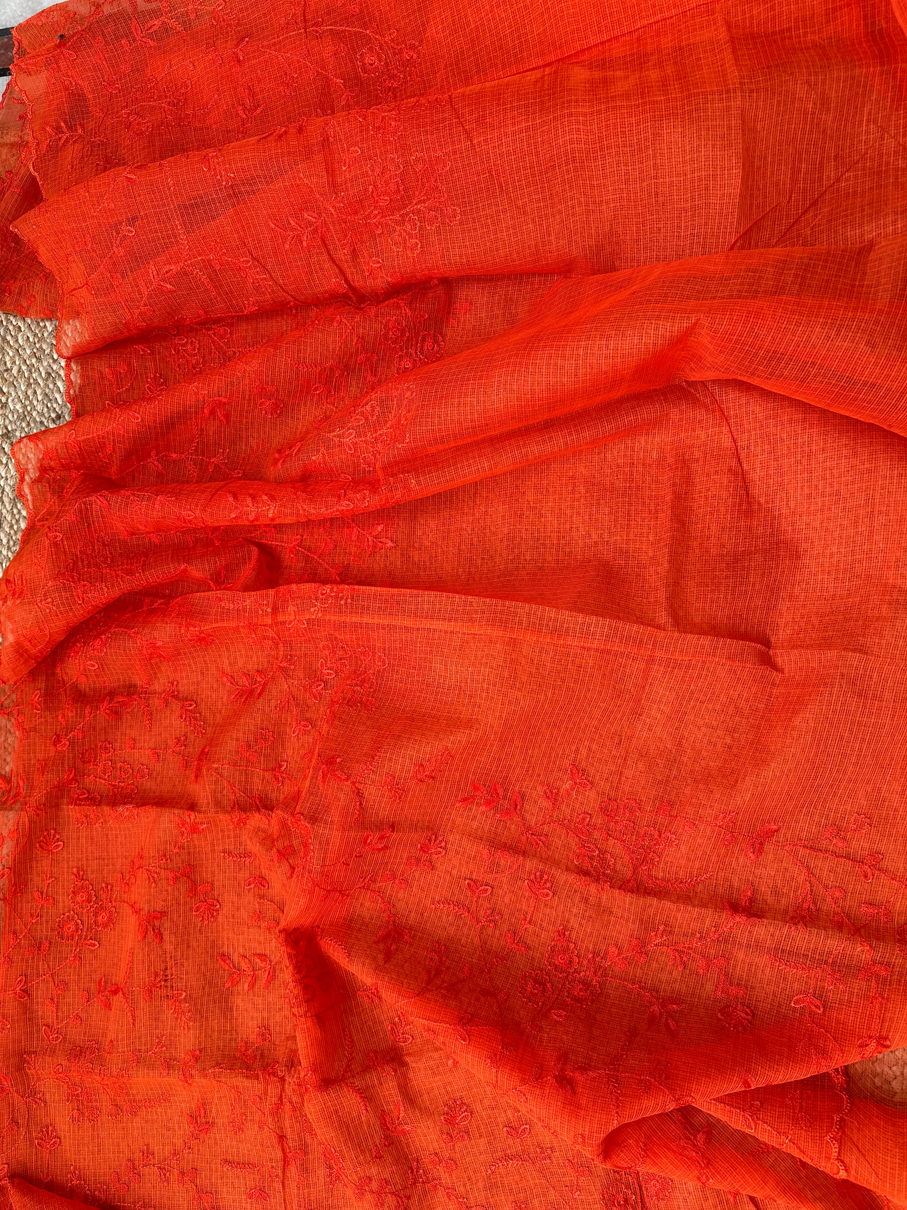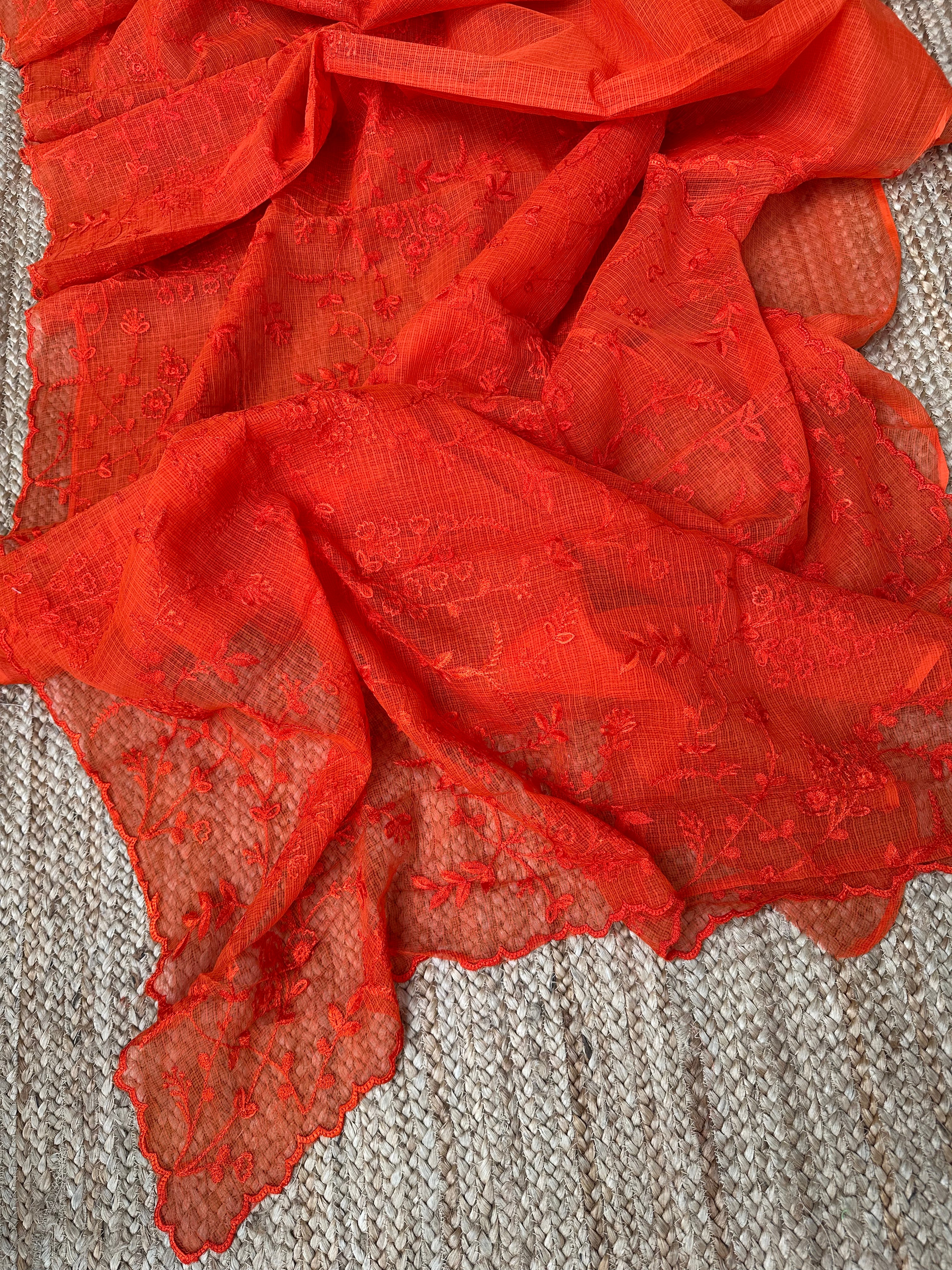 Orange Kota Embroidered Saree