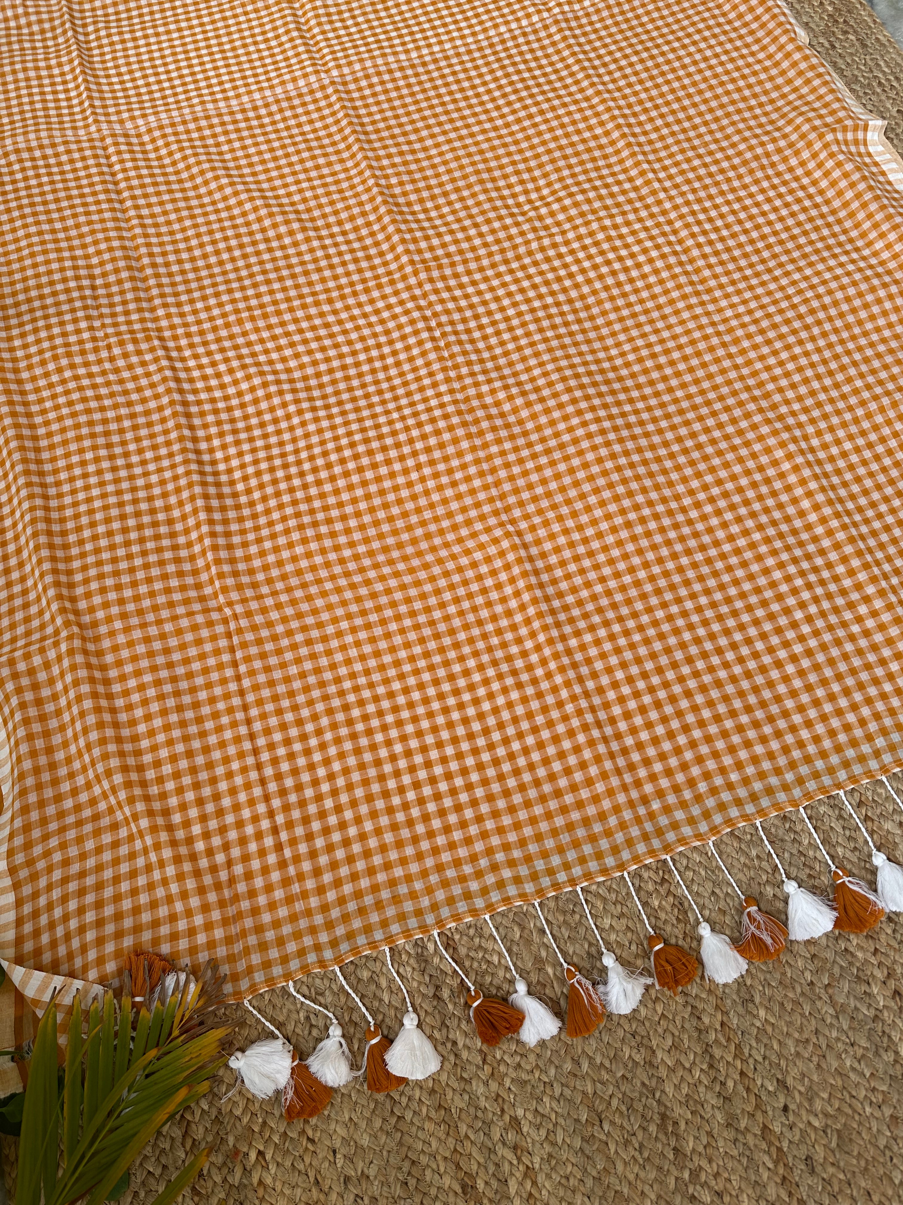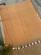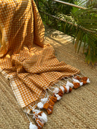 Orangish Mustard Cotton Handloom check saree