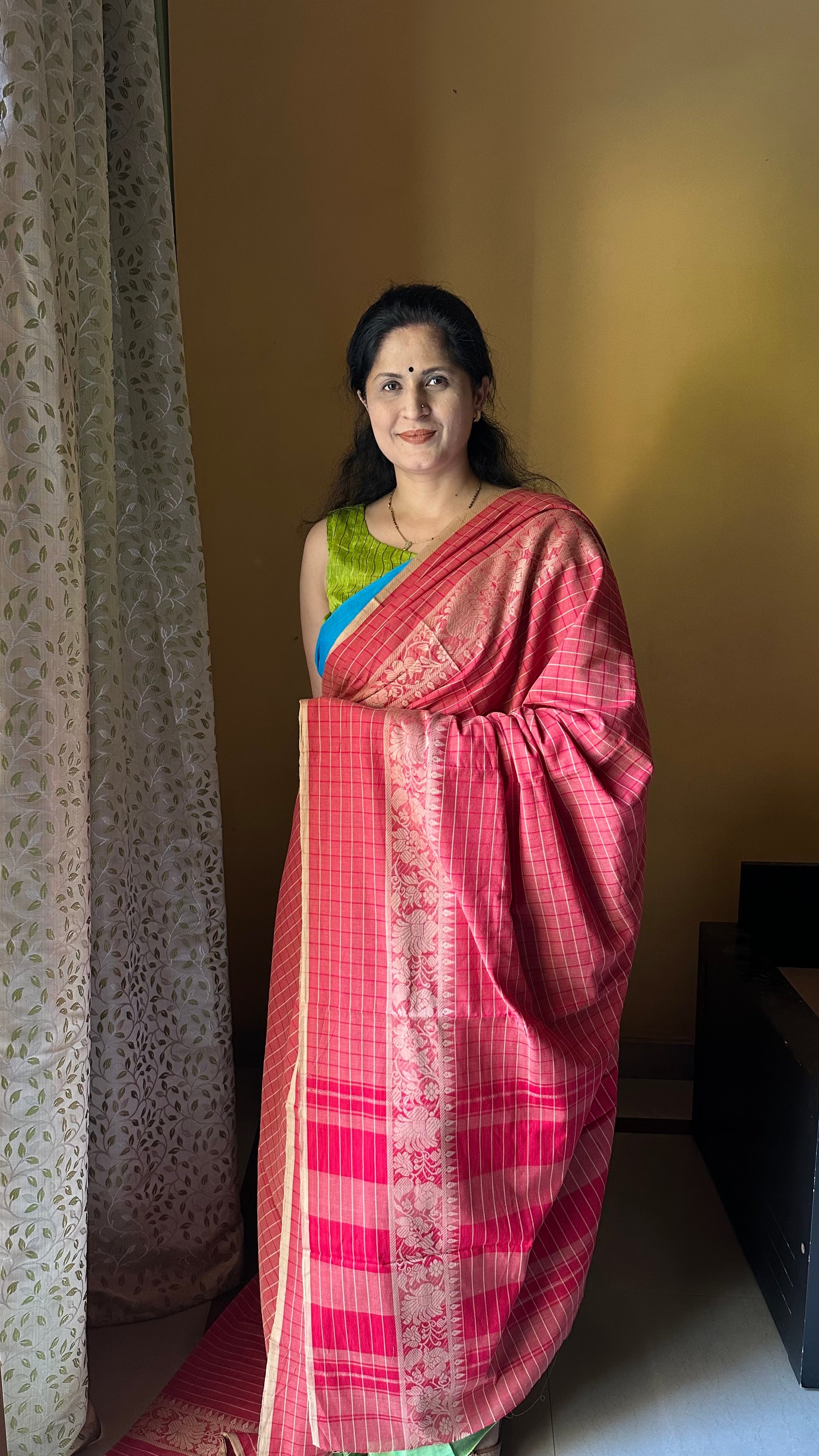 Red Checks Bengal Cotton Handloom Saree