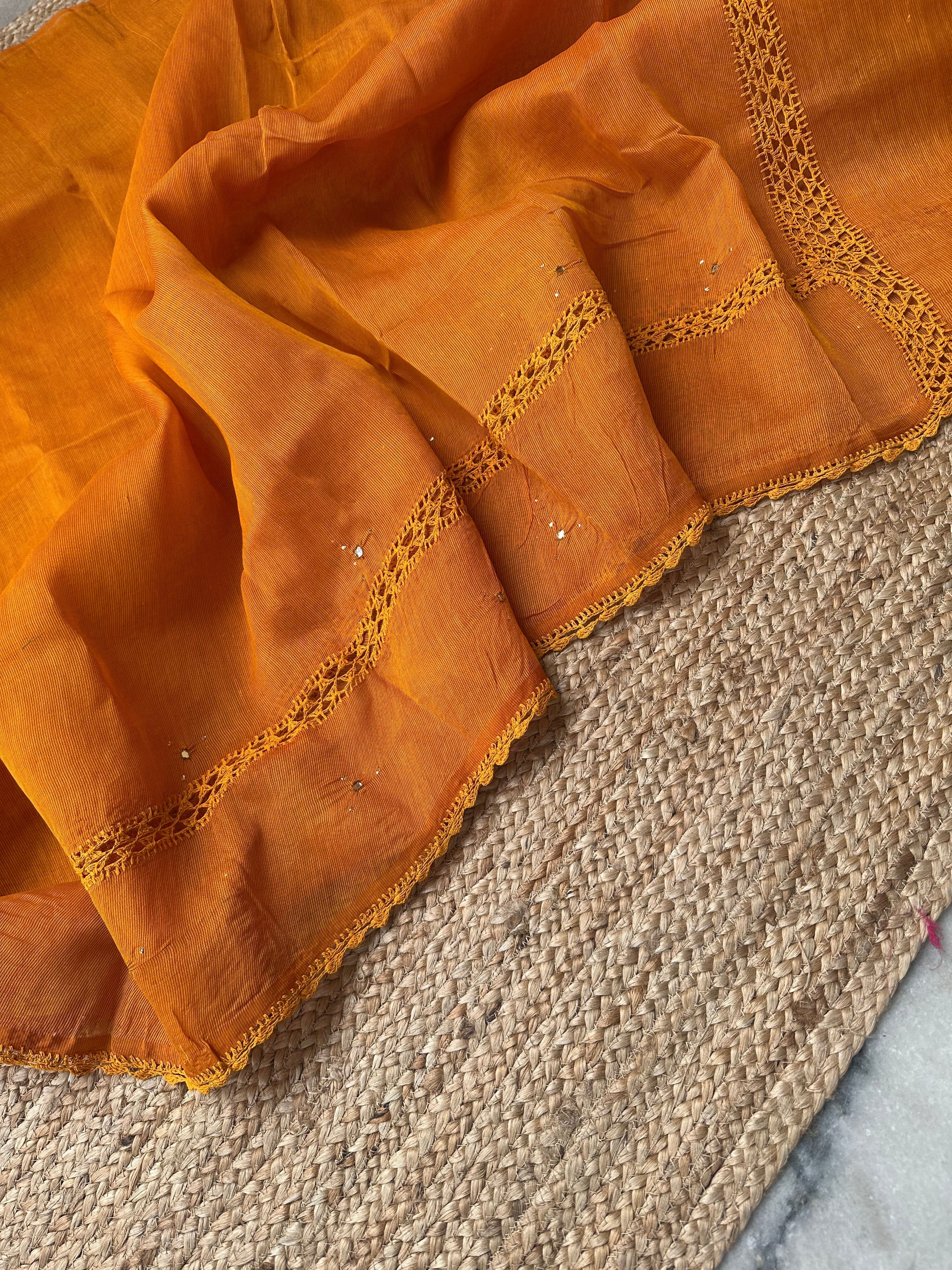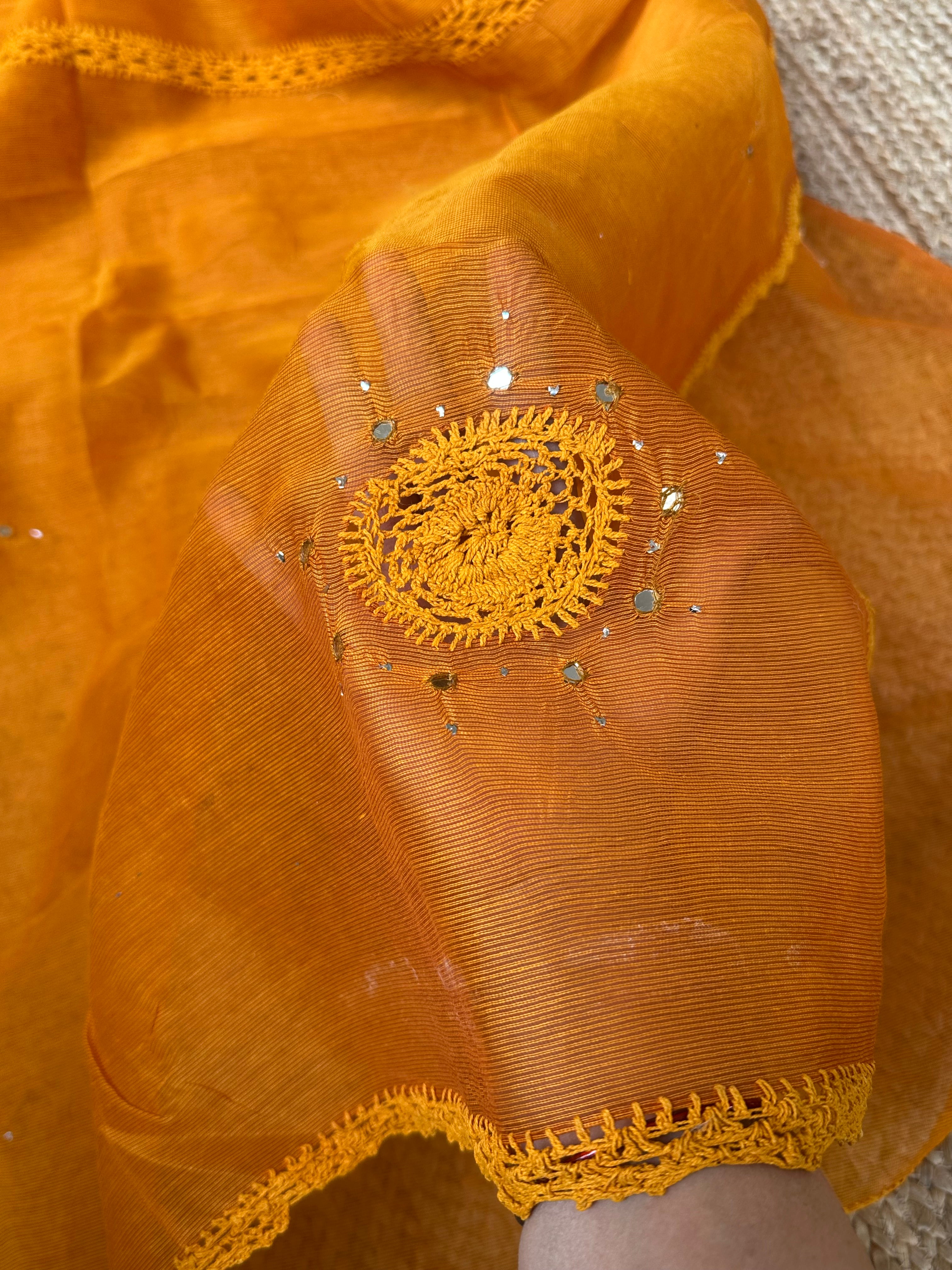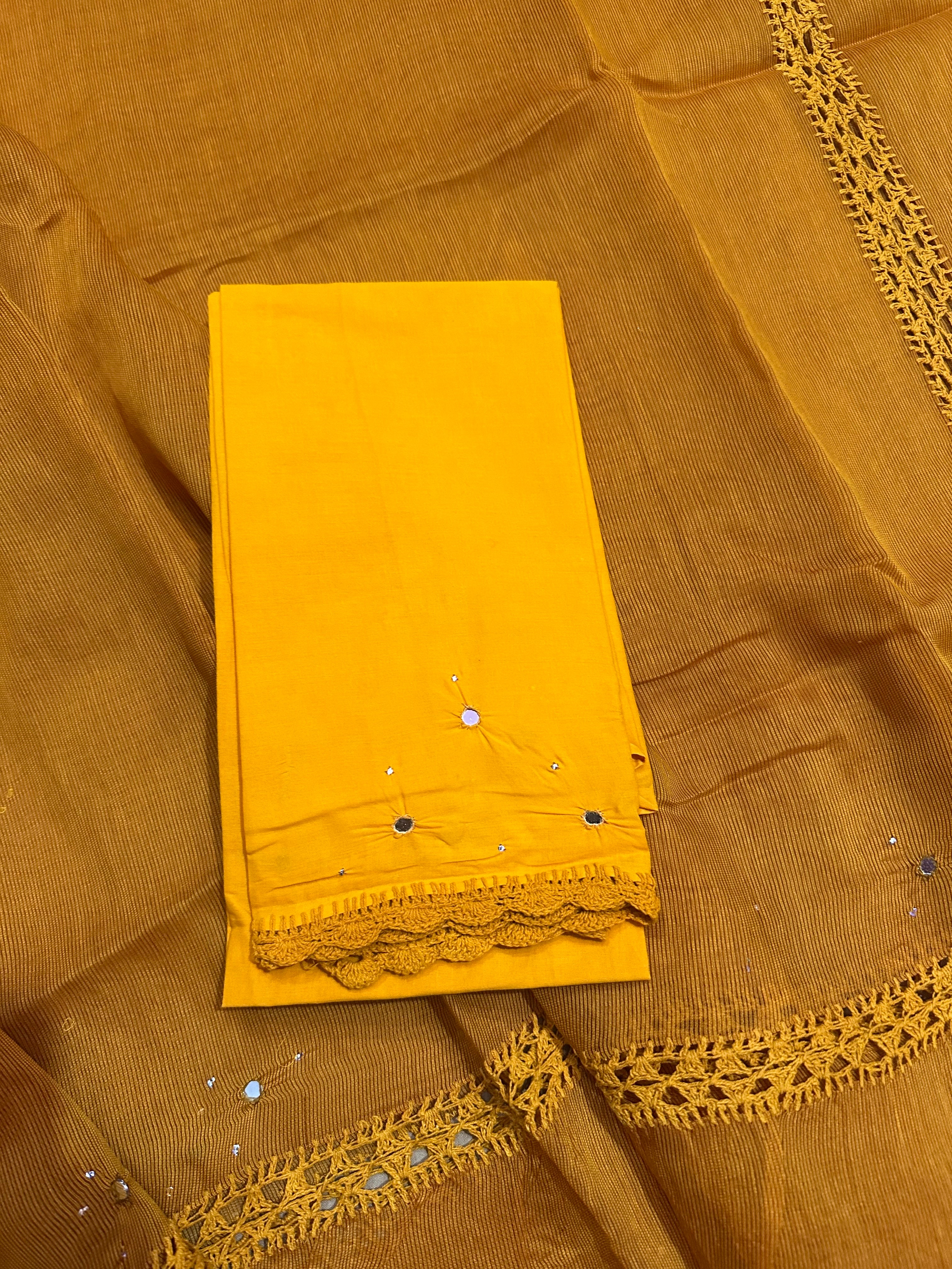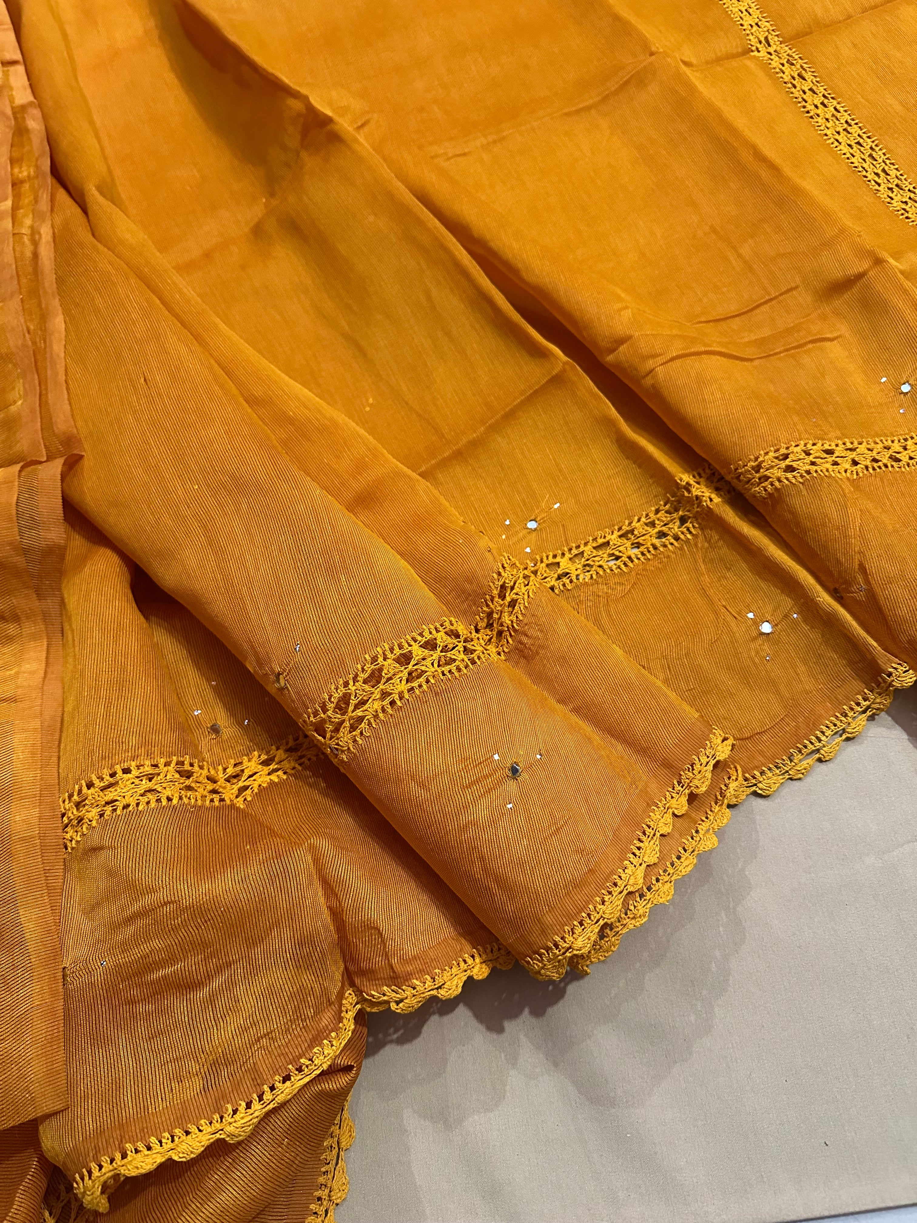 Blouse: Seperate cotton blouse 80 cms in same colour having crochet lace on border for sleeves.