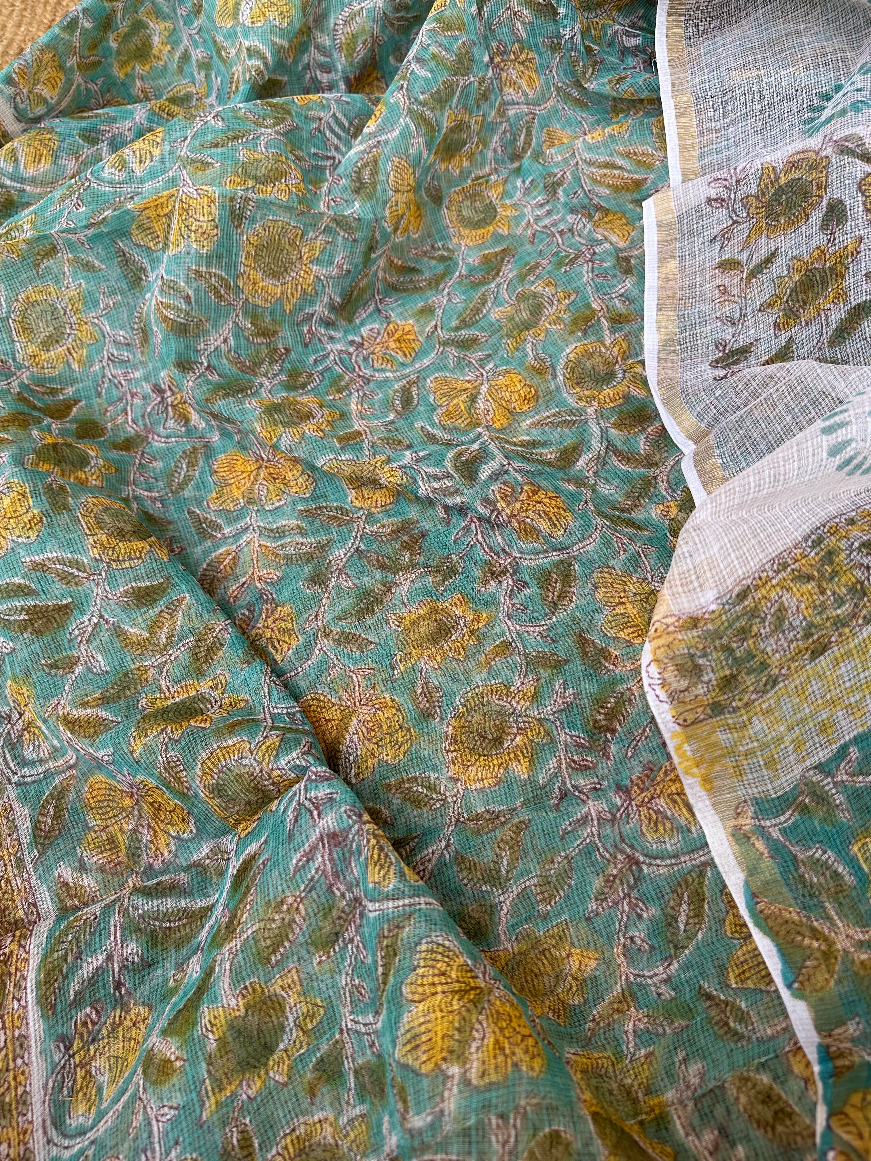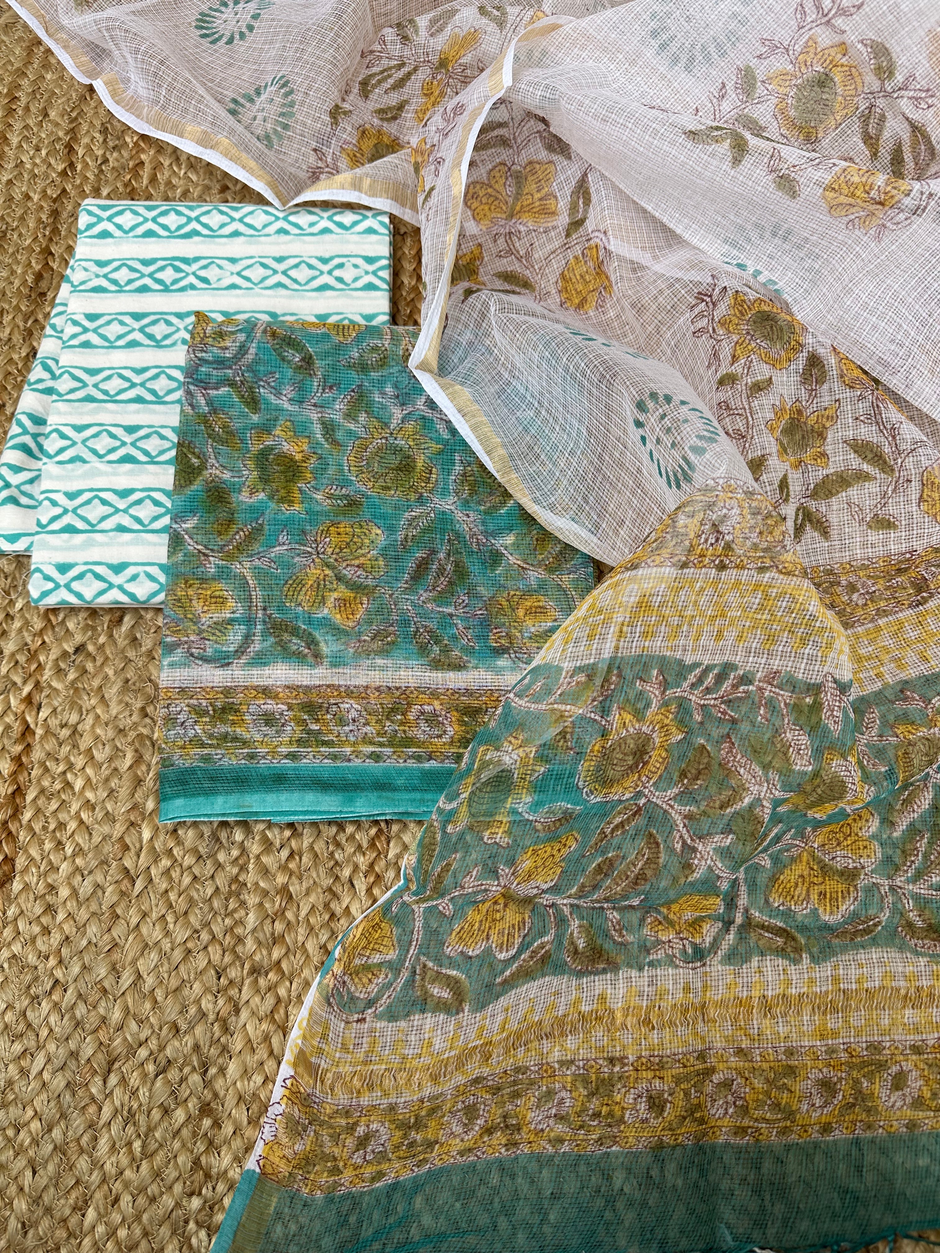 Sea Green Kota Handblock Printed Suit (unstitched)