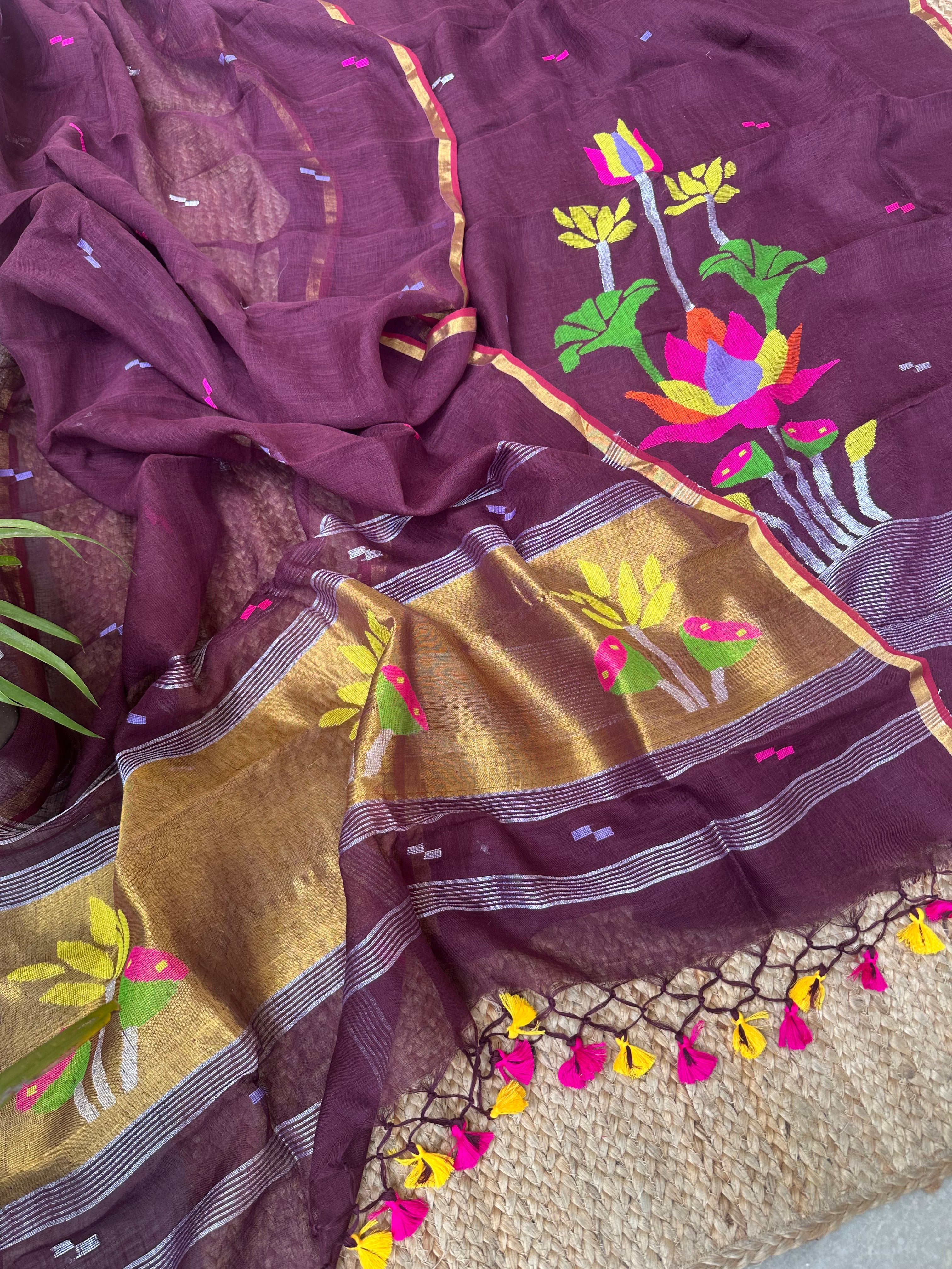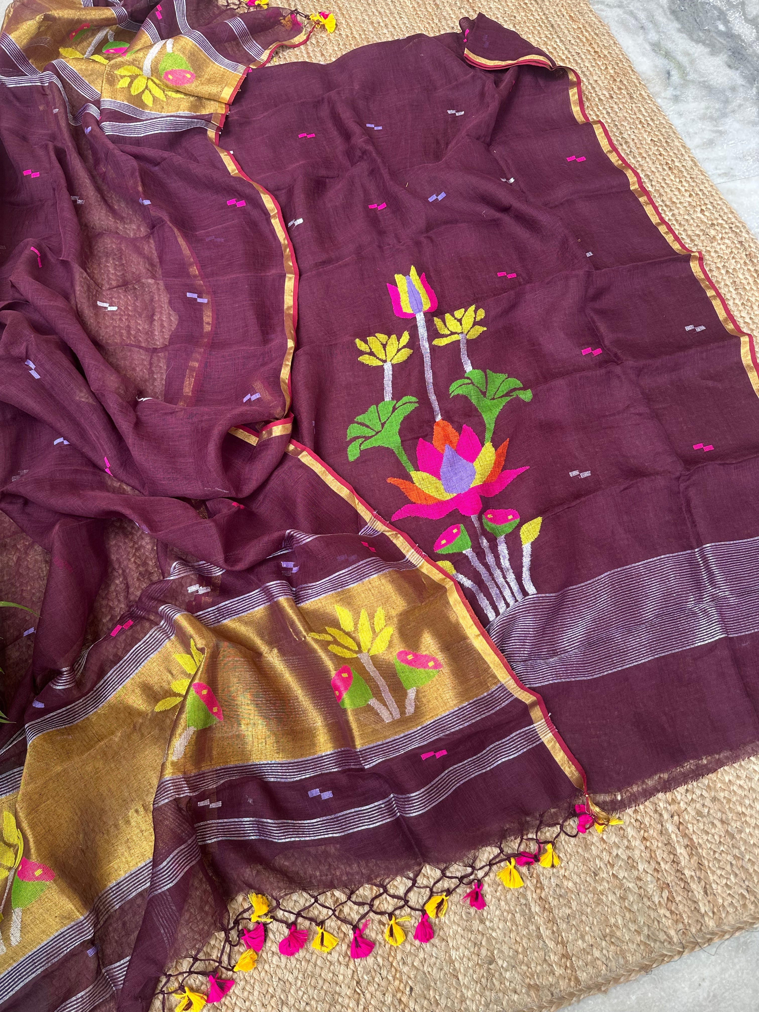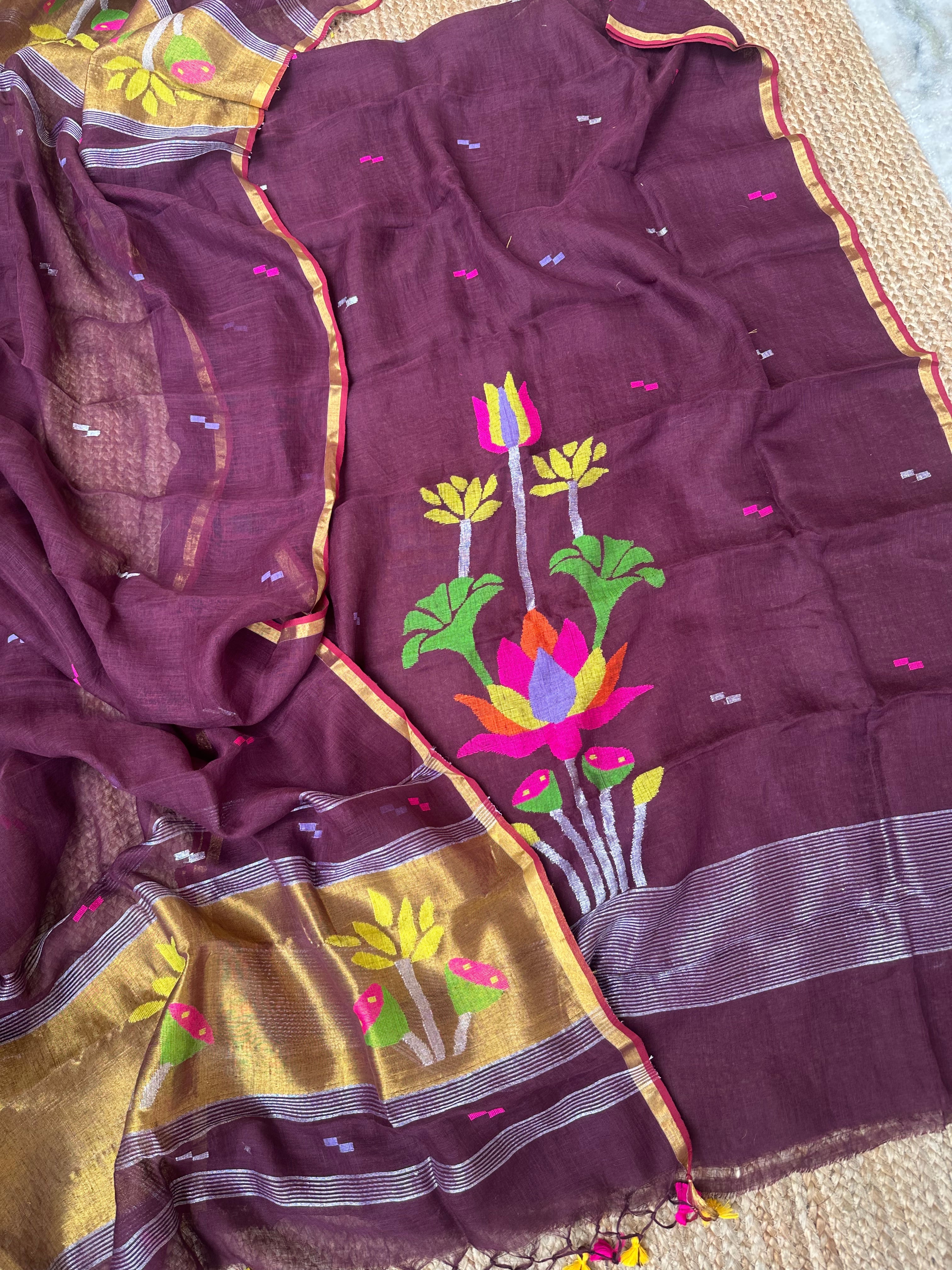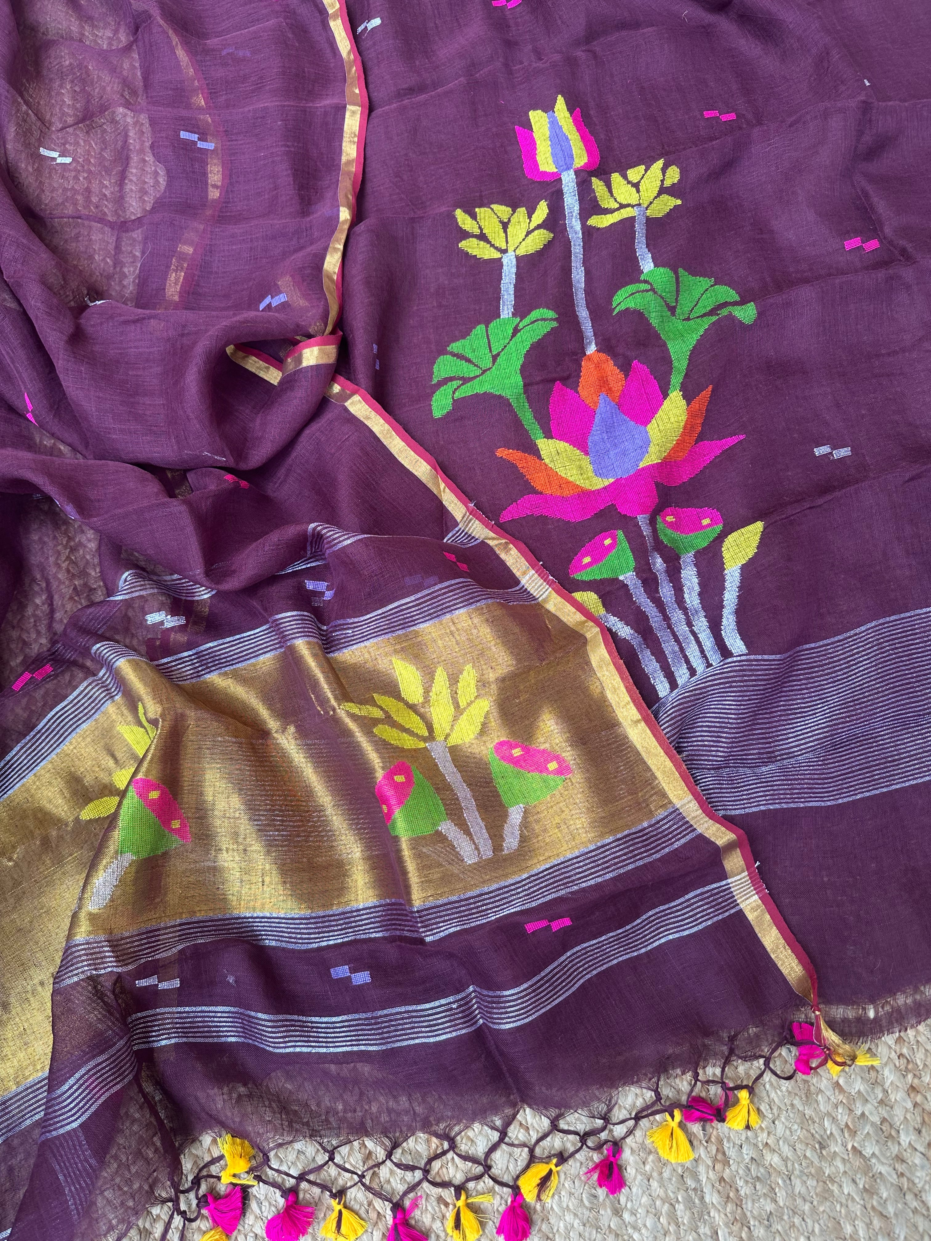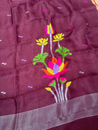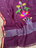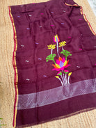 Wine Linen Handloom Jamdani Zari Kurta Dupatta Set