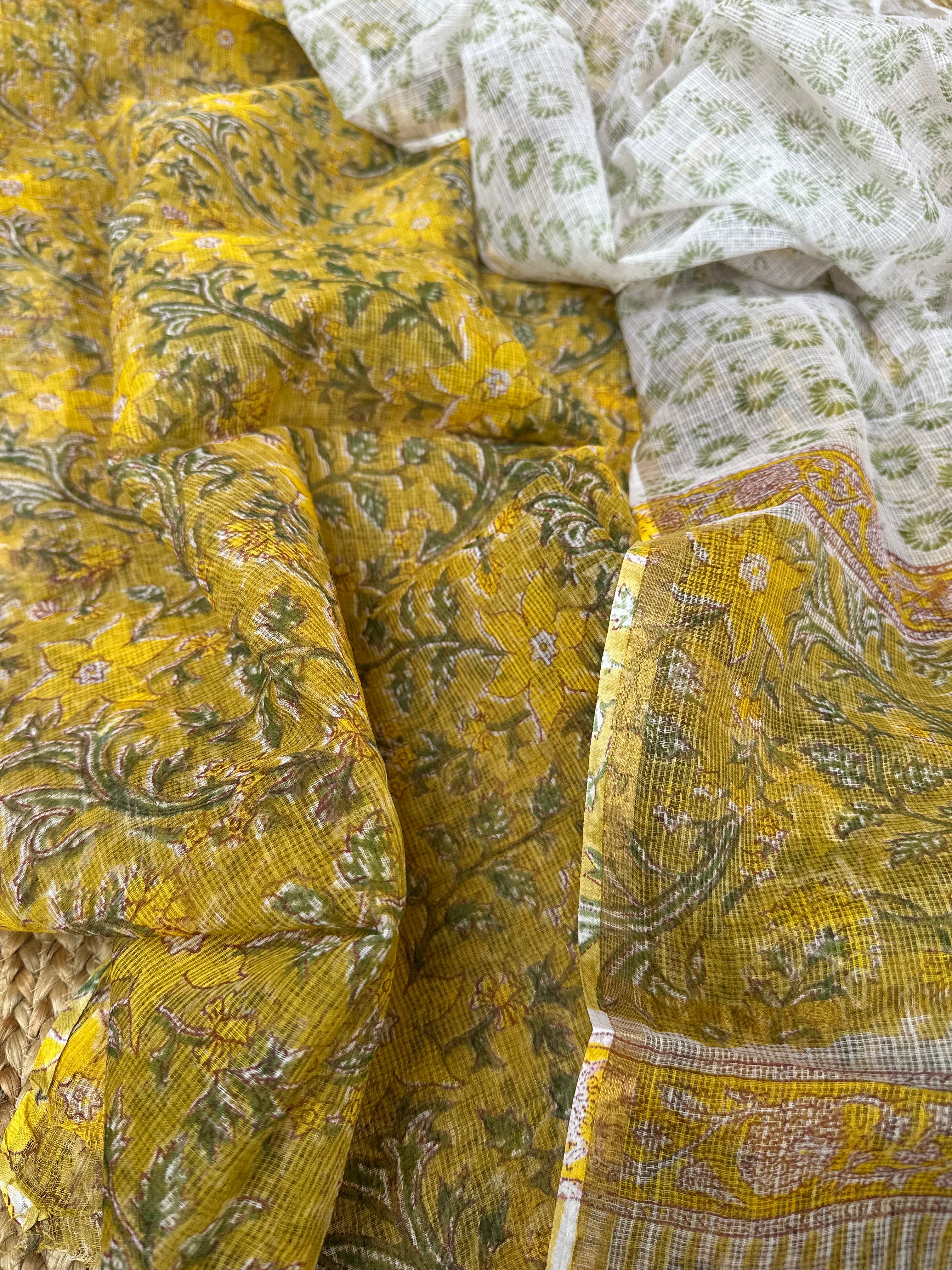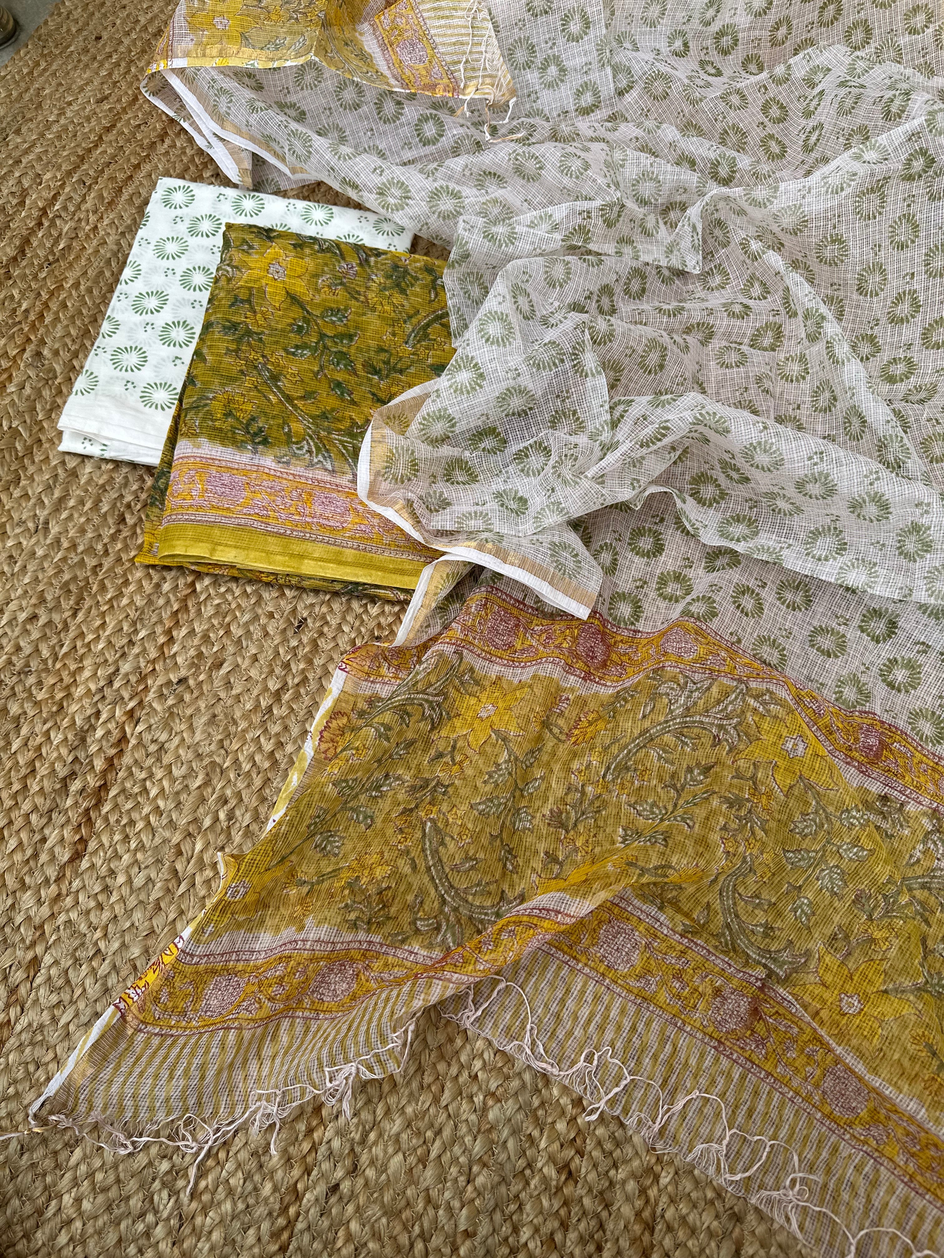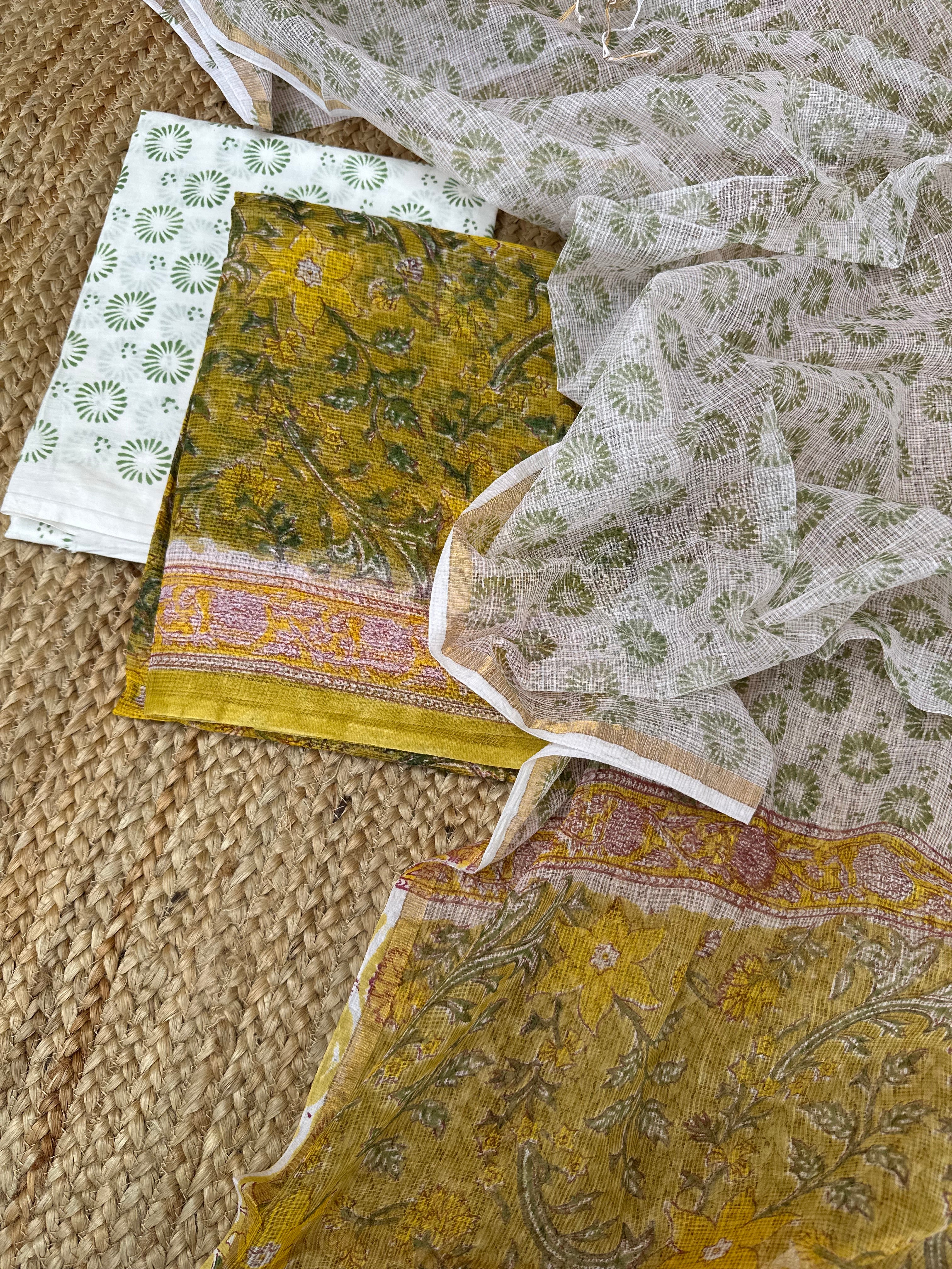 Yellow Kota Handblock Printed Suit (unstitched)
