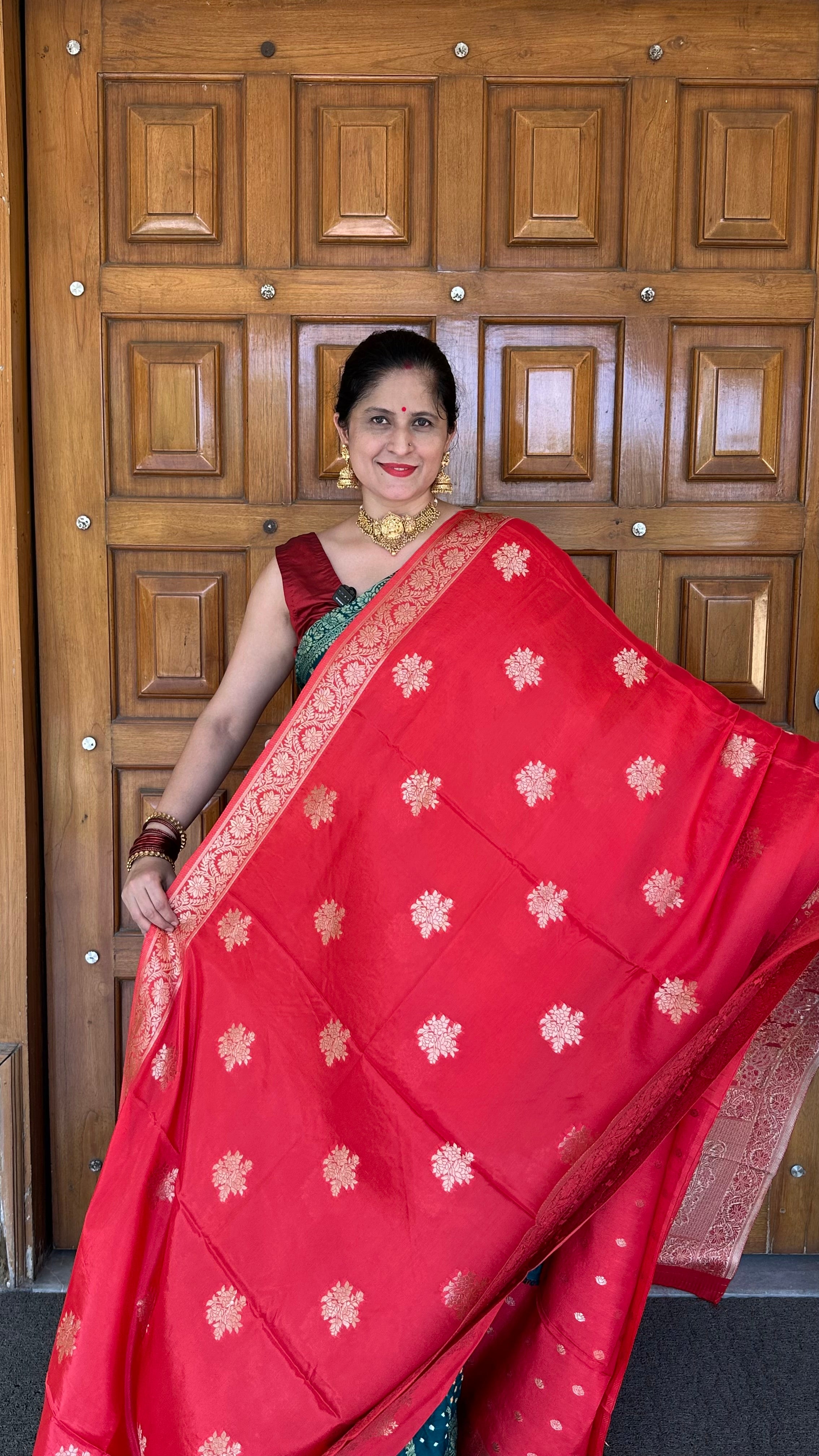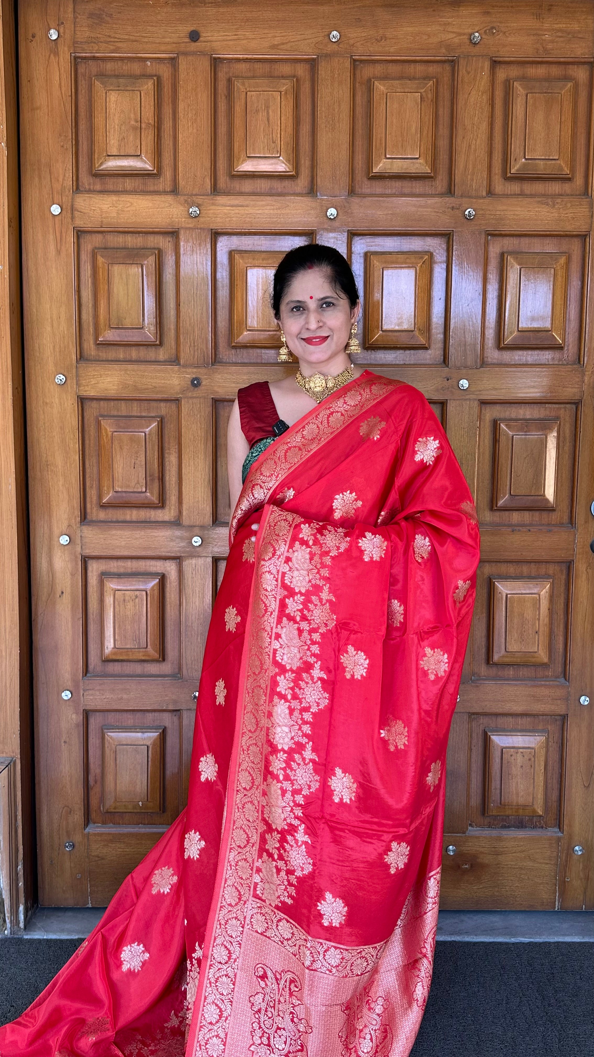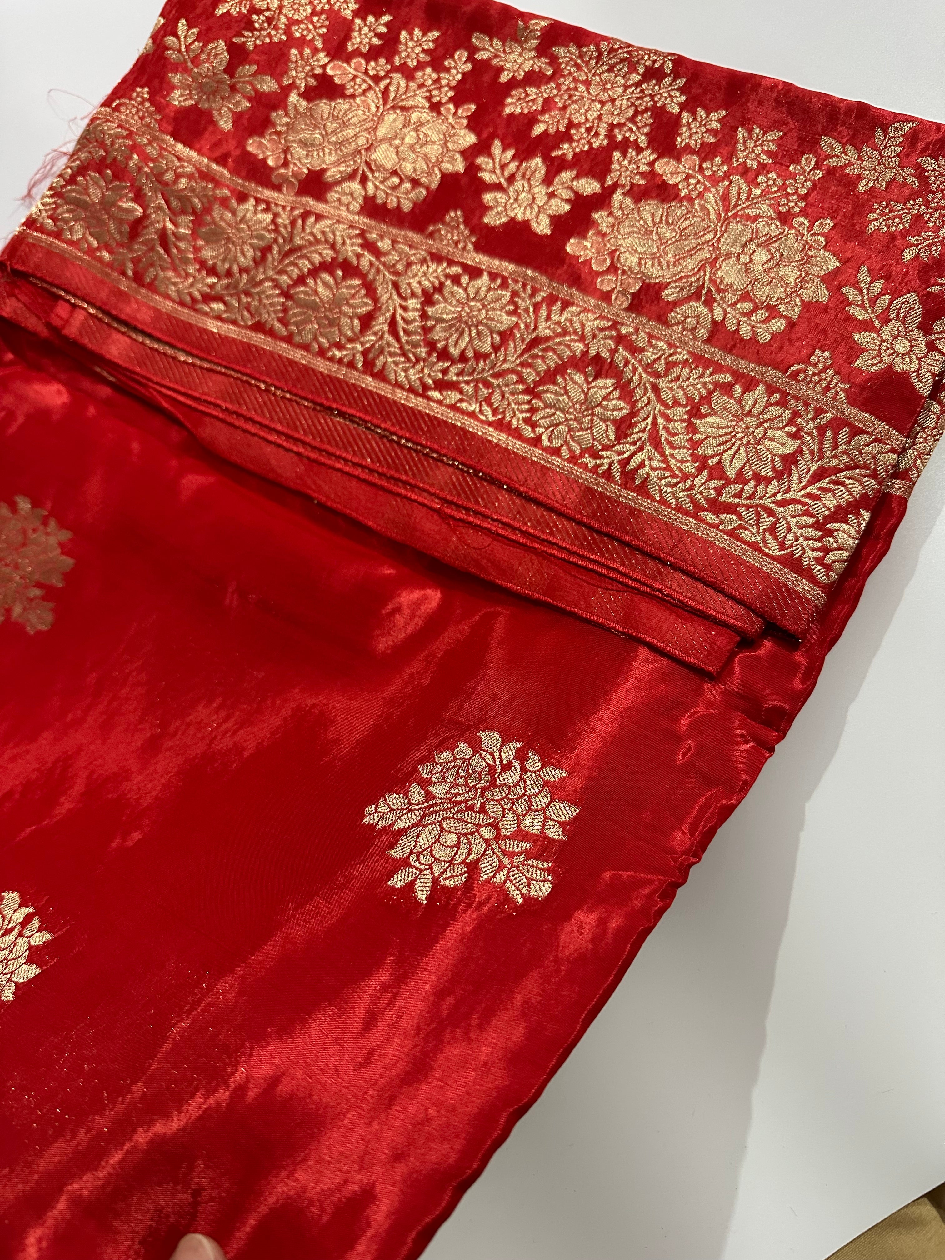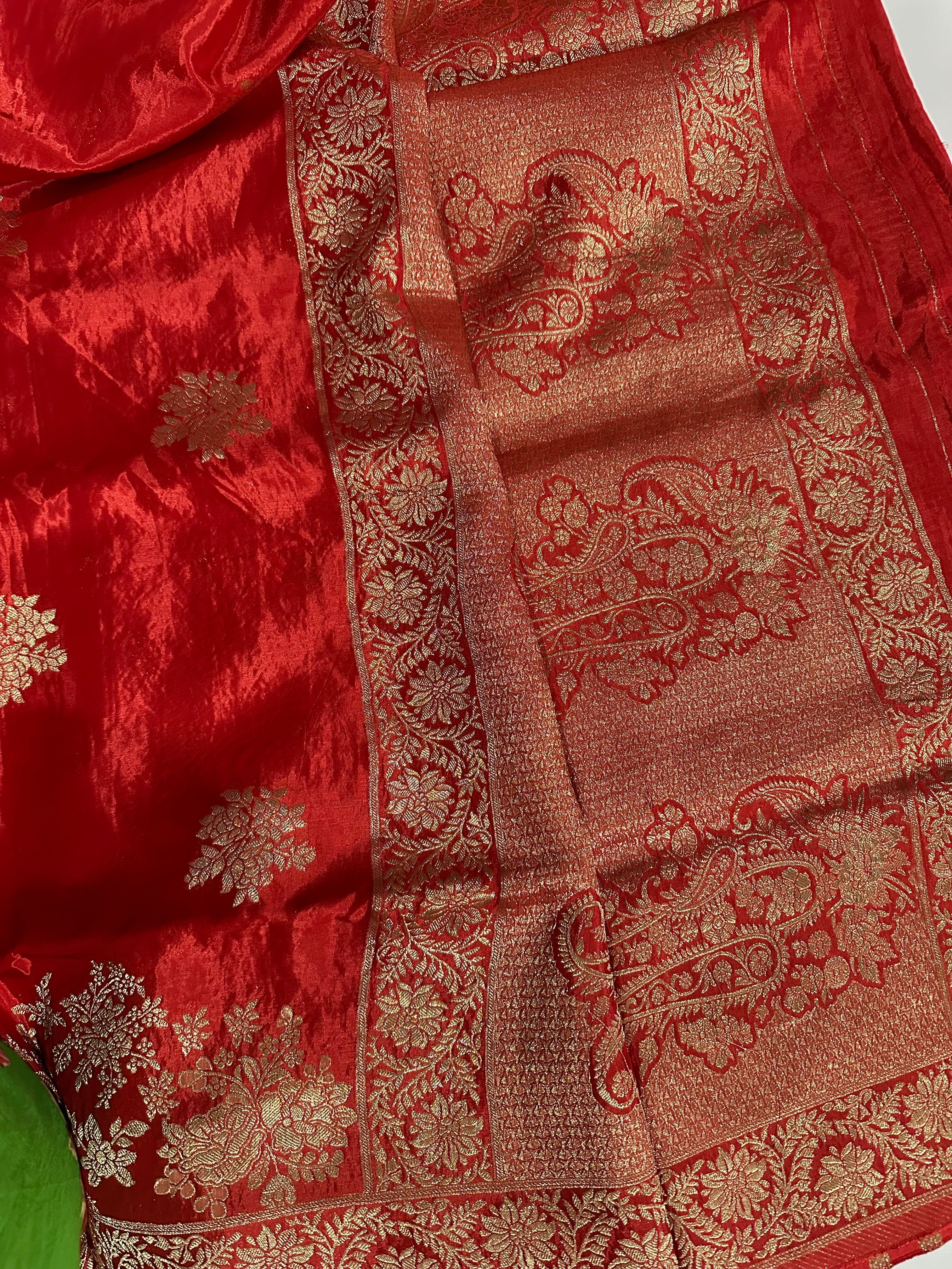 Pure Matka Silk Benarasi Handloom Red Saree (Silkmark Certified)