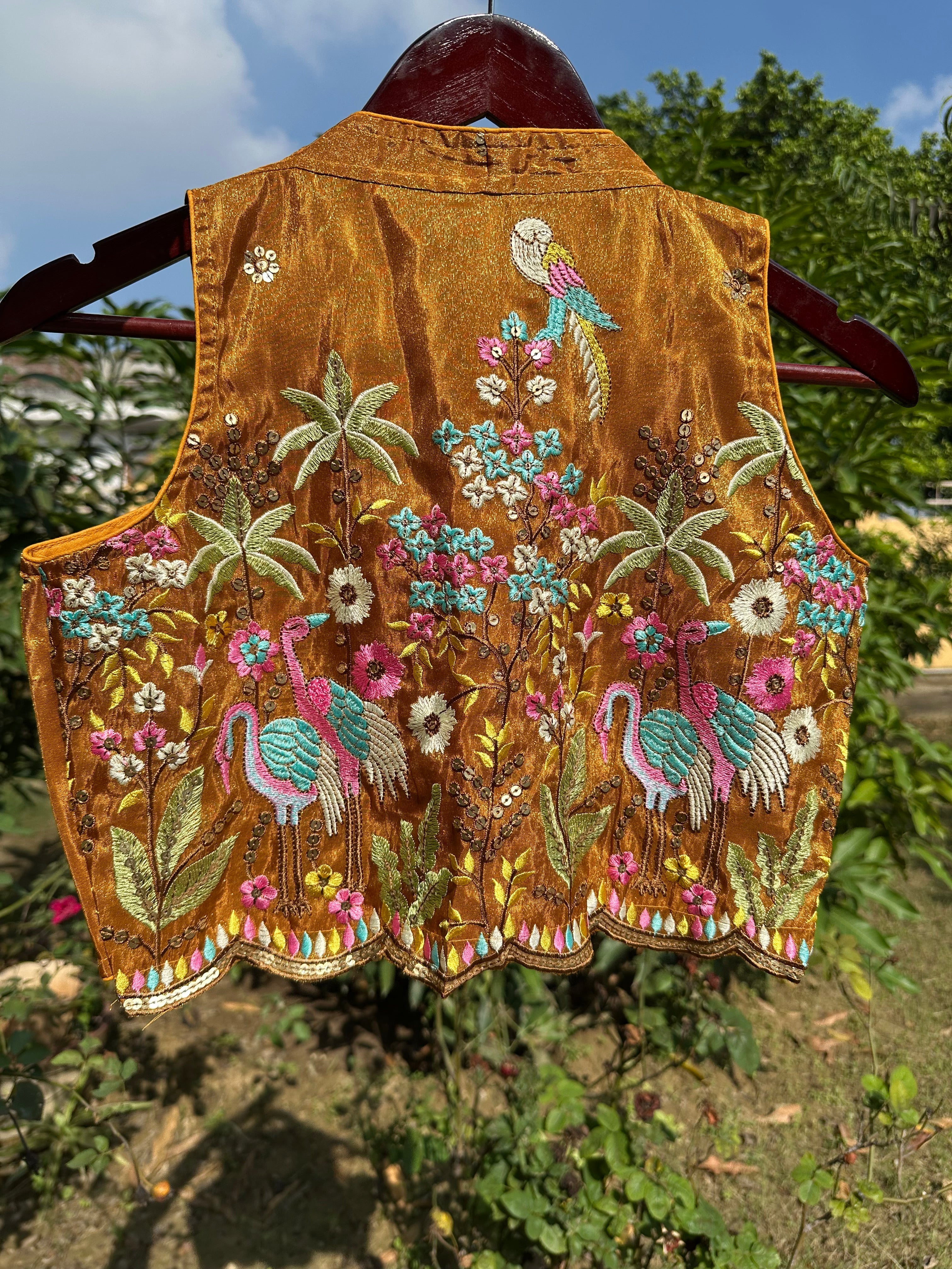 Crush Tissue Embroidered Sleeveless Blouse (Mustard)