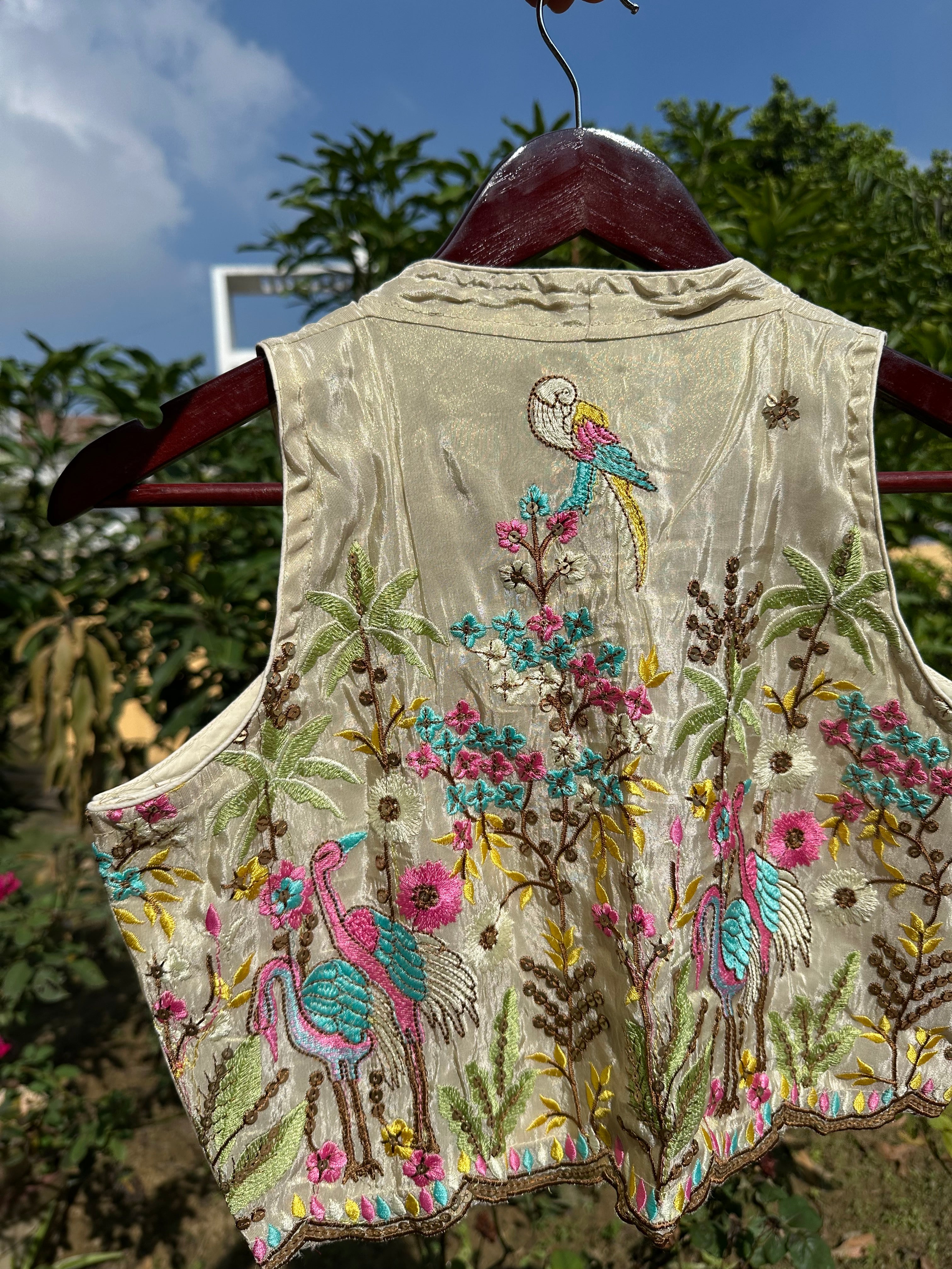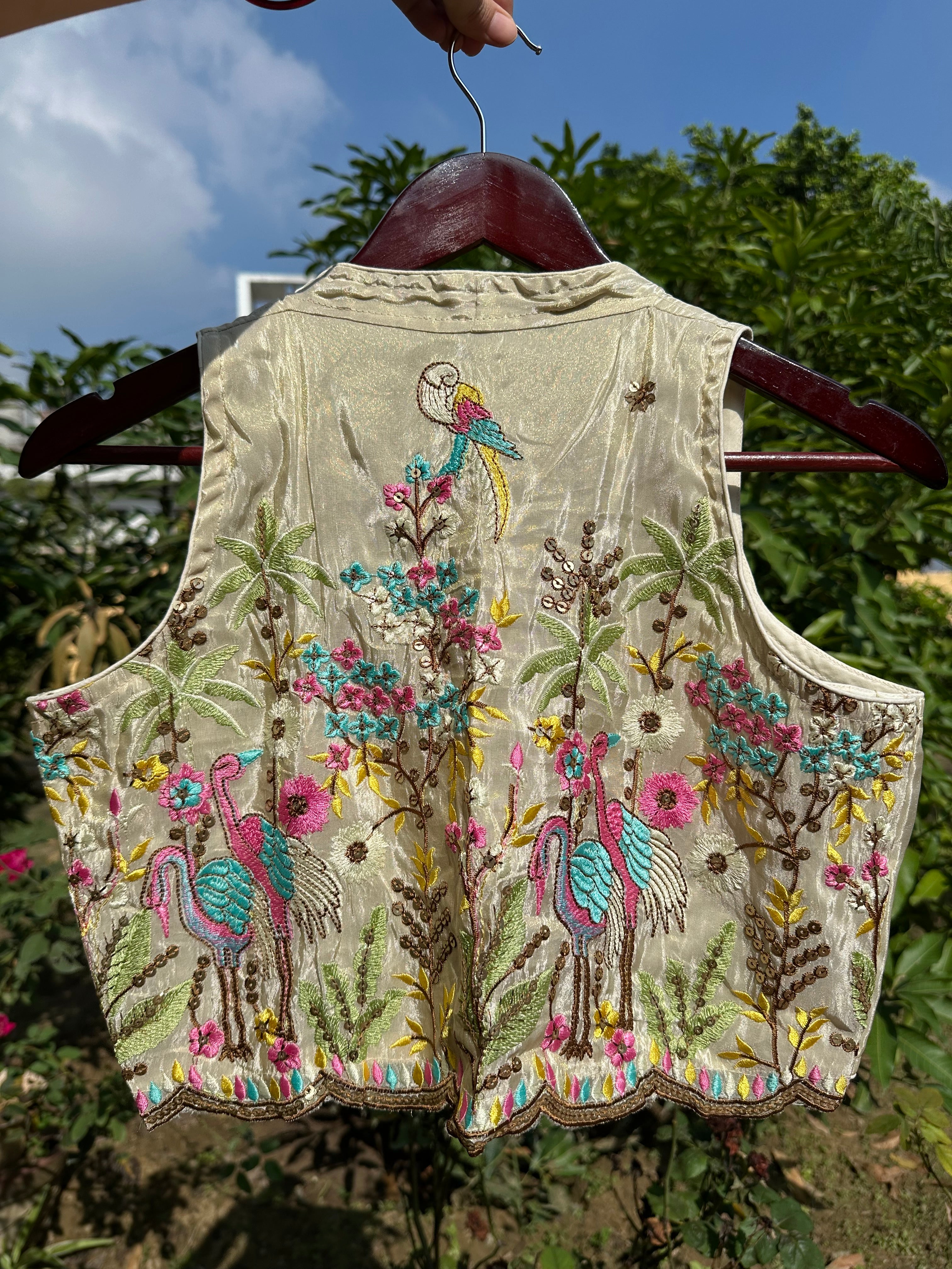 Crush Tissue Embroidered Sleeveless Blouse (Cream)