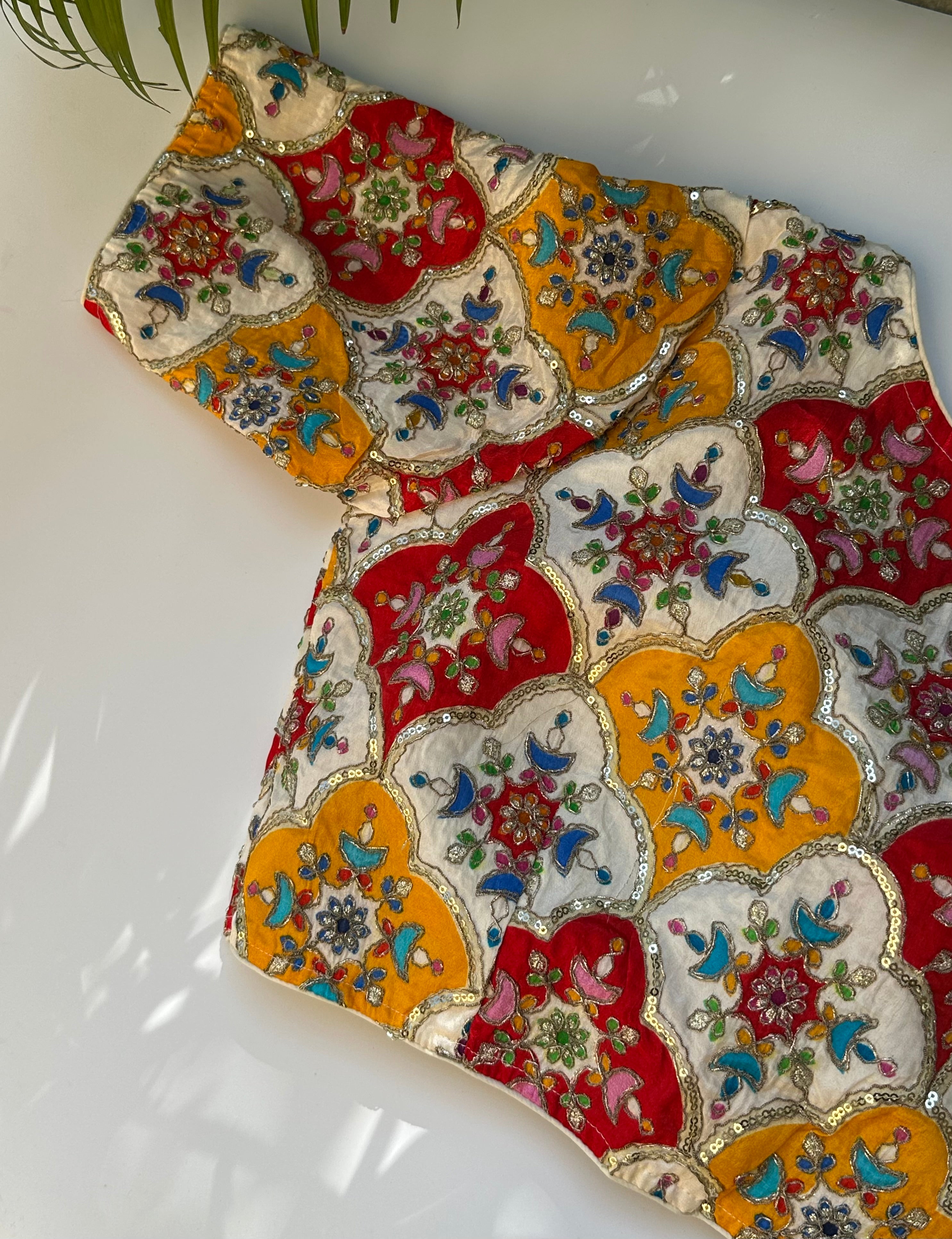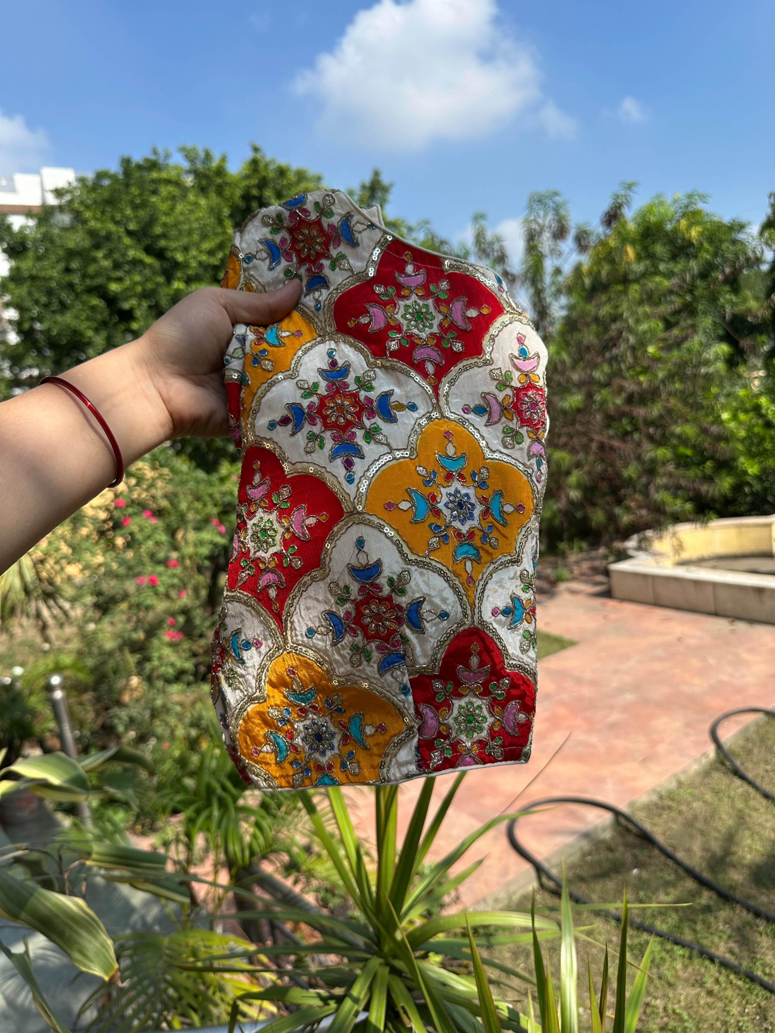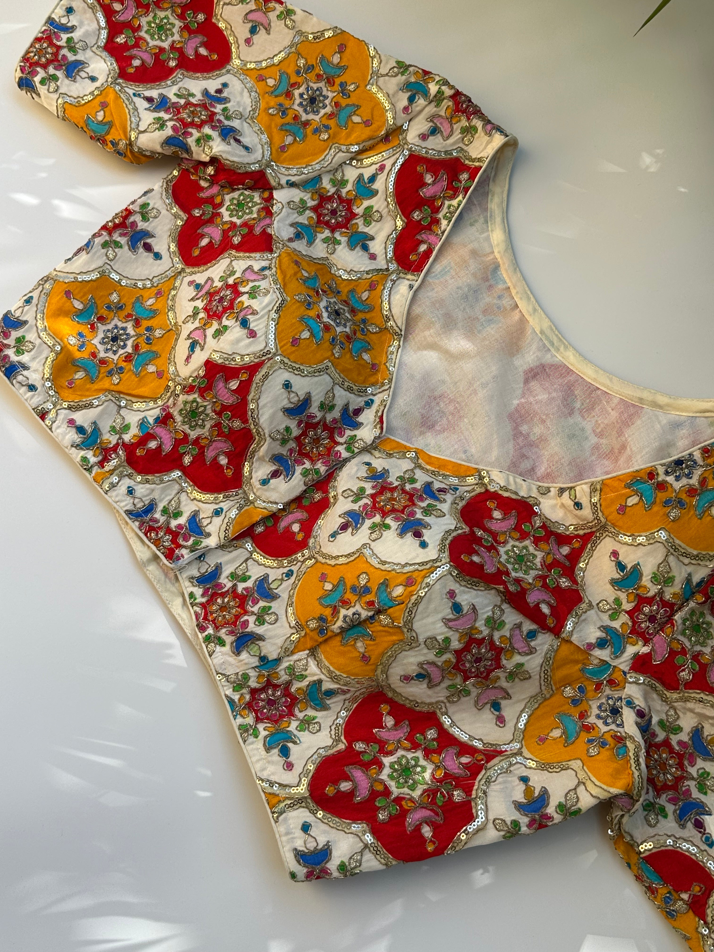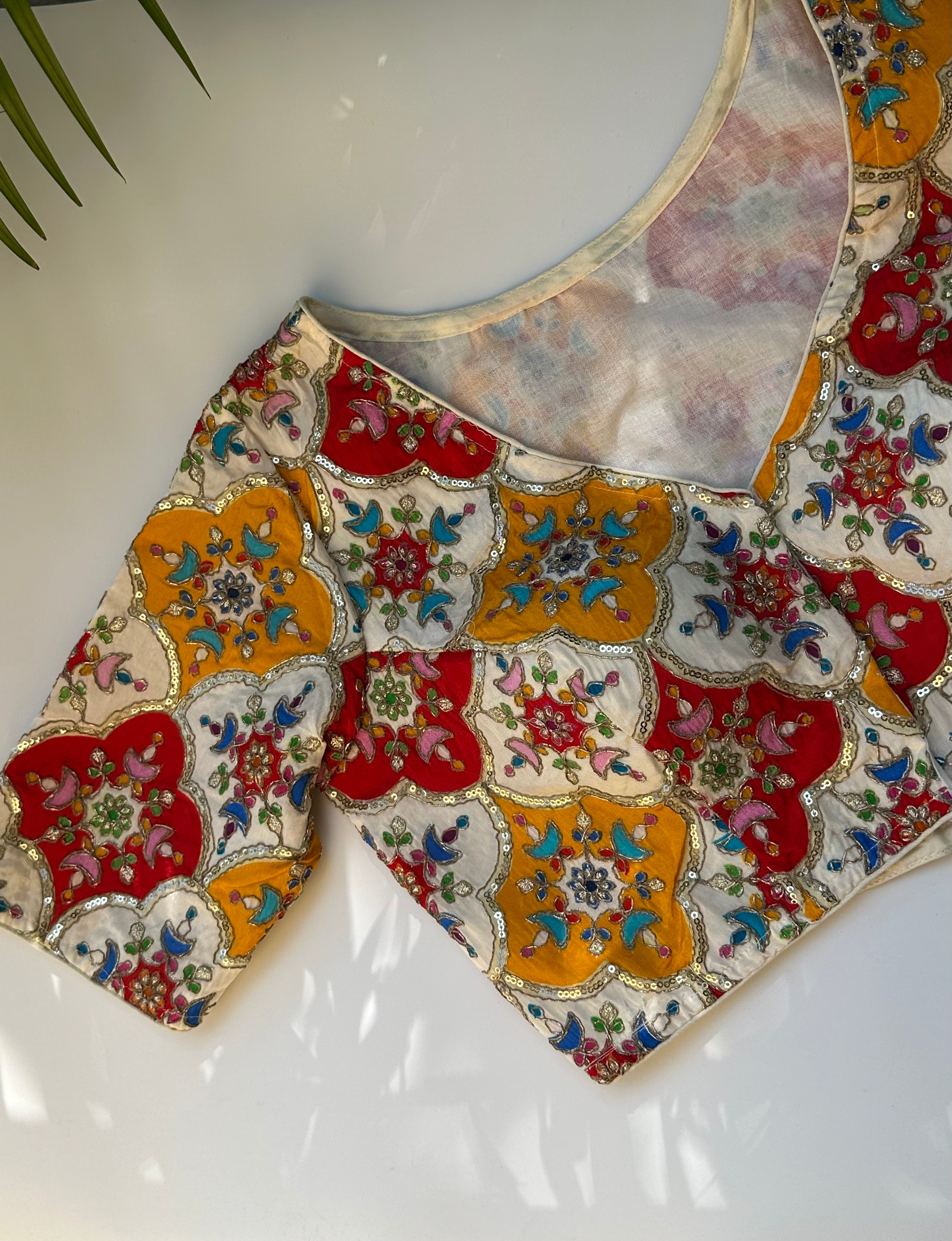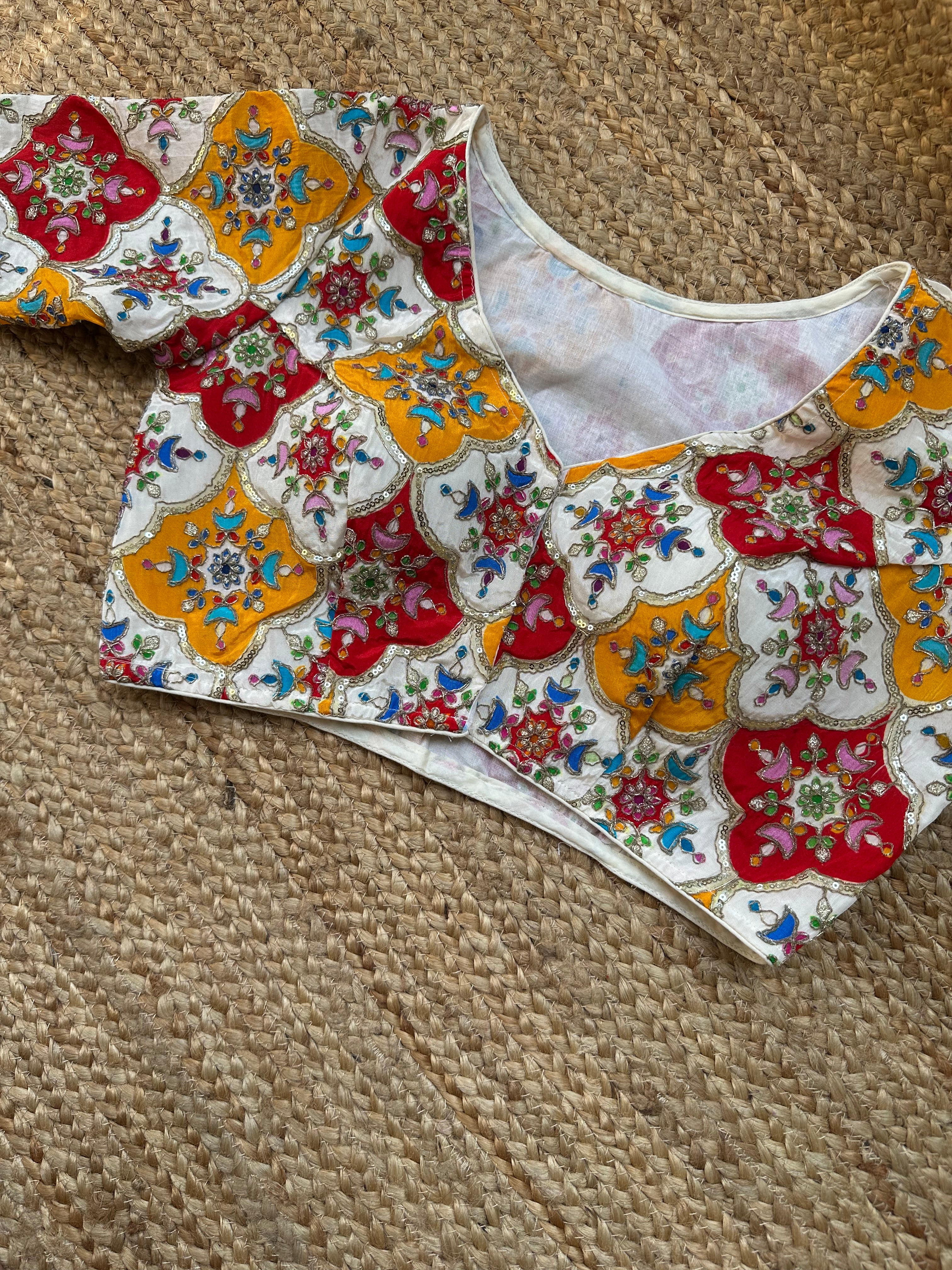 Crepe Multicoloured embroidered Blouse (Off White)