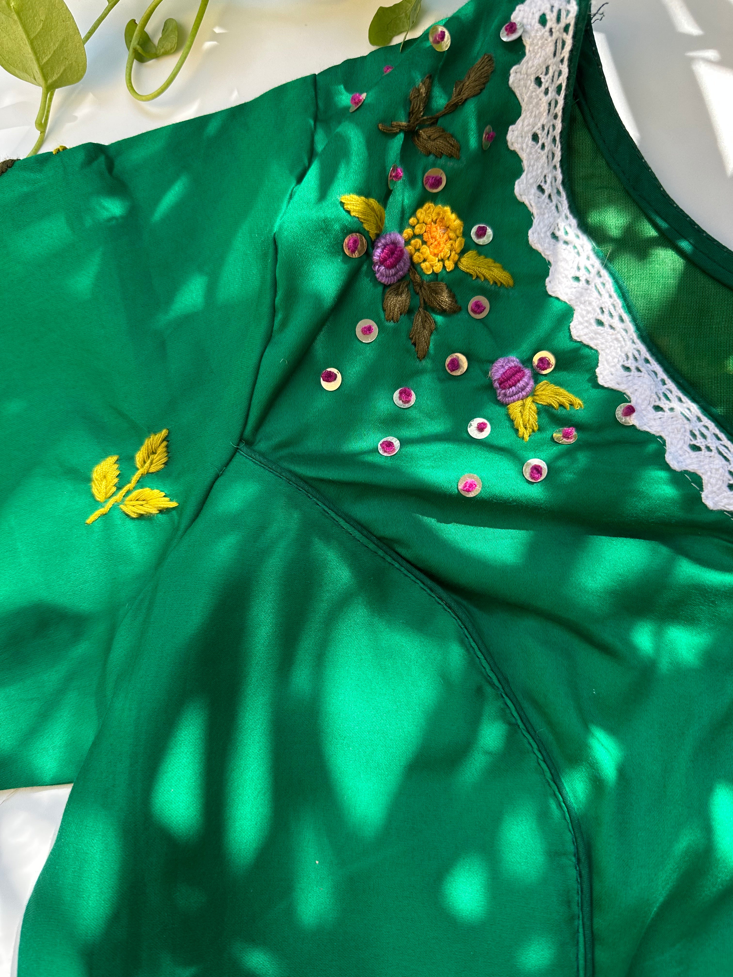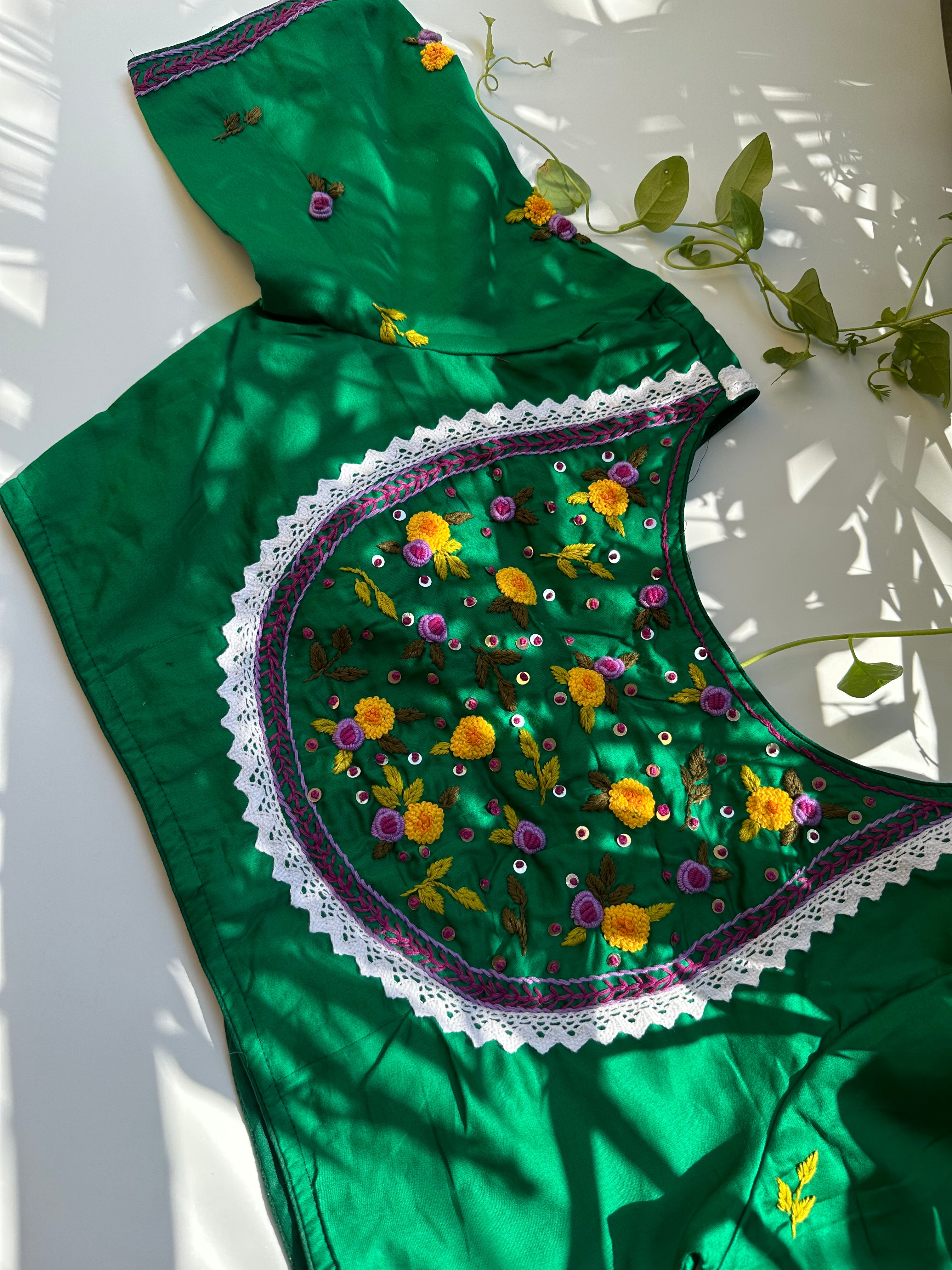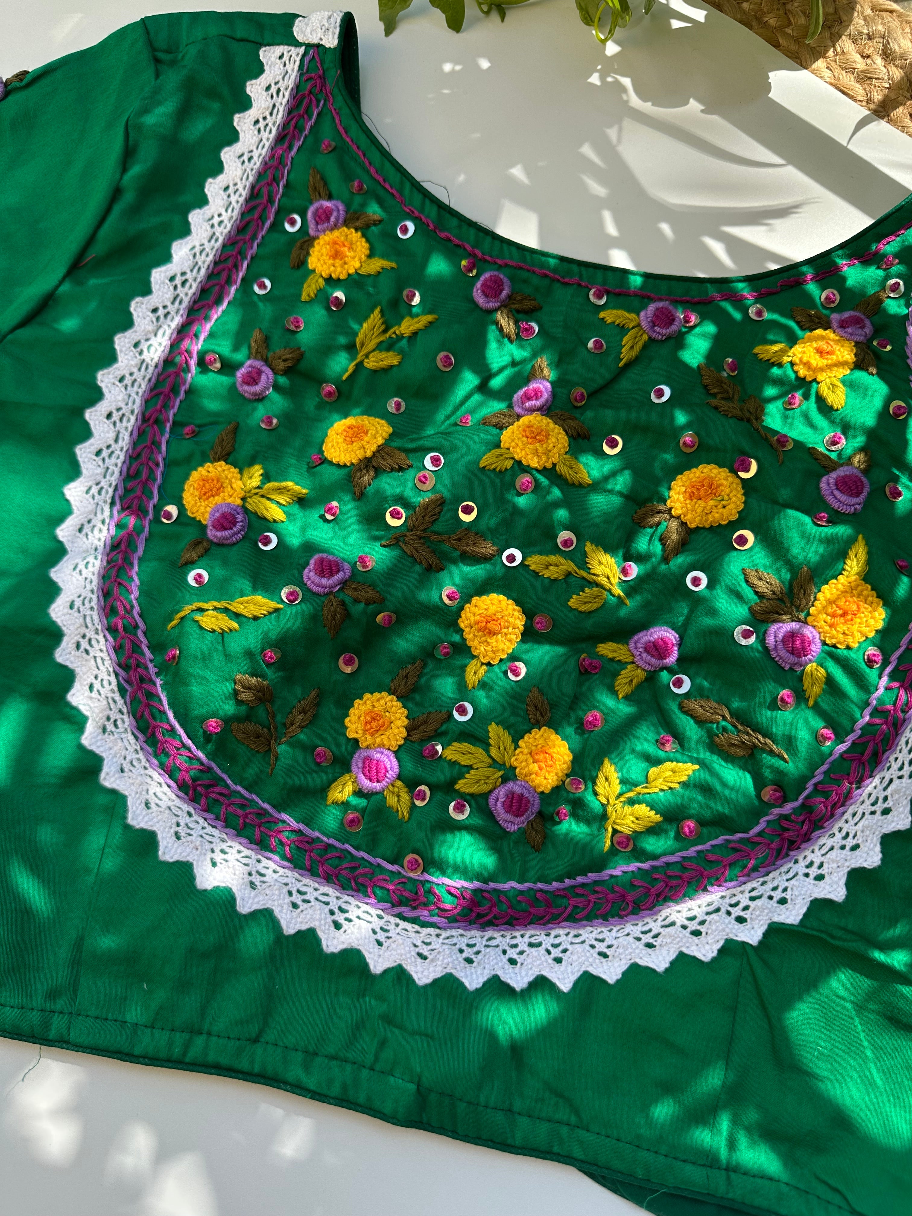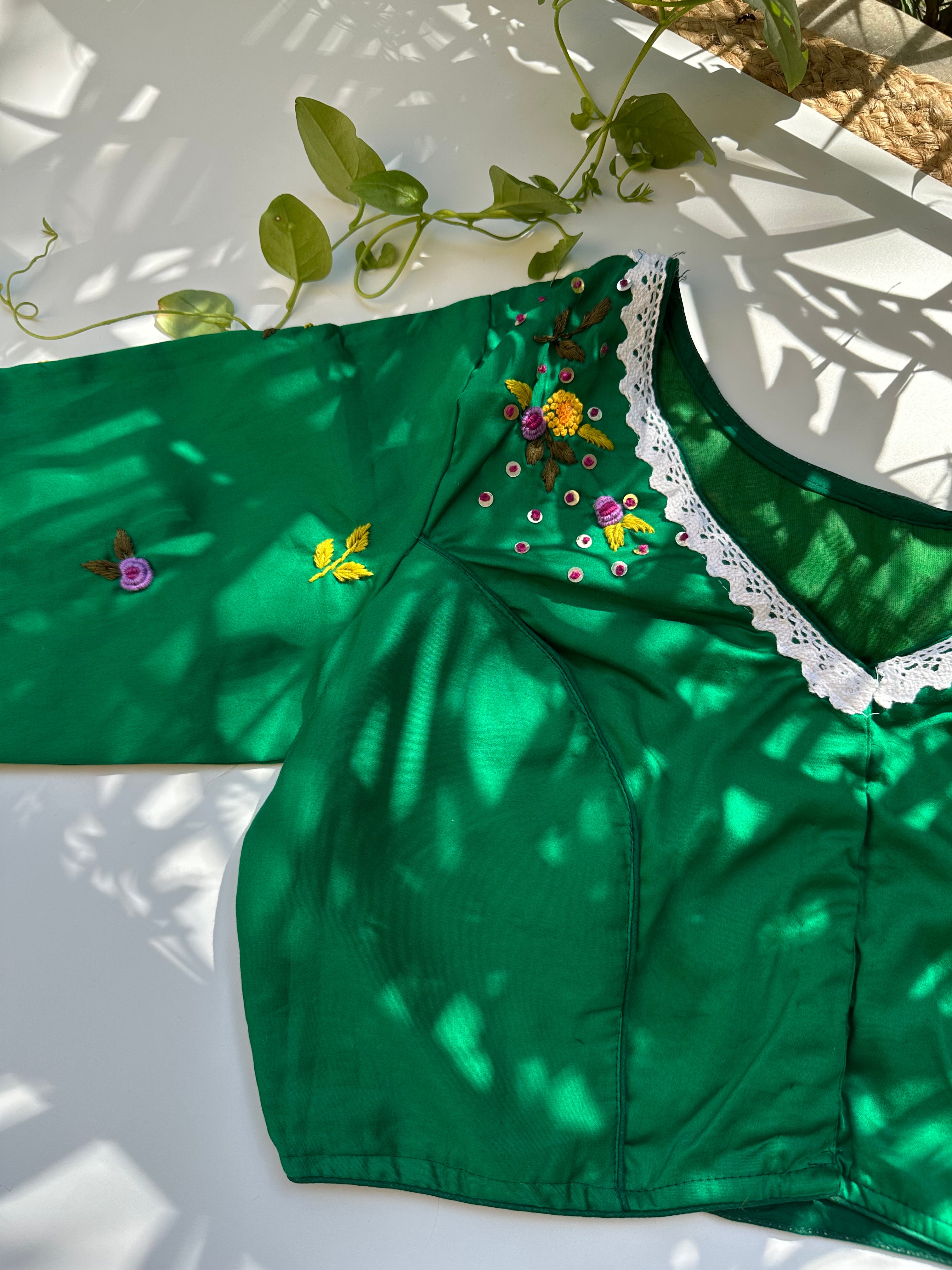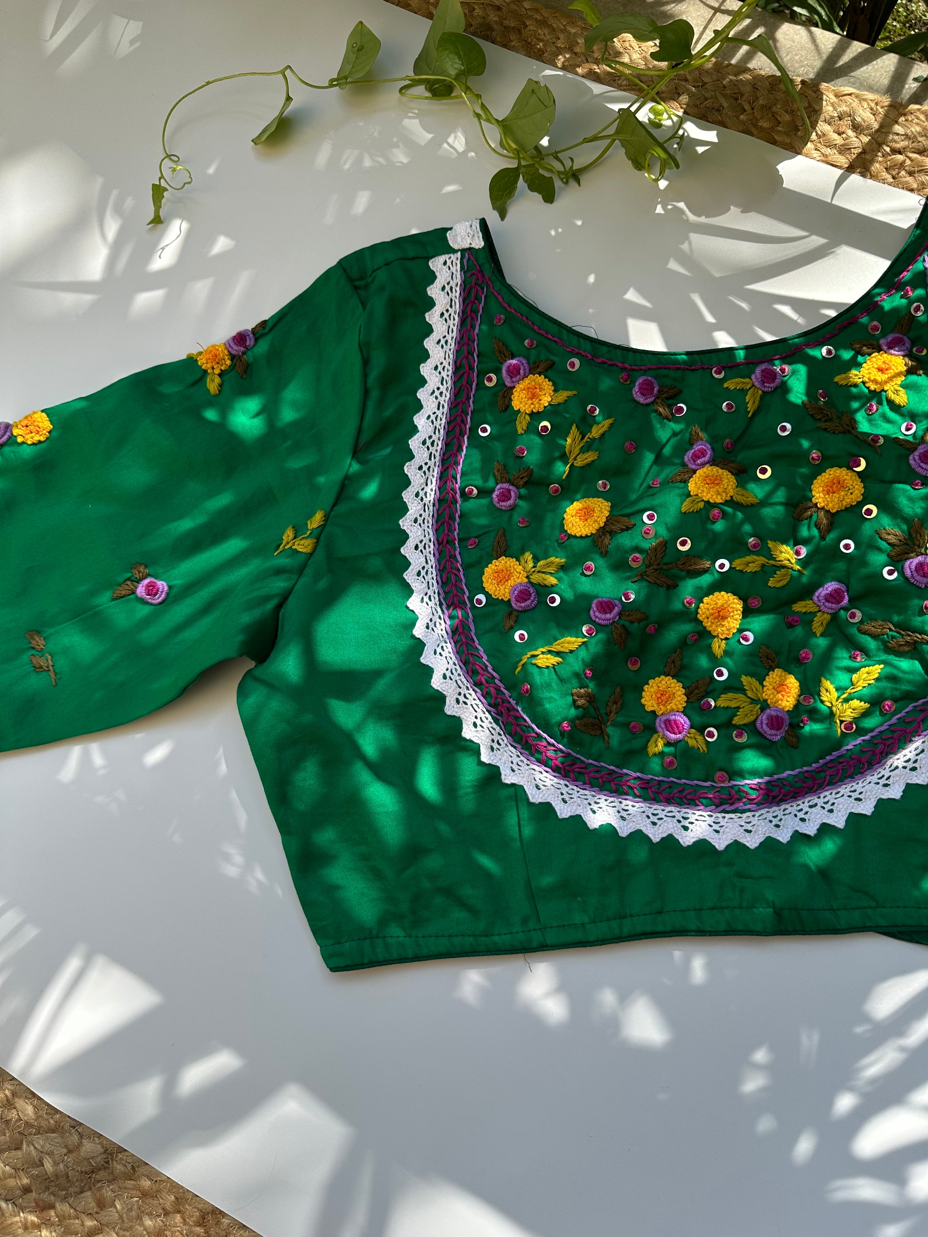 French Knot Handwork Blouse (Green)
