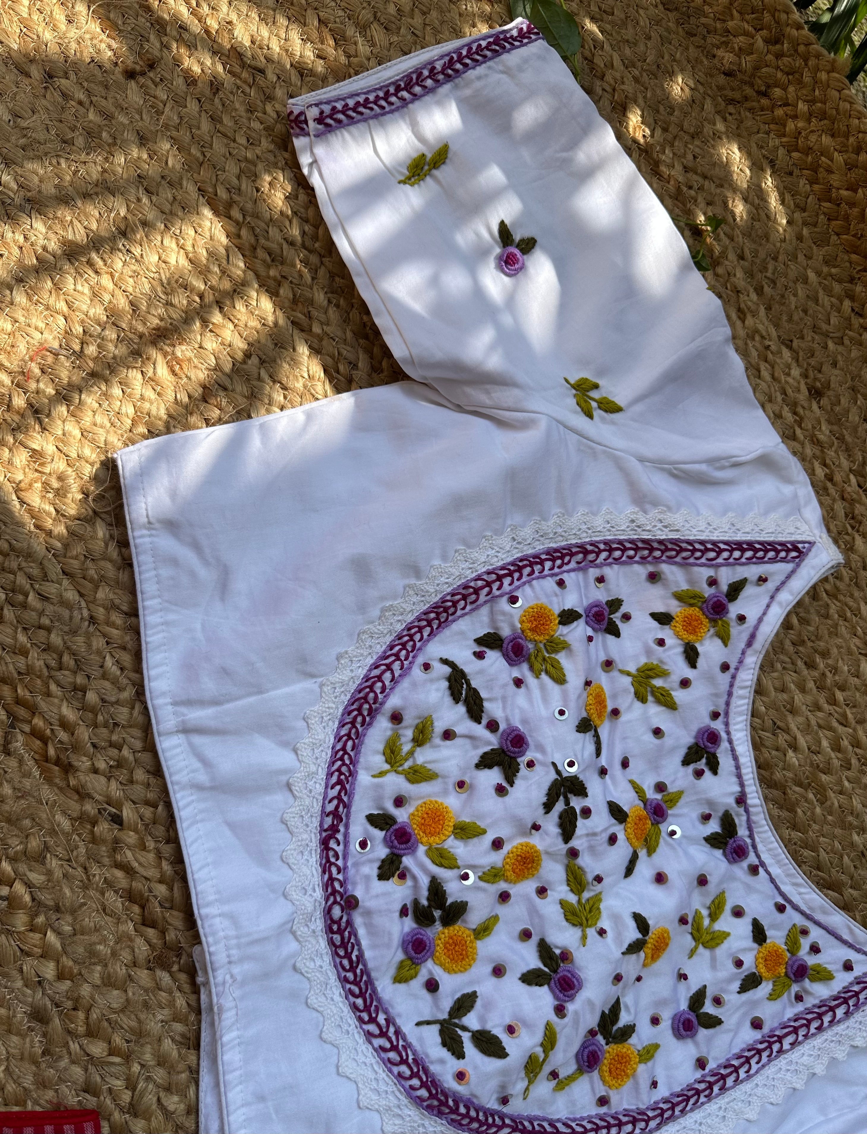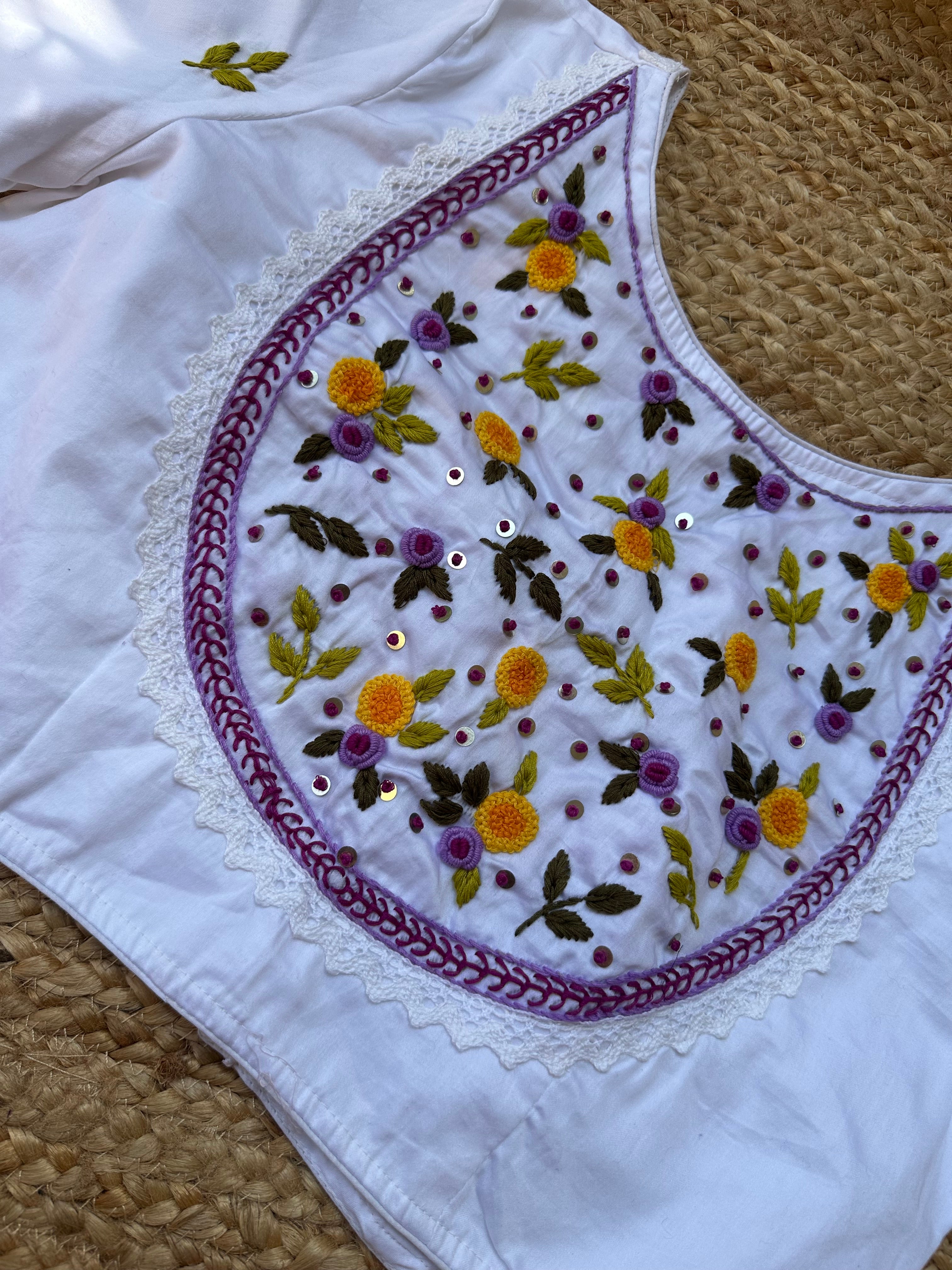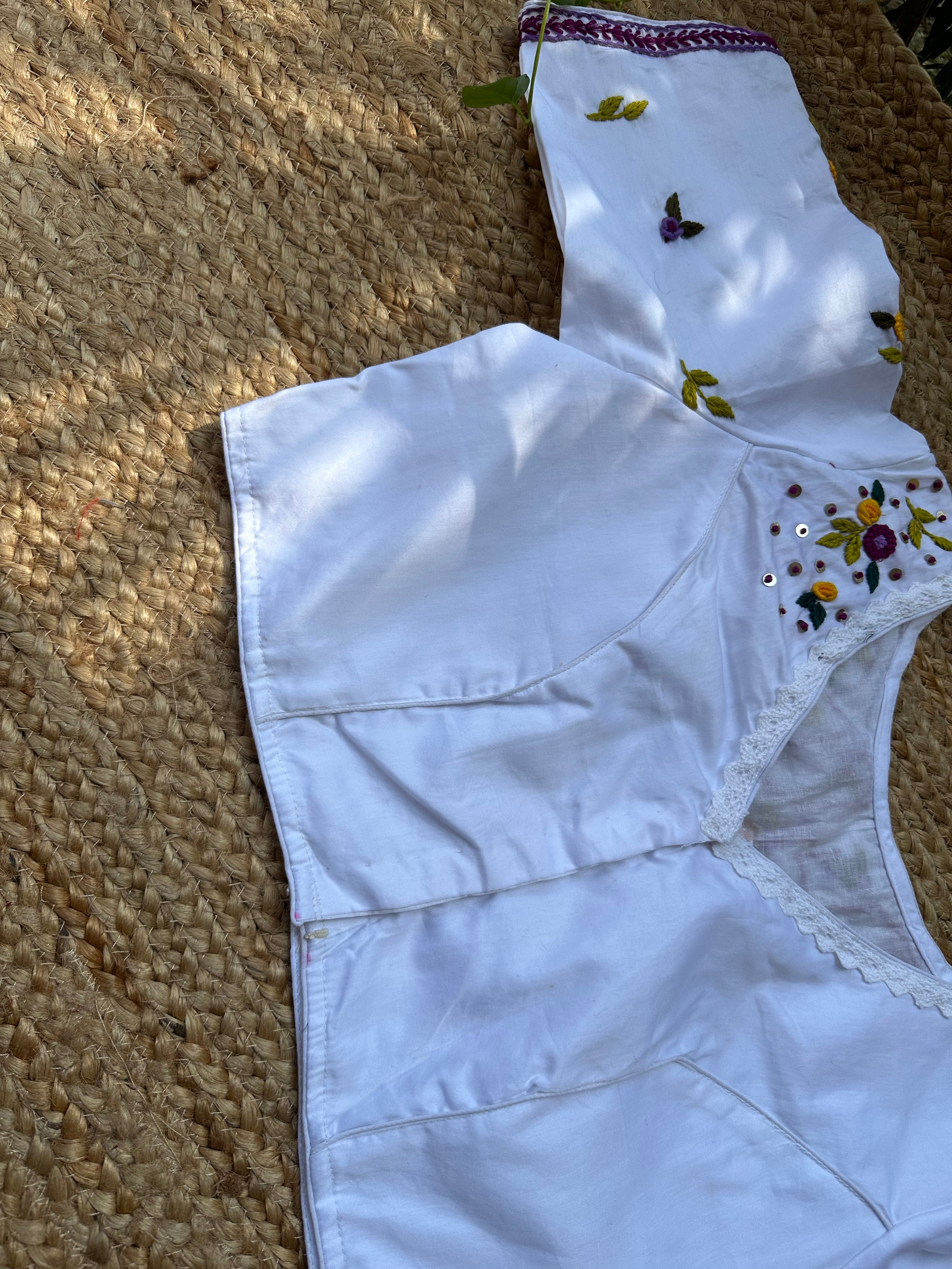 French Knot Handwork Blouse (White)
