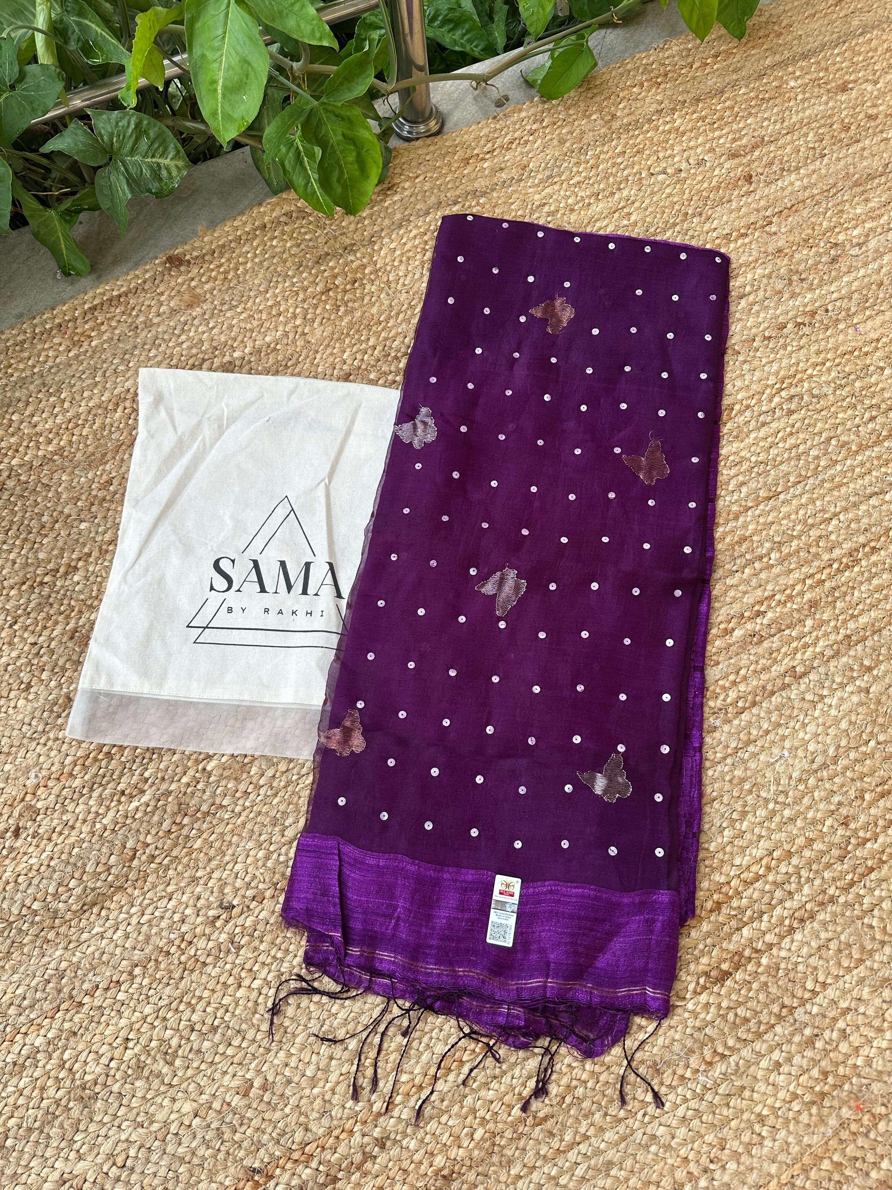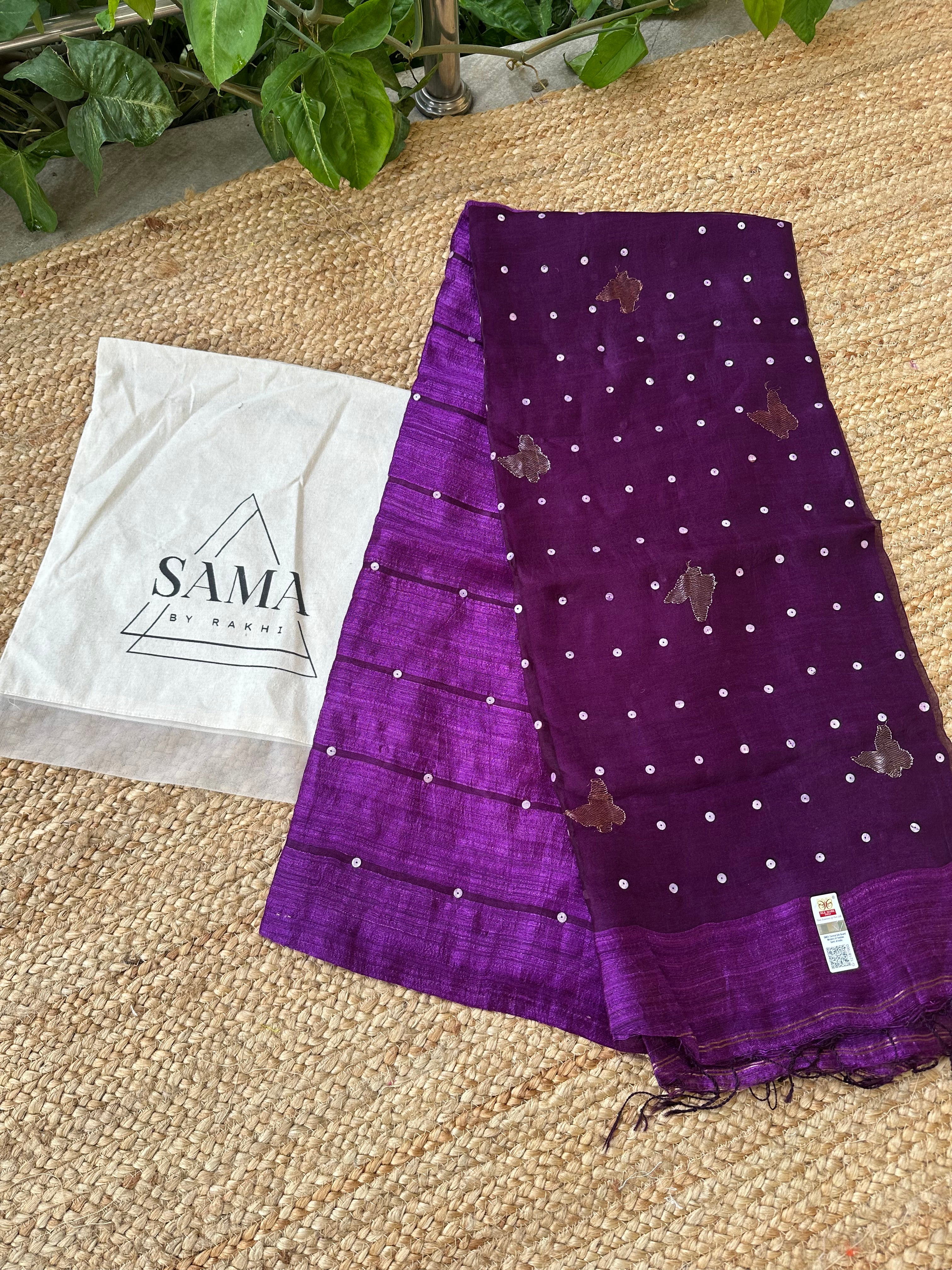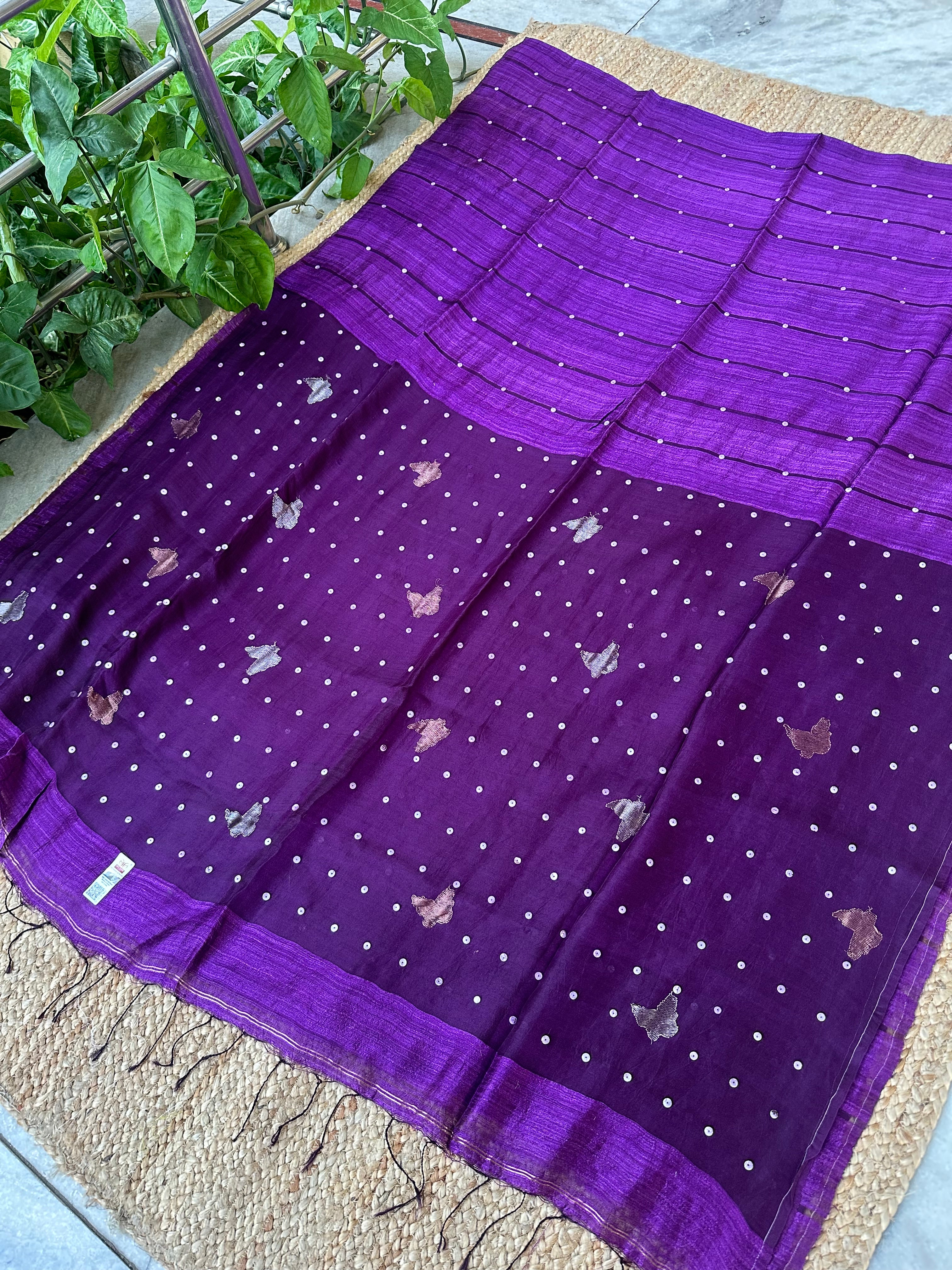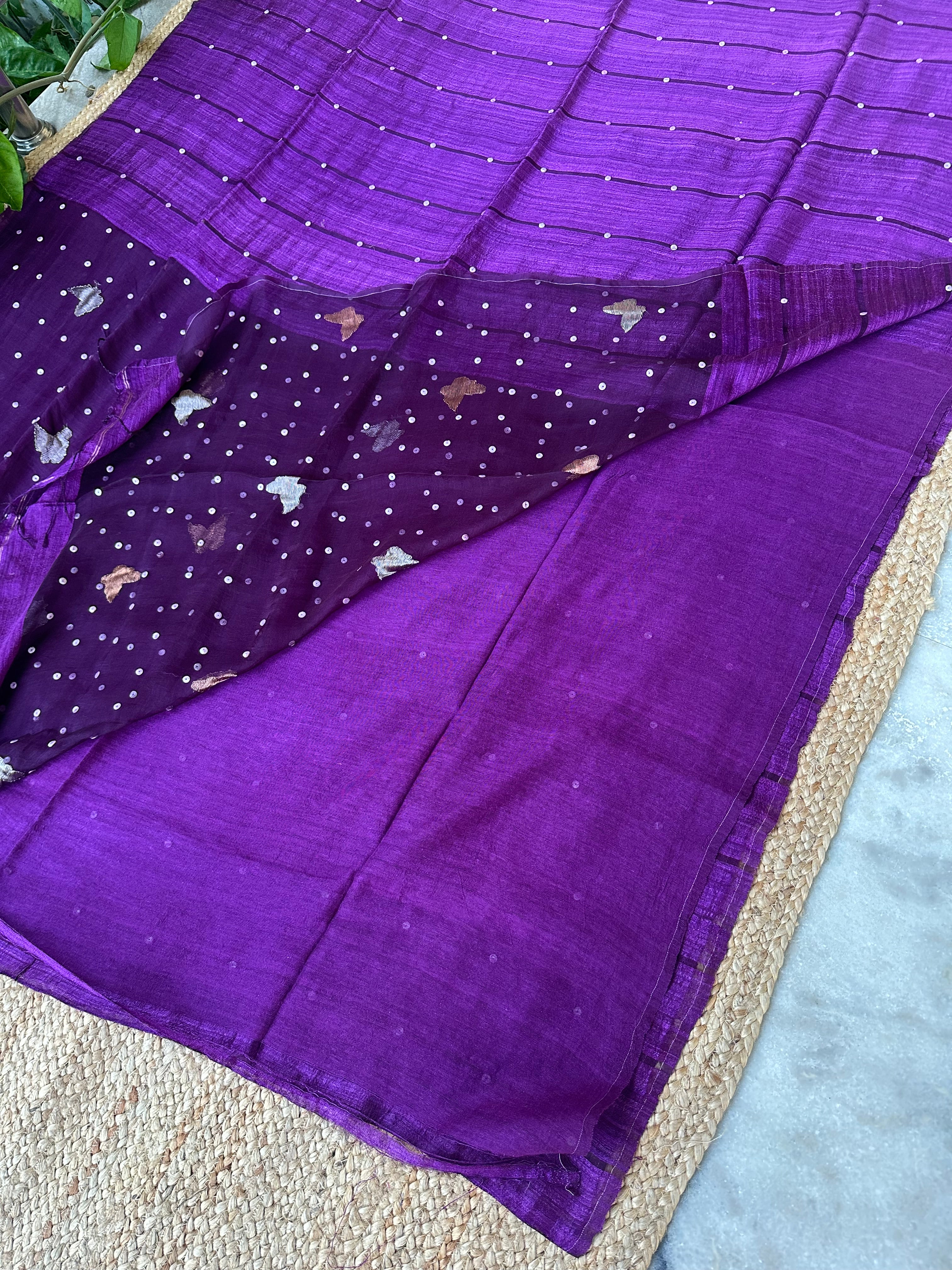 Dark Purple Pure Matka Silk Muslin Pallu Butterfly Handloom Saree