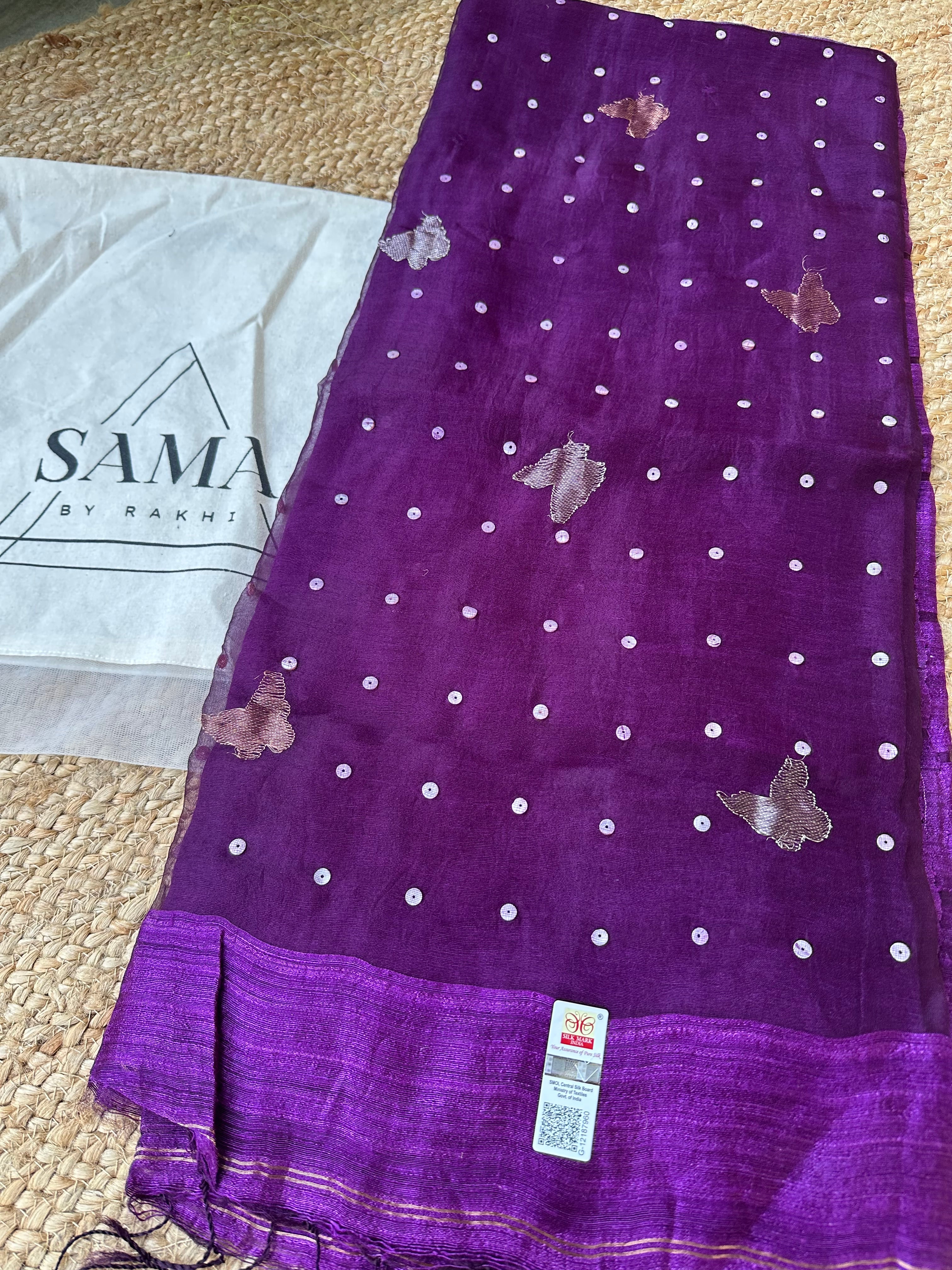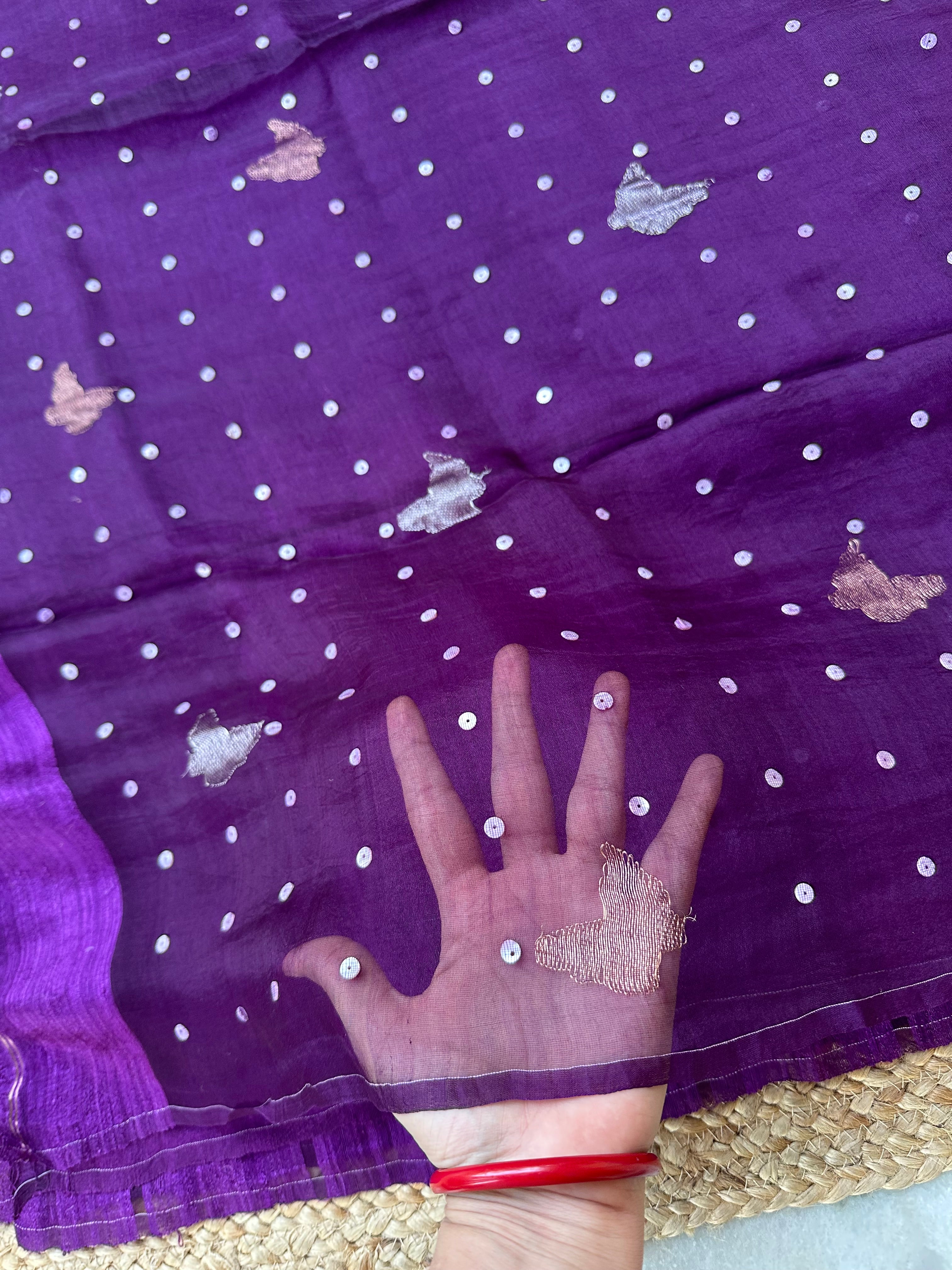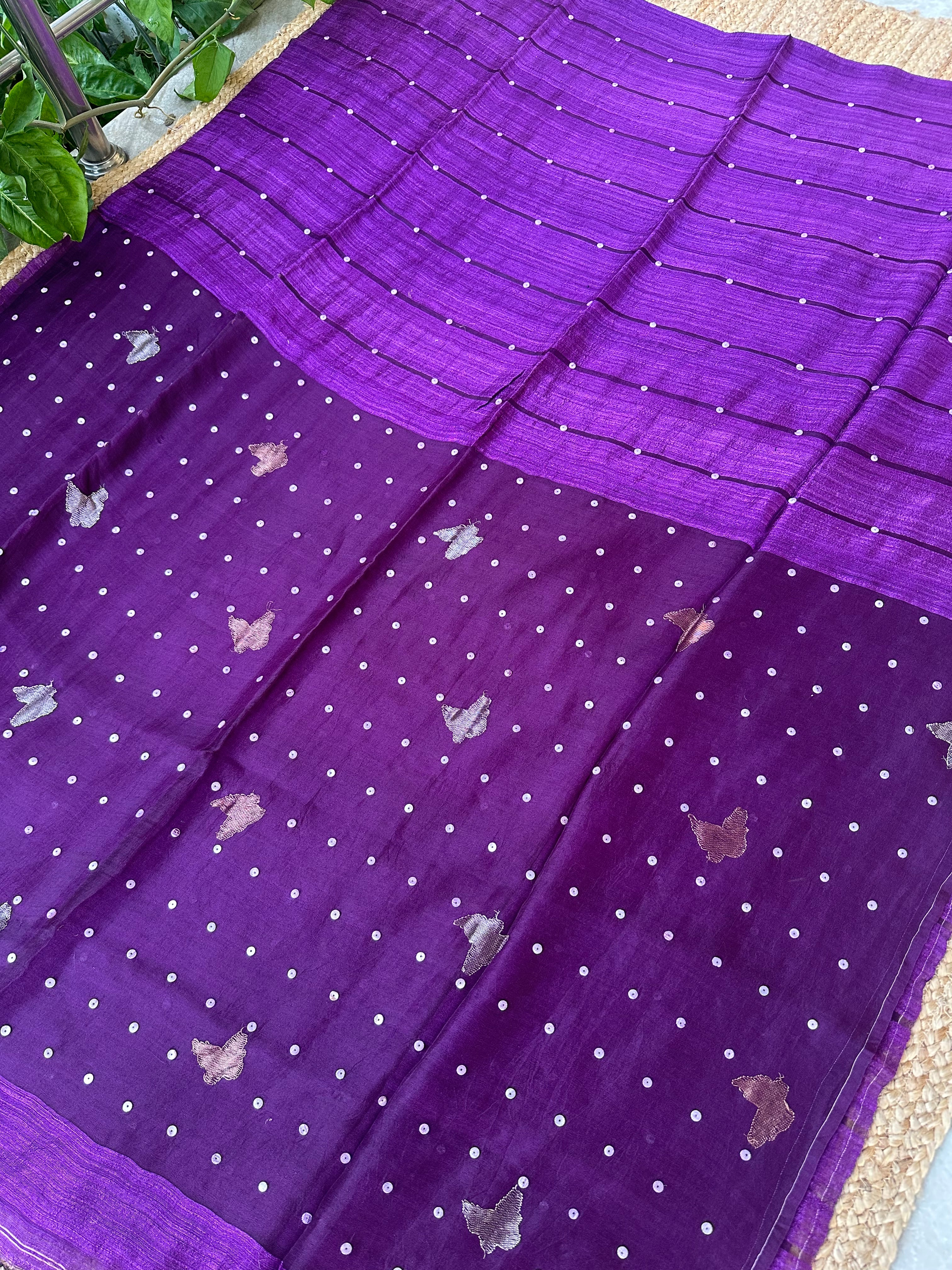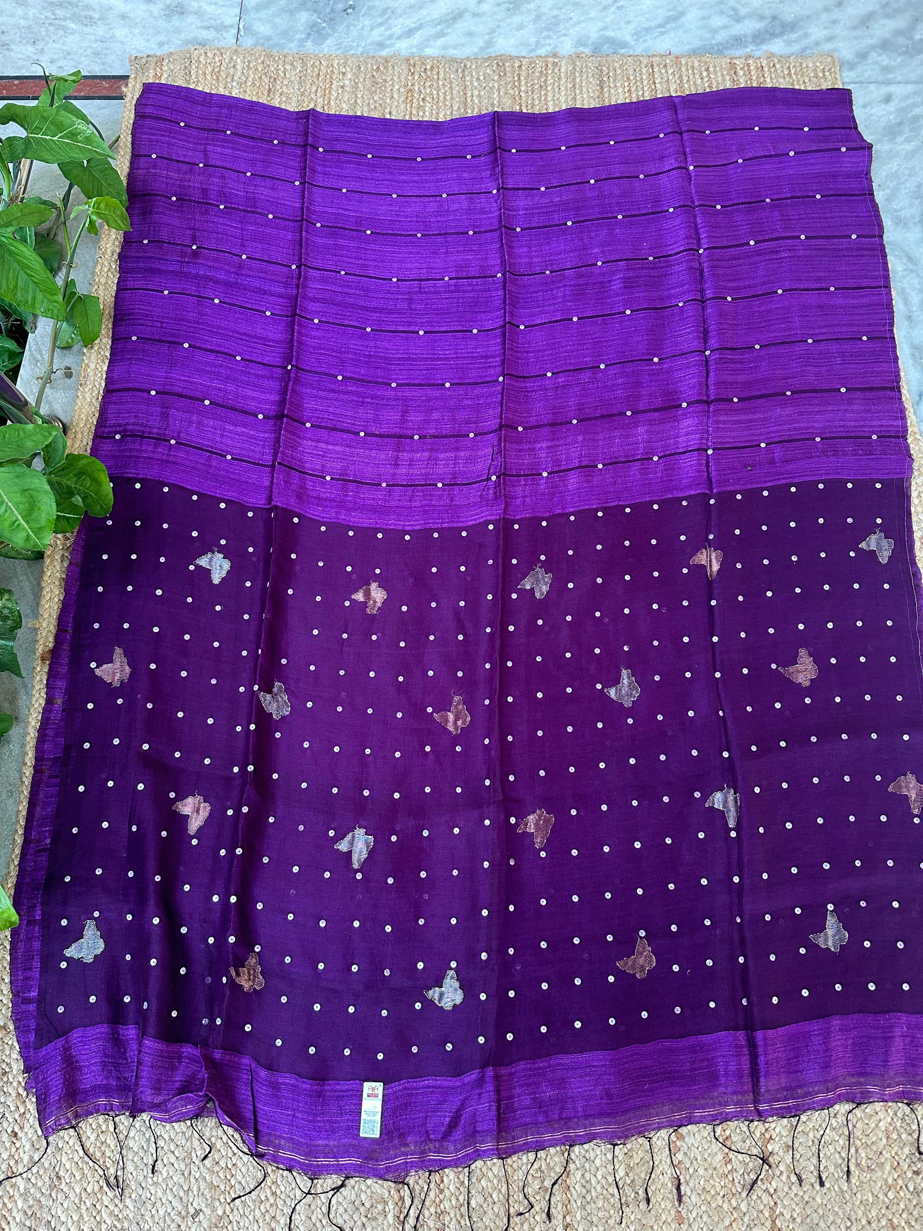 Dark Purple Pure Matka Silk Muslin Pallu Butterfly Handloom Saree