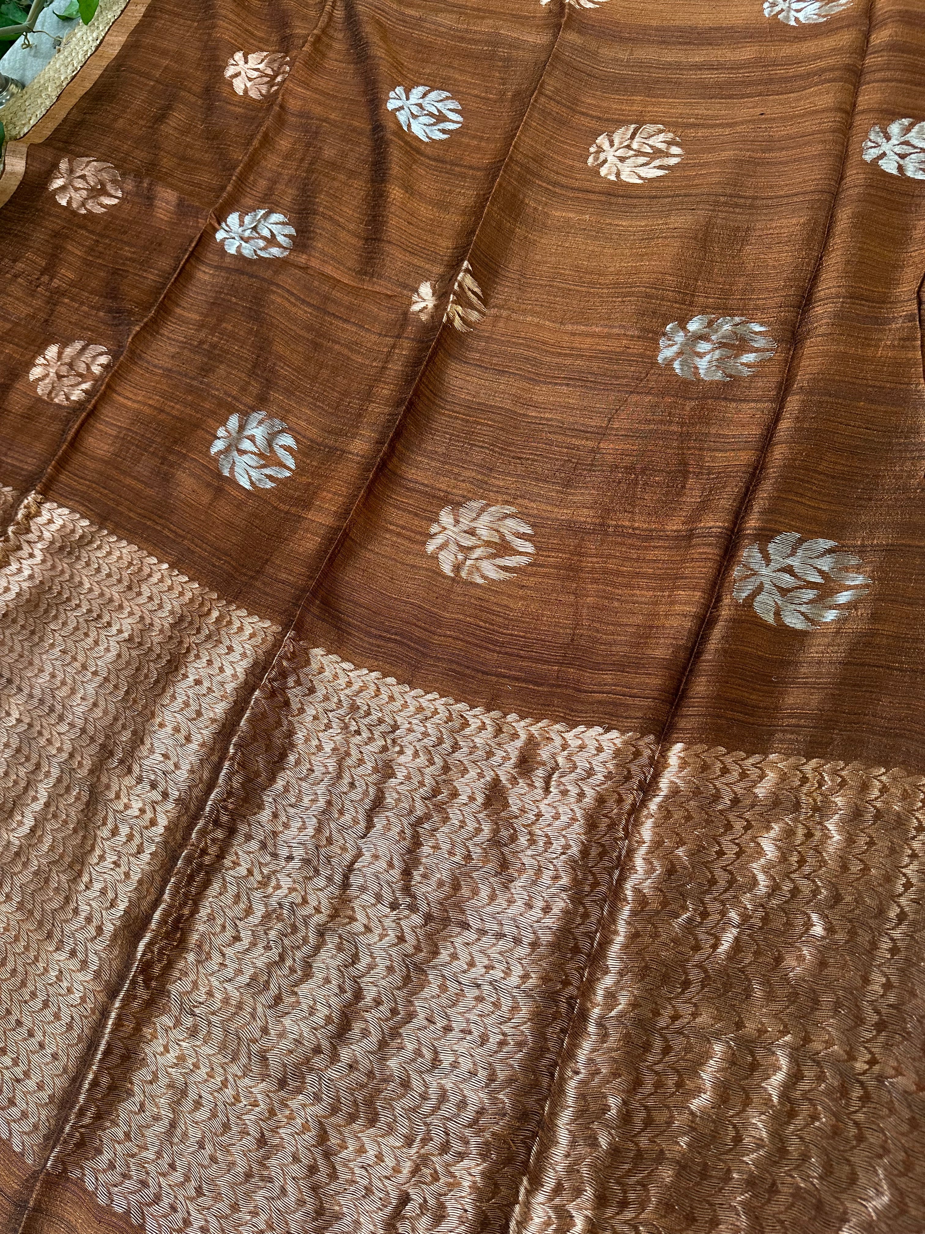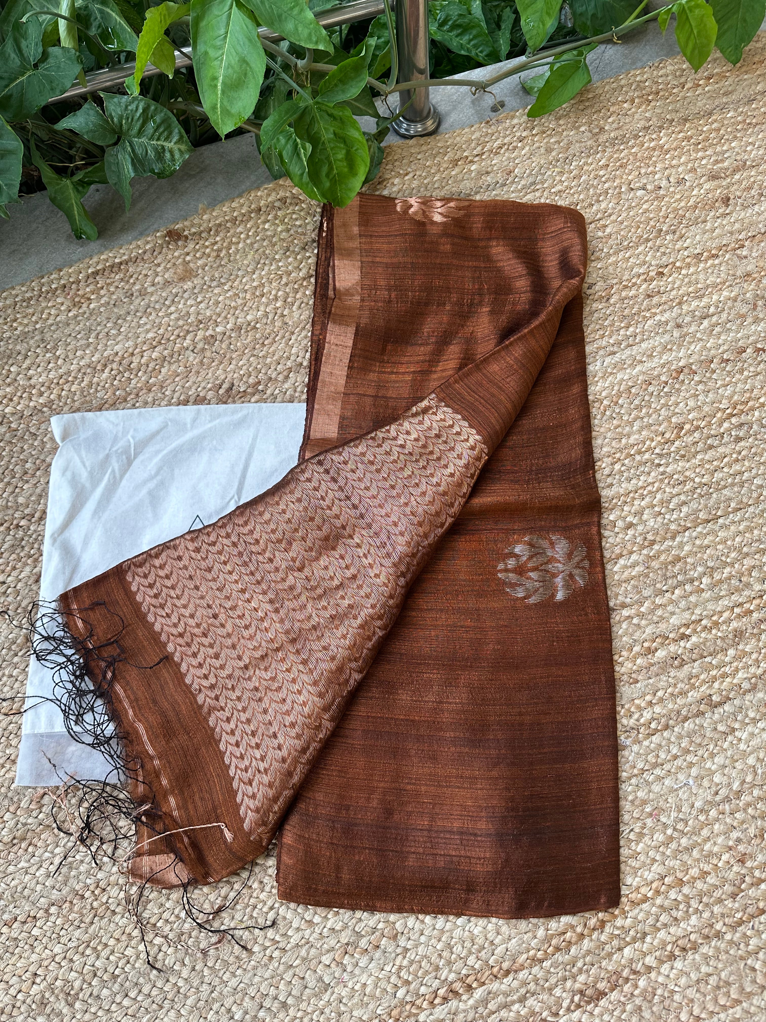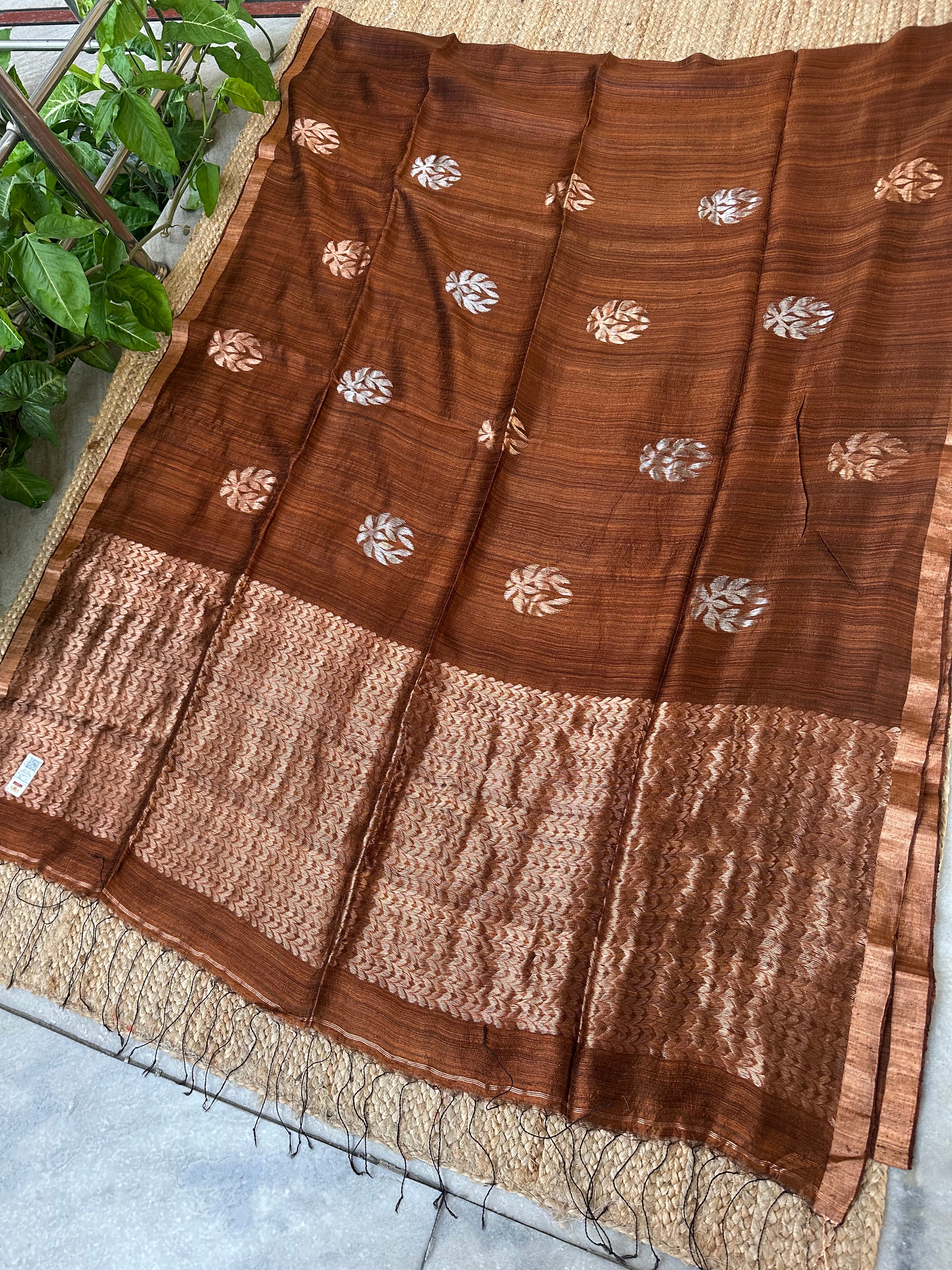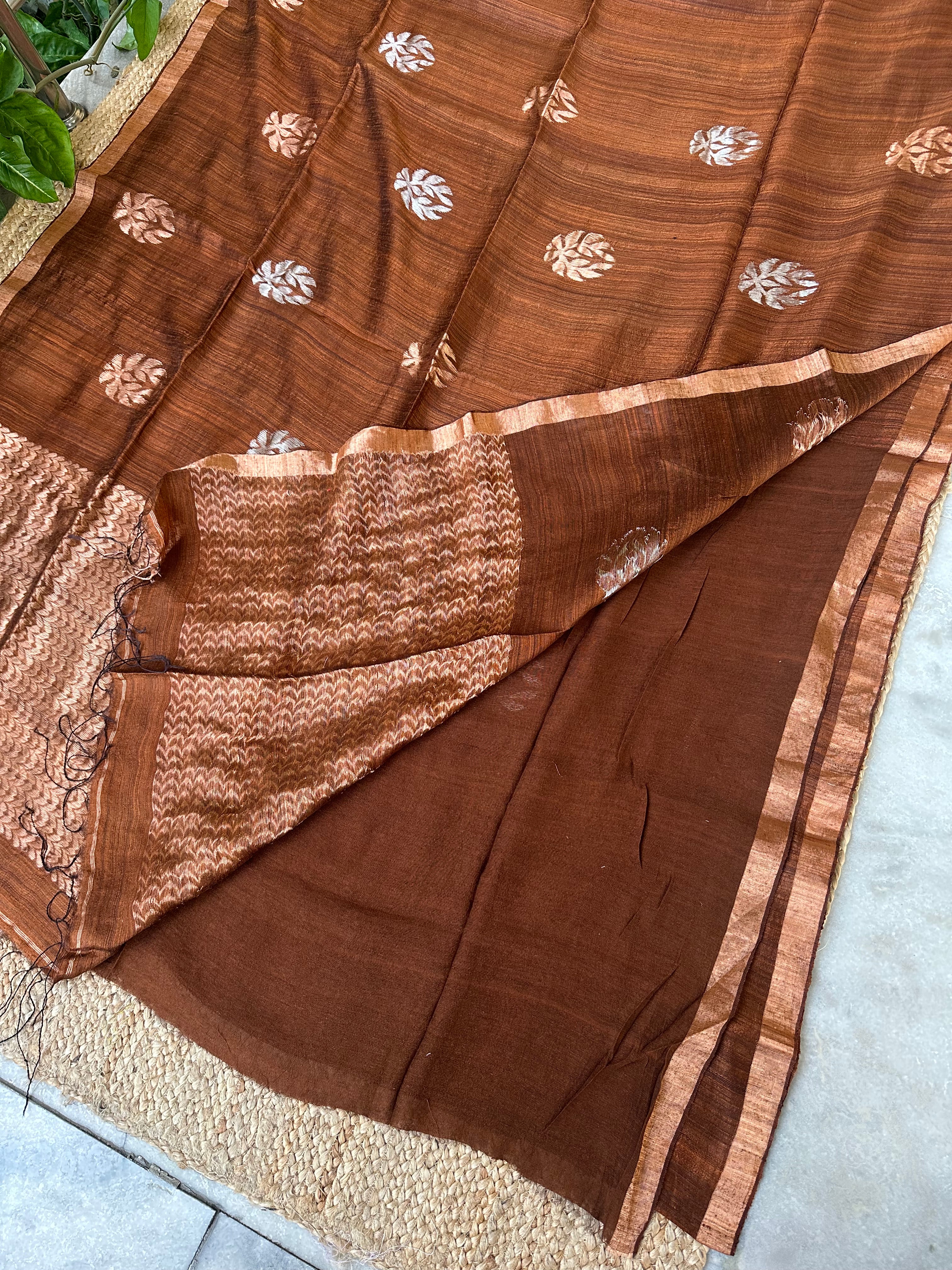 Chocolate Brown Tusser Jamdani Handloom Saree with Silk mark