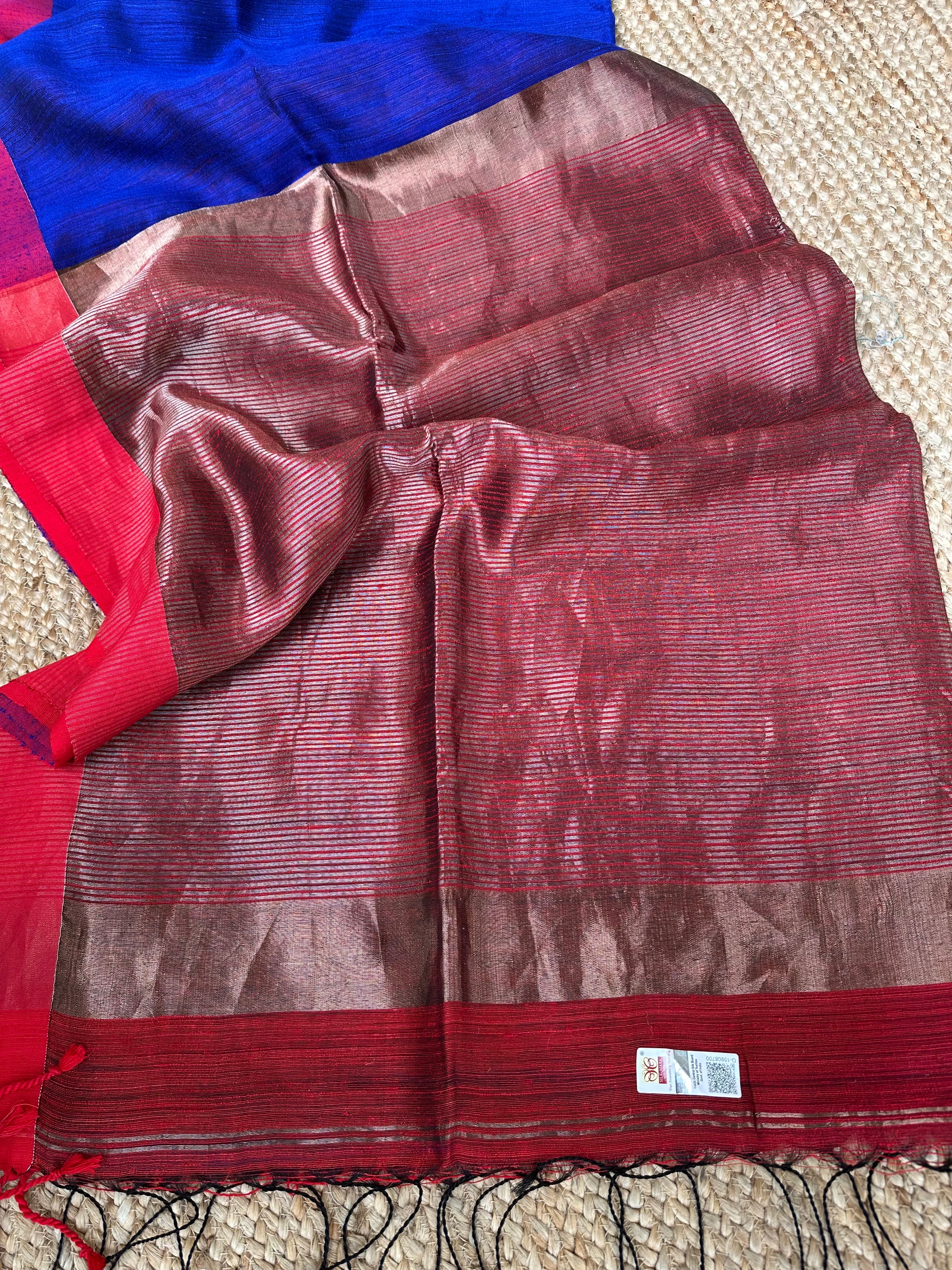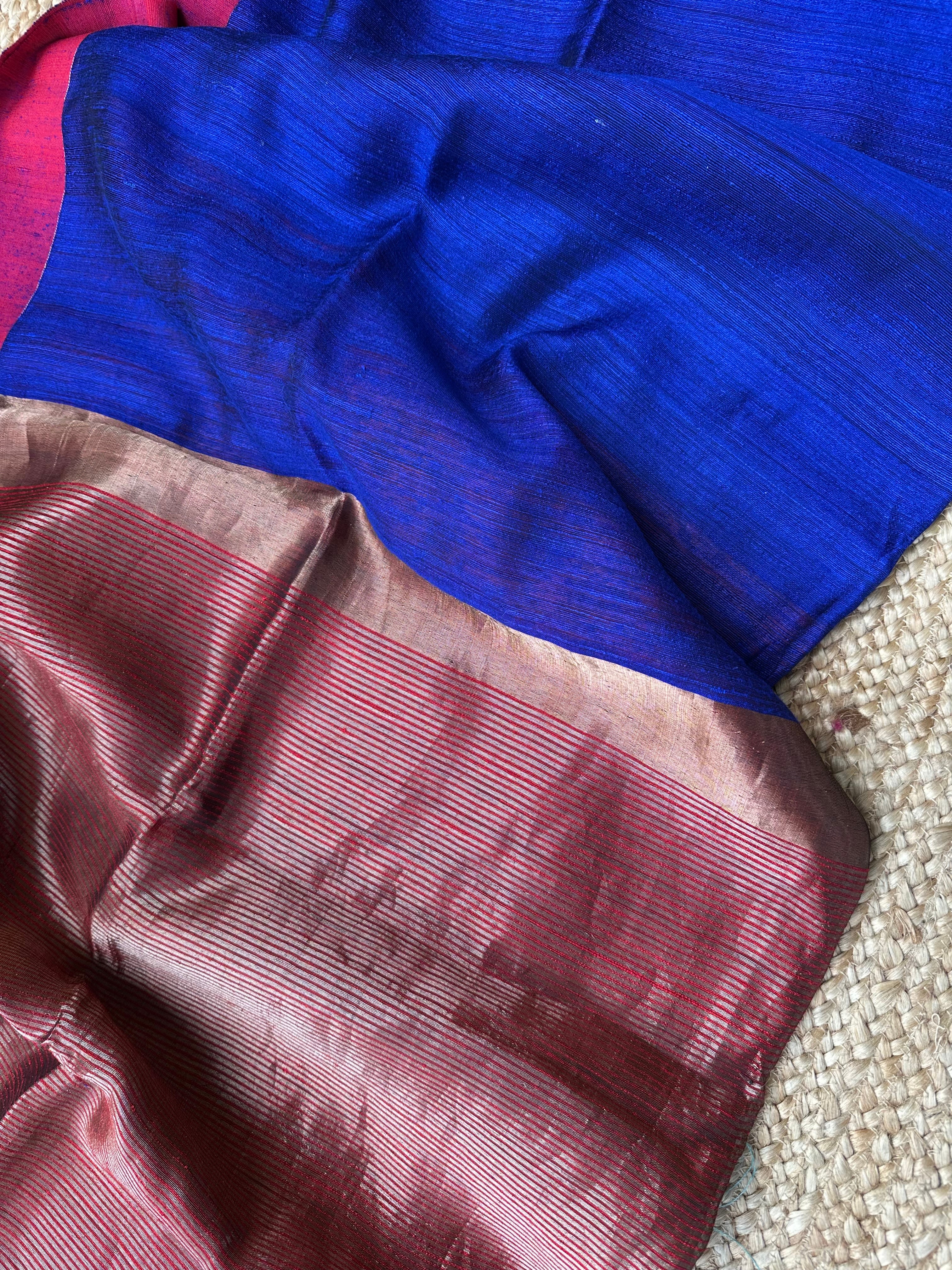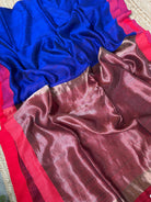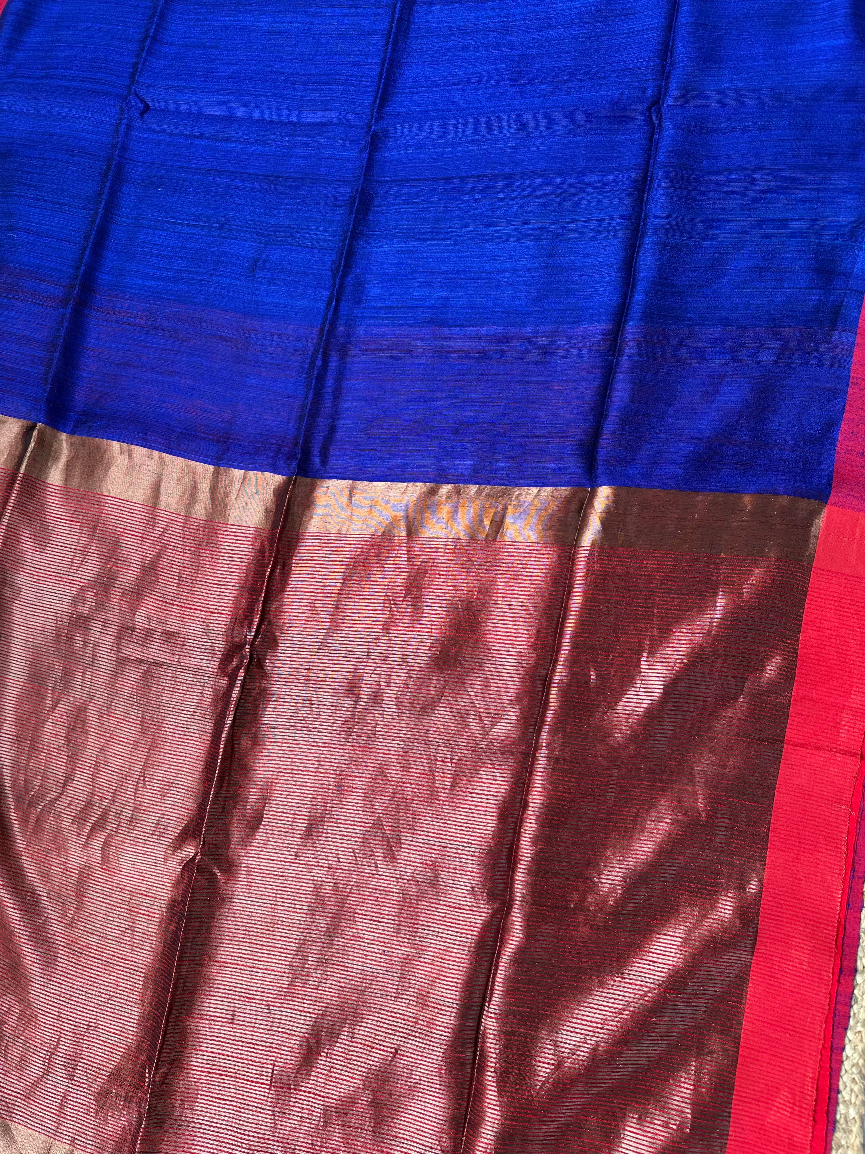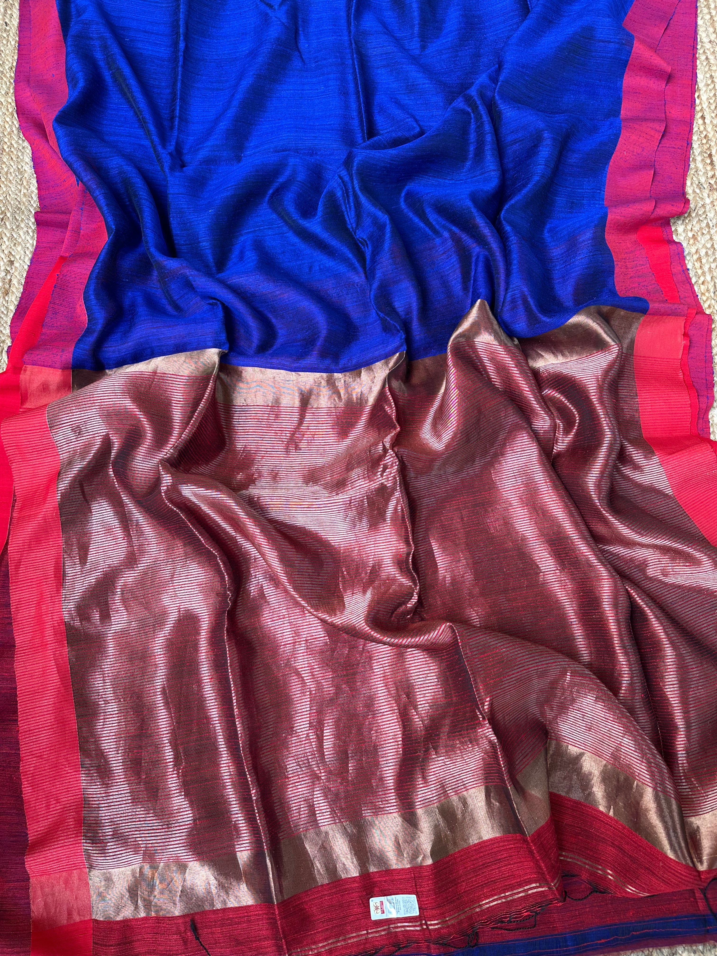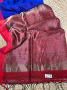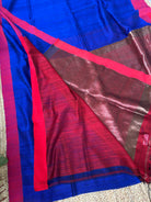 Royal Blue Pure Matka Silk Handloom Saree with Red zari Pallu and borders