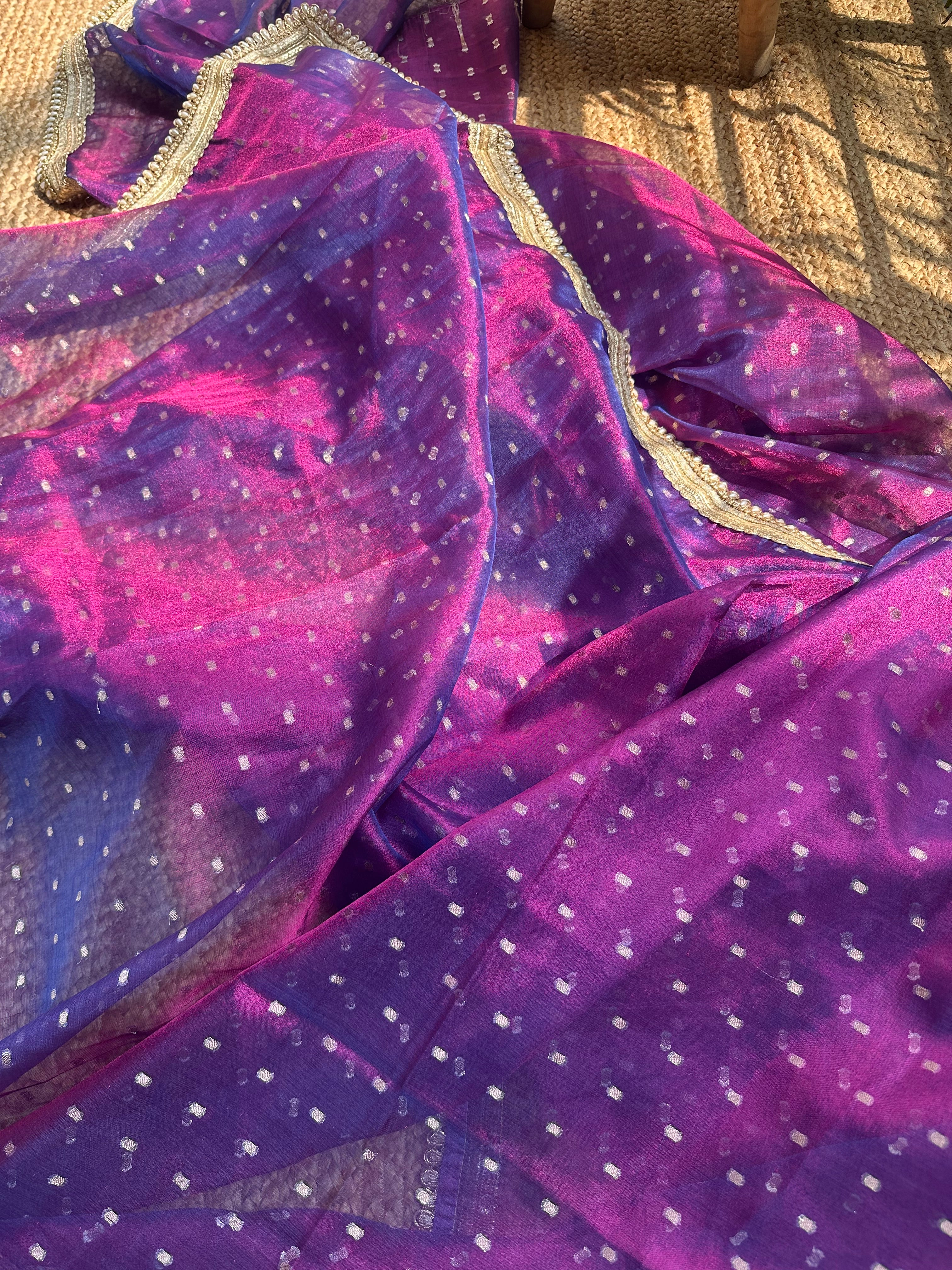 Purple Pink Semi Tissue Kora Saree