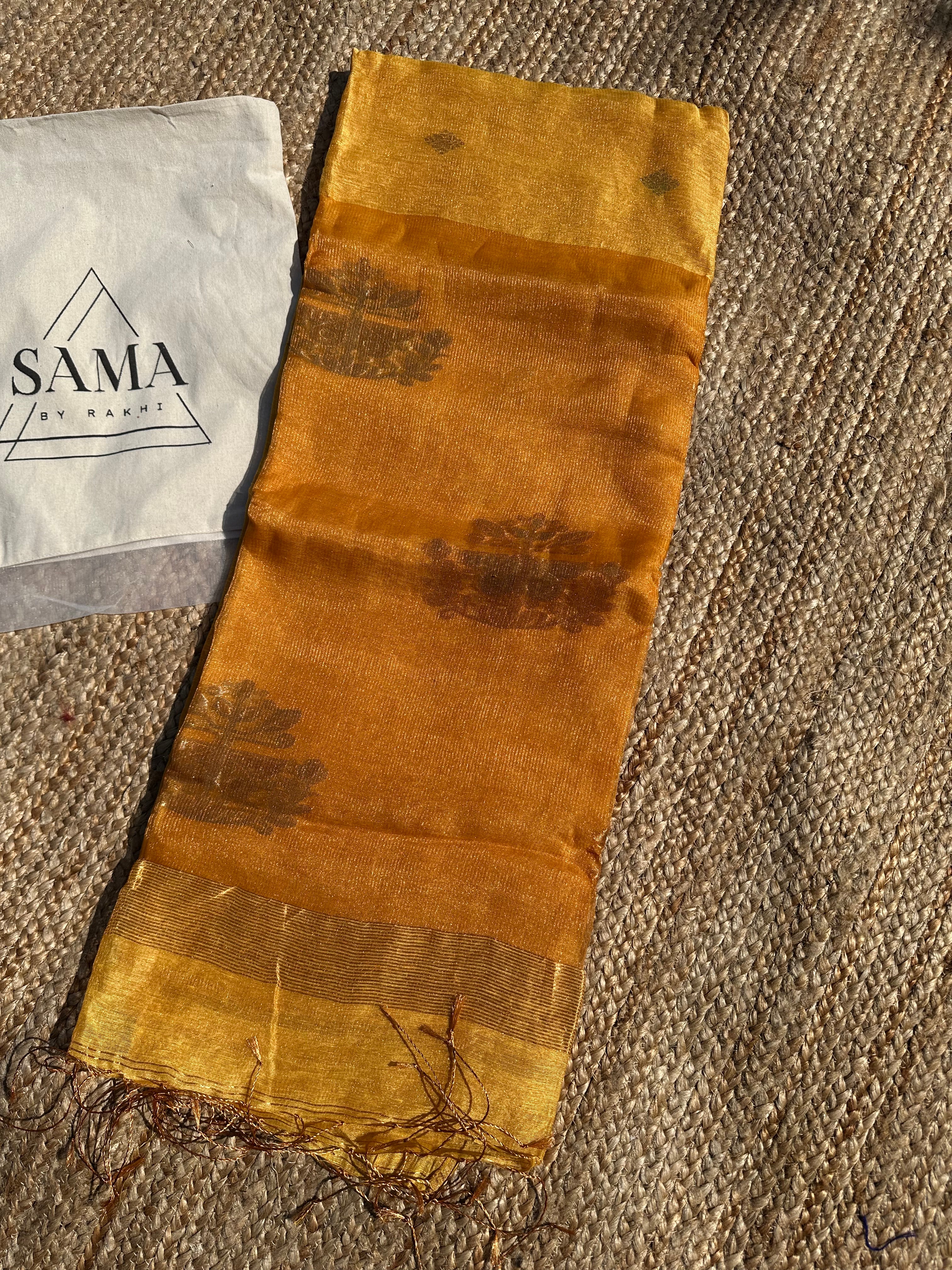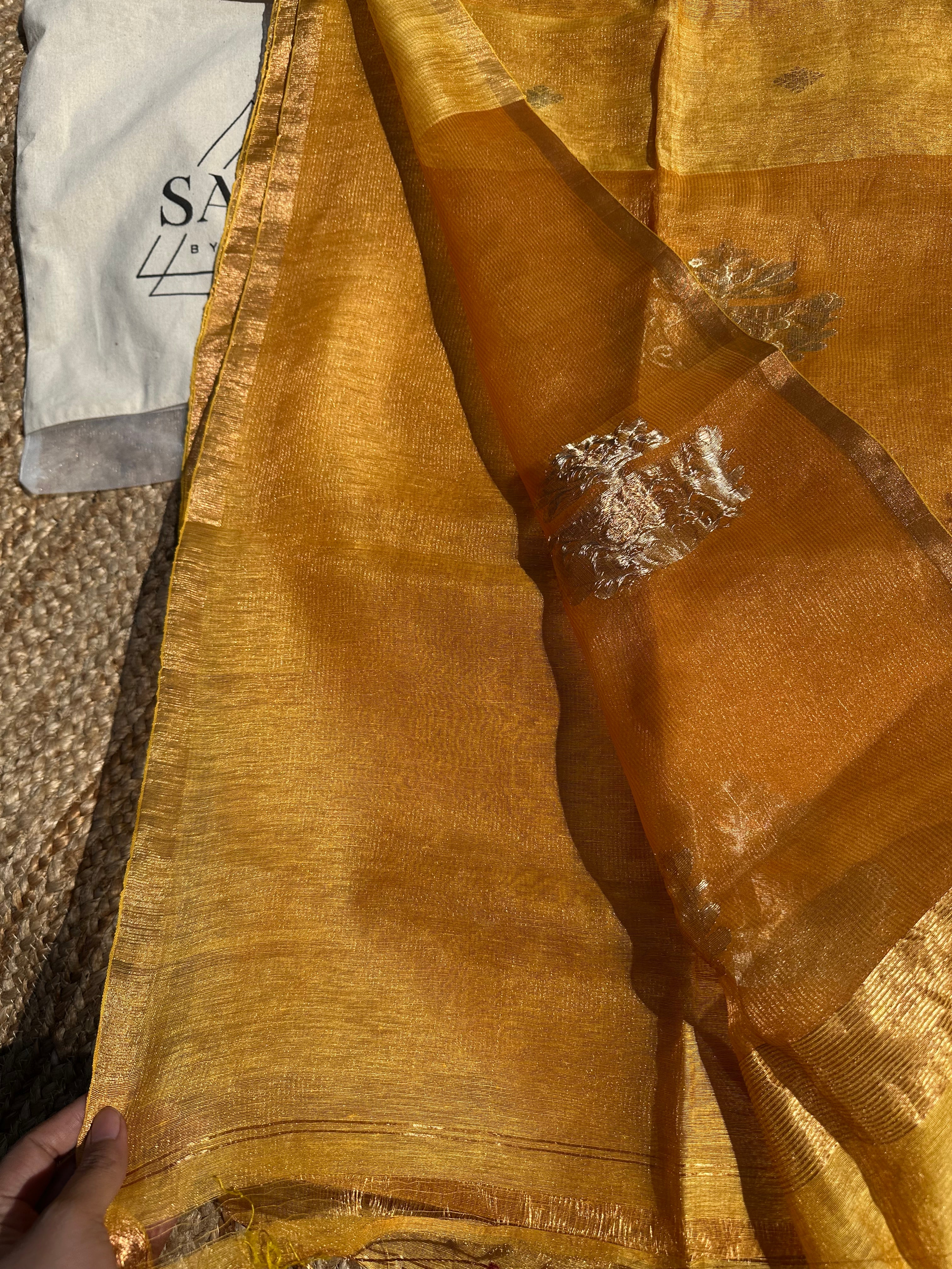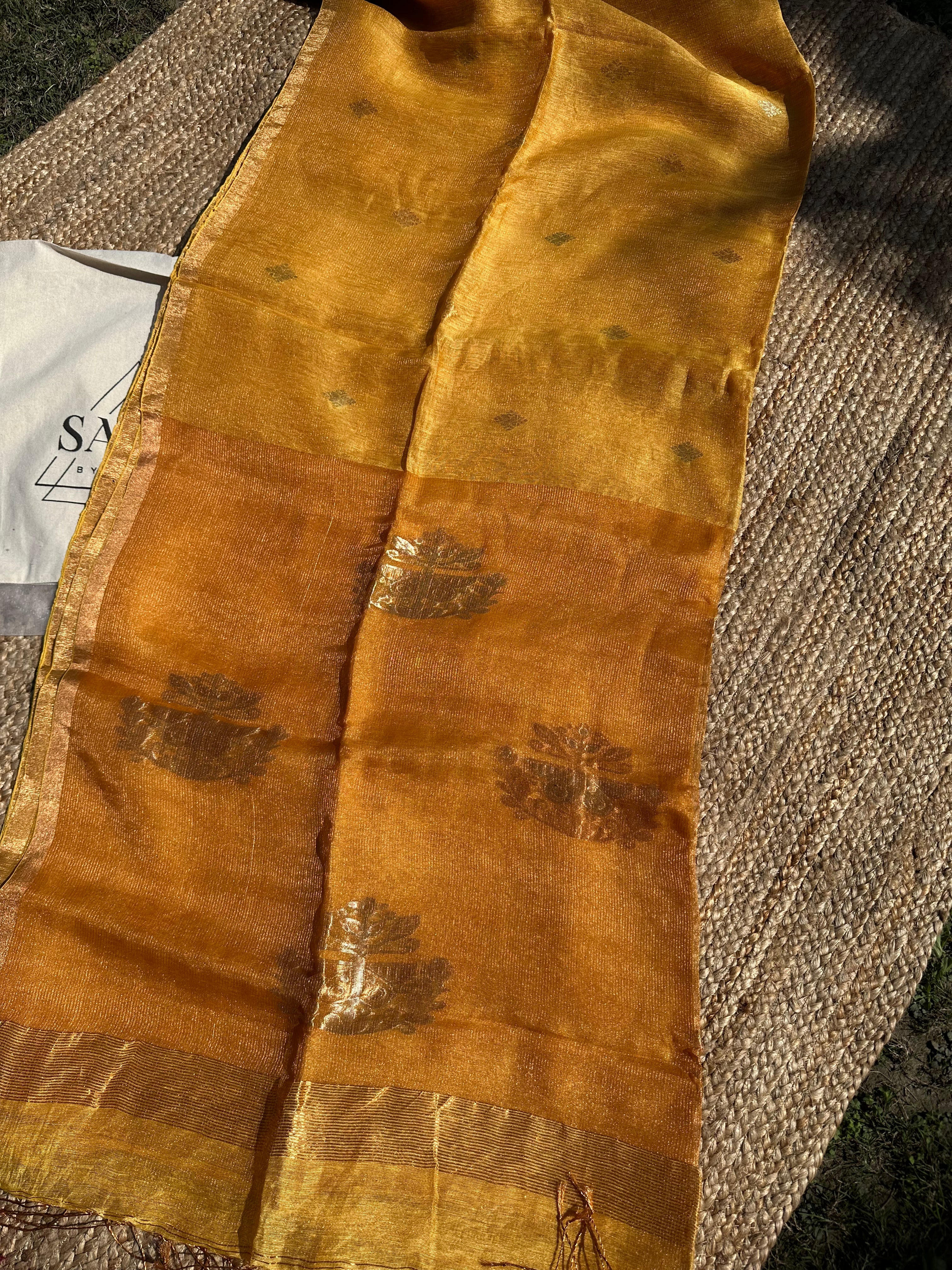 Yellow Linen Tissue Handloom Paithani Jamdani Pallu Saree
