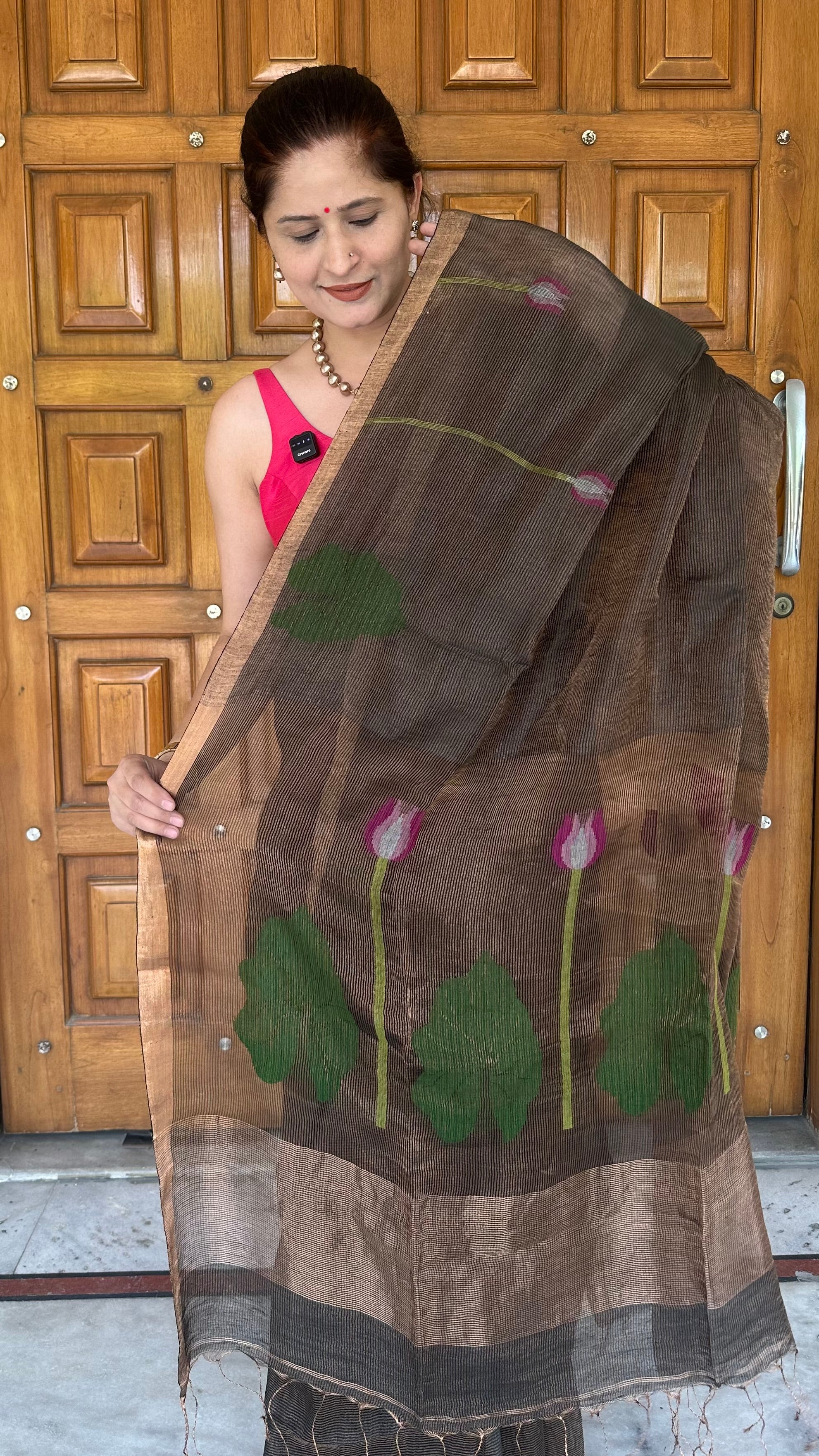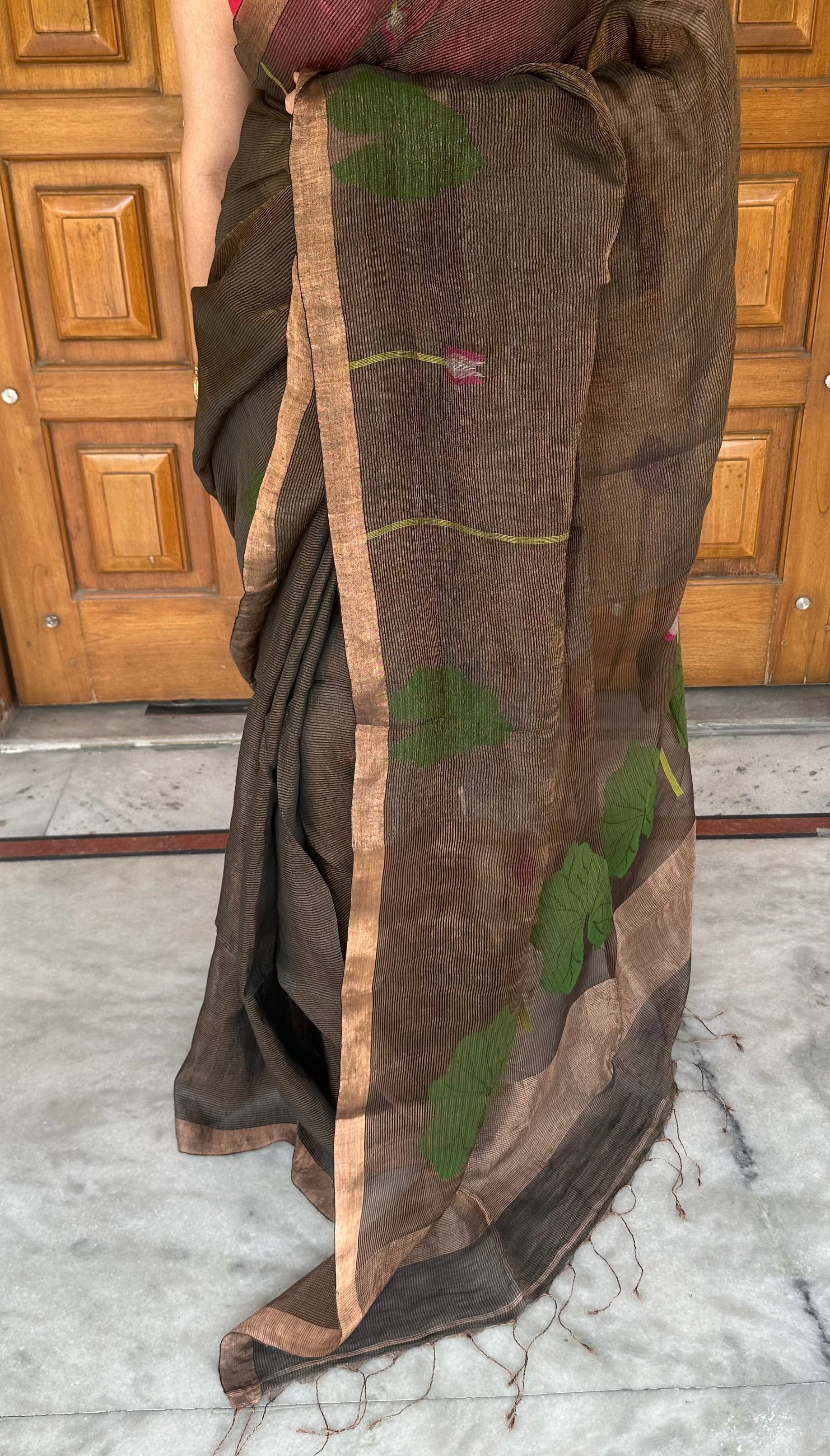 Linen Tissue Handloom Paithani Jamdani Pallu Saree- Brown