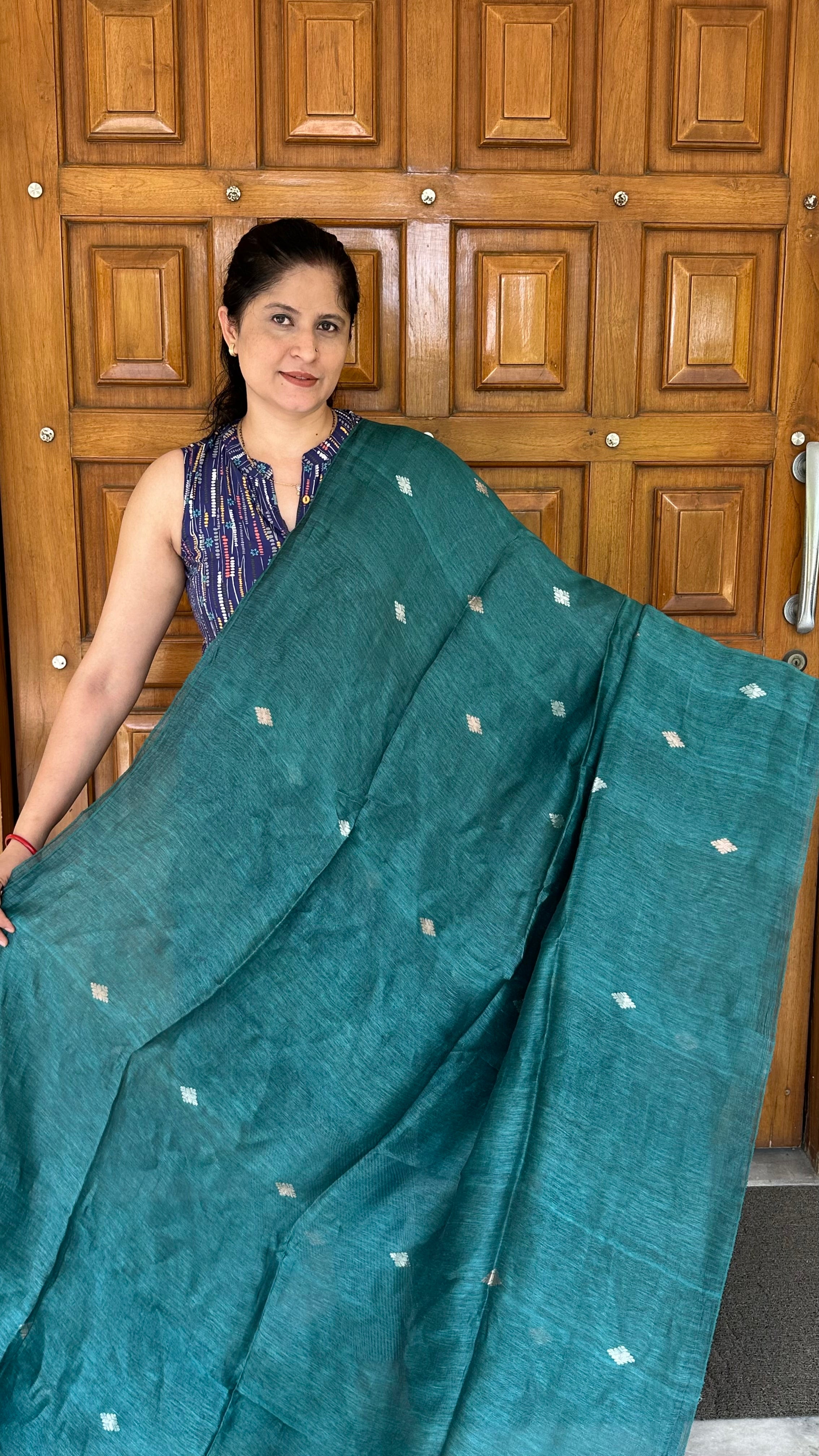 Teal Linen Tissue Muslin Pallu Handloom Saree