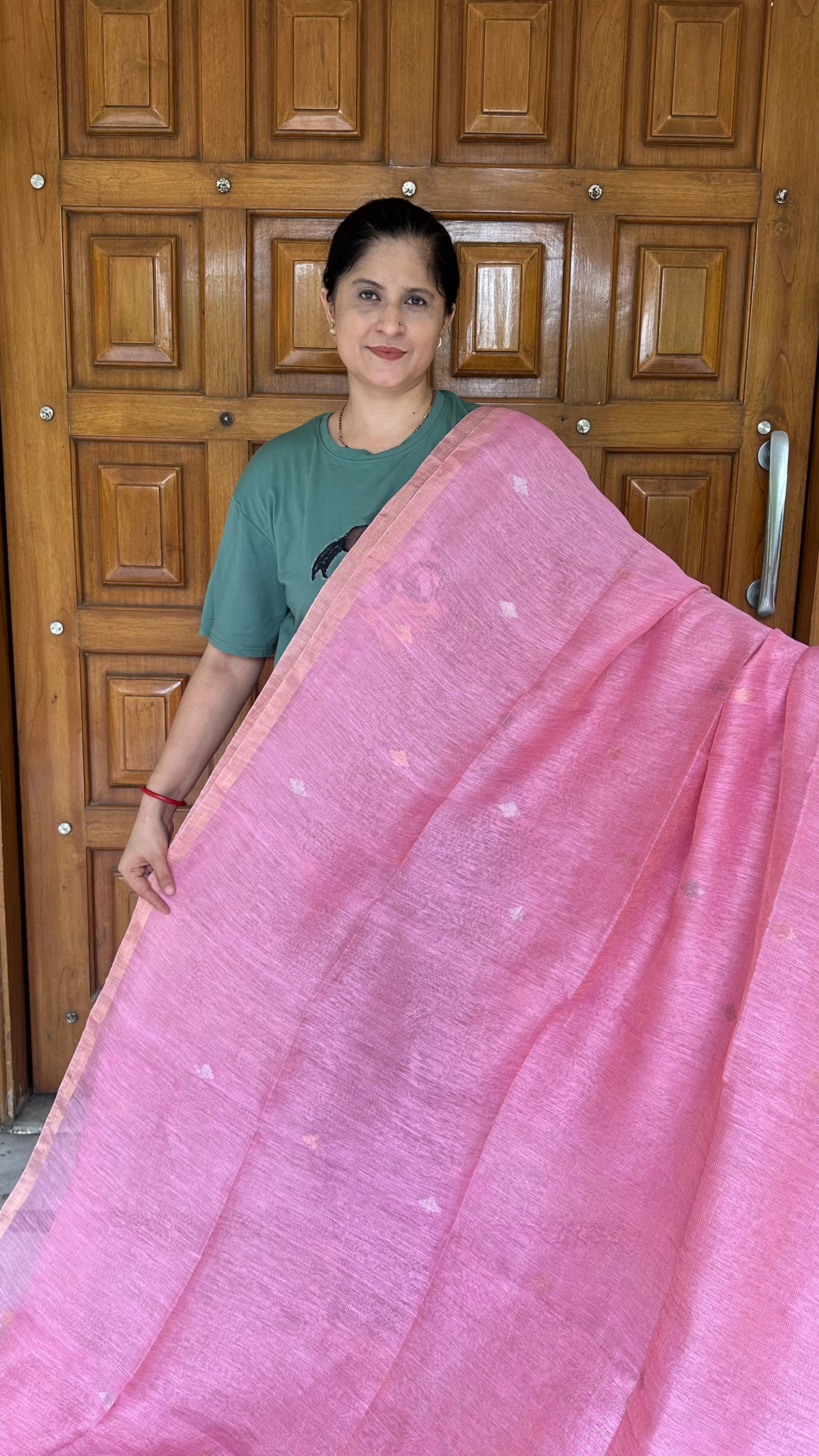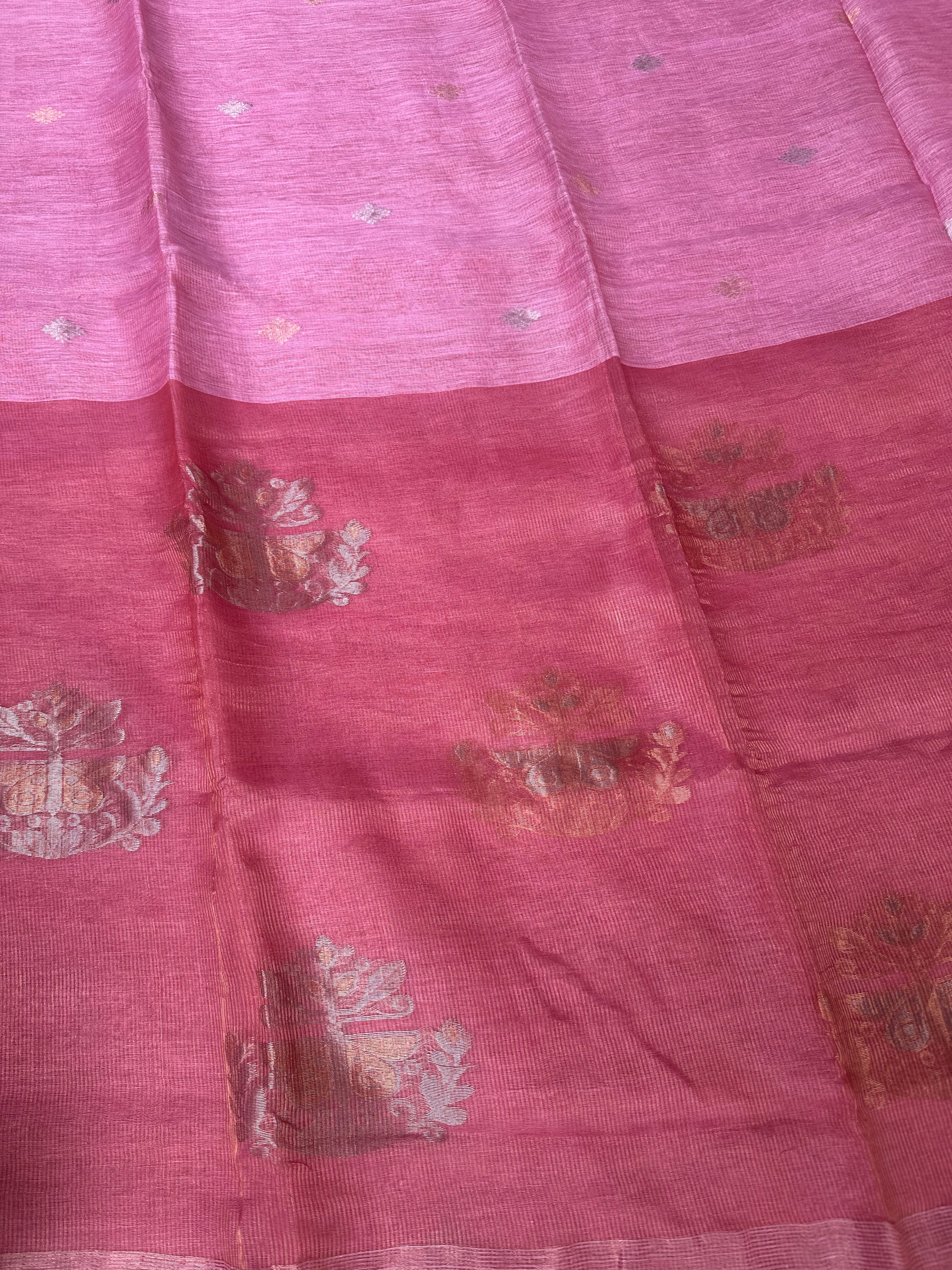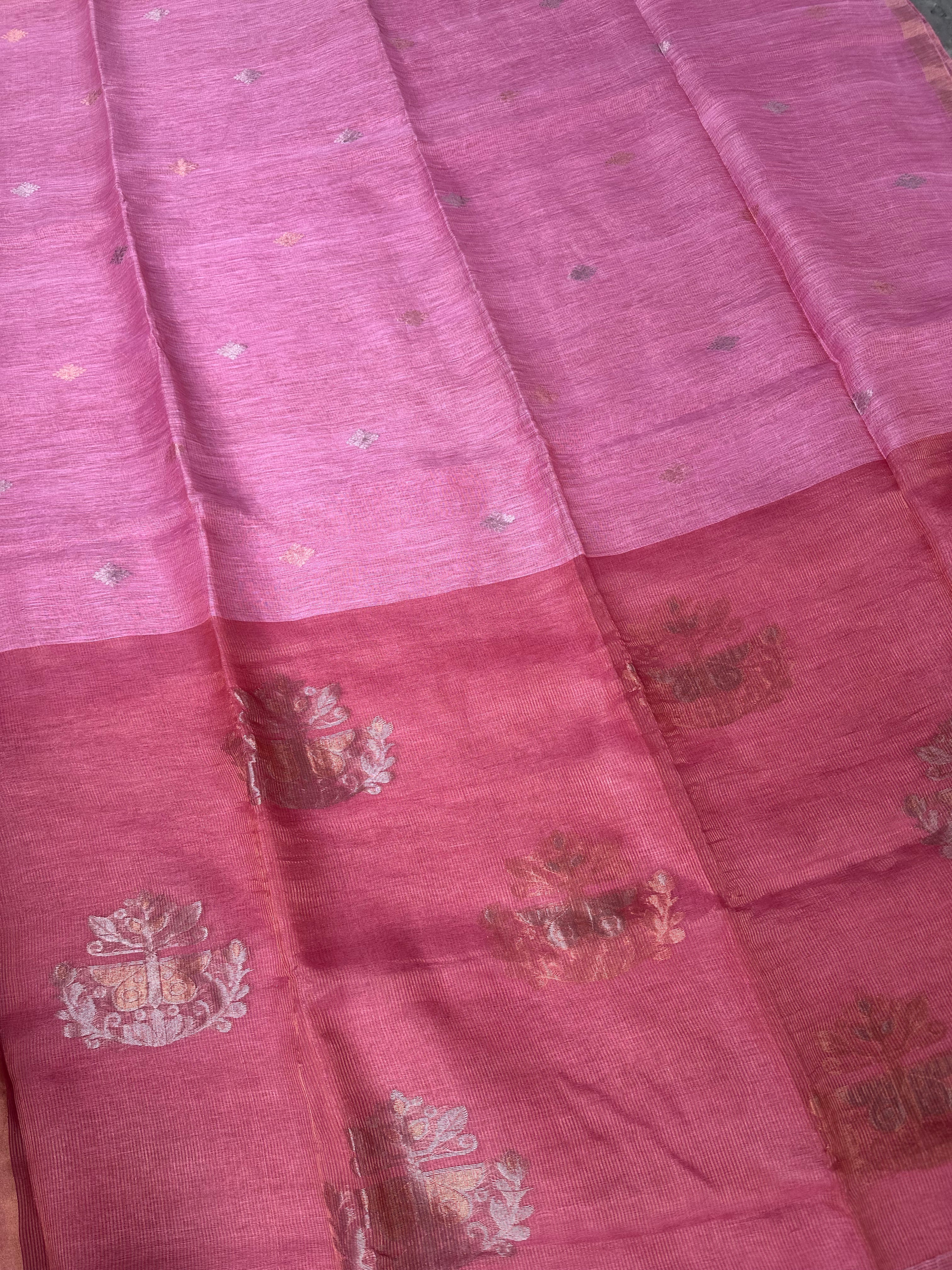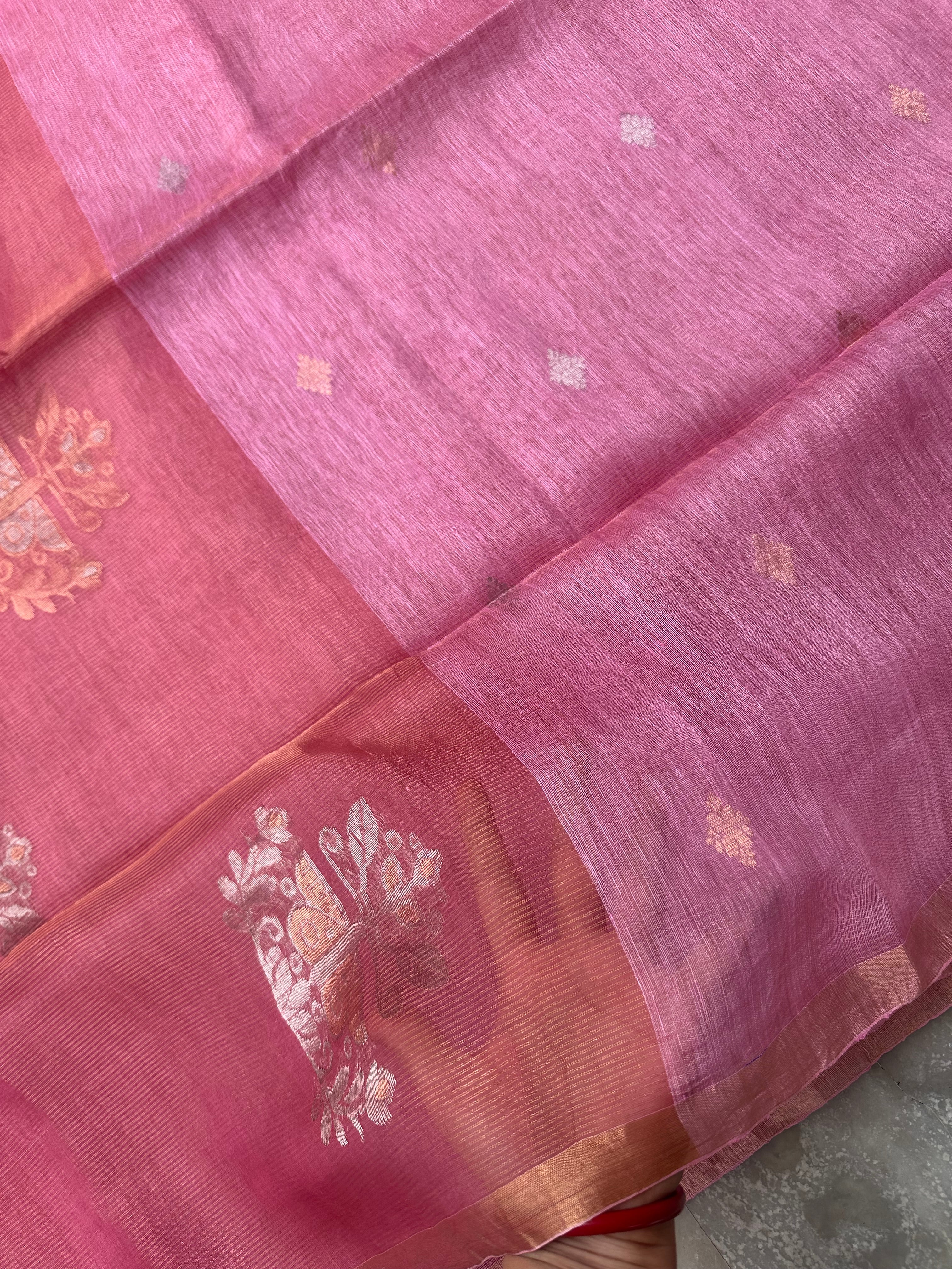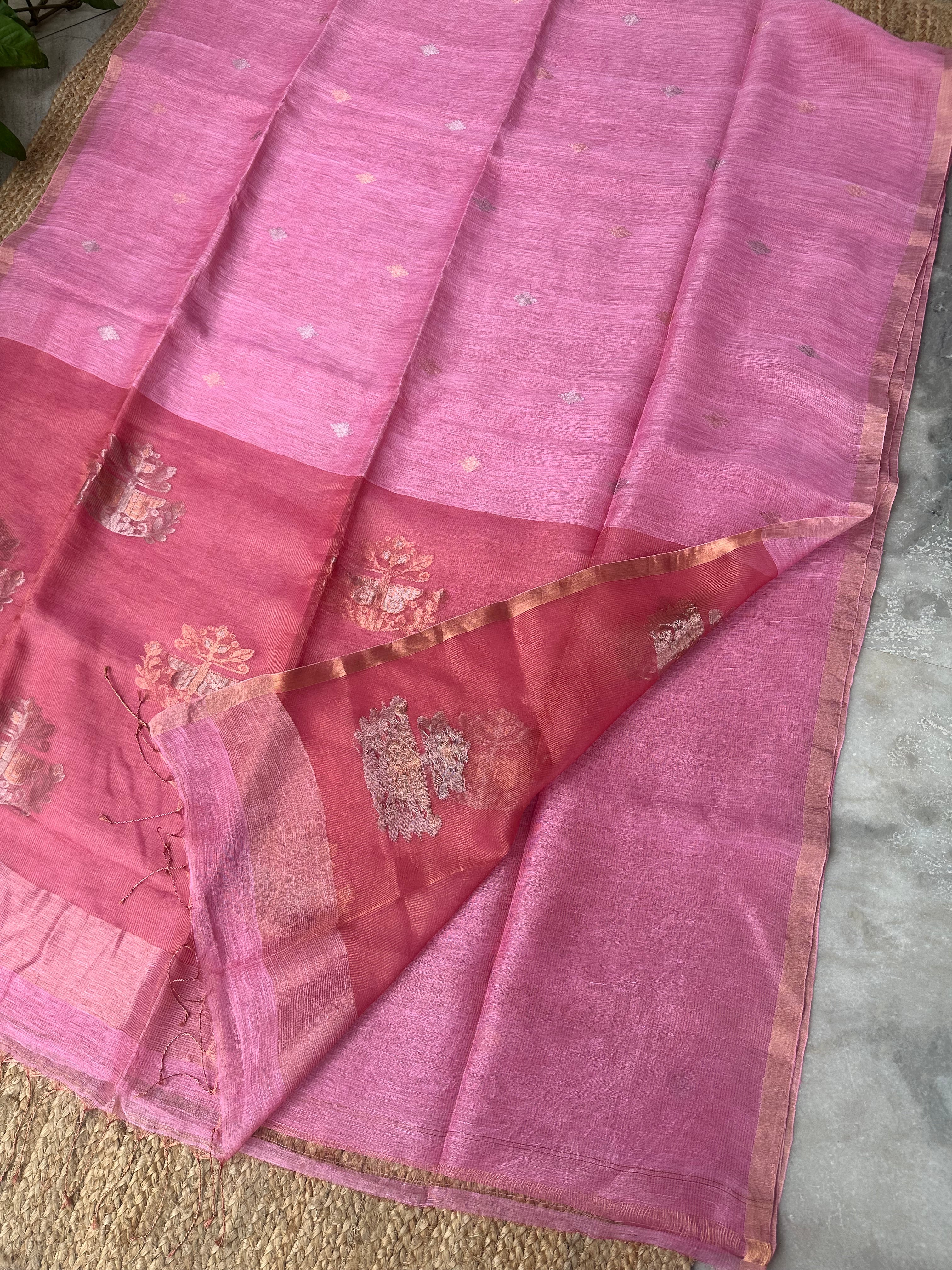 Light Pink Linen Tissue Muslin Pallu Handloom Saree
