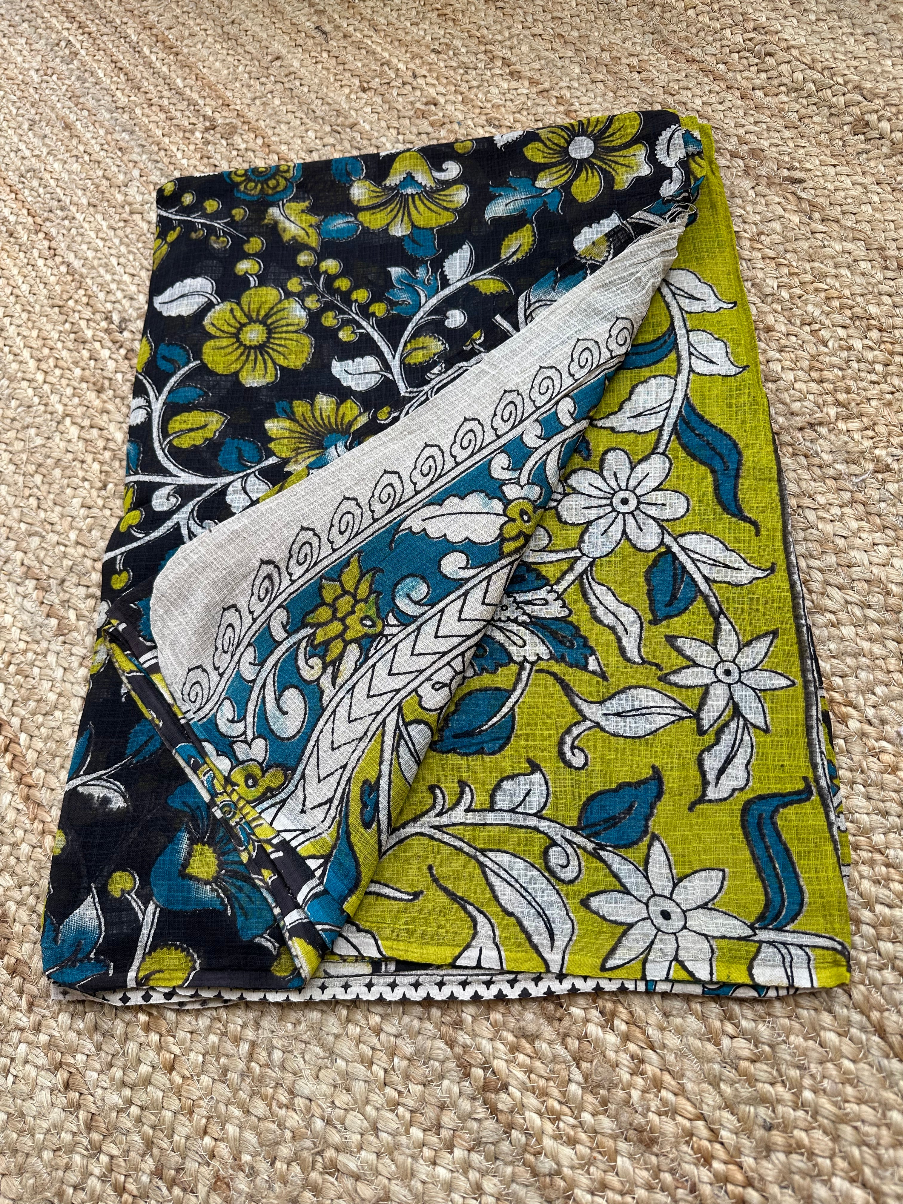 Handloom Cotton Sleeveless Lace Work checks Blouse (Green)