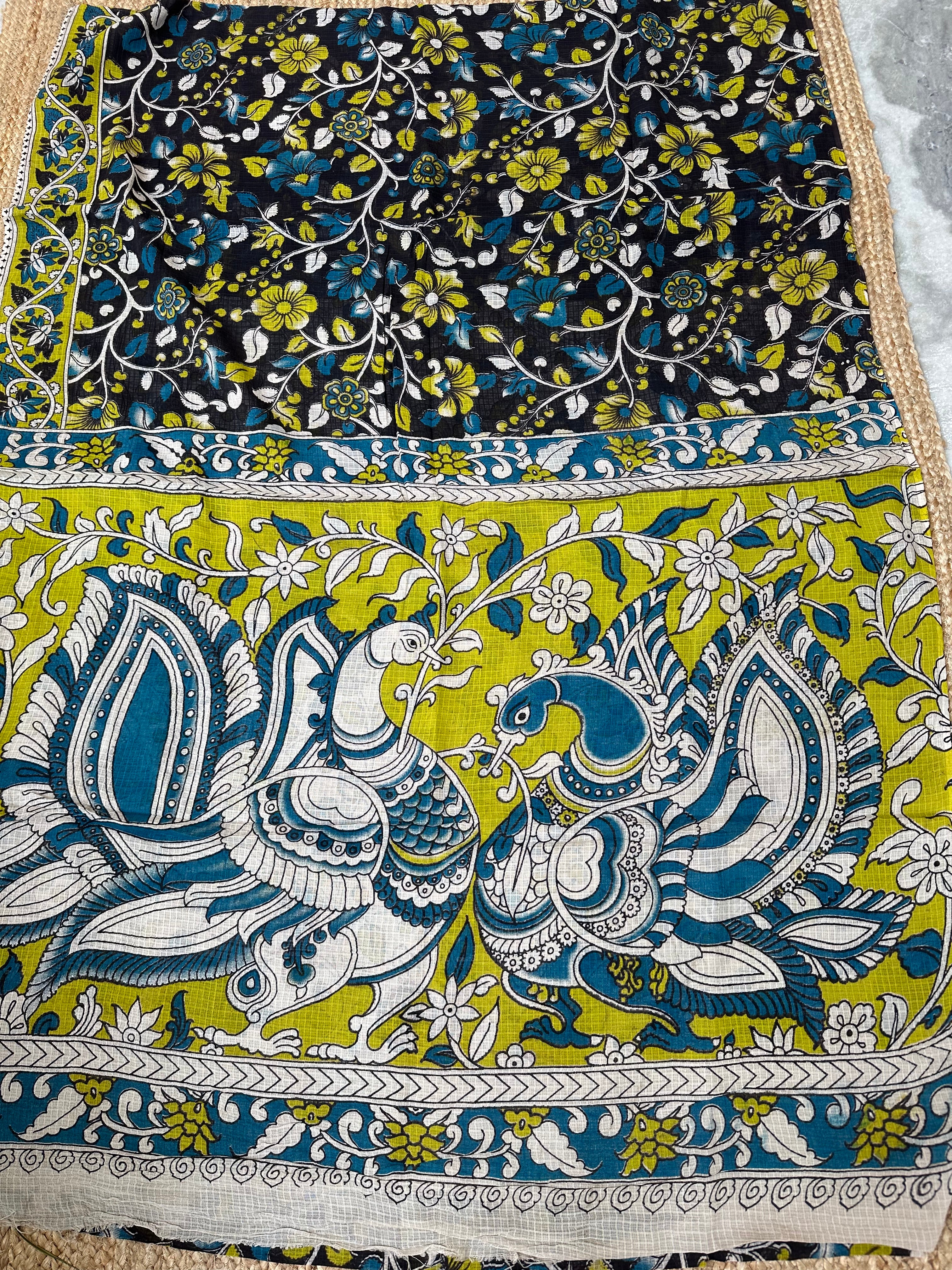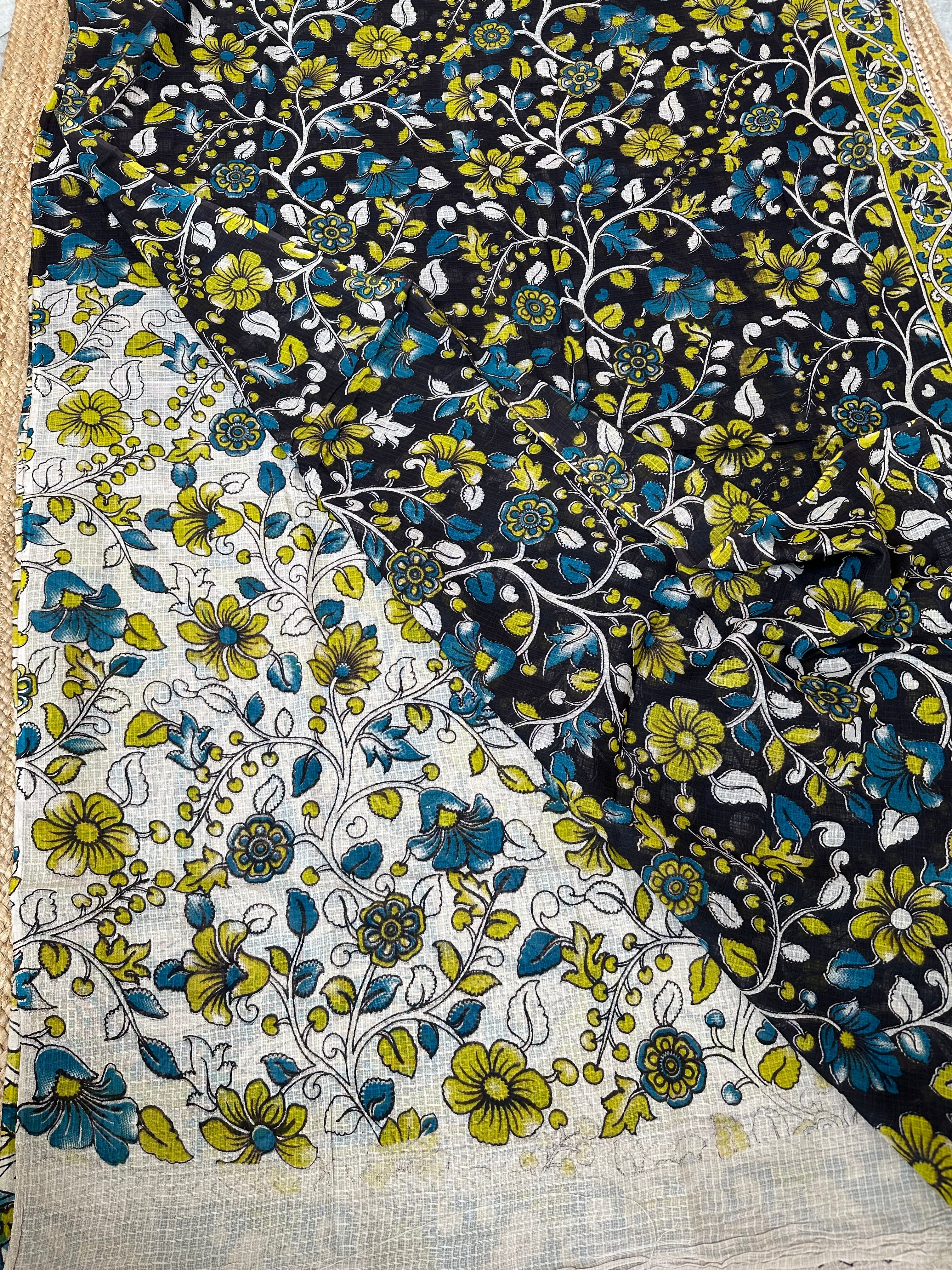 Linen Tissue Jamdani Saree (Bluish Golden)