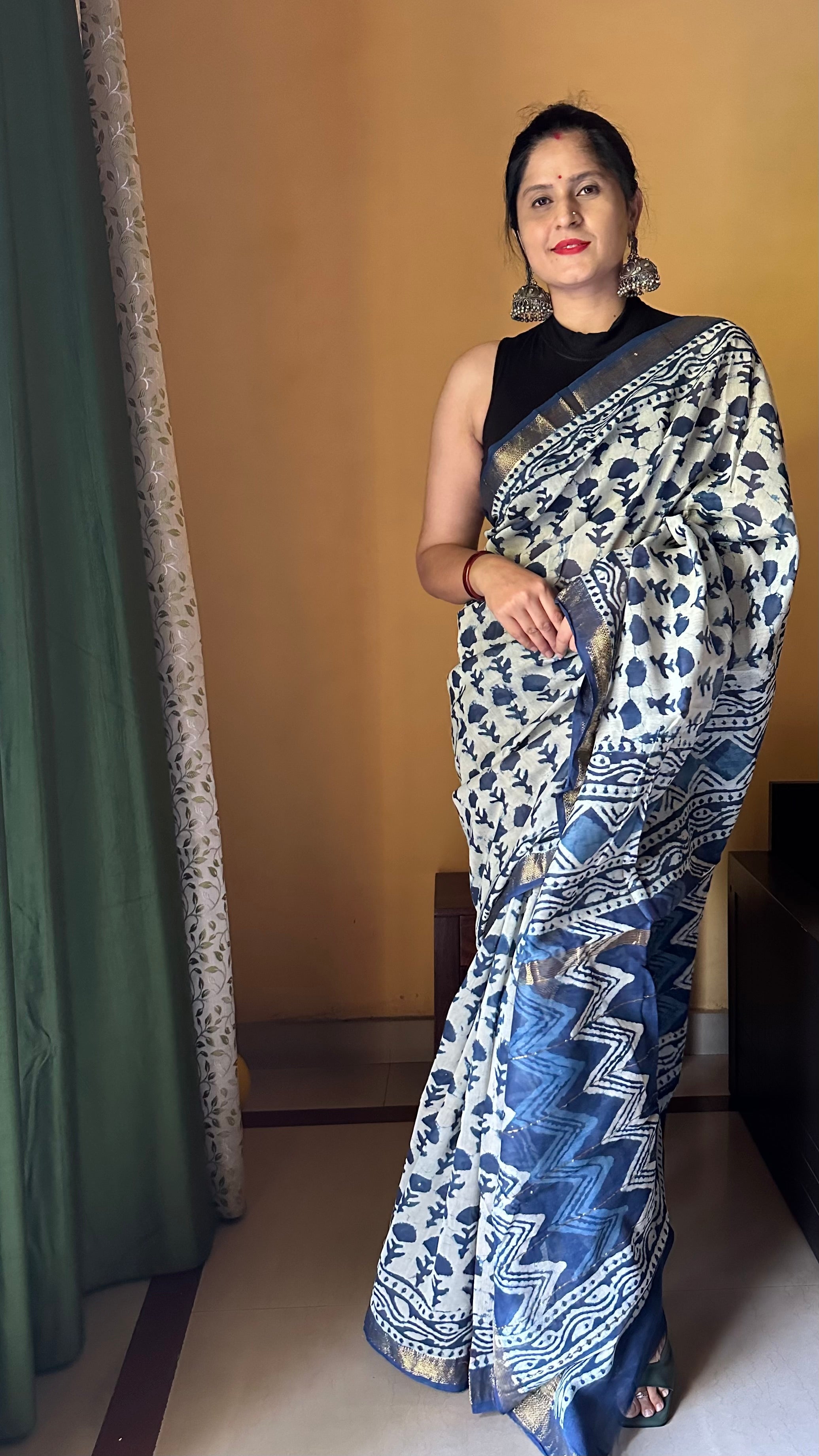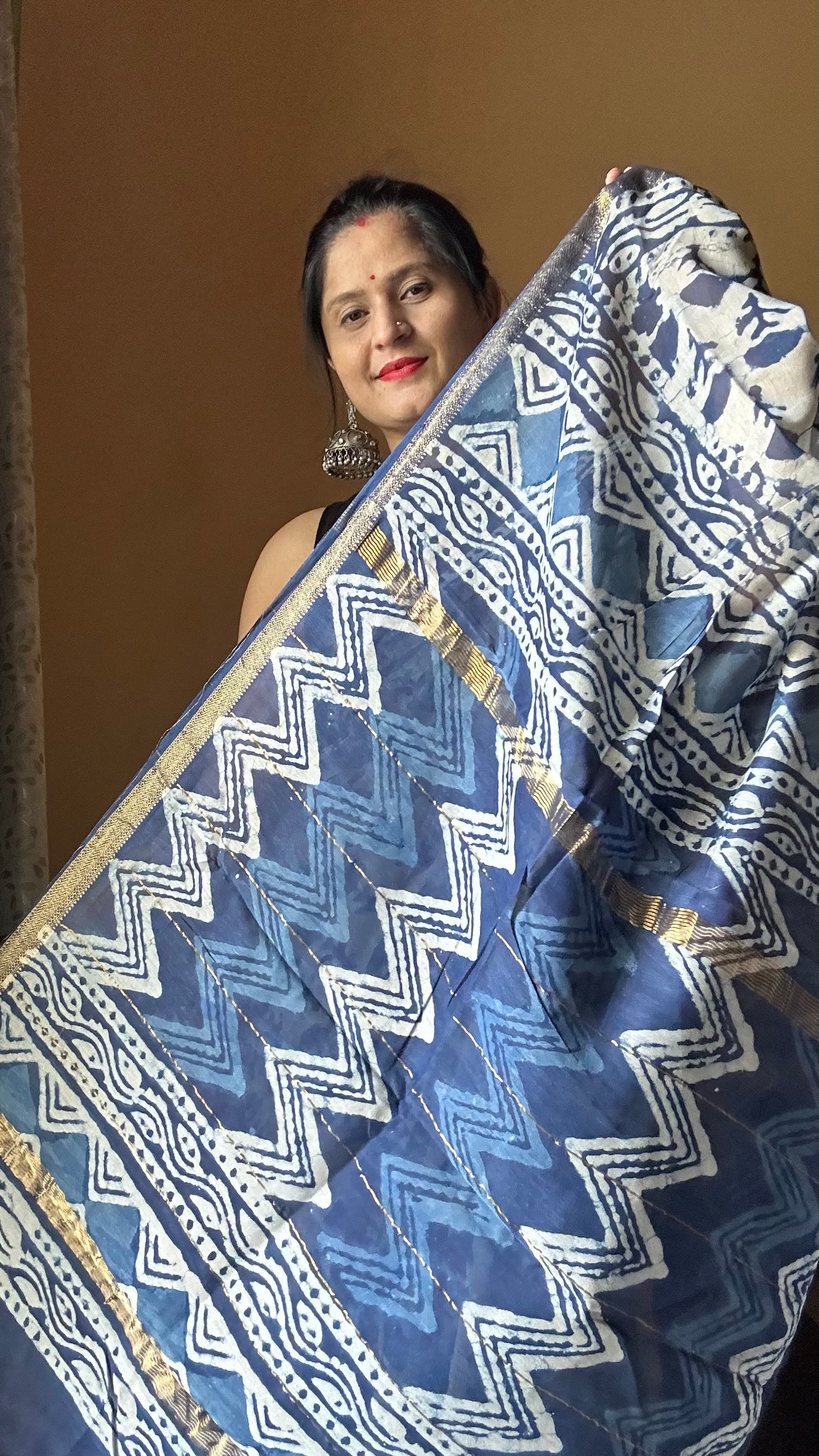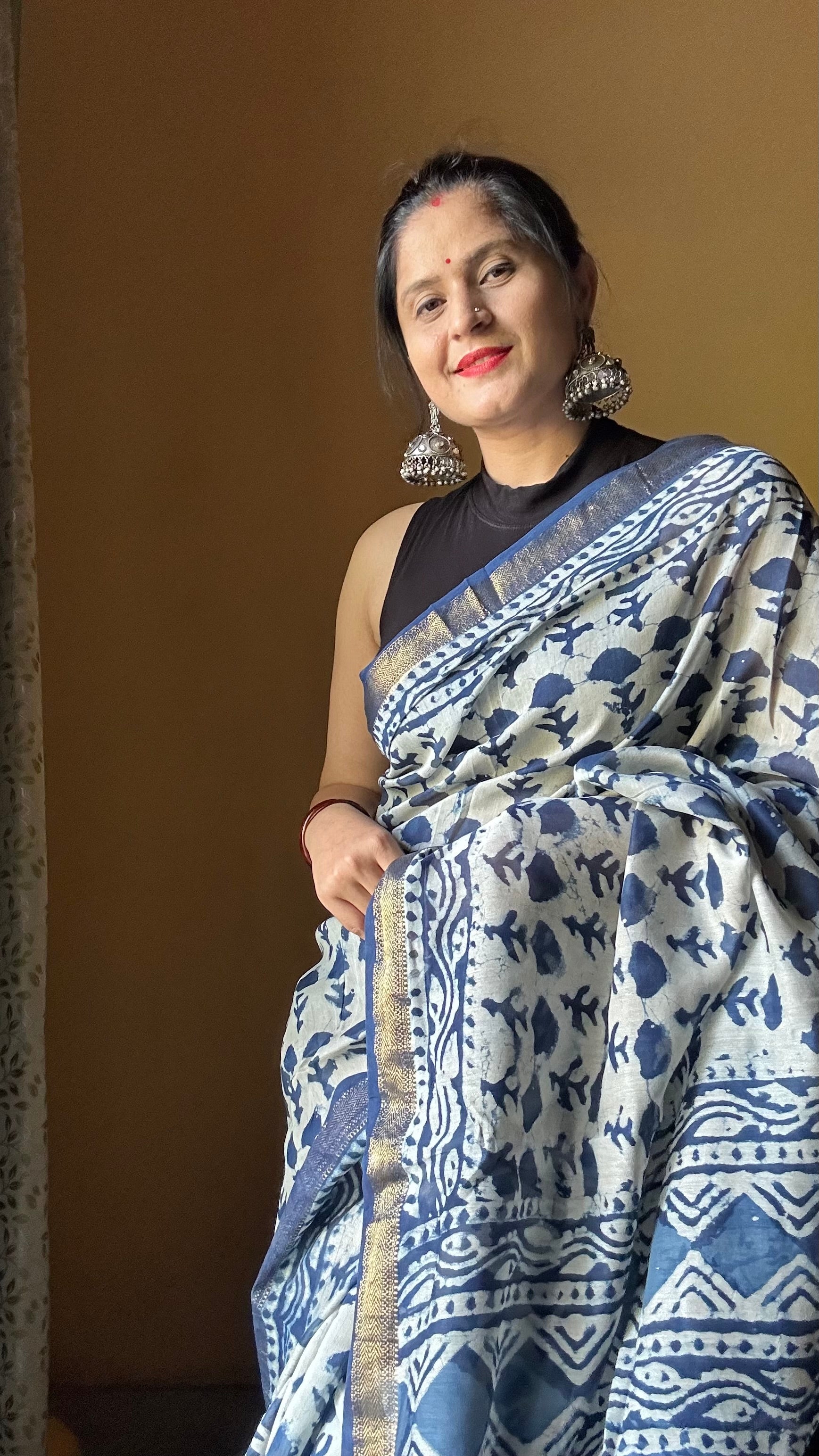 Handloom Cotton Sleeveless Lace Work checks Blouse (Blue)