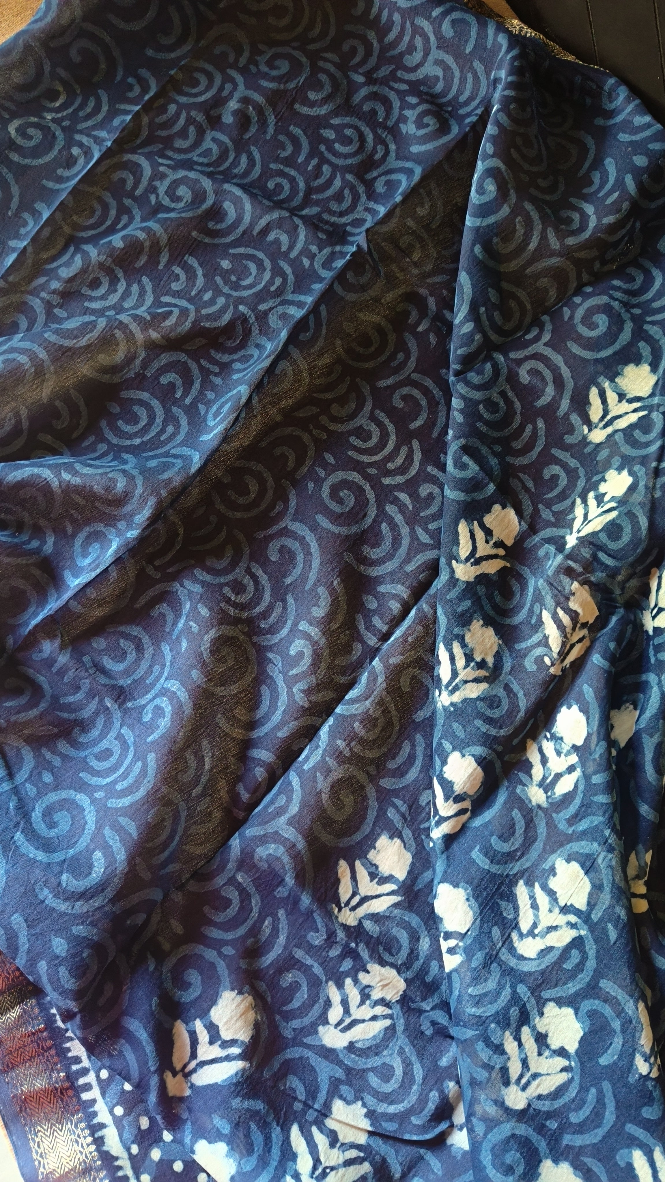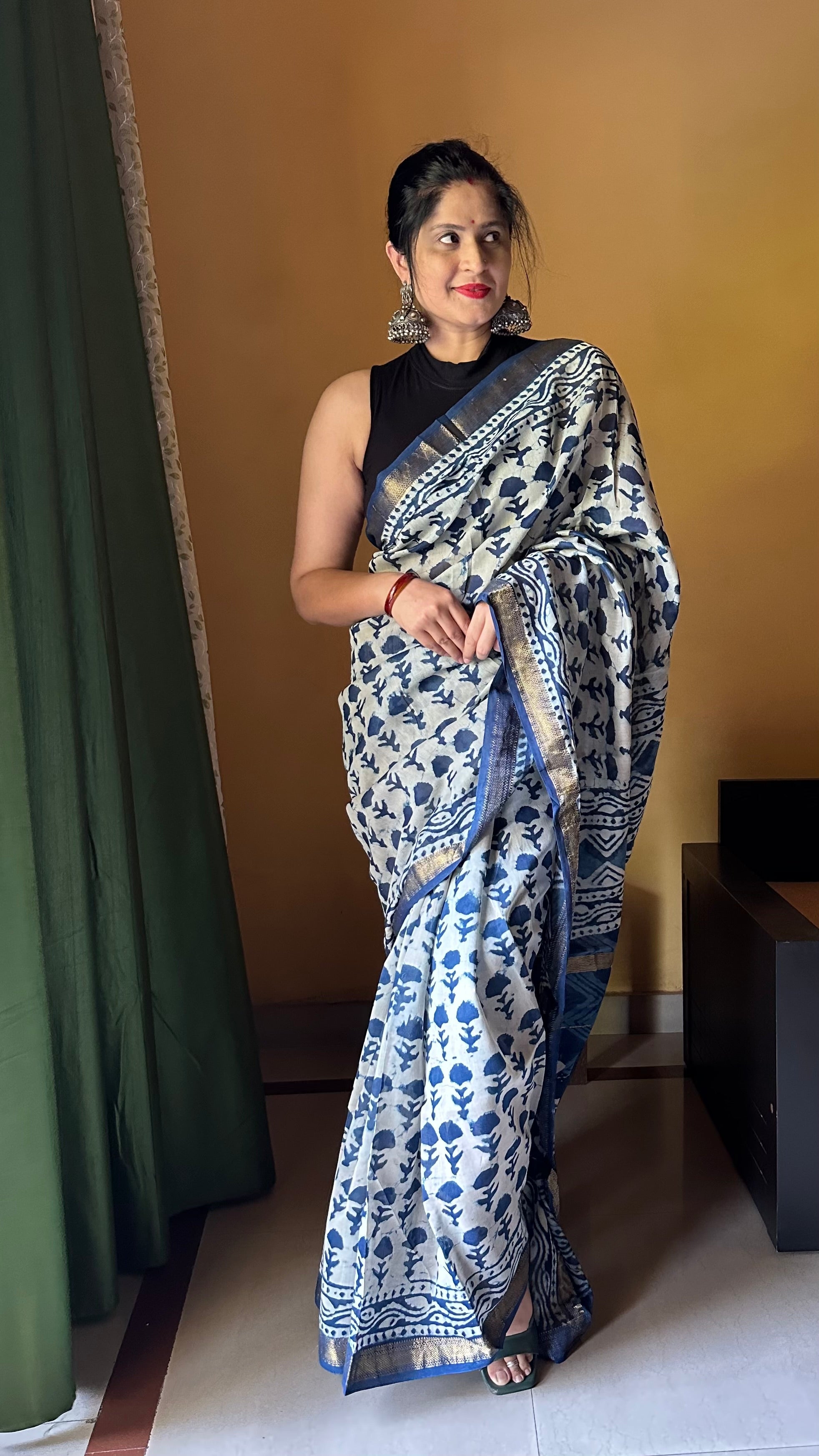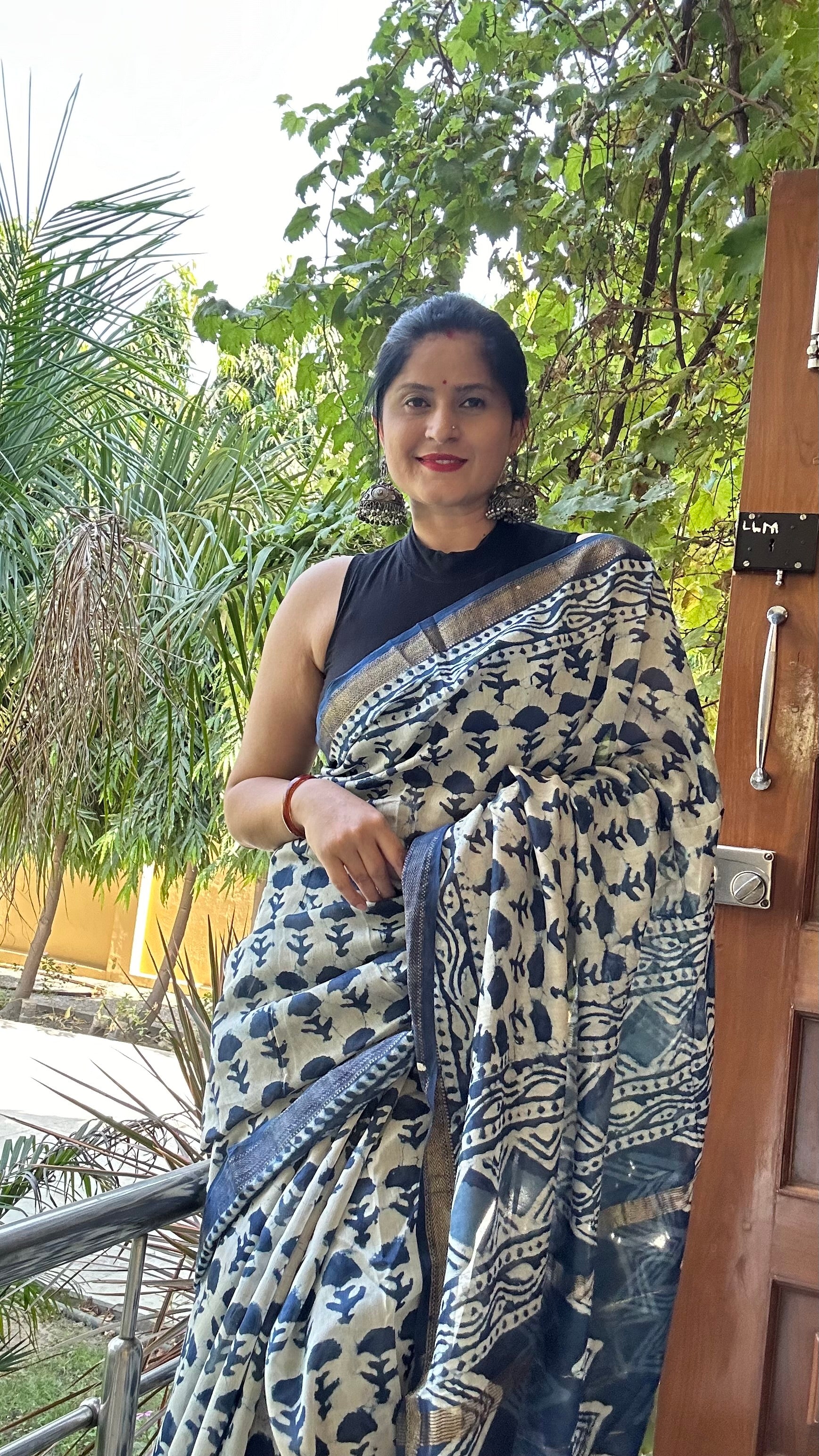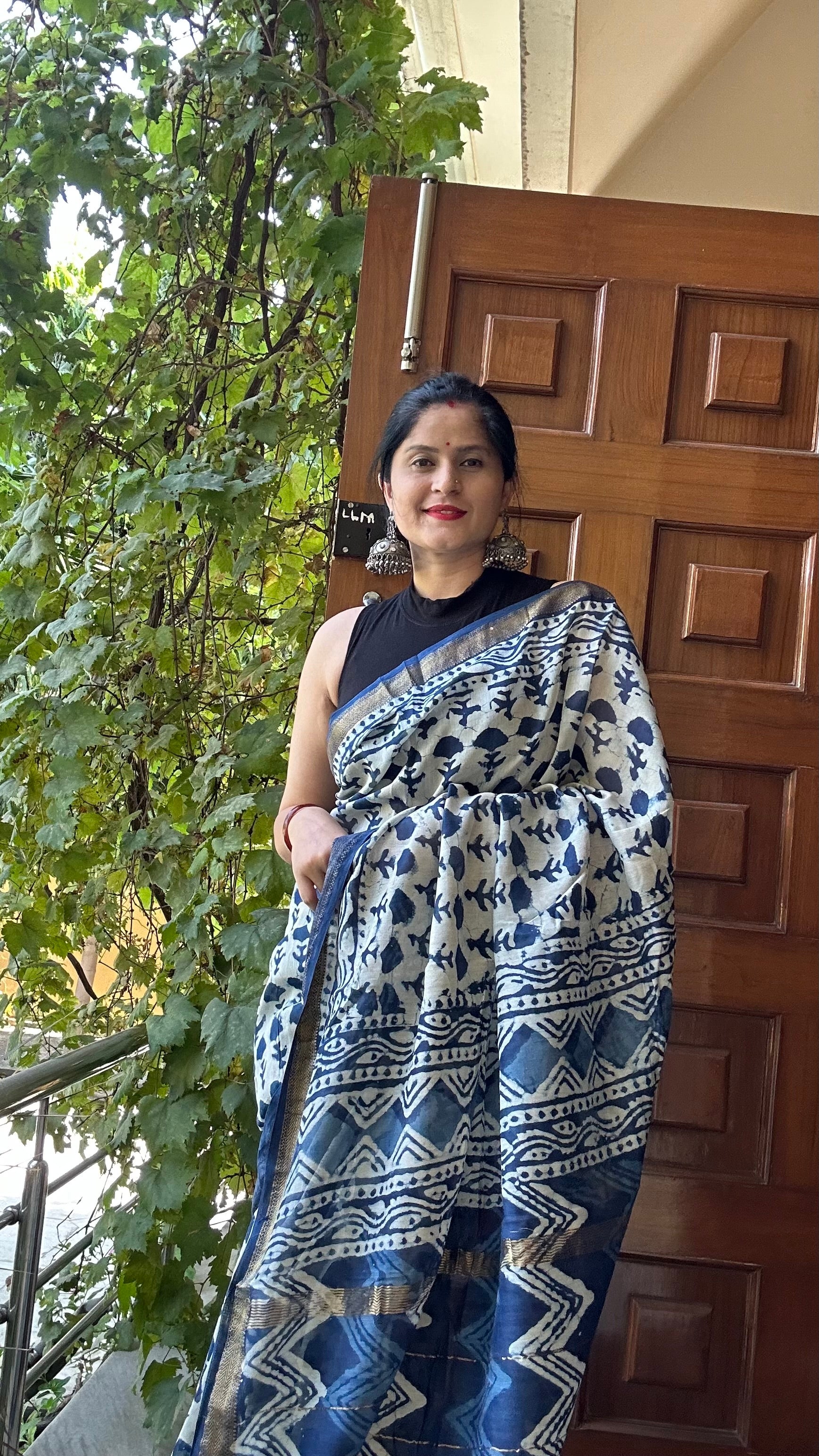 Handloom Cotton Sleeveless Lace Work checks Blouse (Blue)