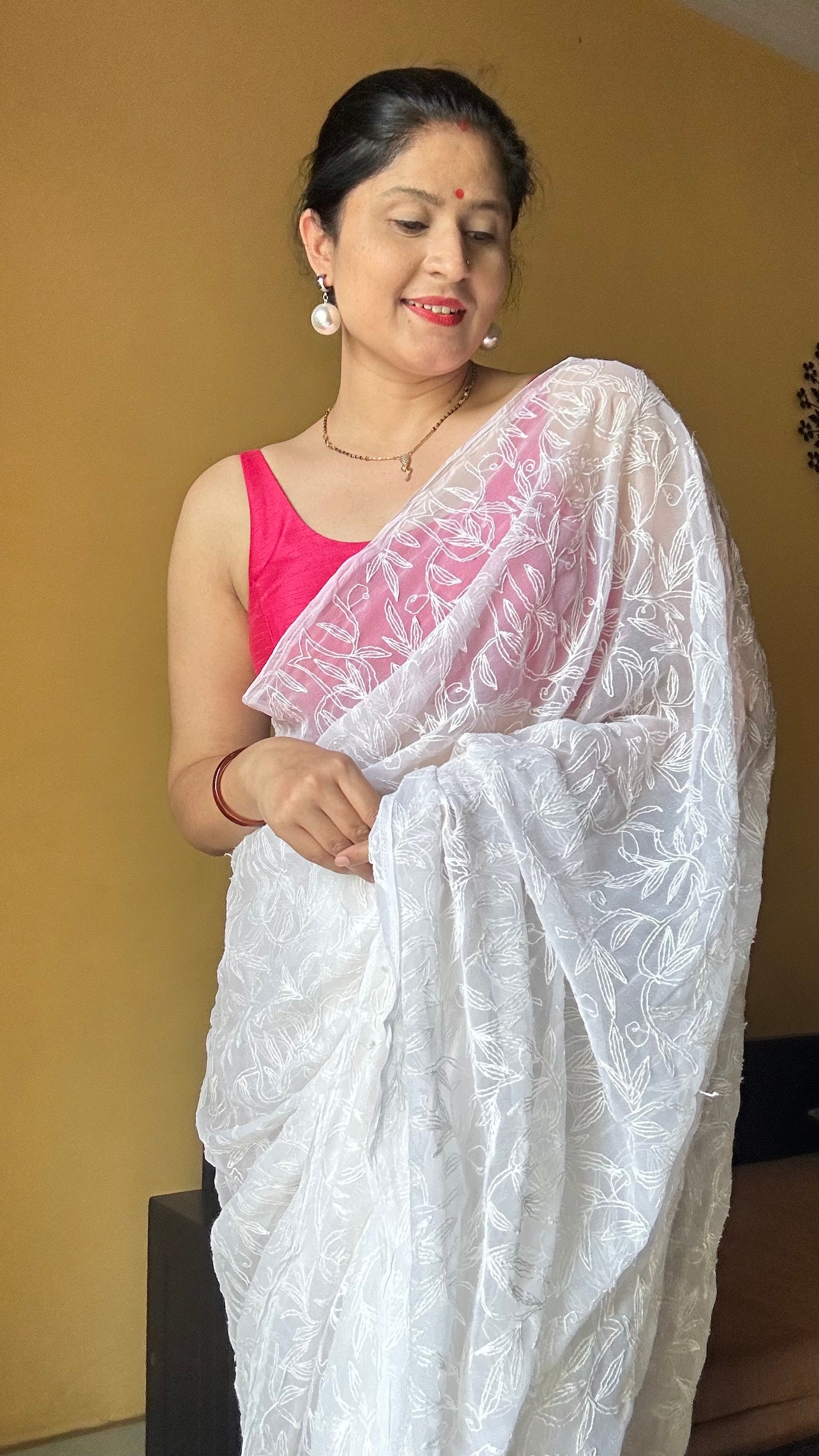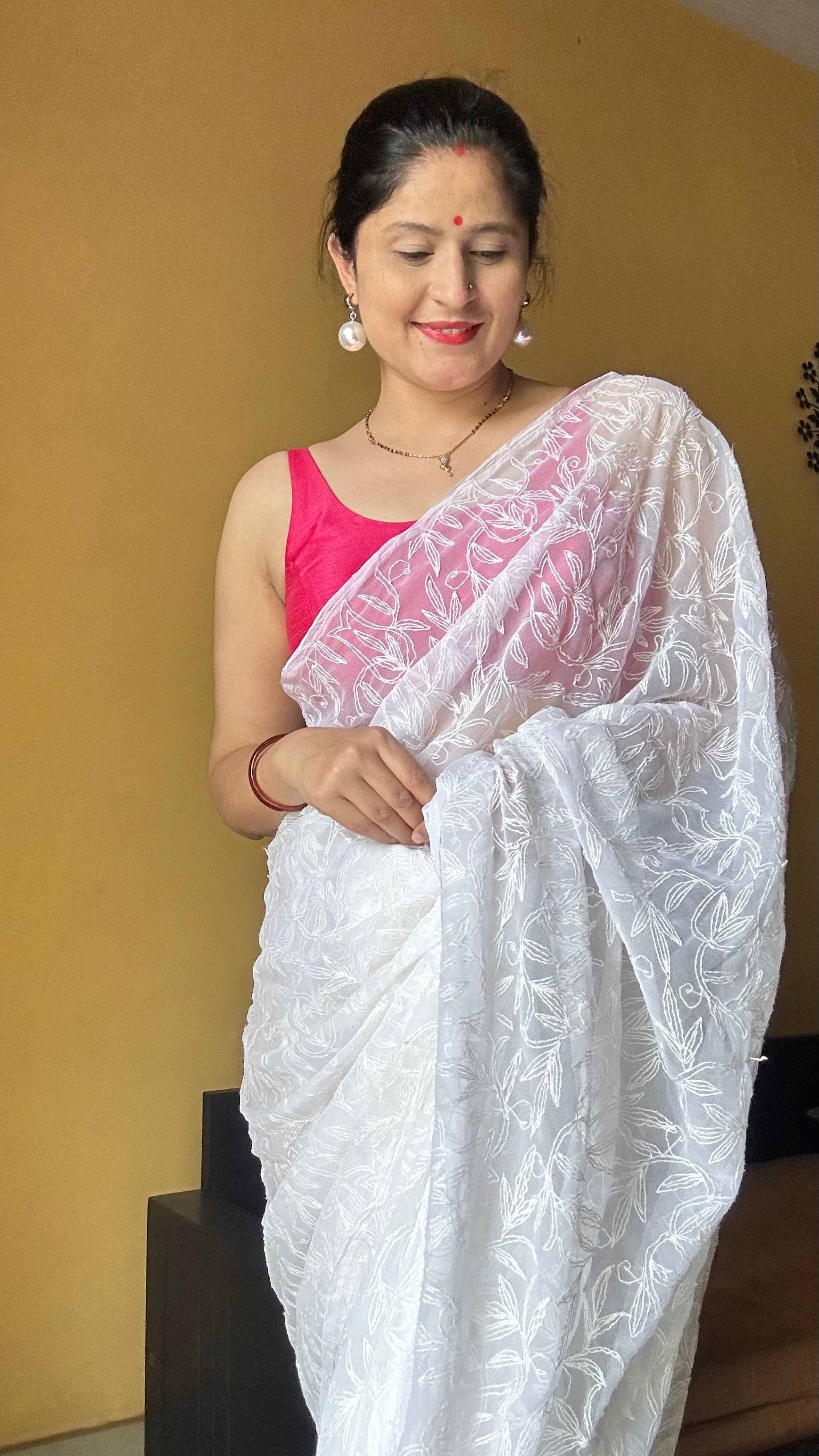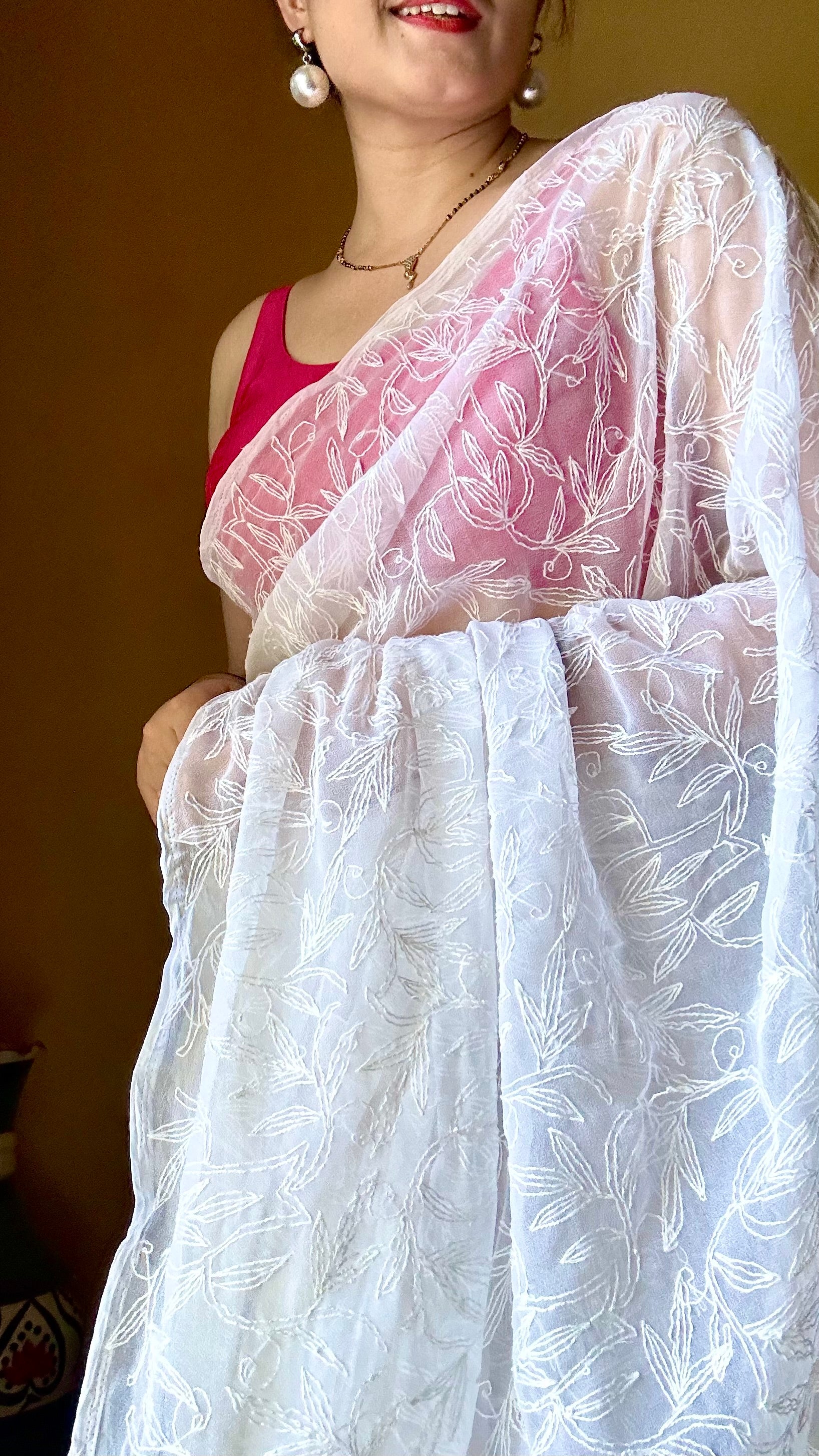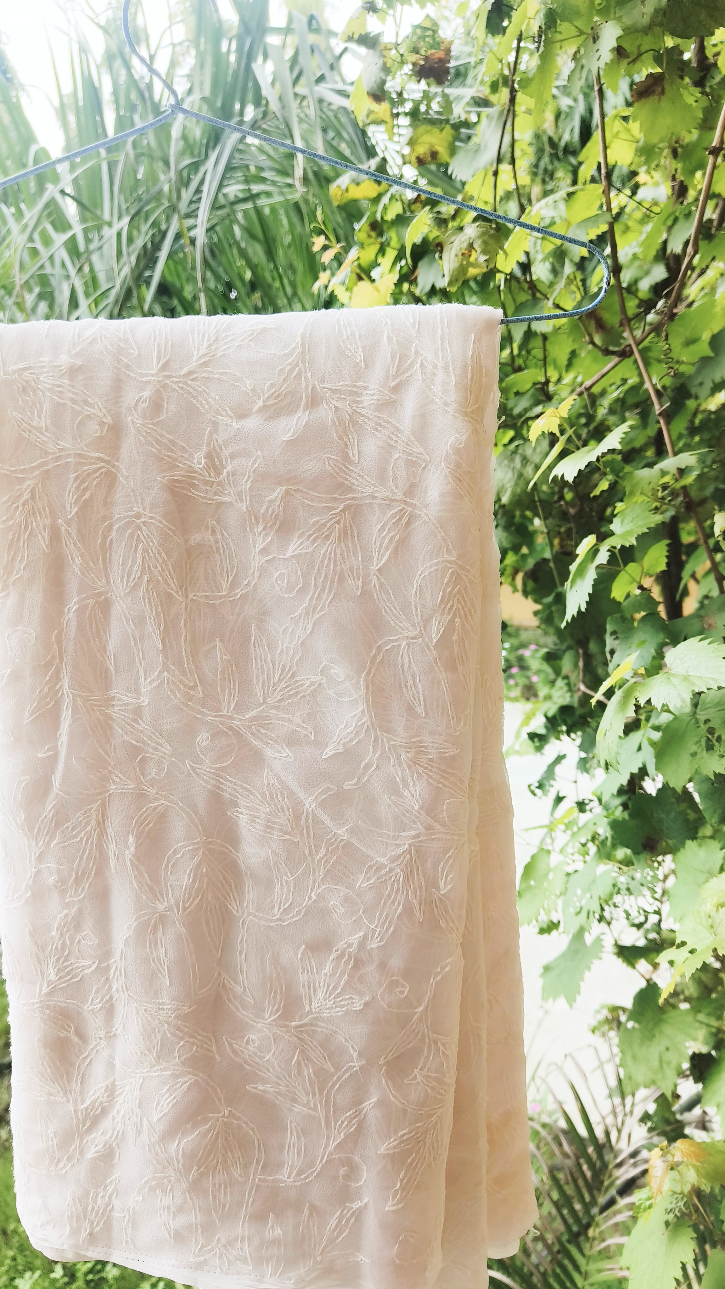 Crush Tissue Embroidered Sleeveless Blouse (Cream)