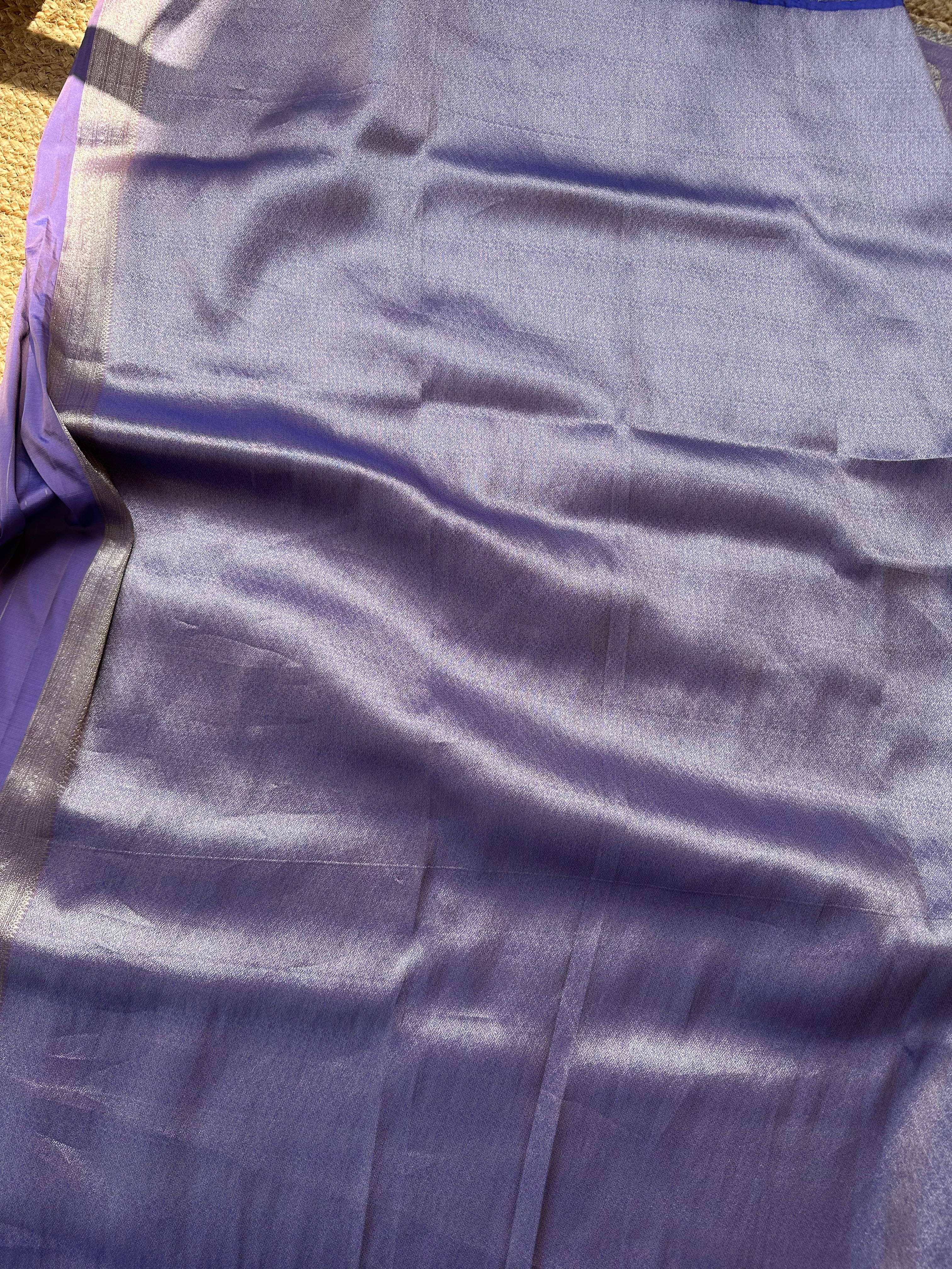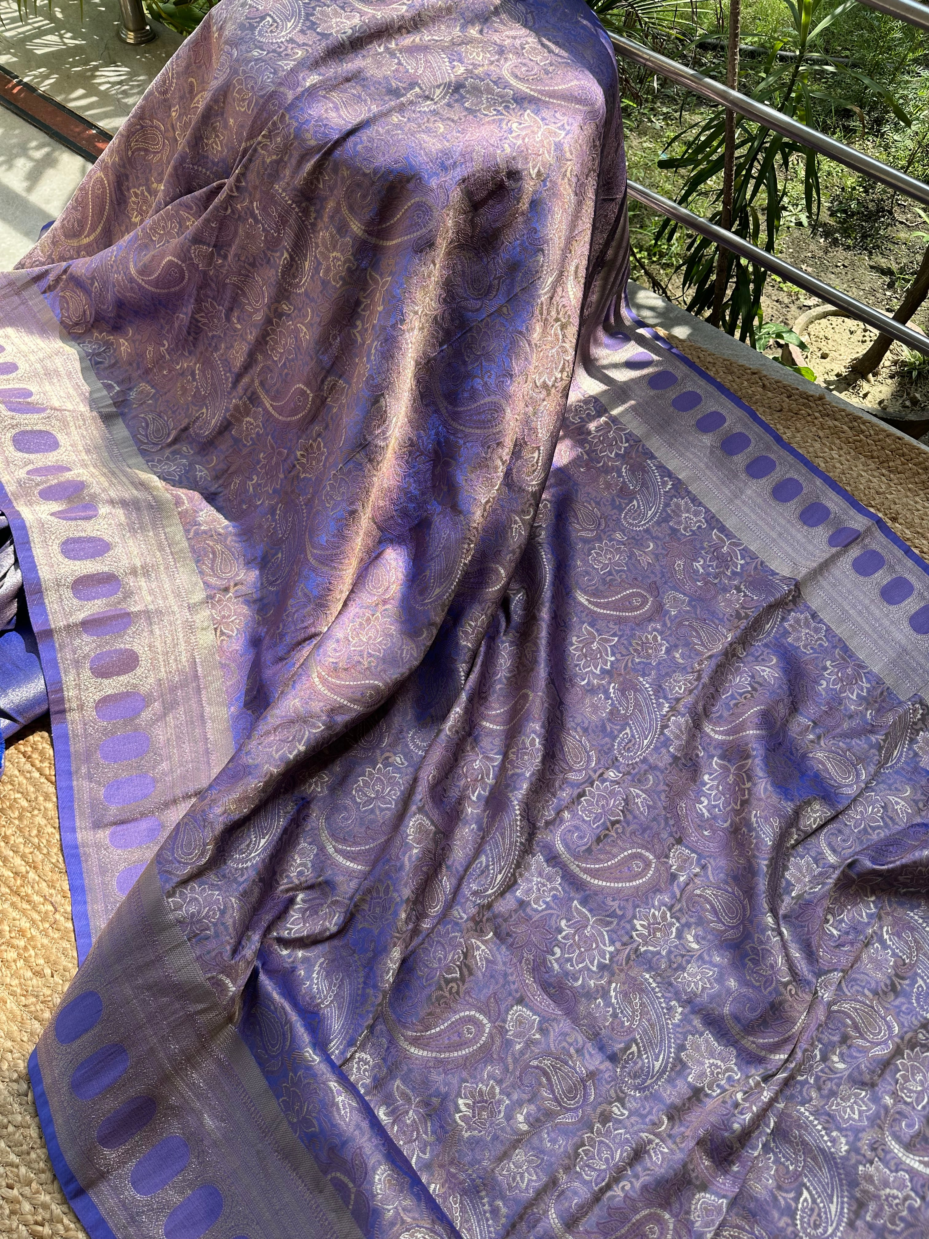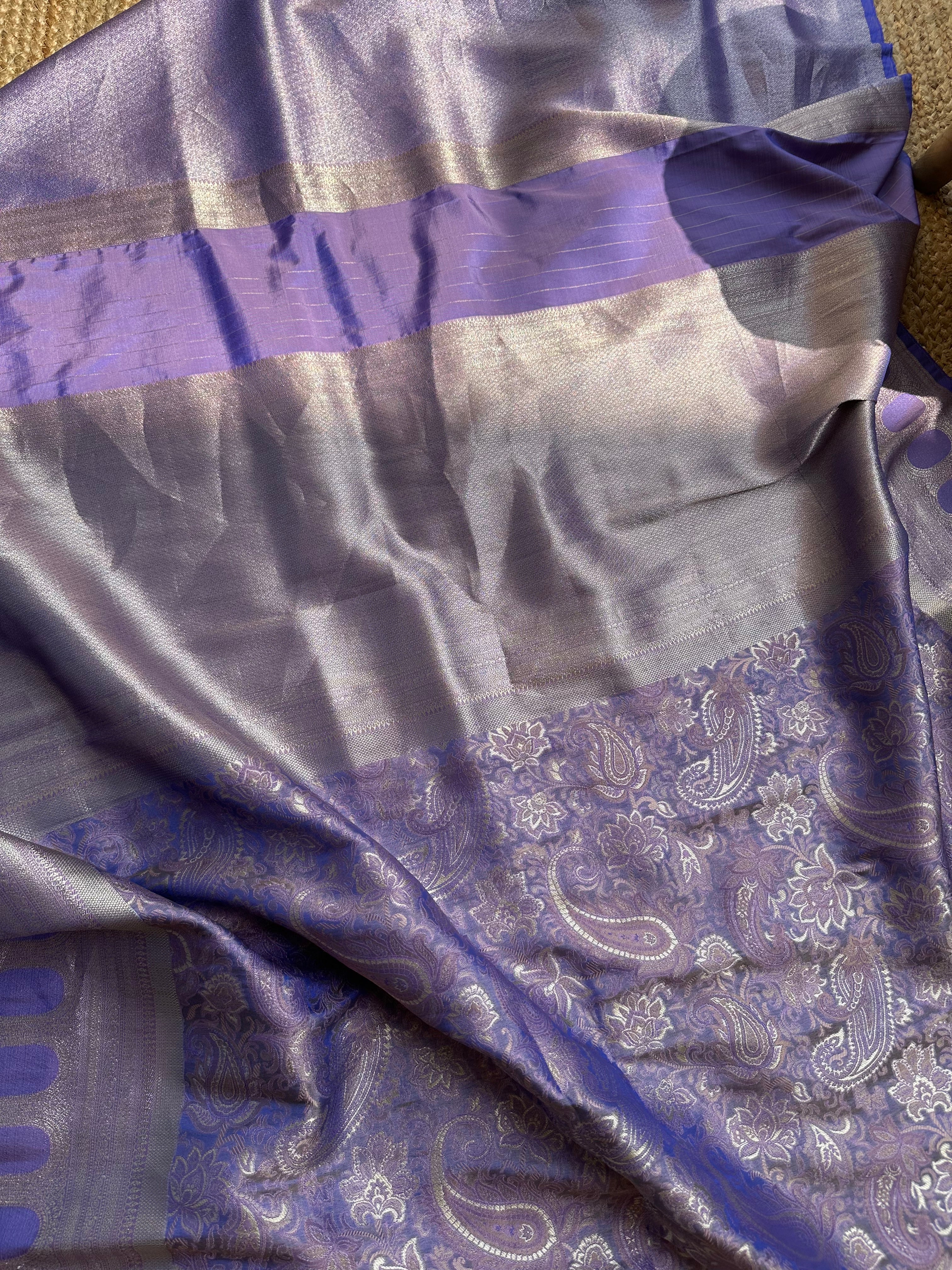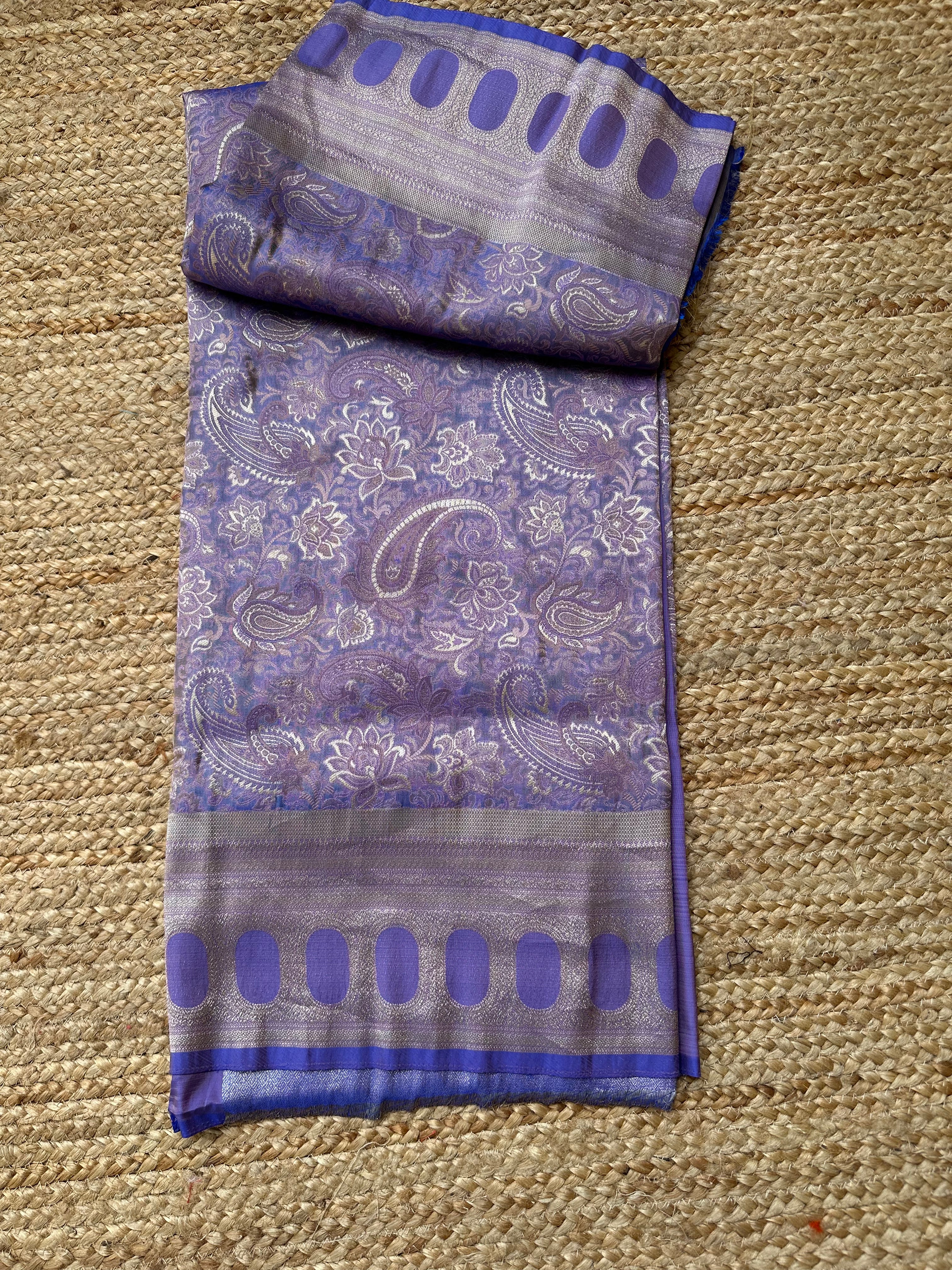 Purple Blue Dual Tone Pure Mashru Silk Brocade Saree