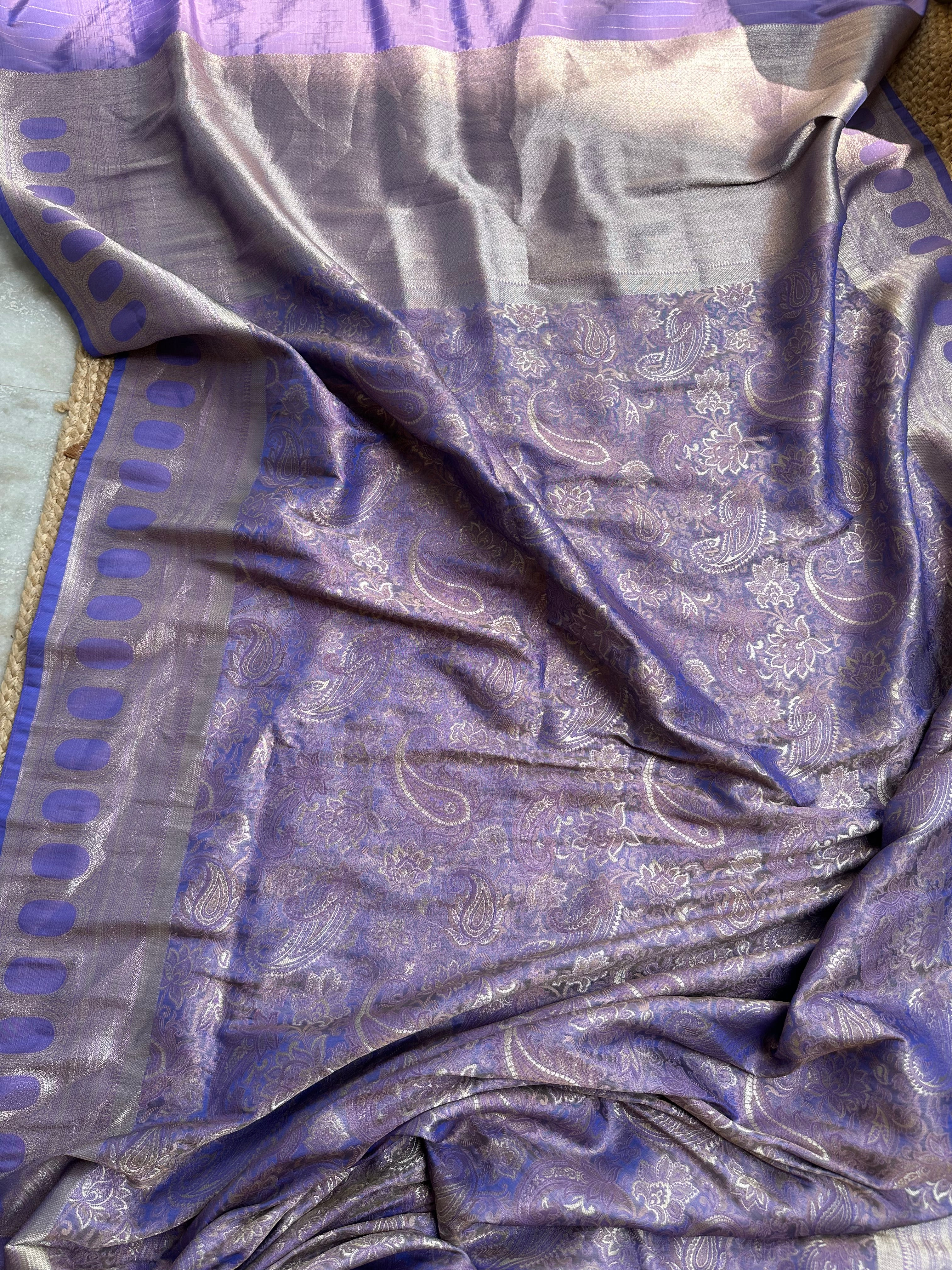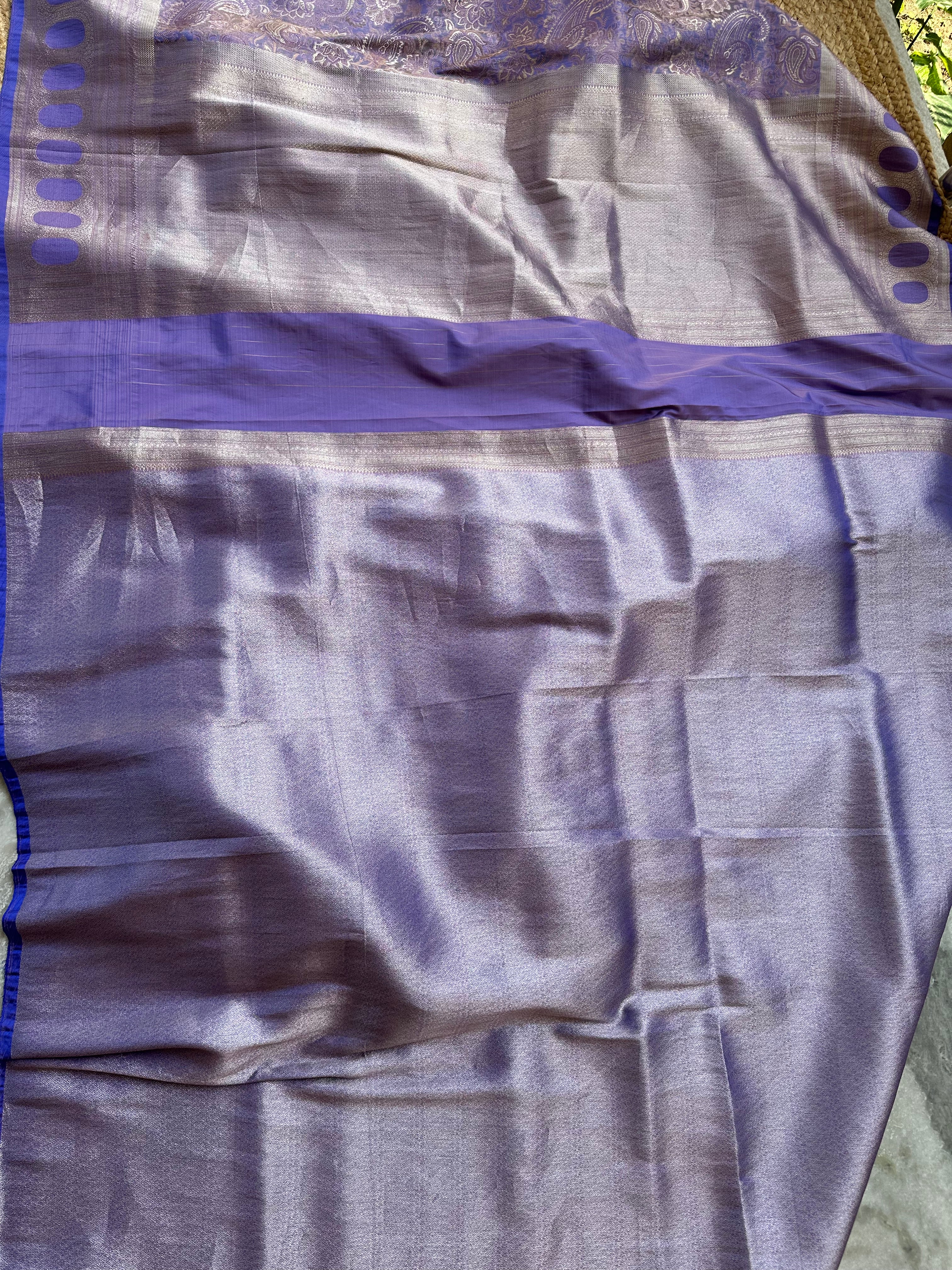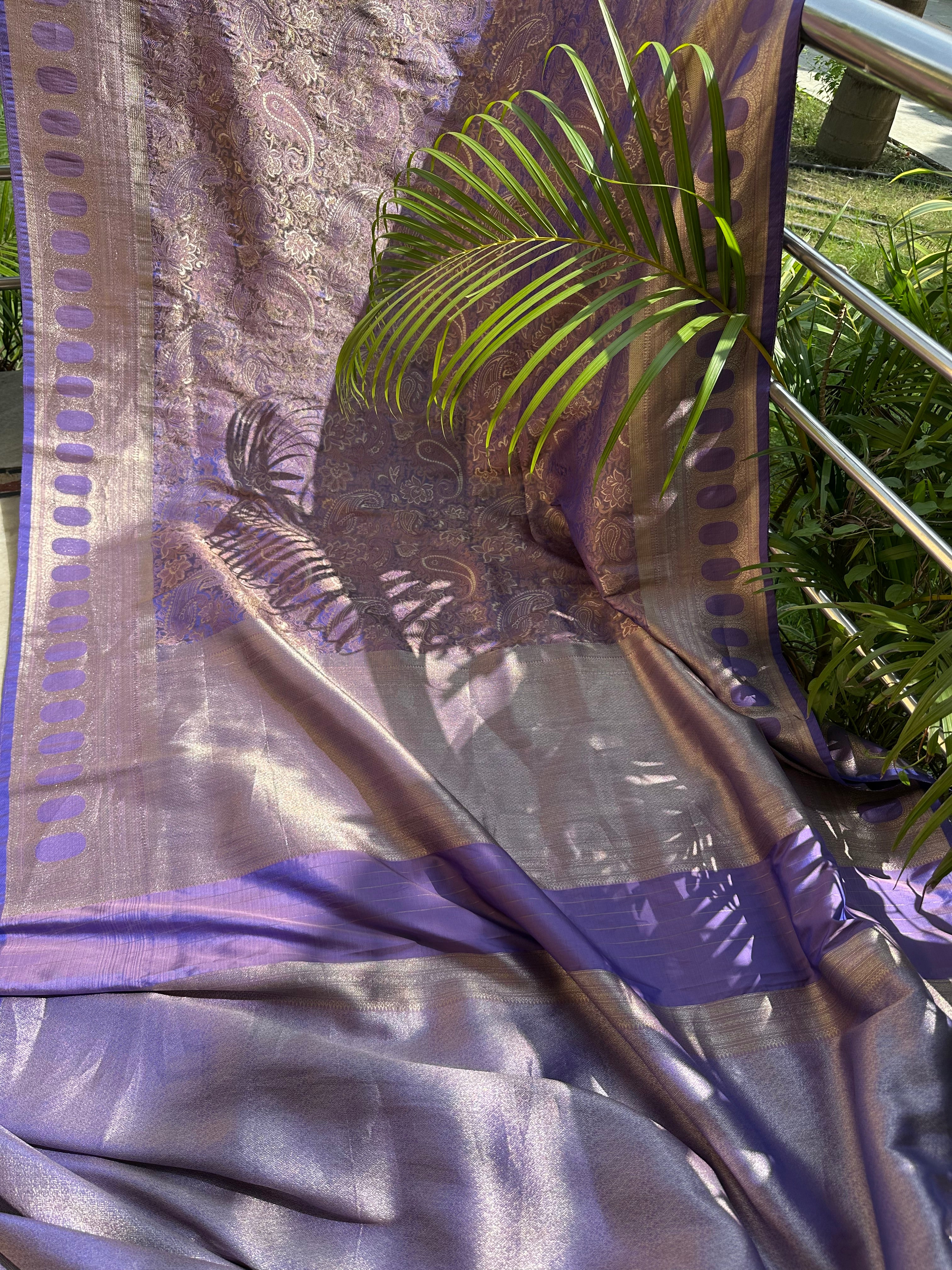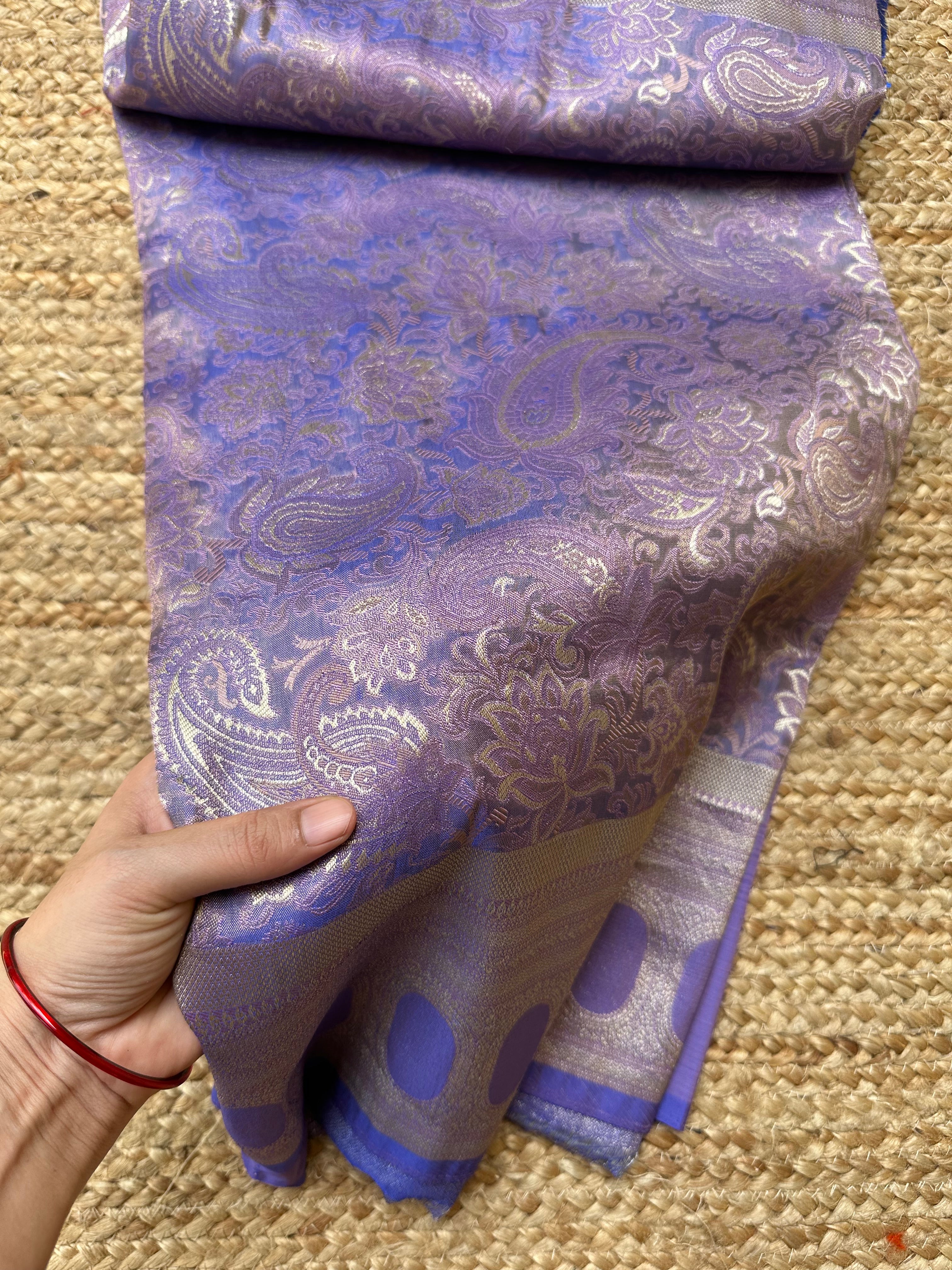 Purple Blue Dual Tone Pure Mashru Silk Brocade Saree