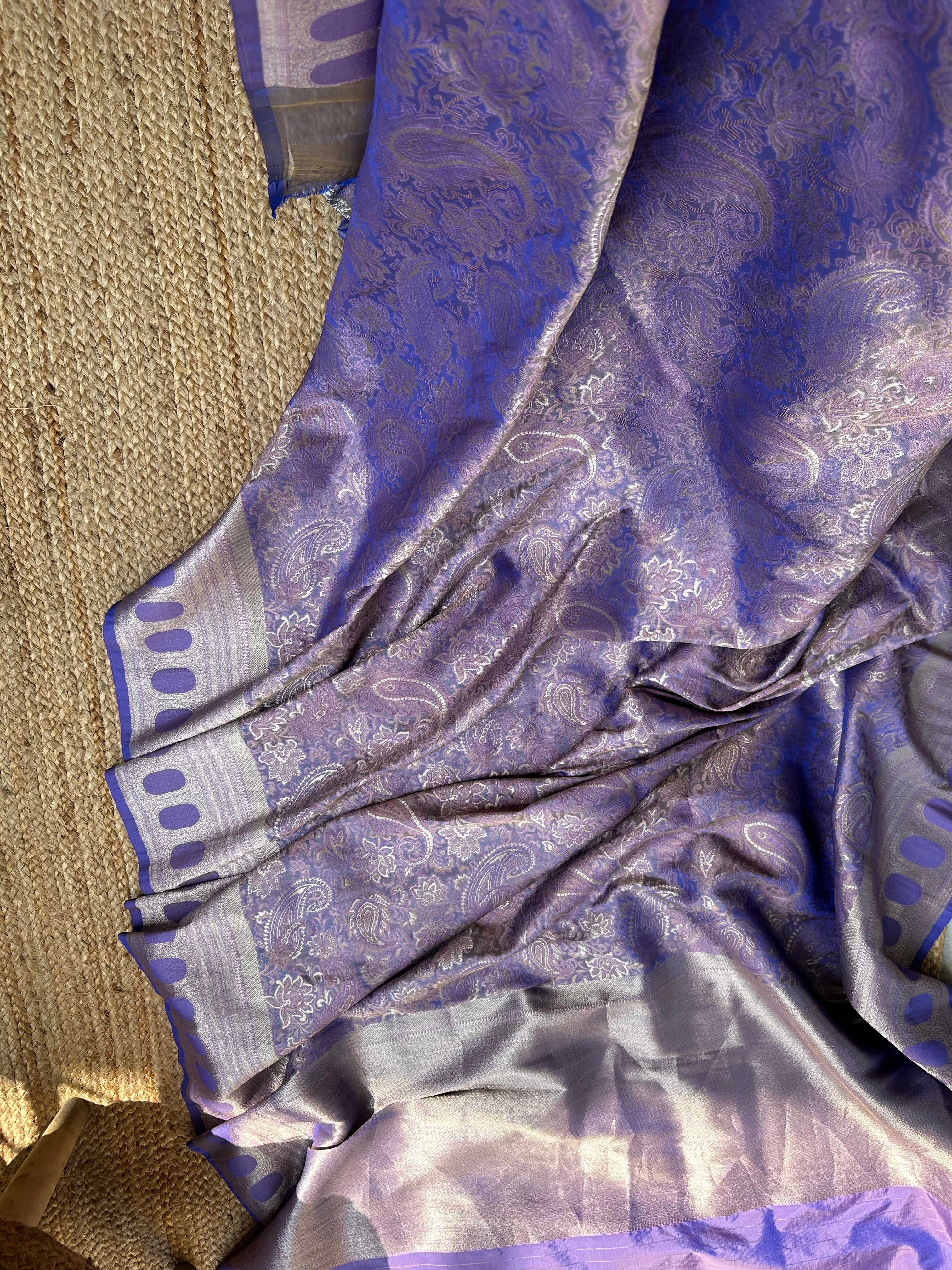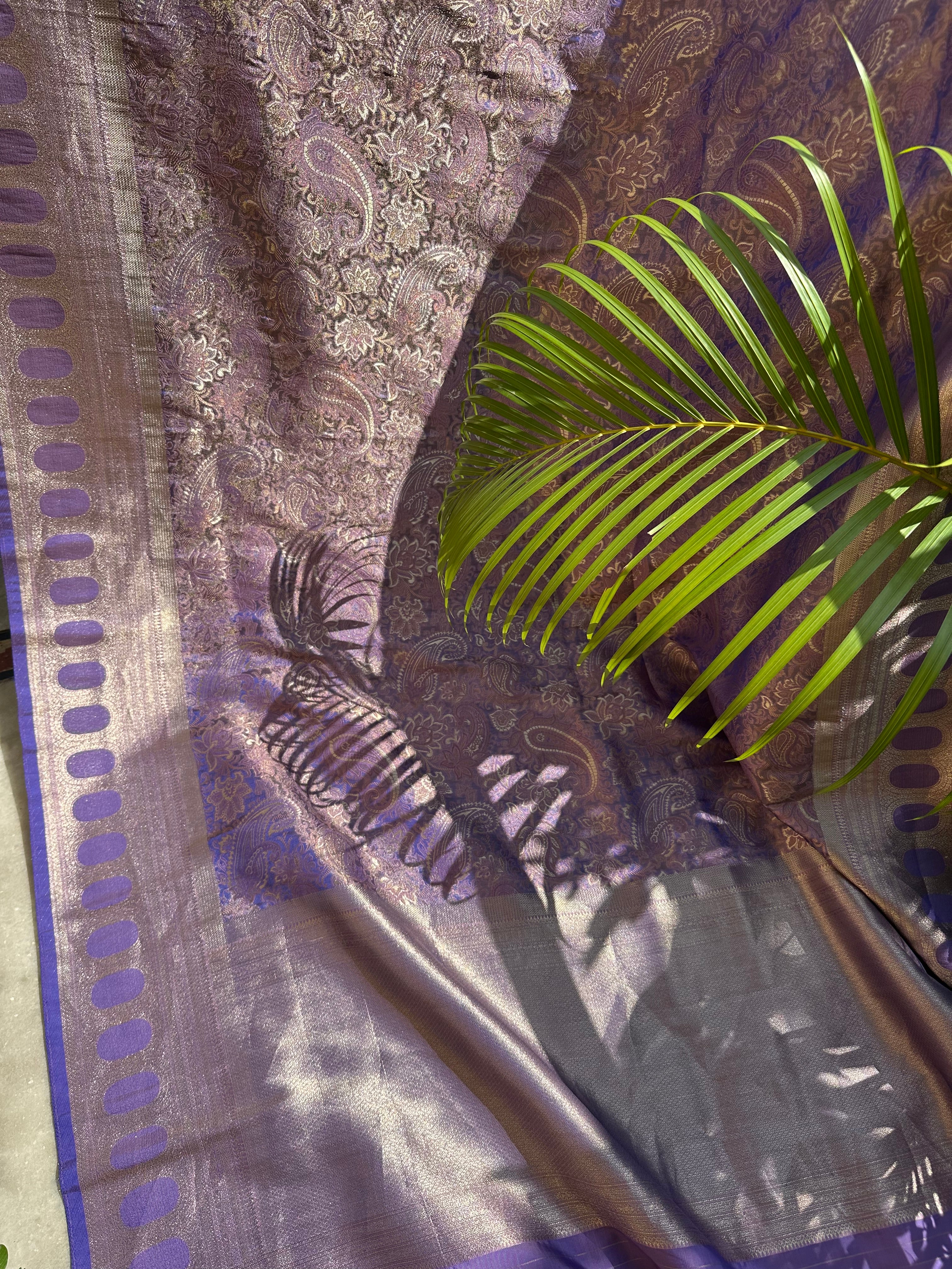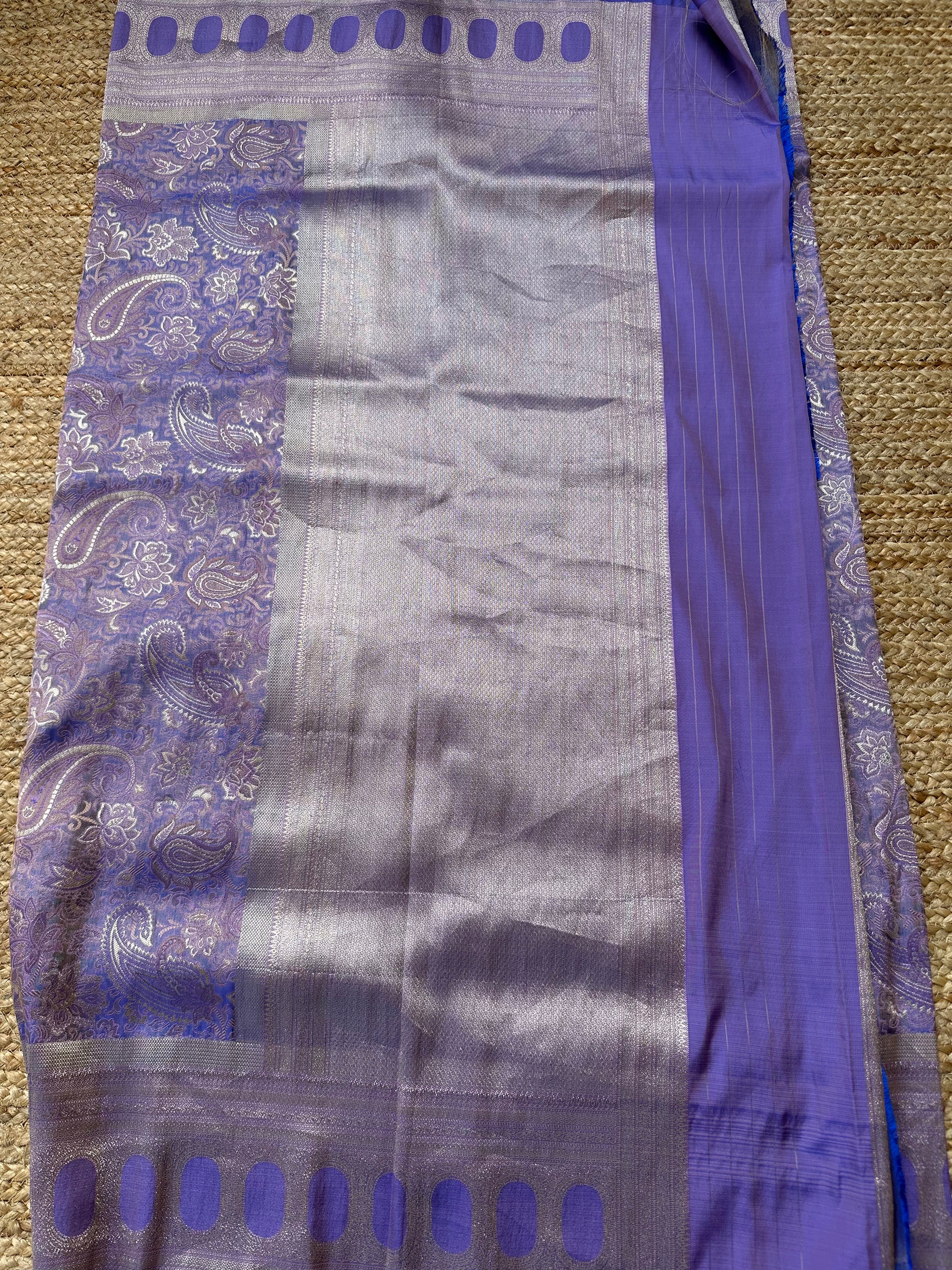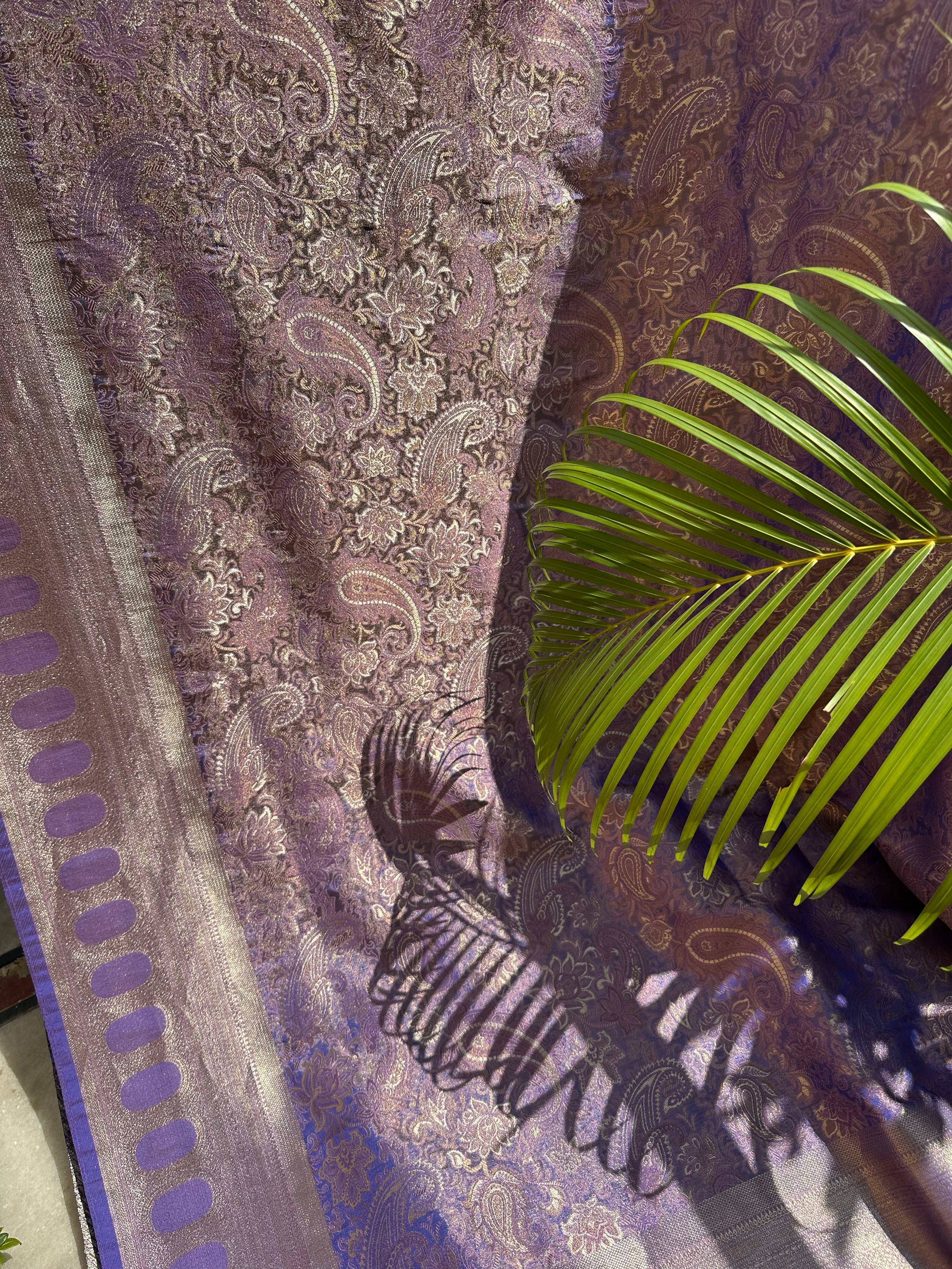 Purple Blue Dual Tone Pure Mashru Silk Brocade Saree