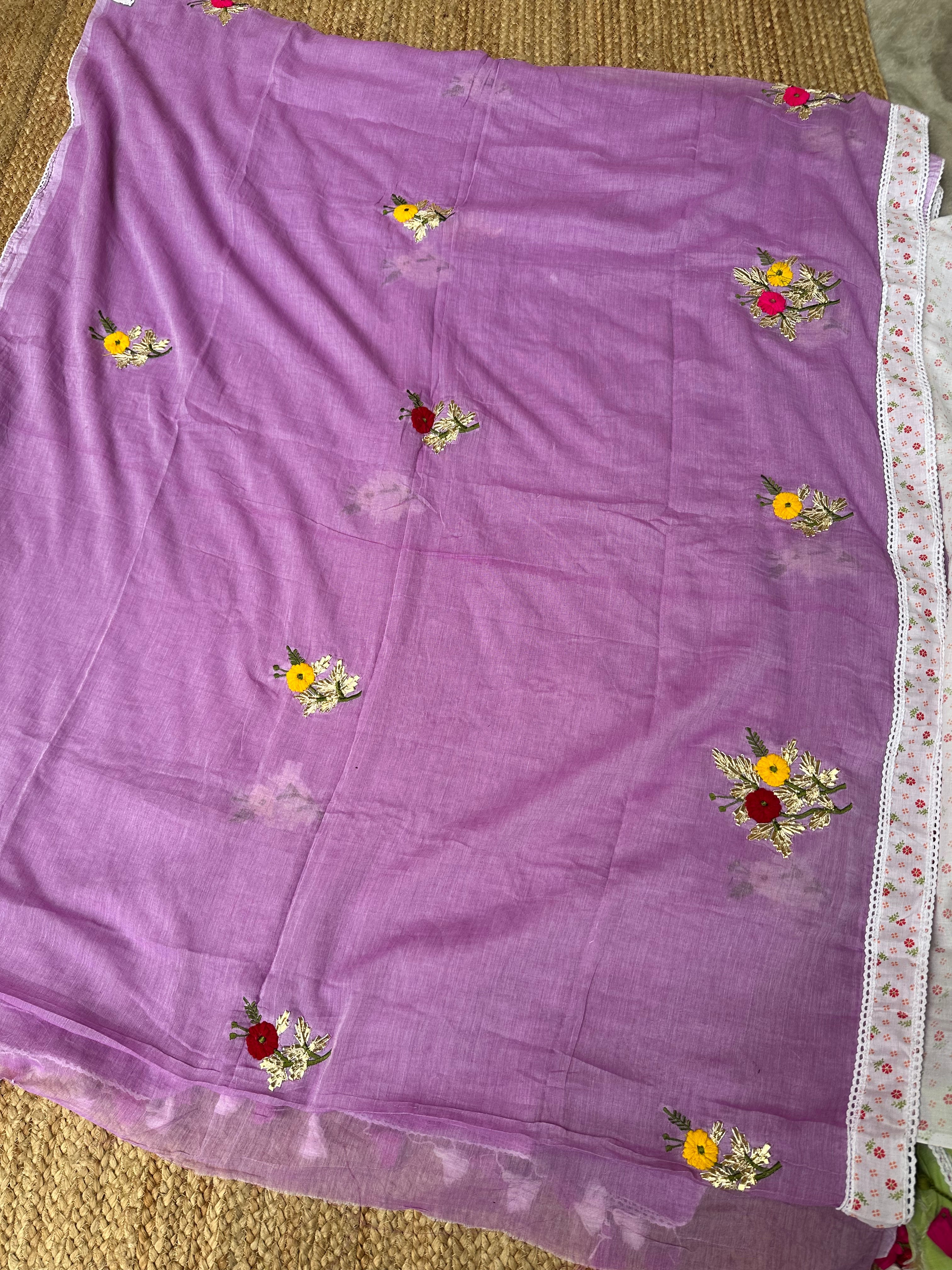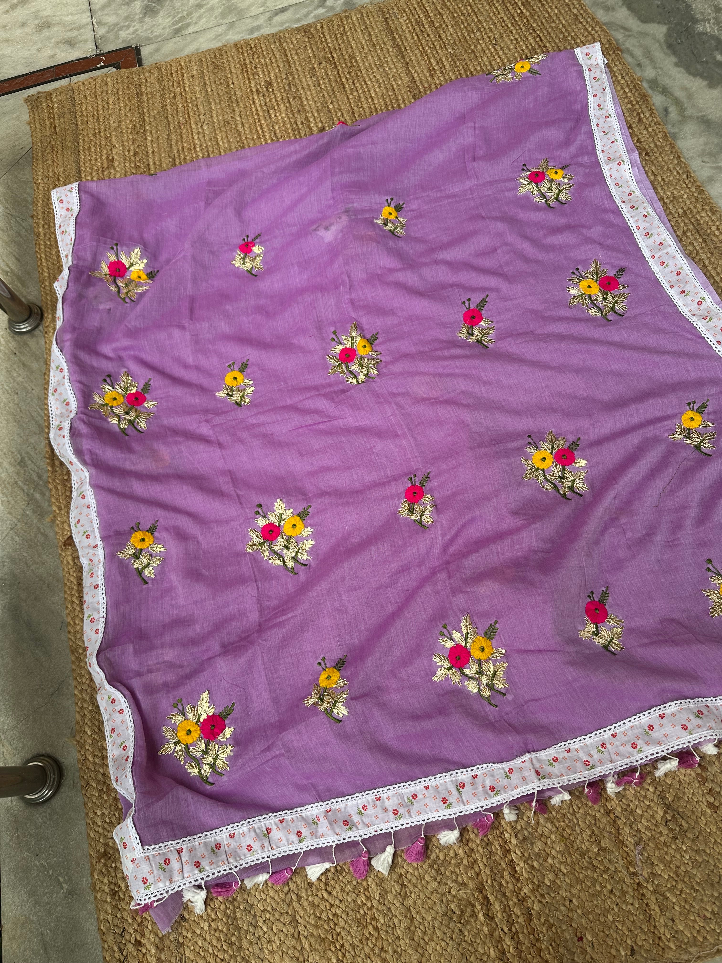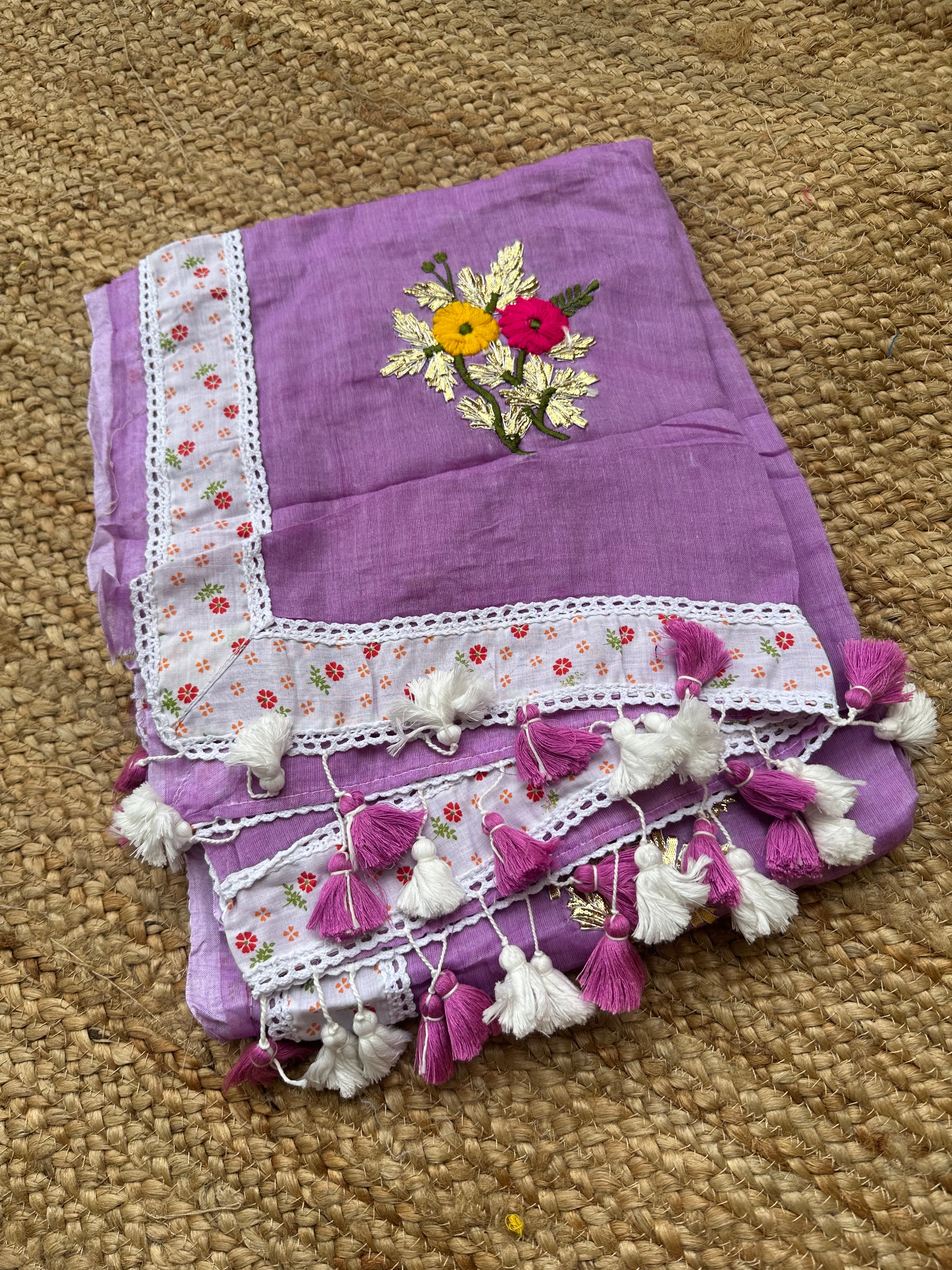 Purple Mul Cotton Gota Patti Embroidered Lacework Saree