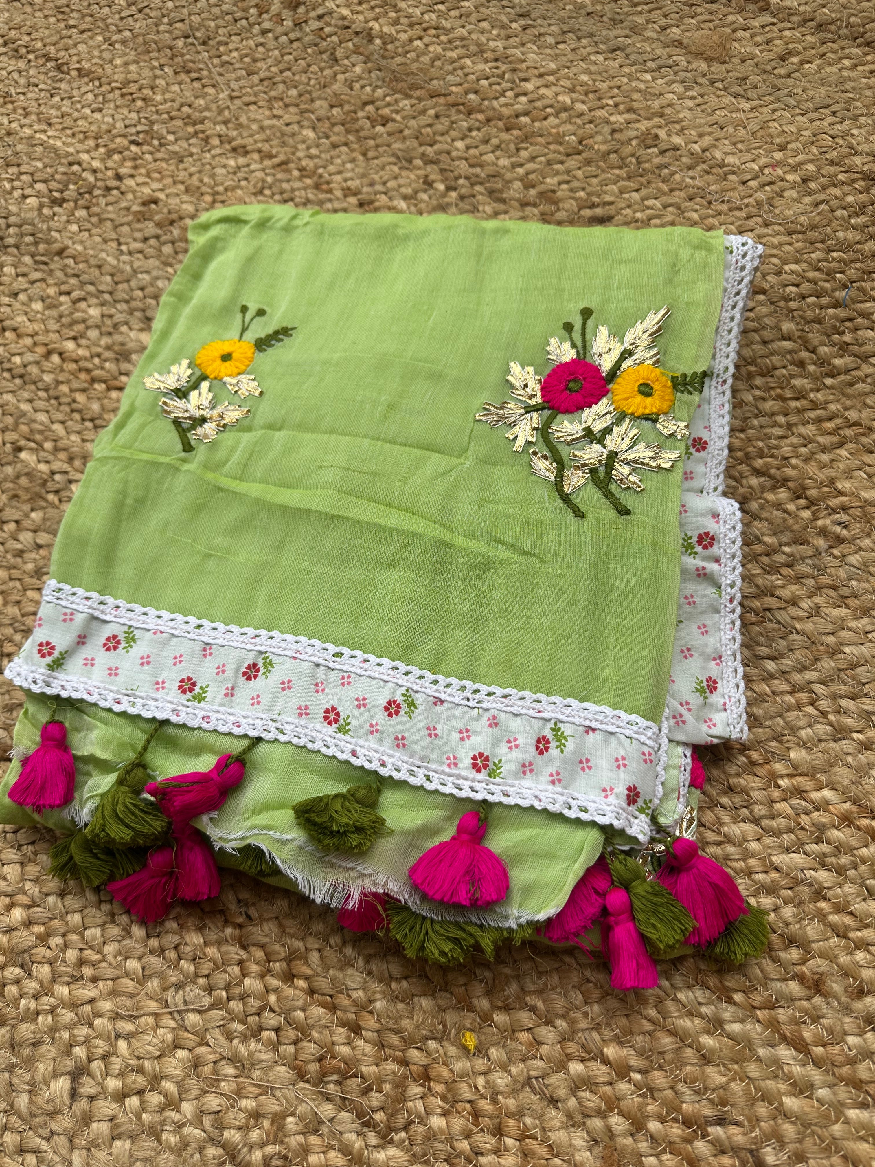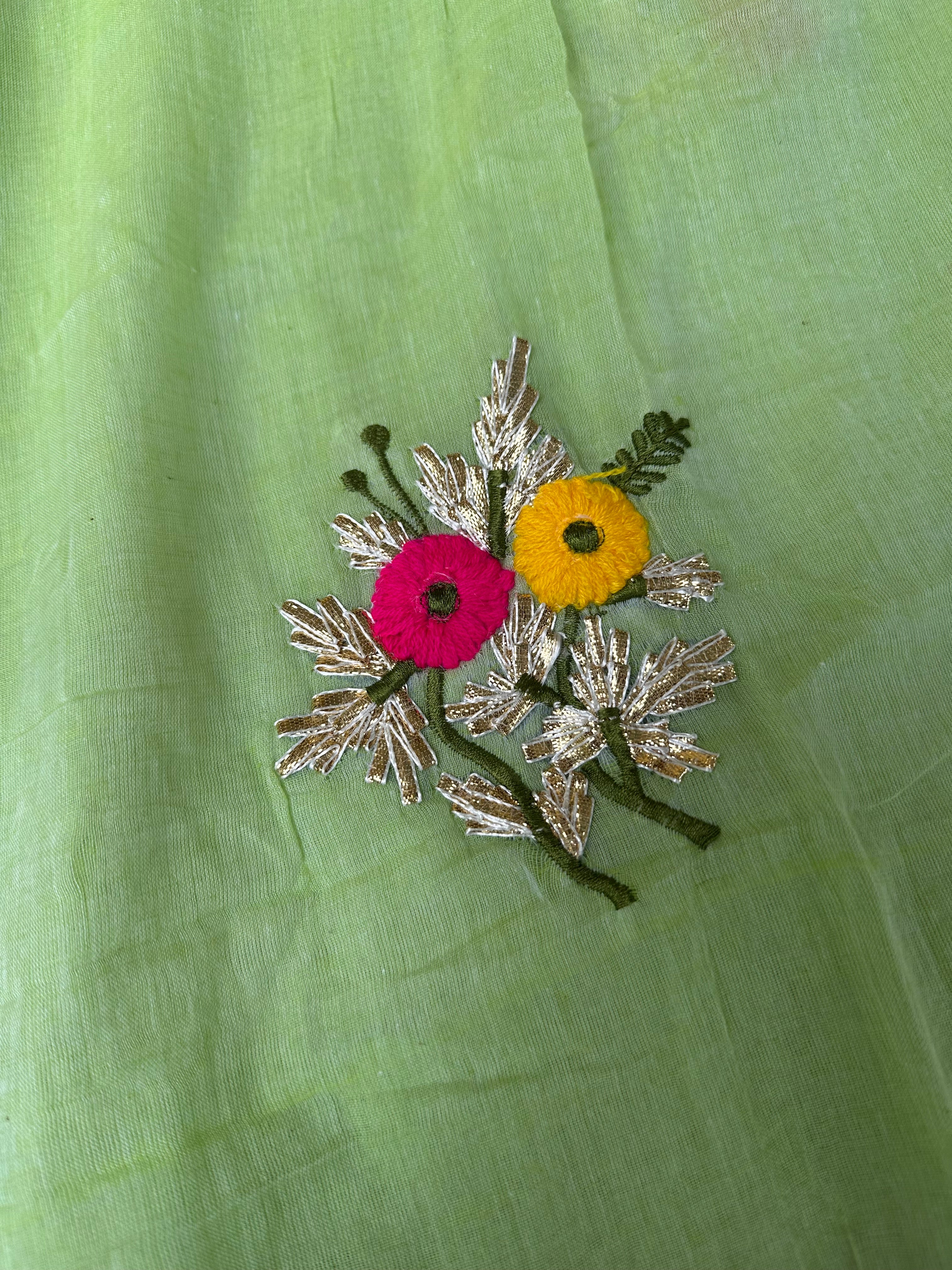Light Green Mul Cotton Gota Patti Embroidered Lacework Saree