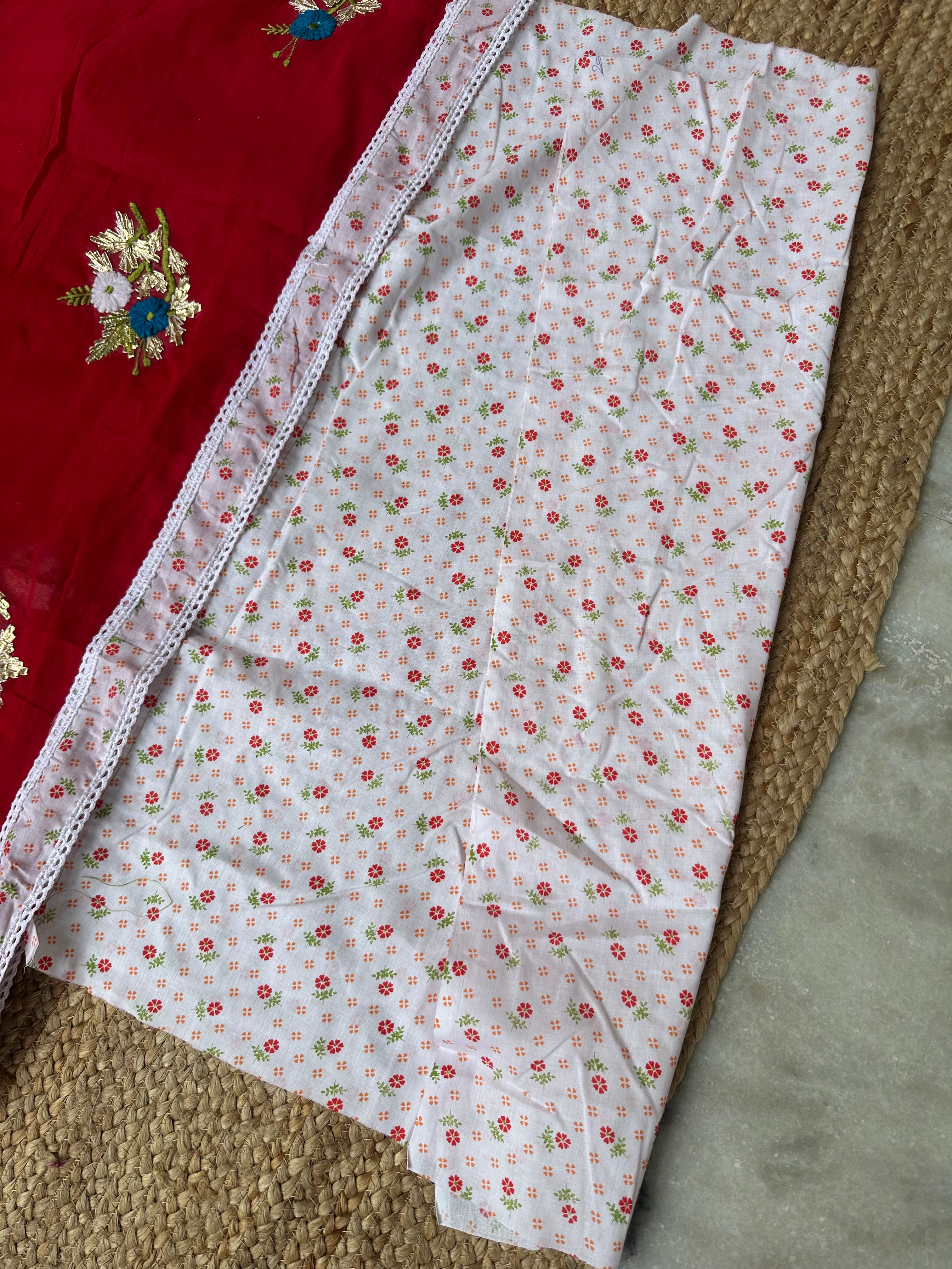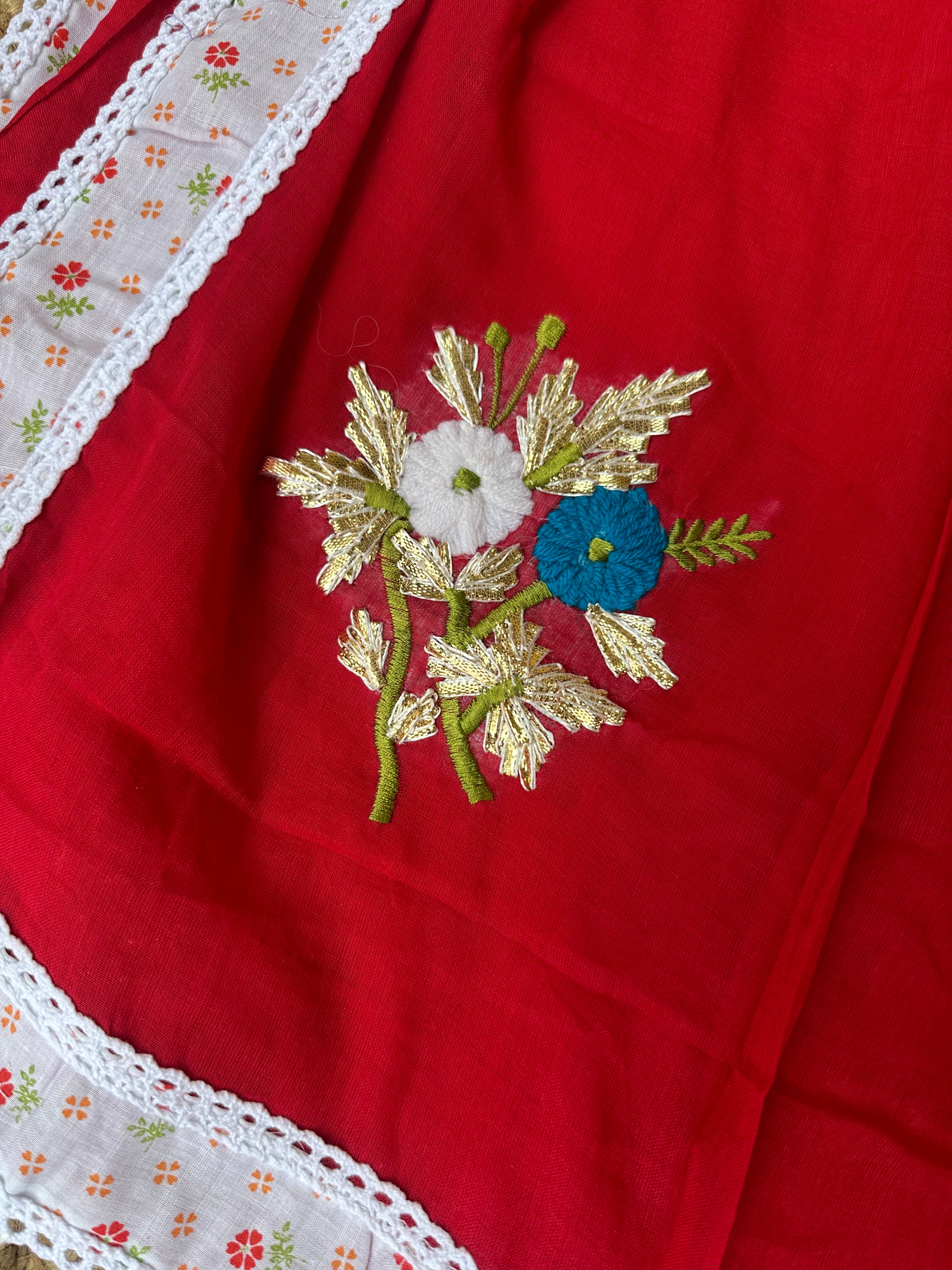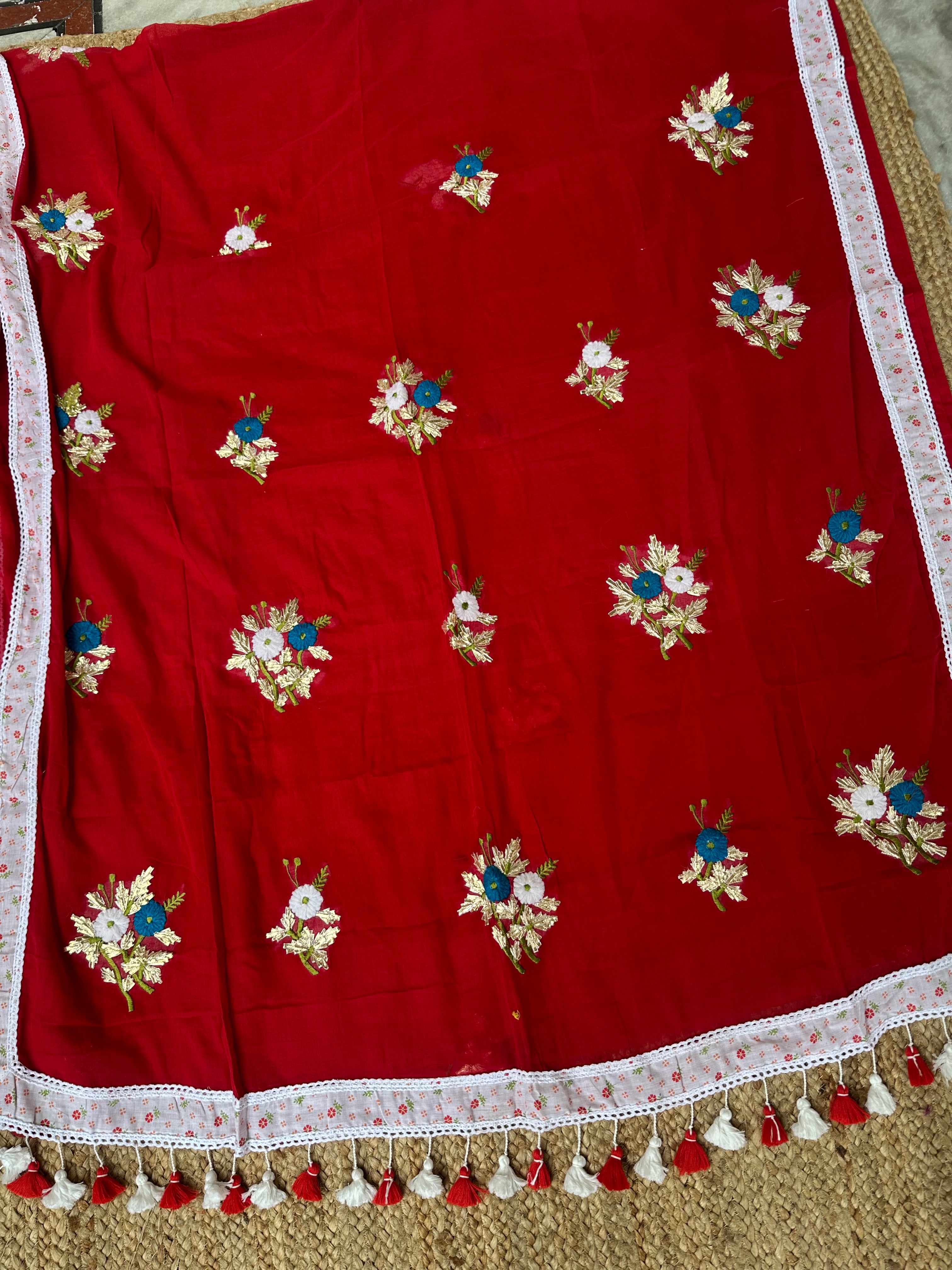 Red Mul Cotton Gota Patti Embroidered Lacework Saree