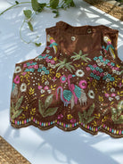 Crush Tissue Embroidered Sleeveless Blouse (Brown)