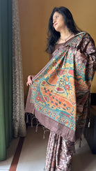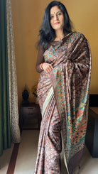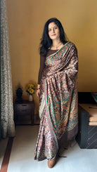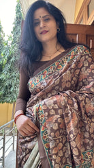 Expertly crafted with semi modal silk, this stunning Elna Saree showcases a Kalamkari-inspired print. Elevate any occasion with its intricate design and luxurious fabric. Enjoy the benefits of a high-quality saree that exudes elegance and sophistication.
