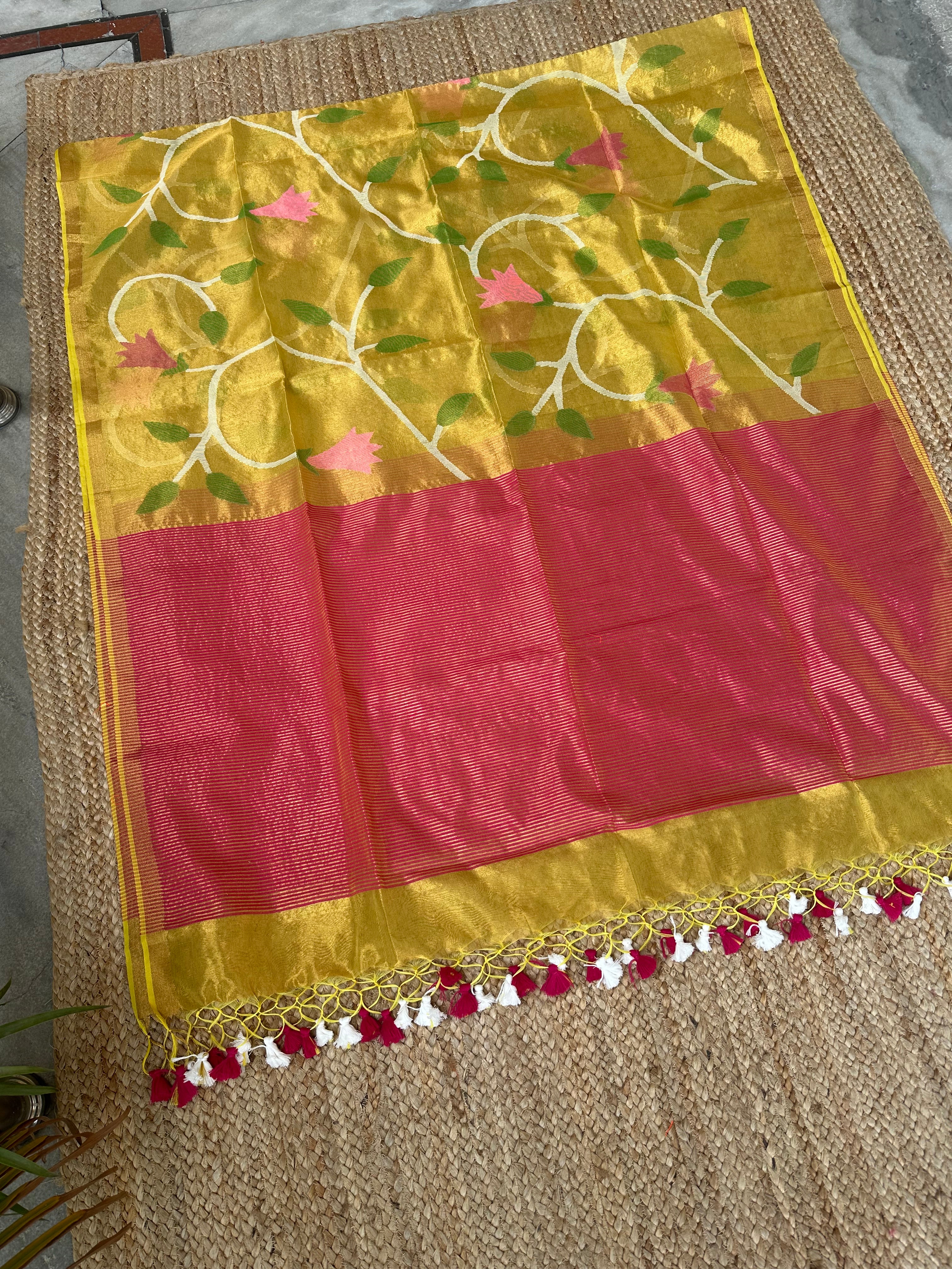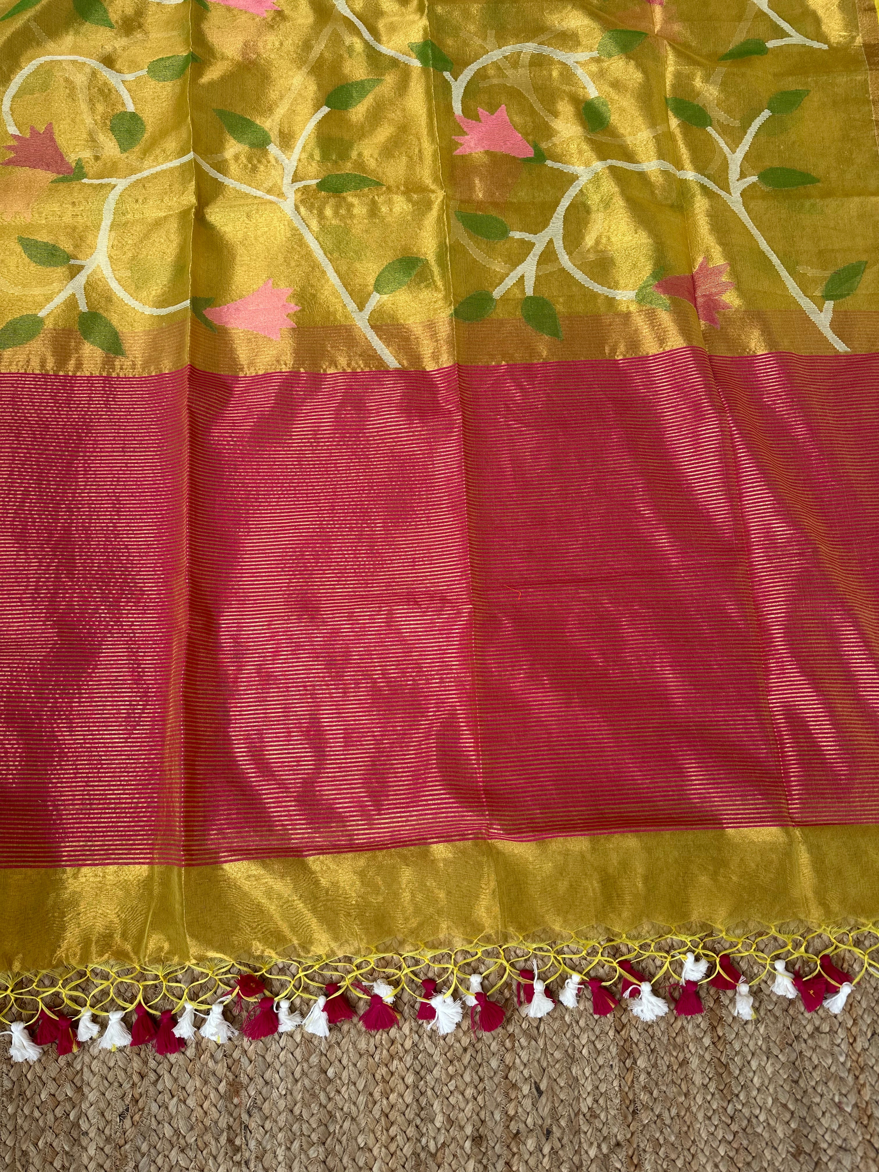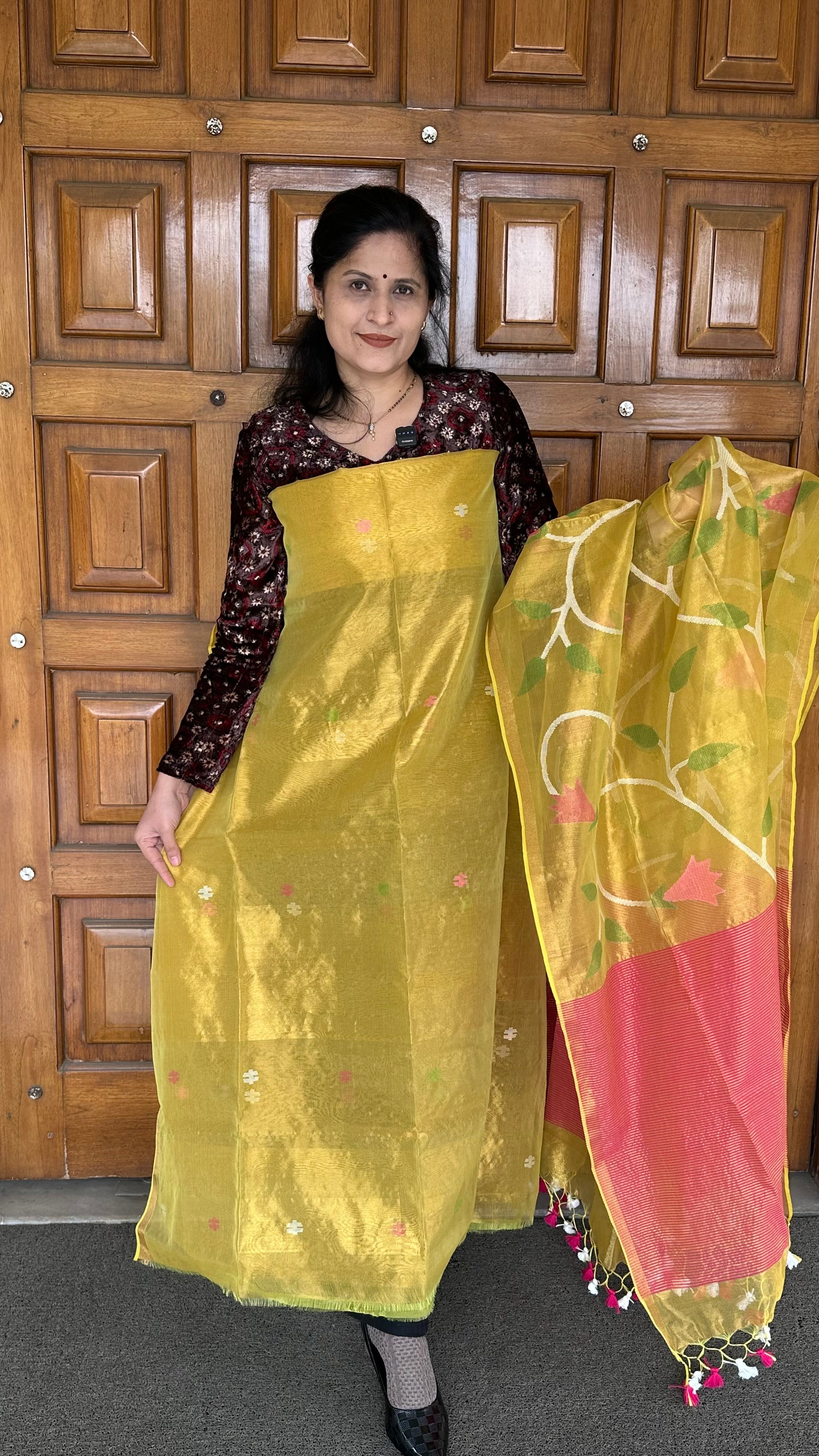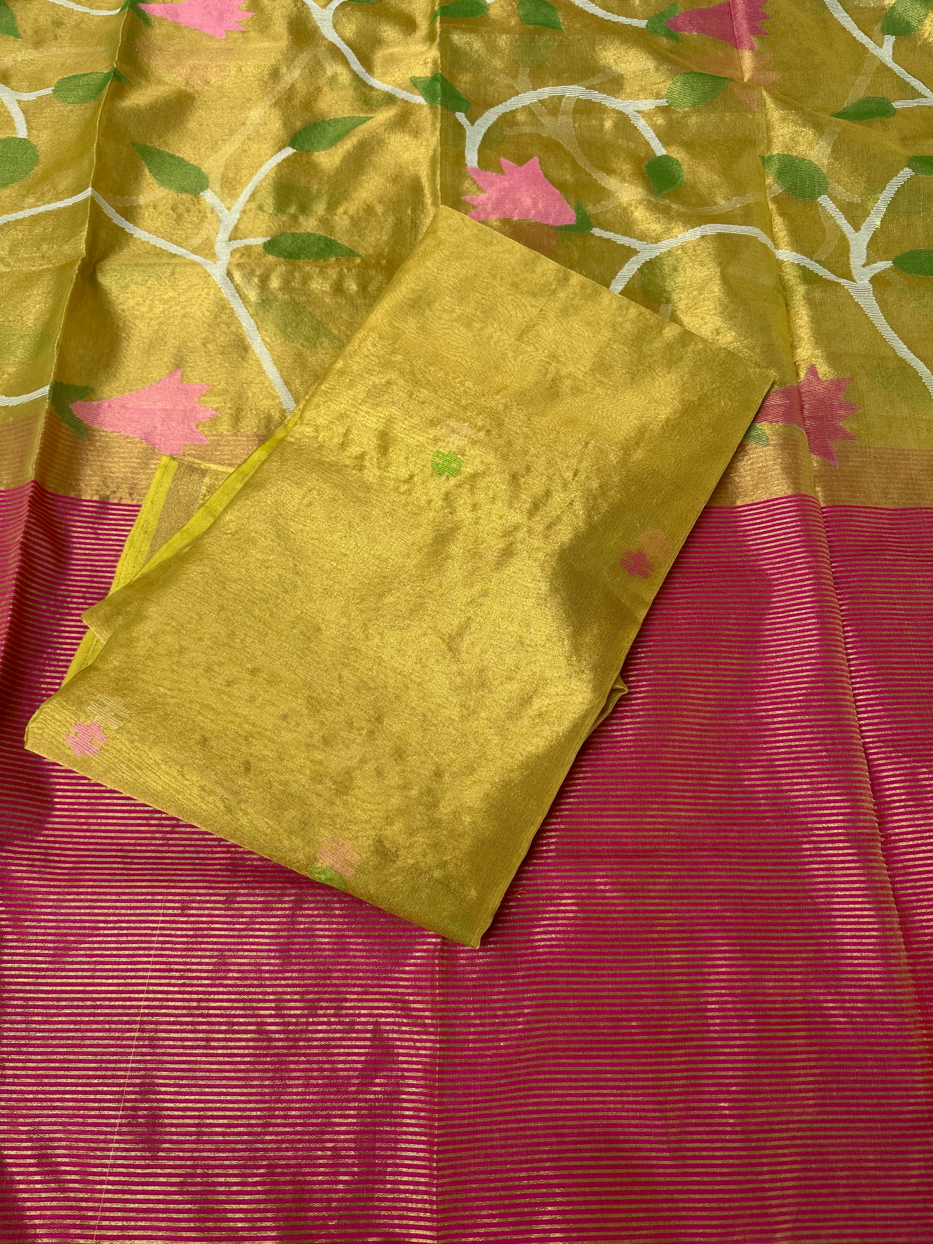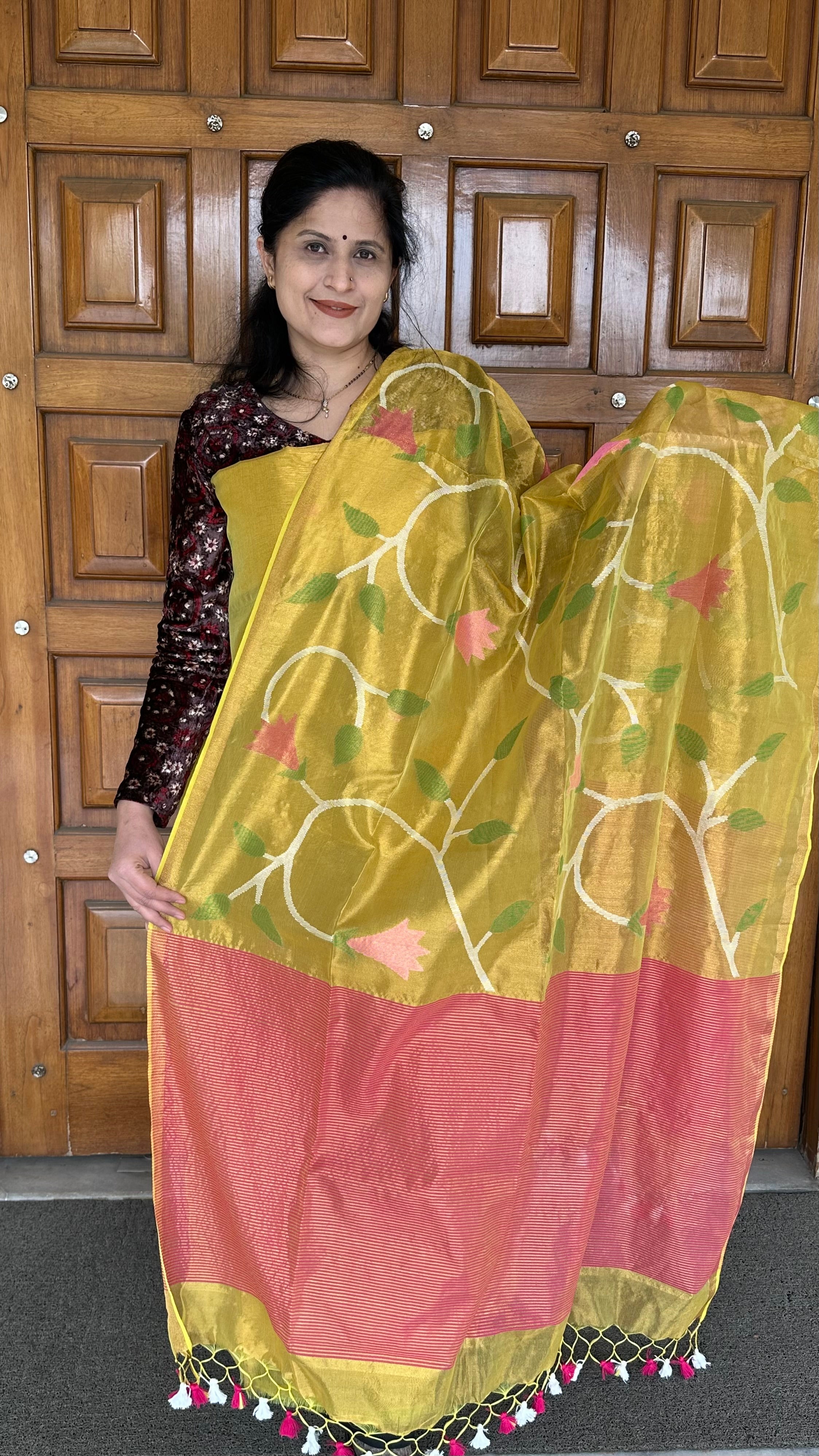Greenish Tissue Muslin Jamdani Handloom Kurta Dupatta Set