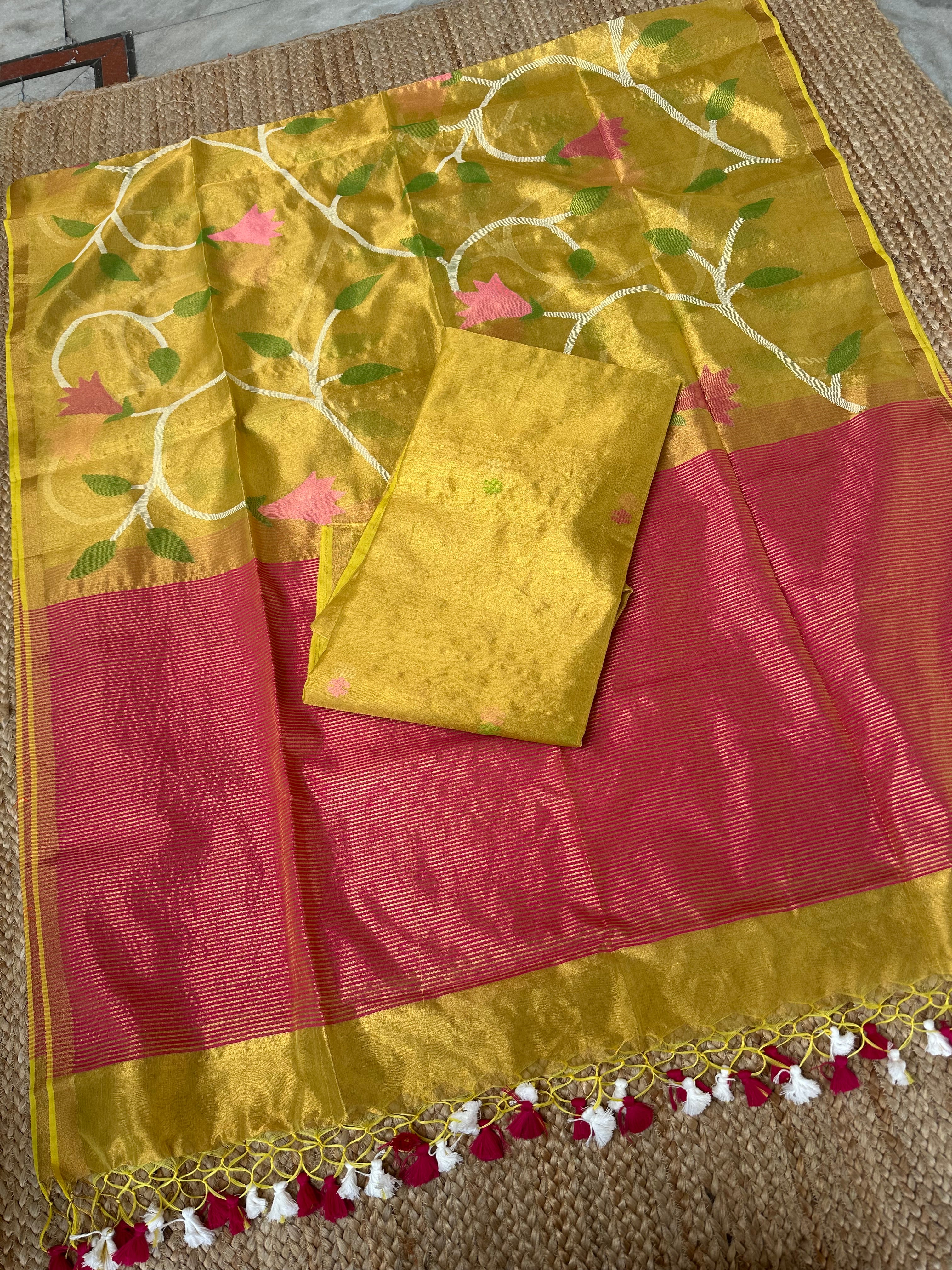 Linen : Though it is advisable to dryclean linen sarees. And please do the same of specially expensive sarees. But if you don't want to dryclean, then wash at home in cold water with some mild shampoo or ezee.