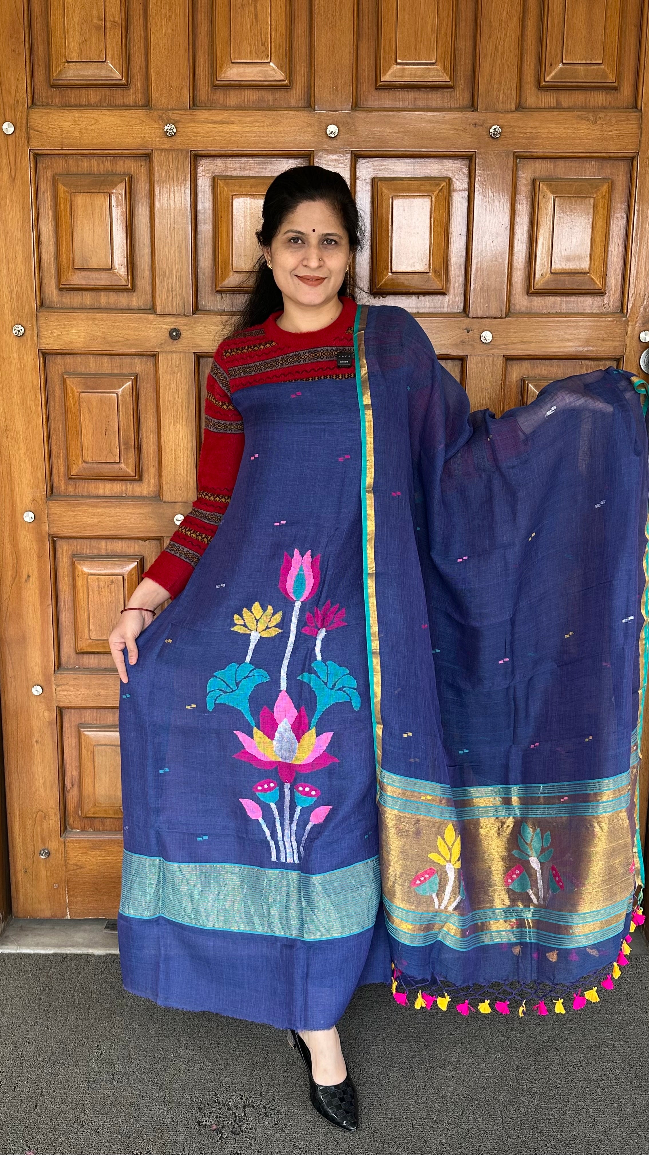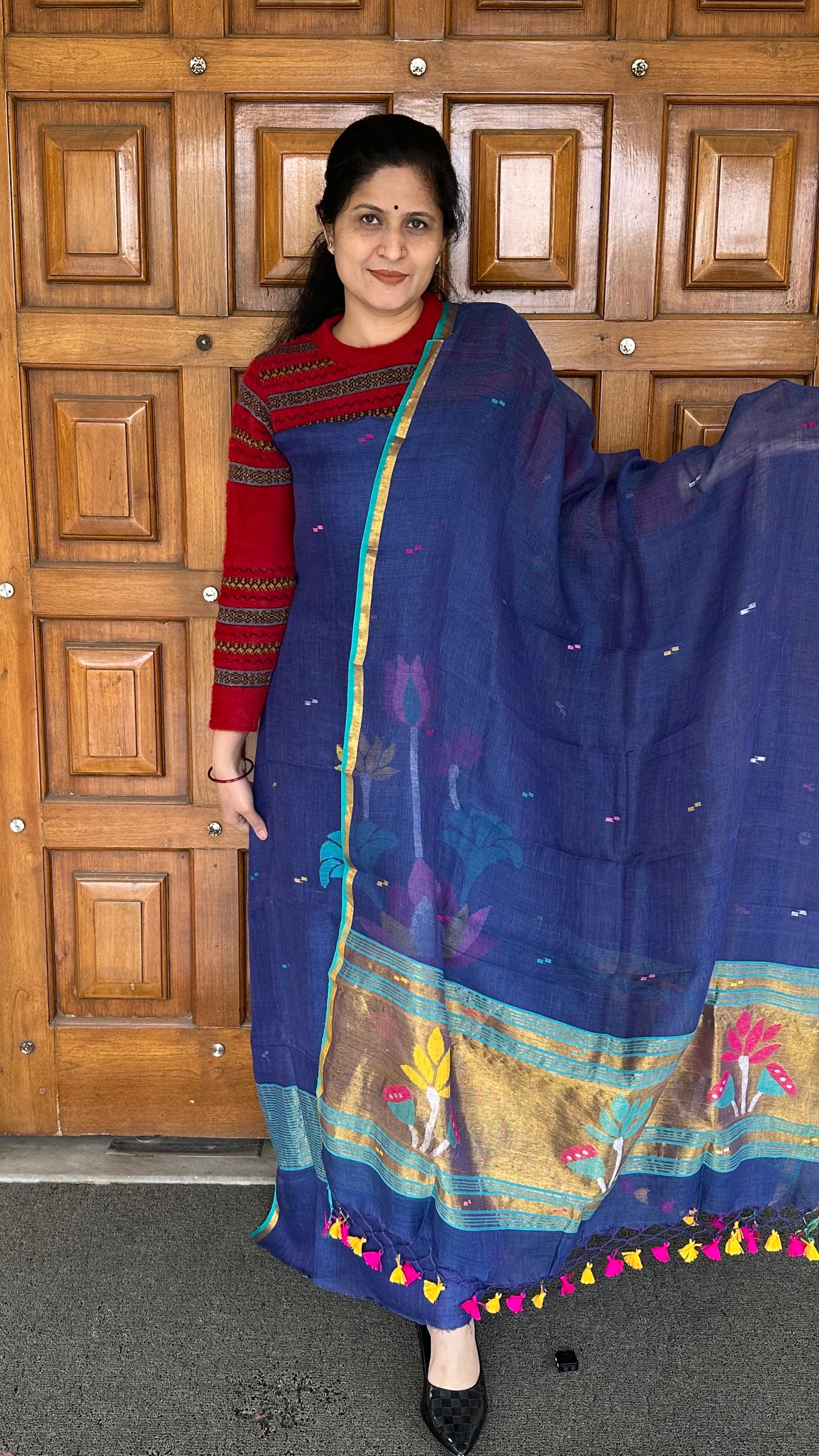 Dupatta: 2.5 mtrs with zari jamdani work on both pallus