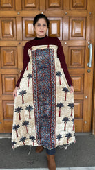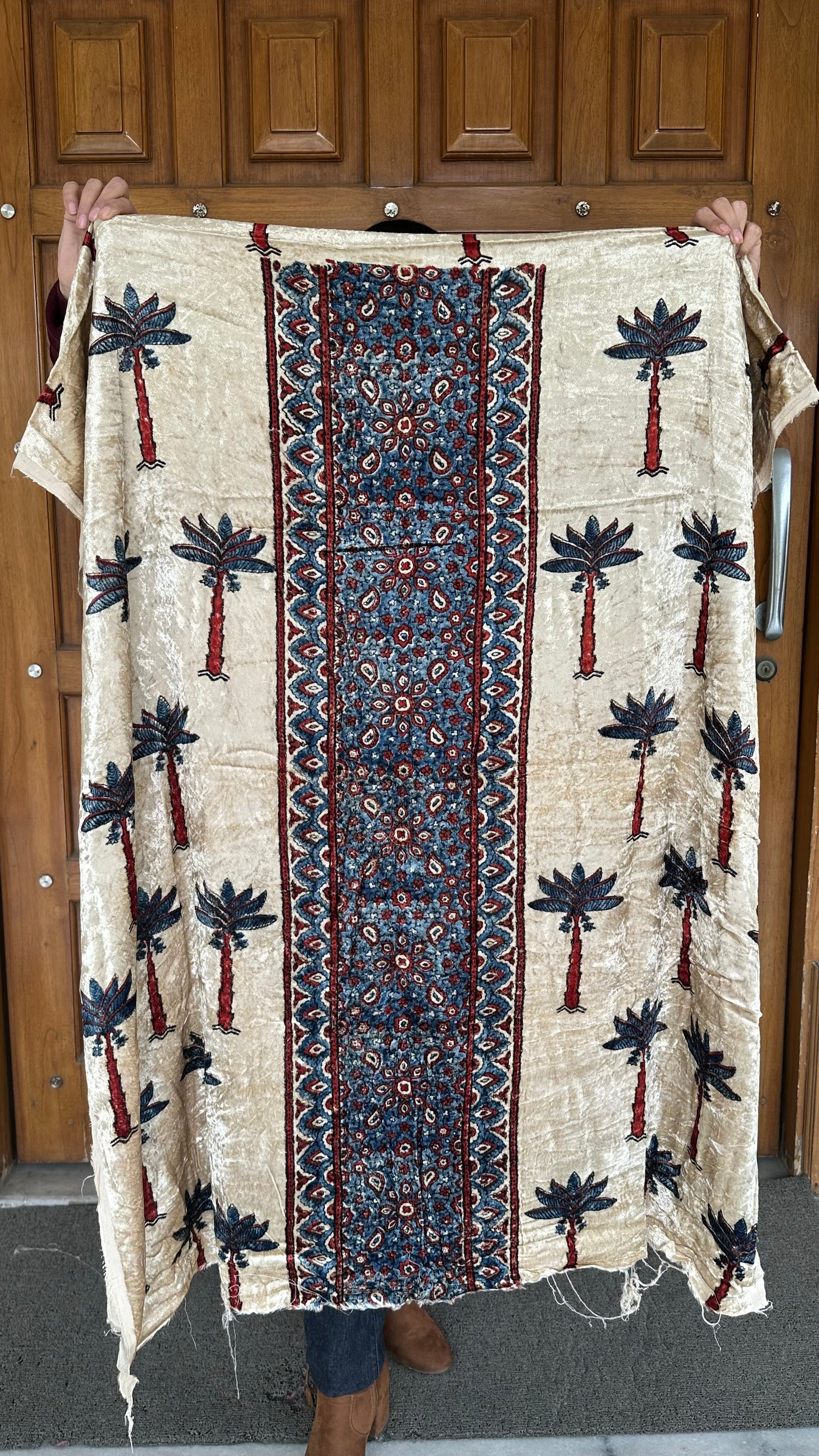 Pure Ajrakh Handblock Printed Velvet Kurta fabric.