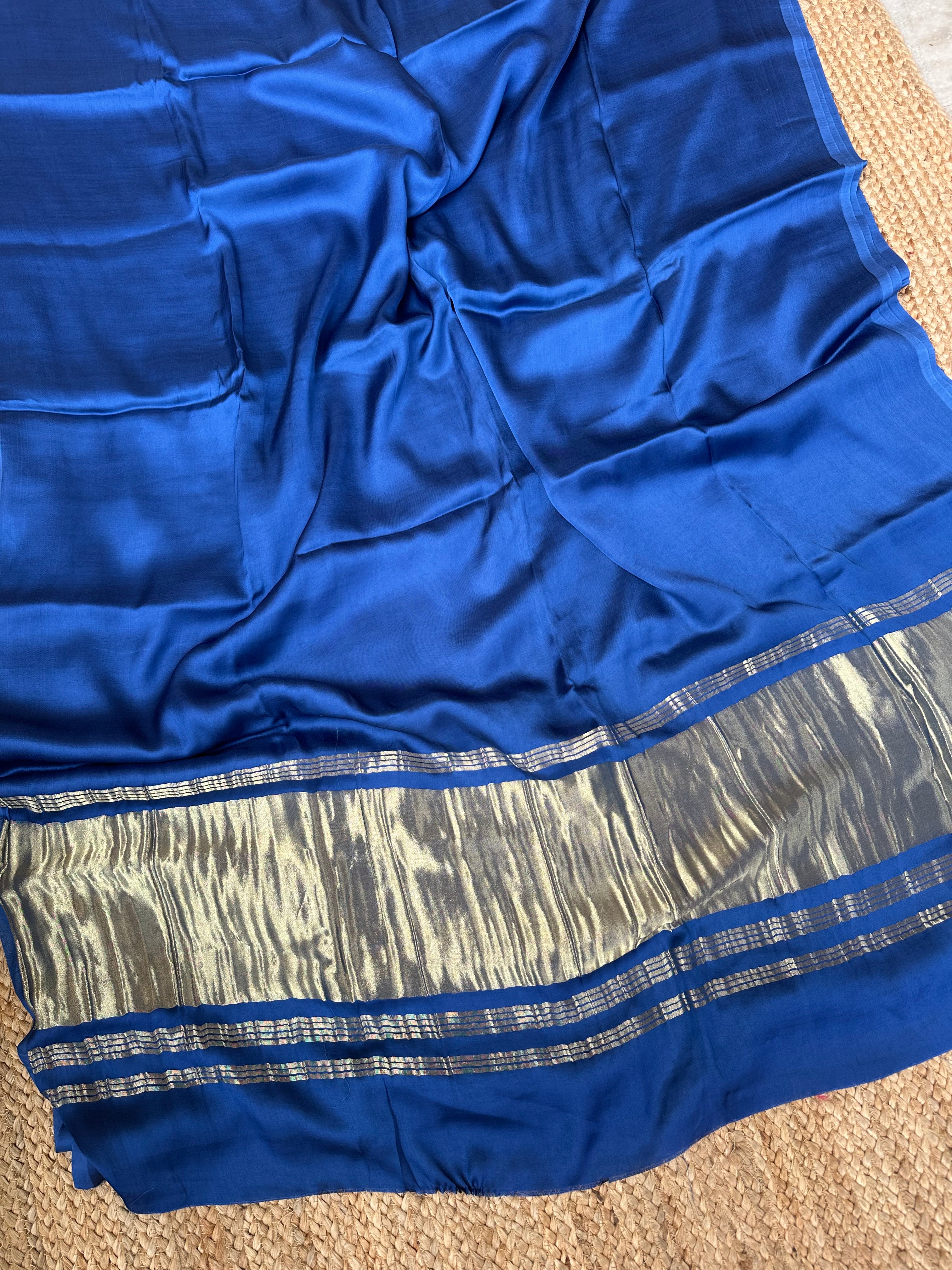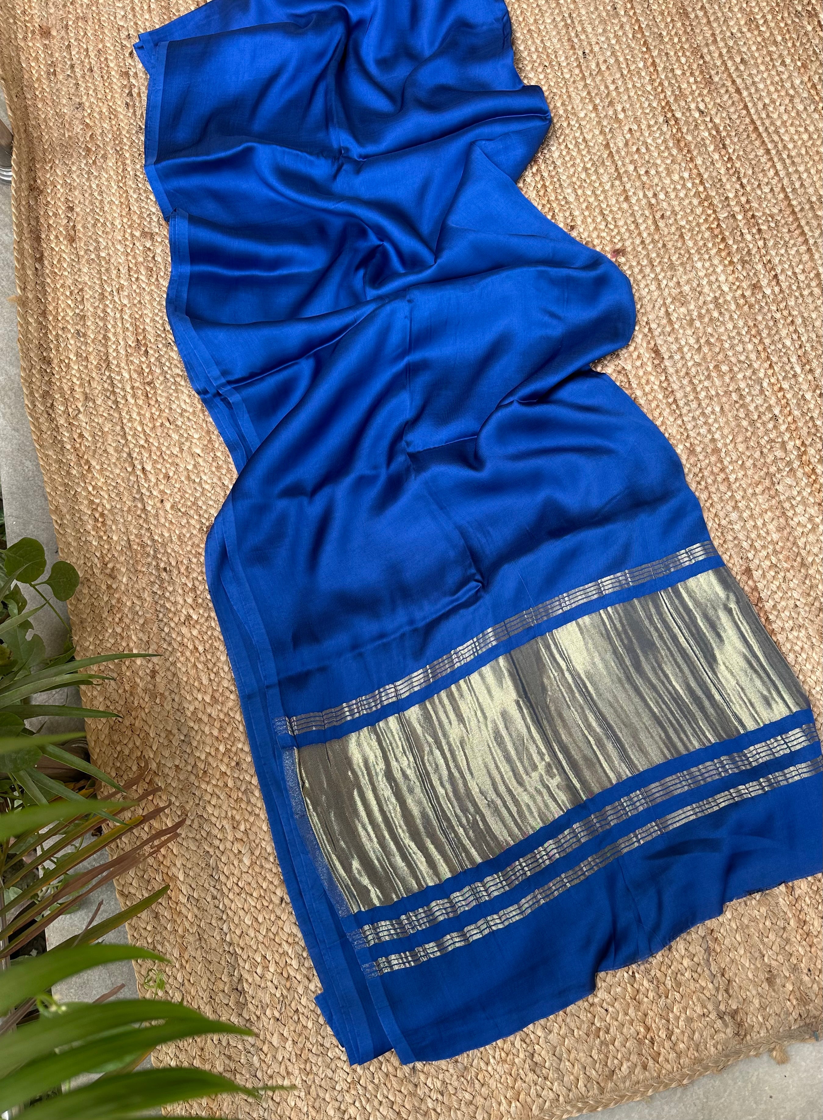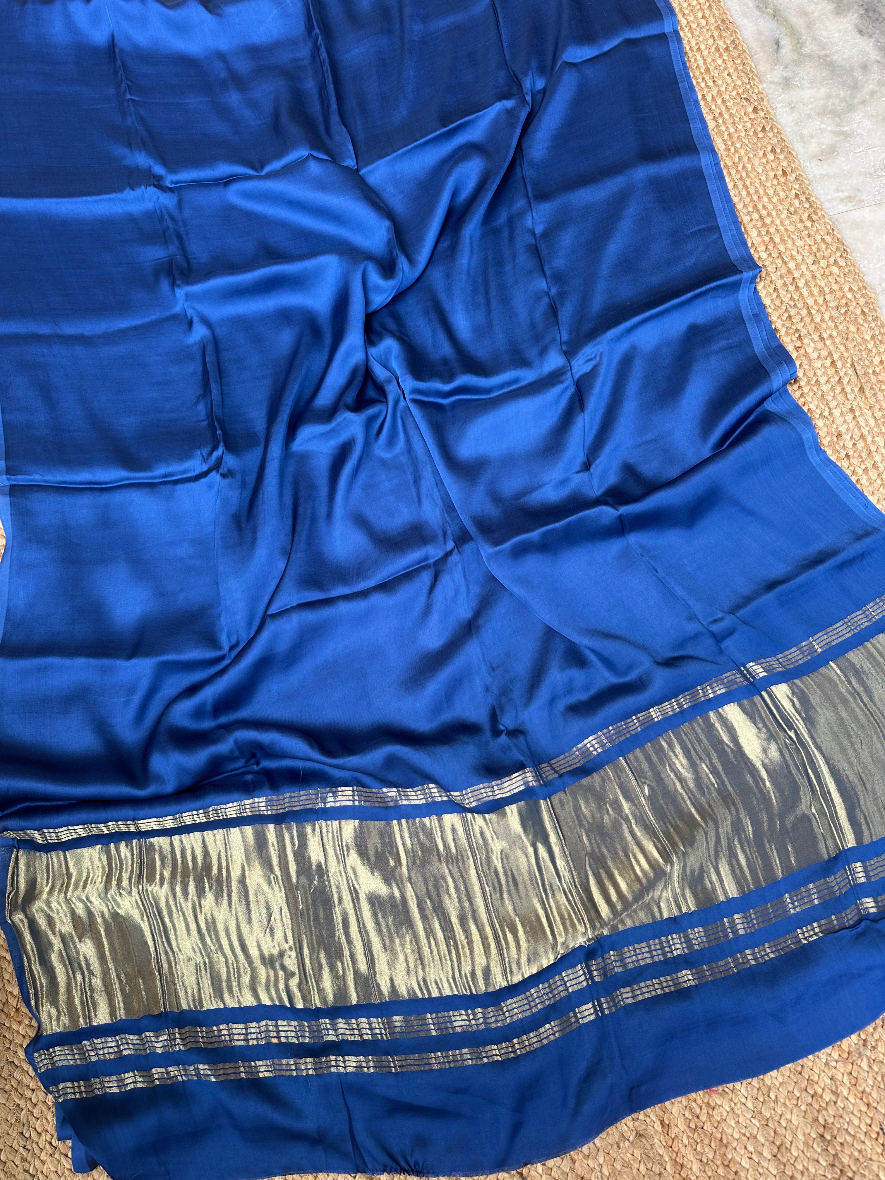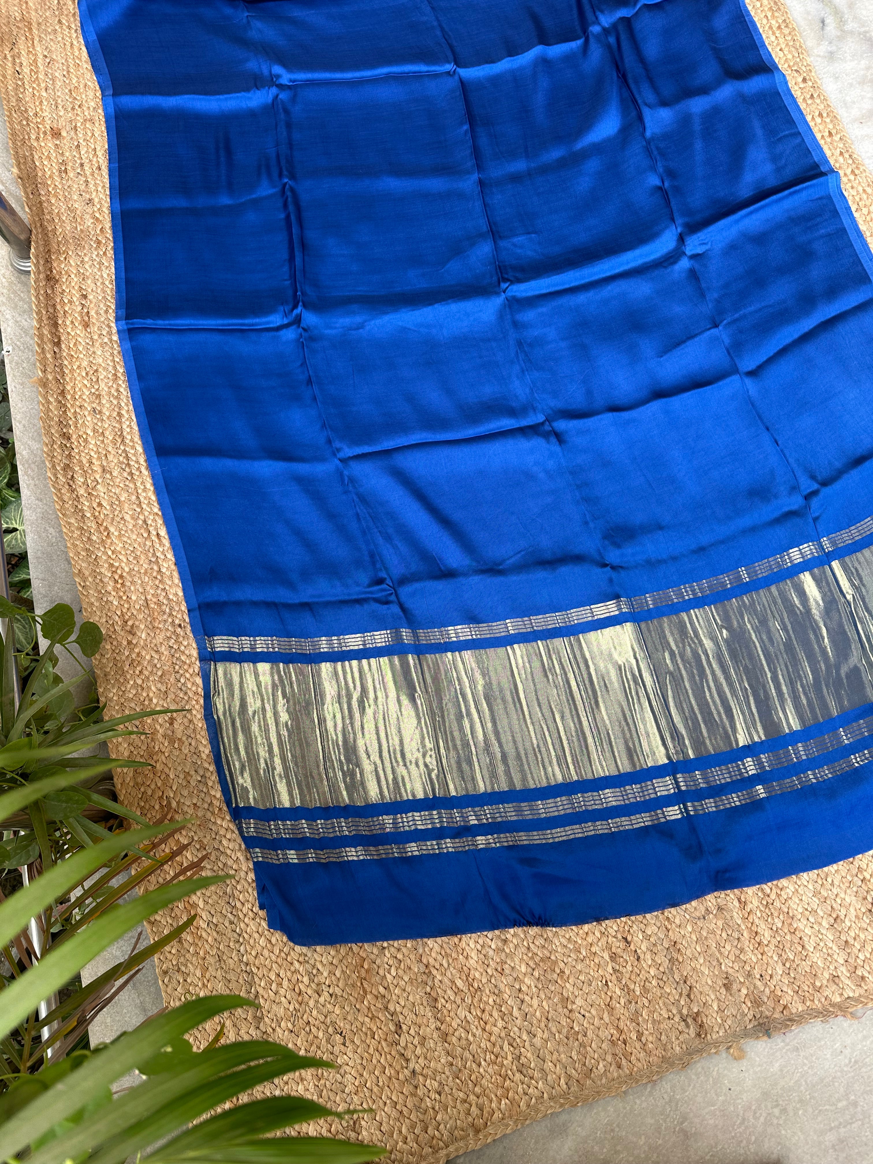 Light Navy Blue Plain Modal Silk Saree with Zari Pallu