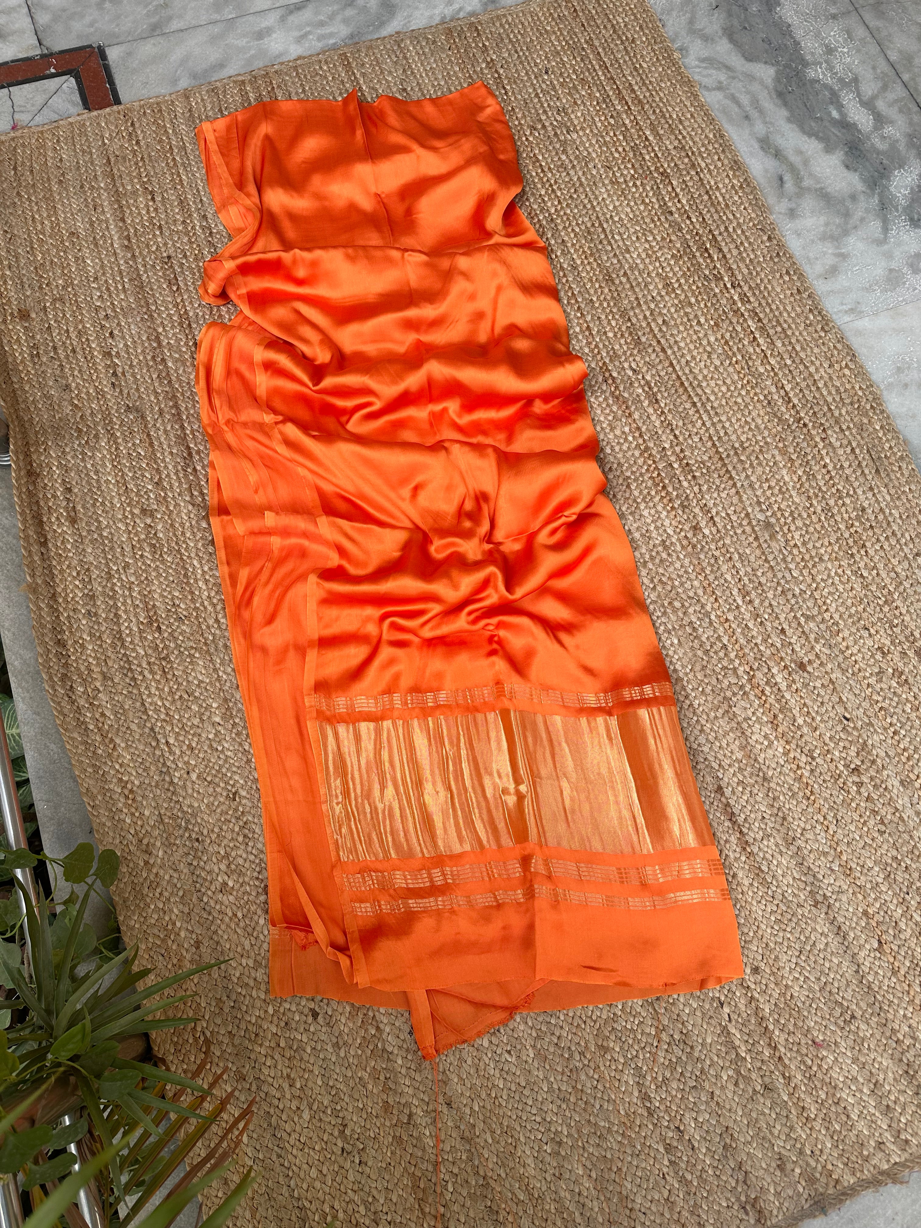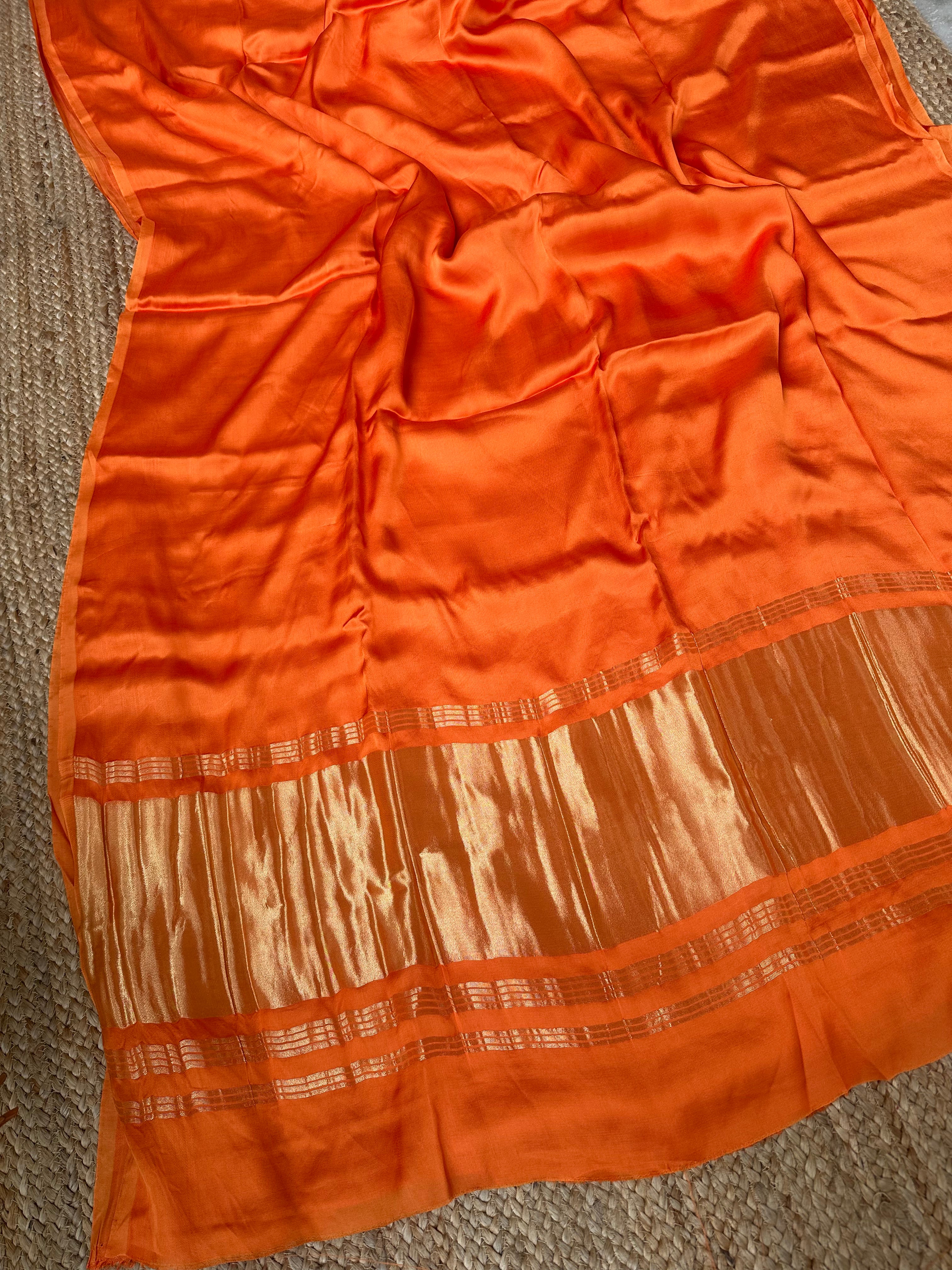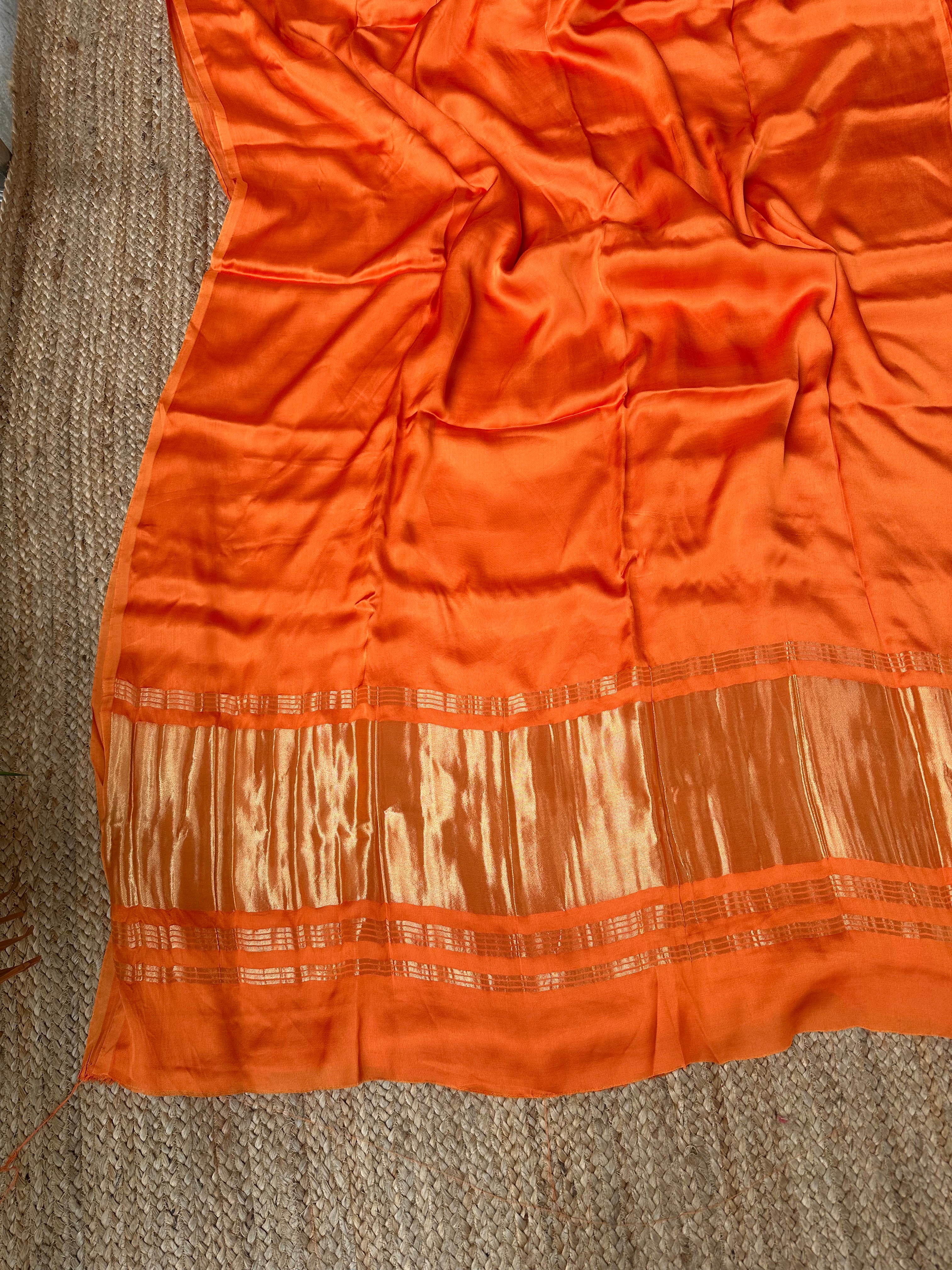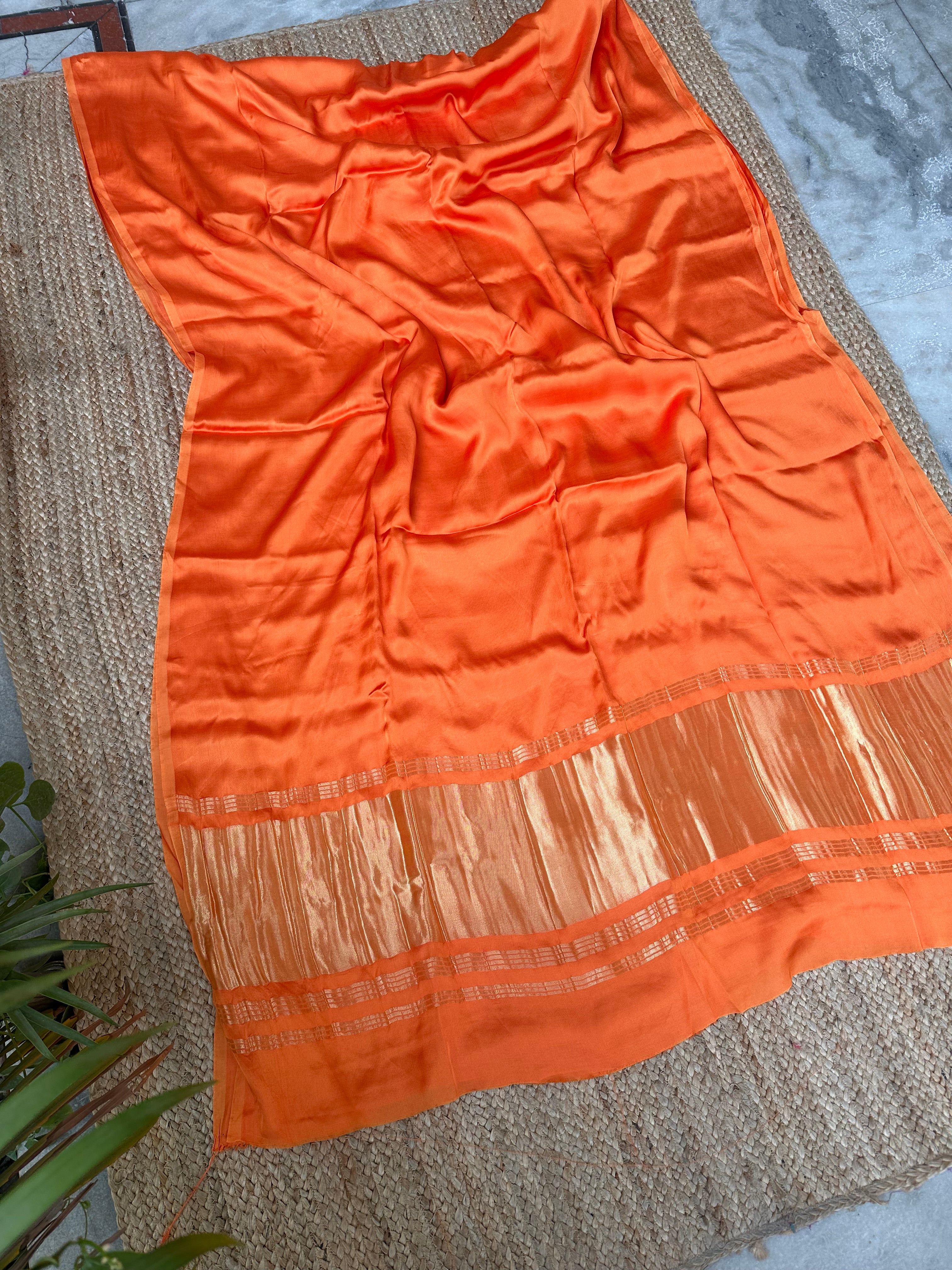 Light Orange Plain Modal Silk Saree with Zari Pallu