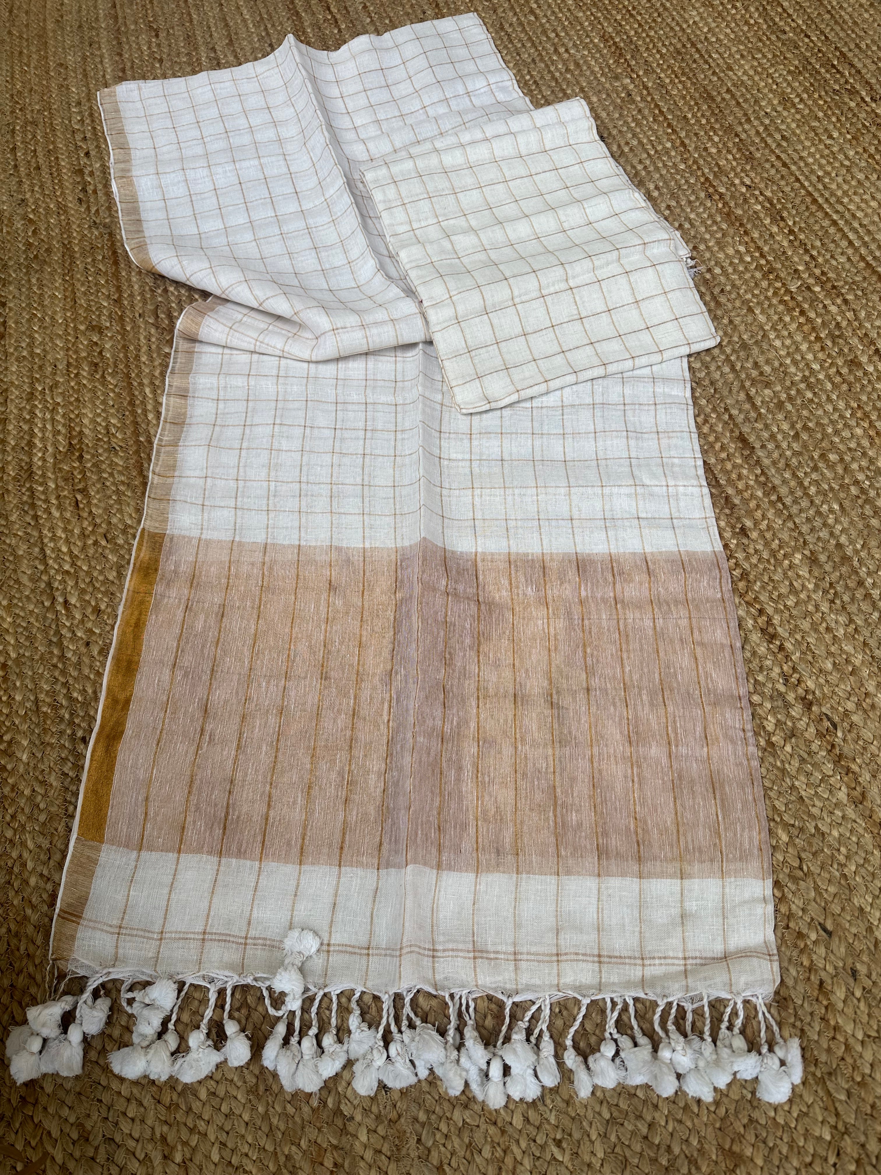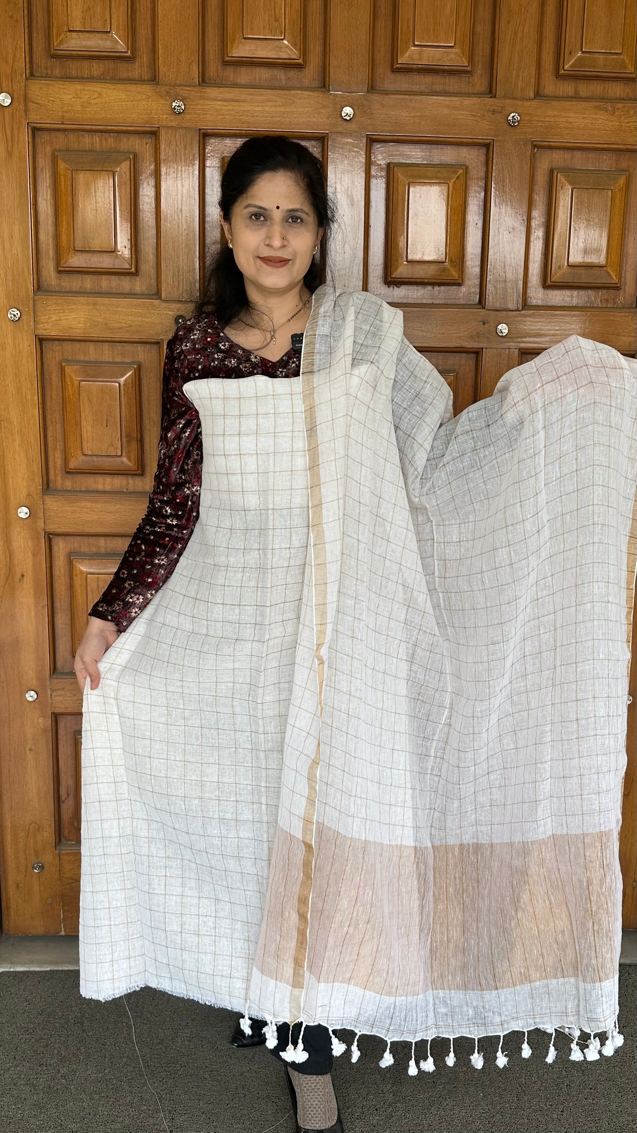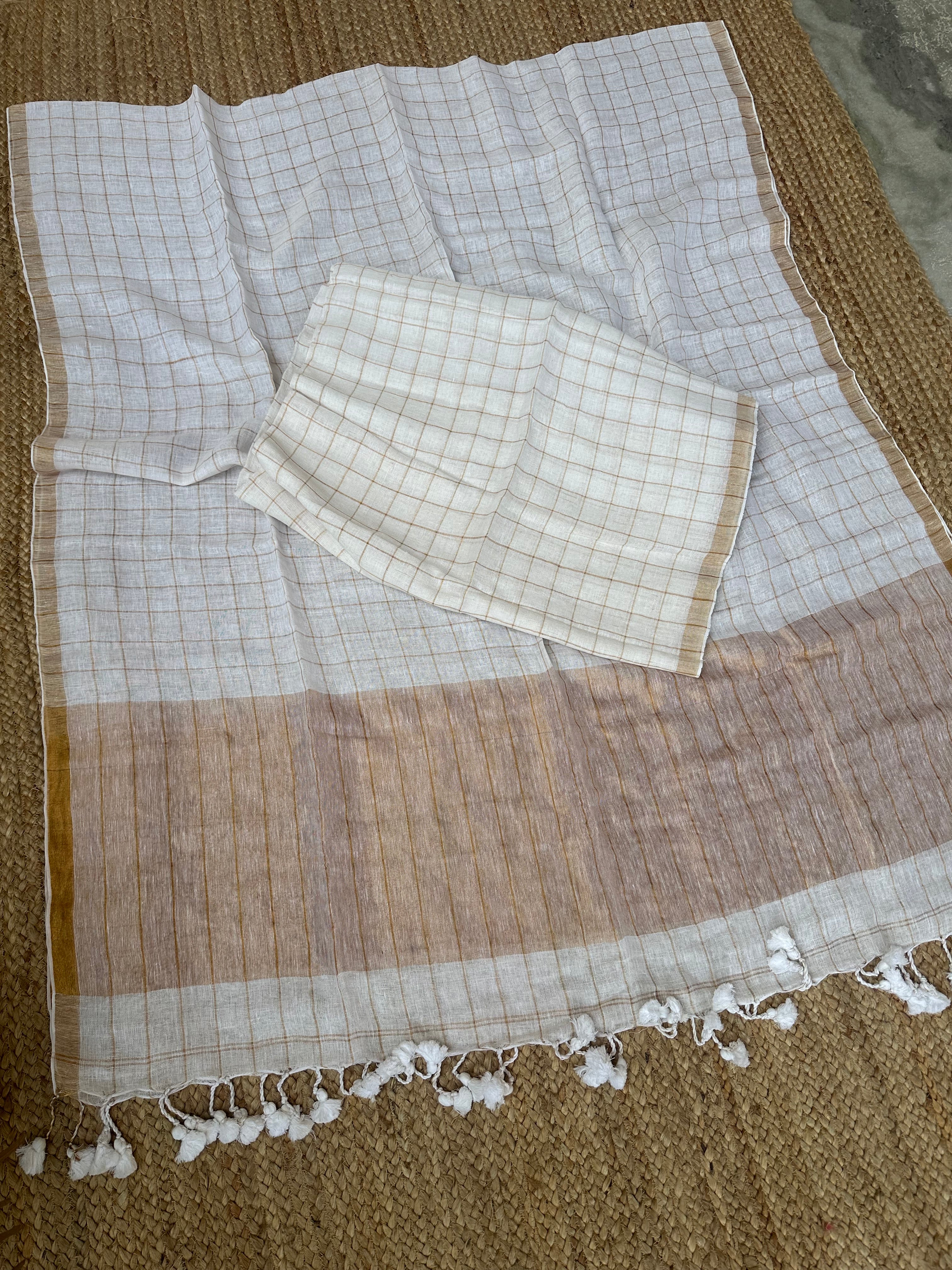 Kurta: Pure Jayshree Linen Handloom Kurta fabric with zari checks . 2.7-2.9 mtrs