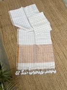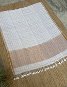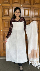 Off White Linen Zari Checks Handloom Kurta Dupatta Set