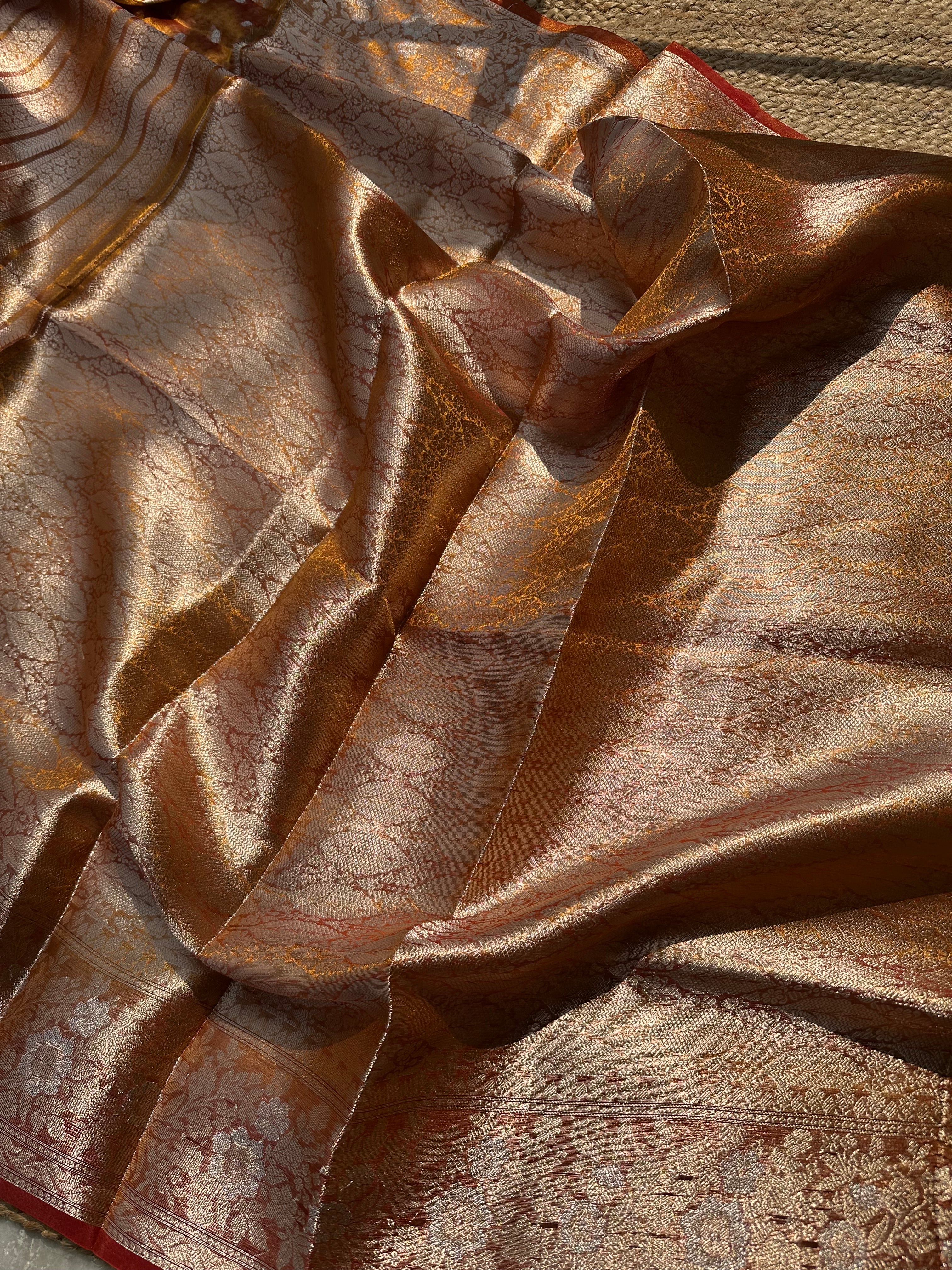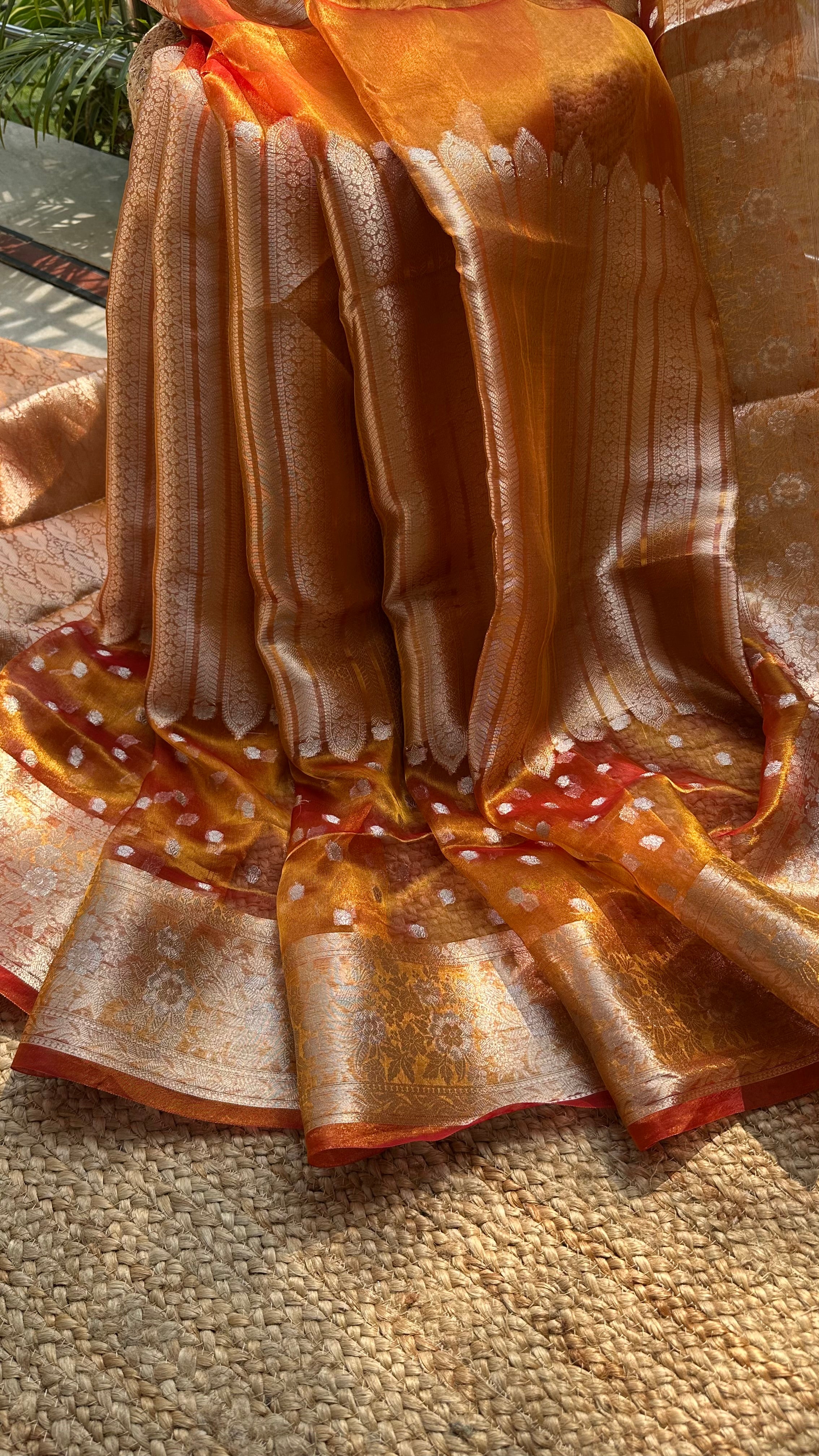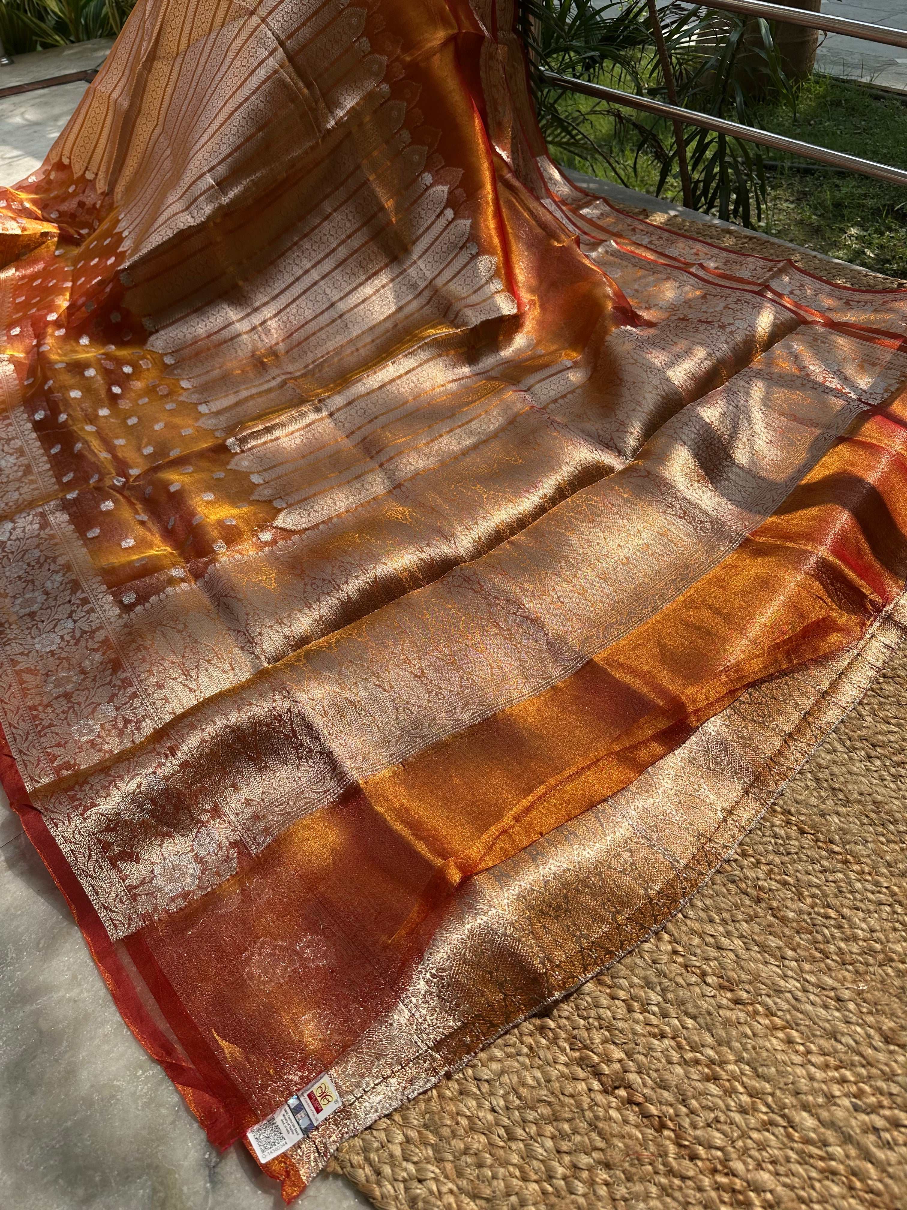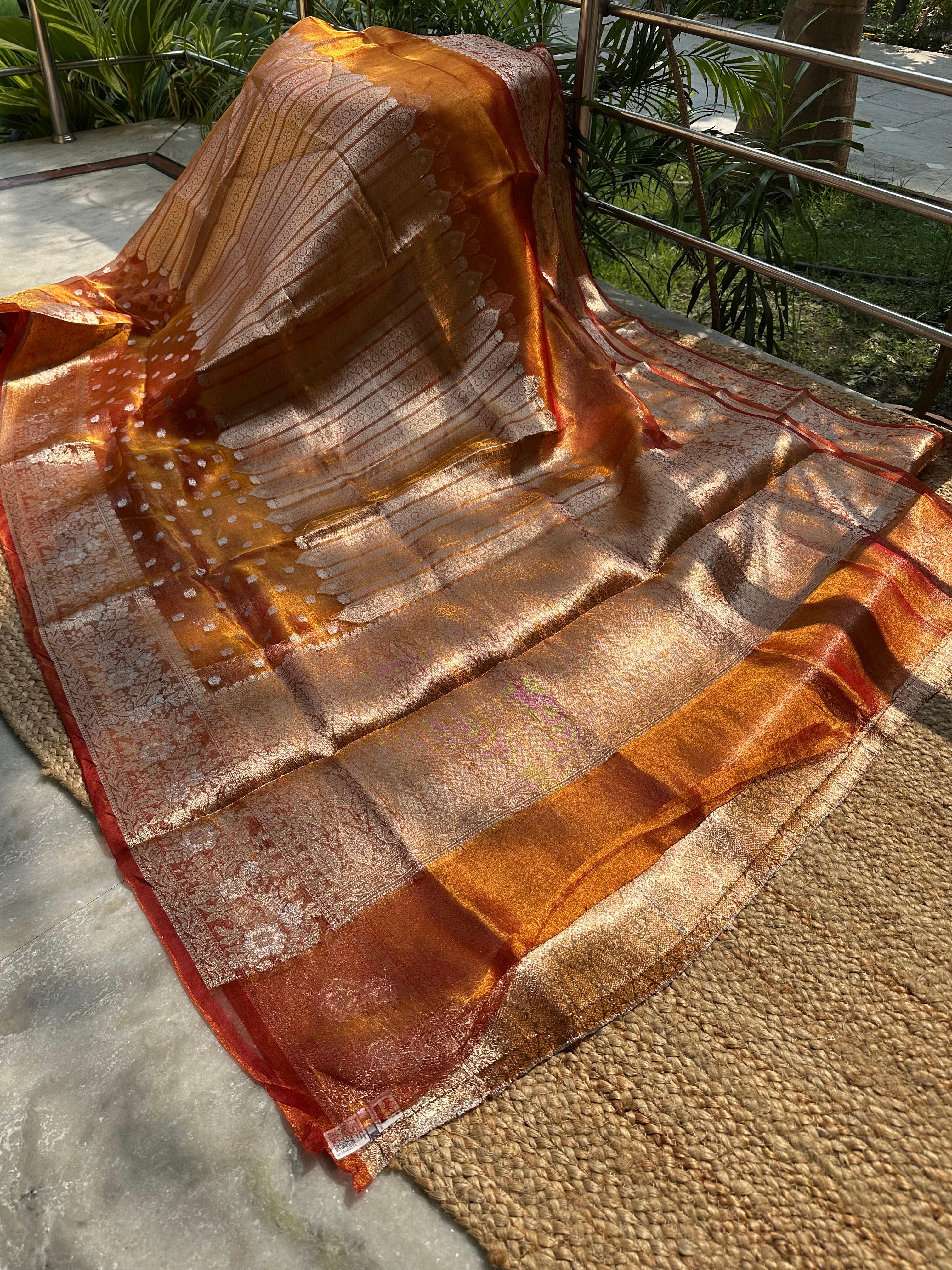 Orangish Mustard Pure Tissue Kora Silk Saree silkmark certified