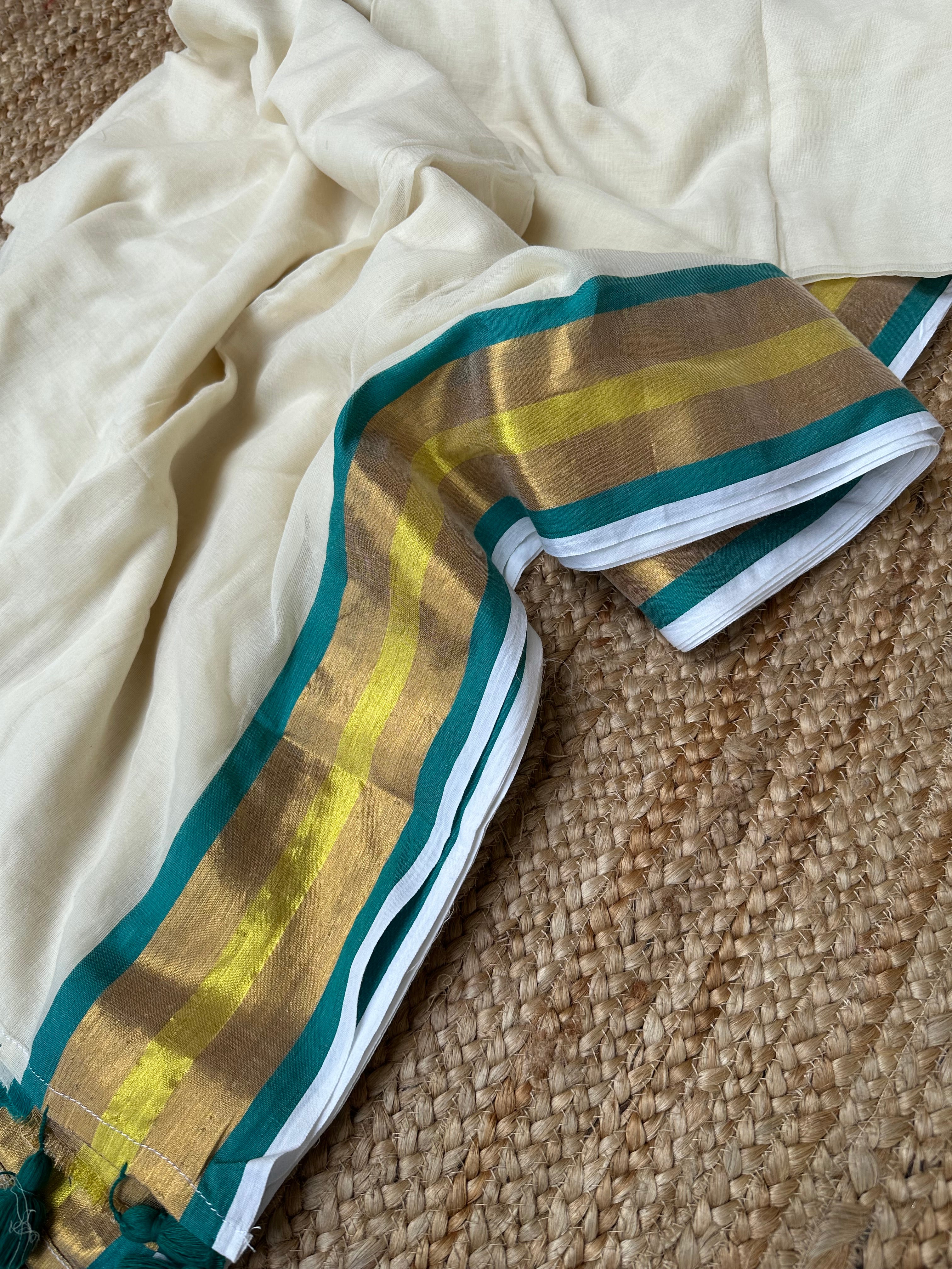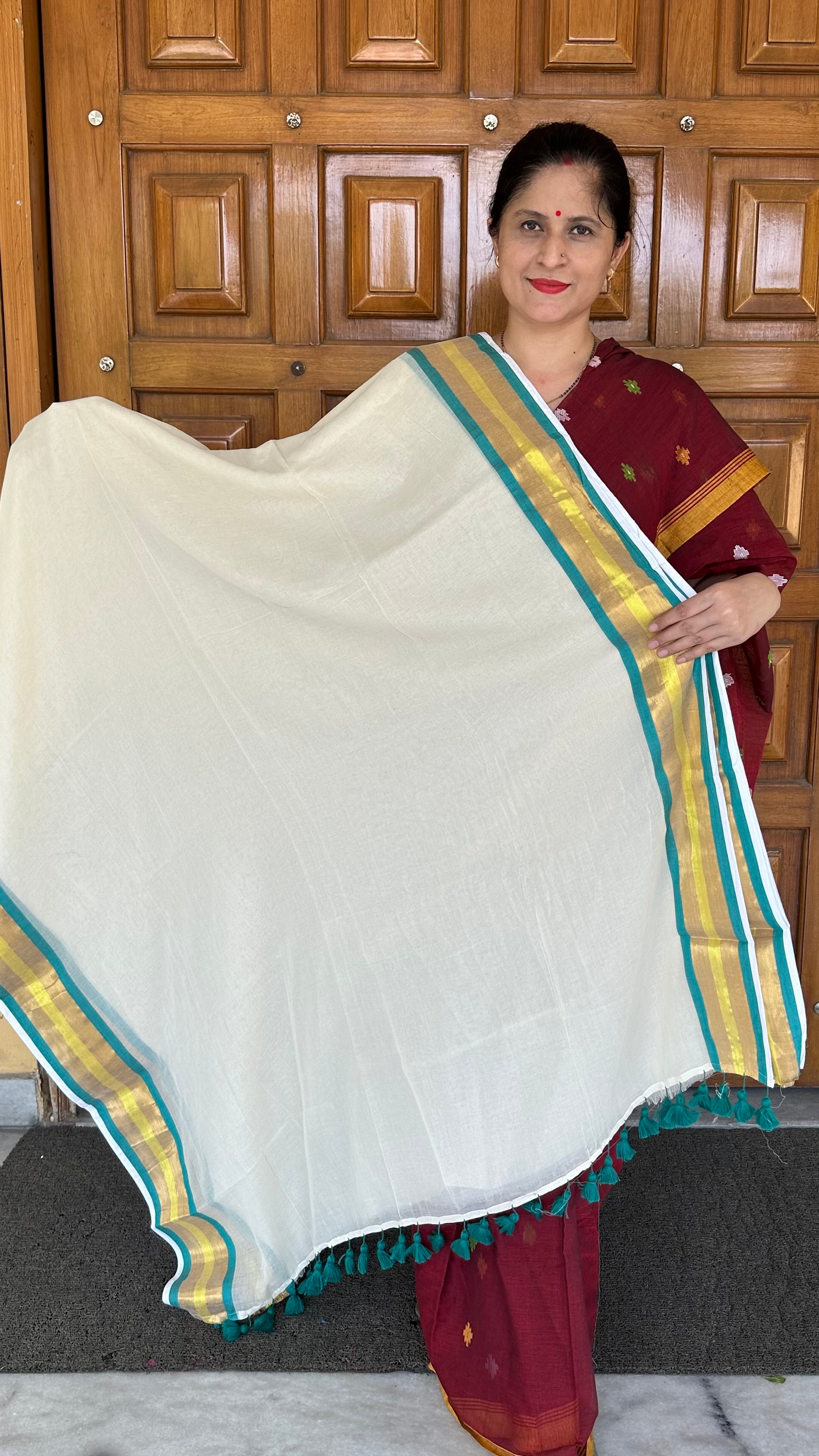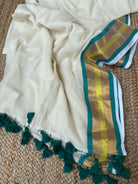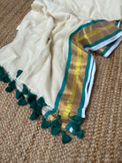 Material: Pure cotton handloom saree with contrast colour border and tassles. The saree is soft and made with premium quality cotton. Length 6 mtrs.
