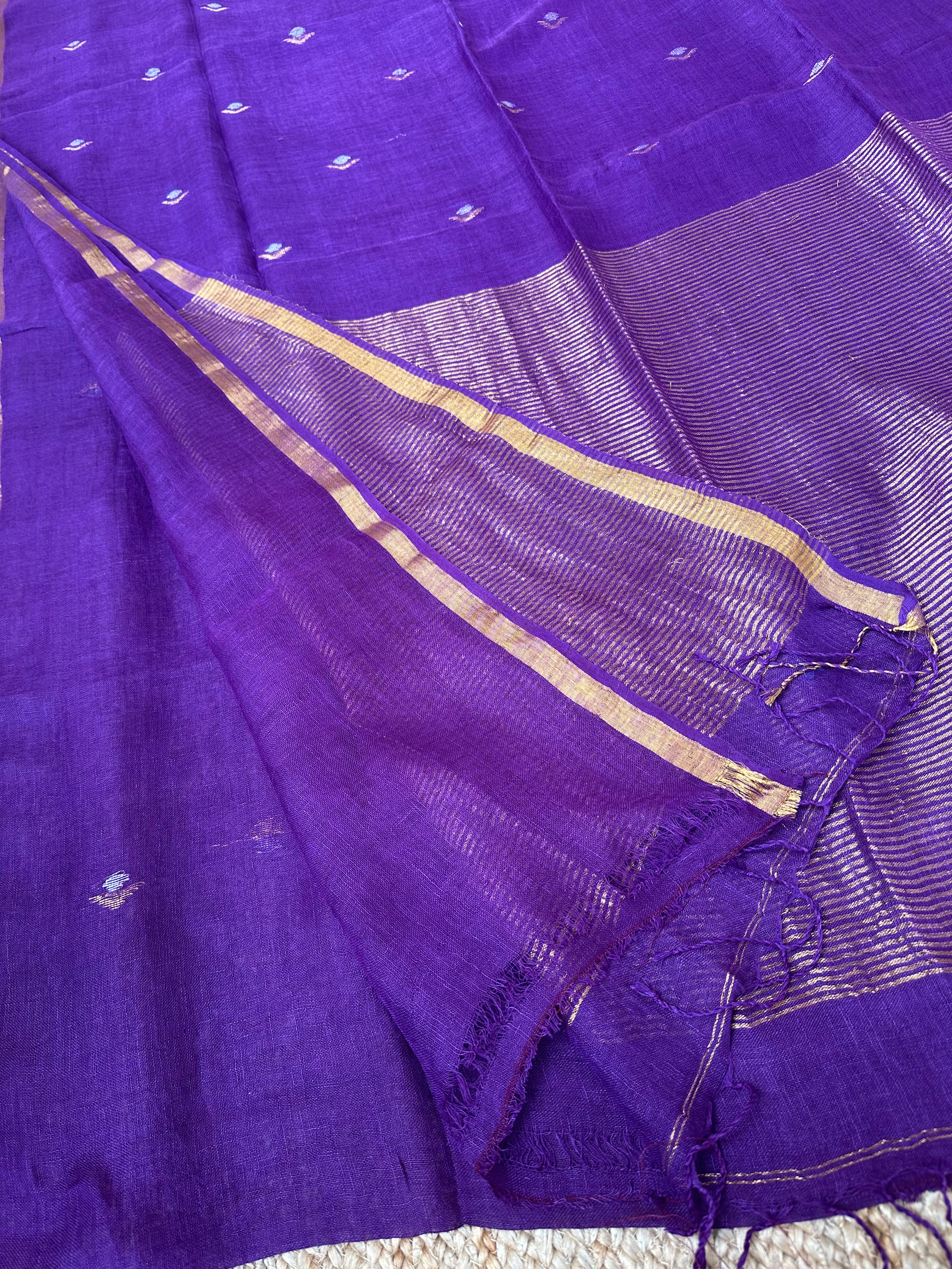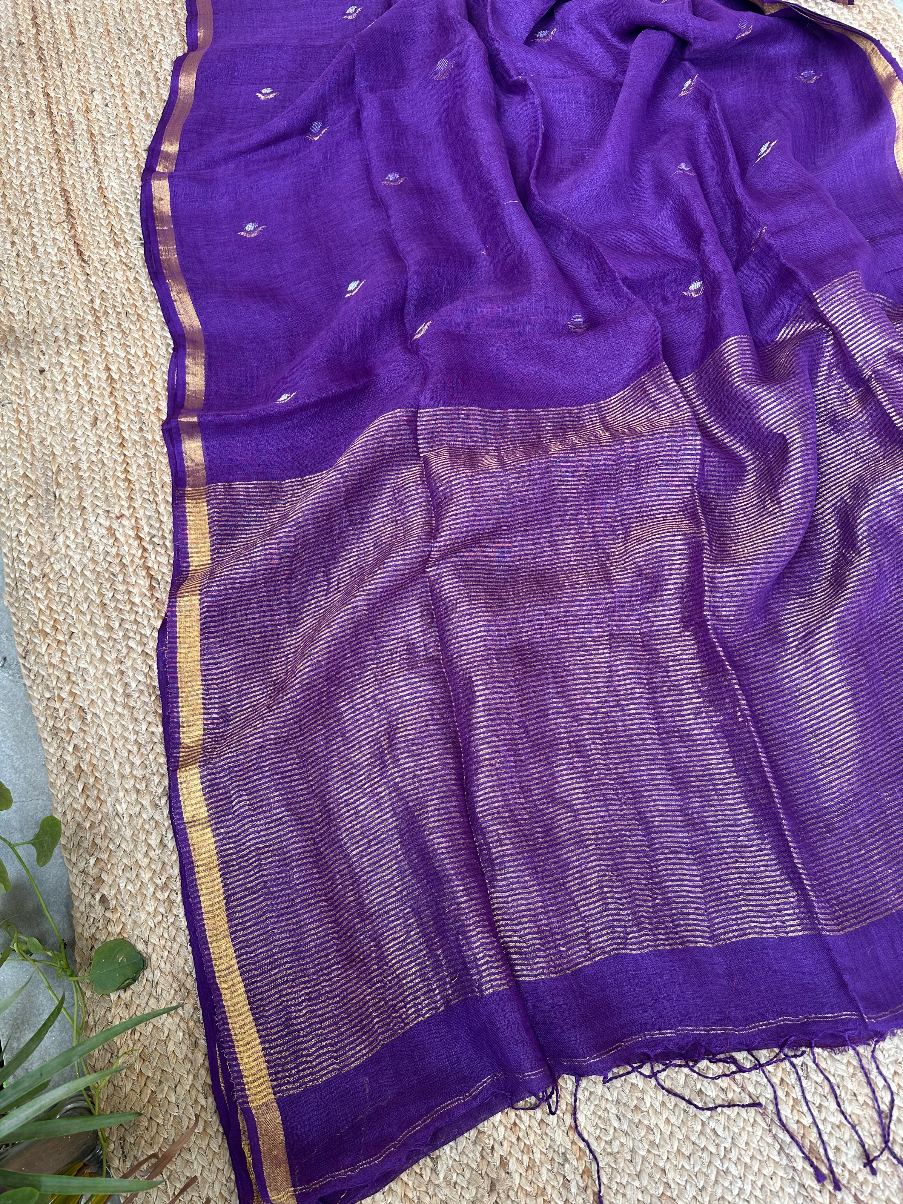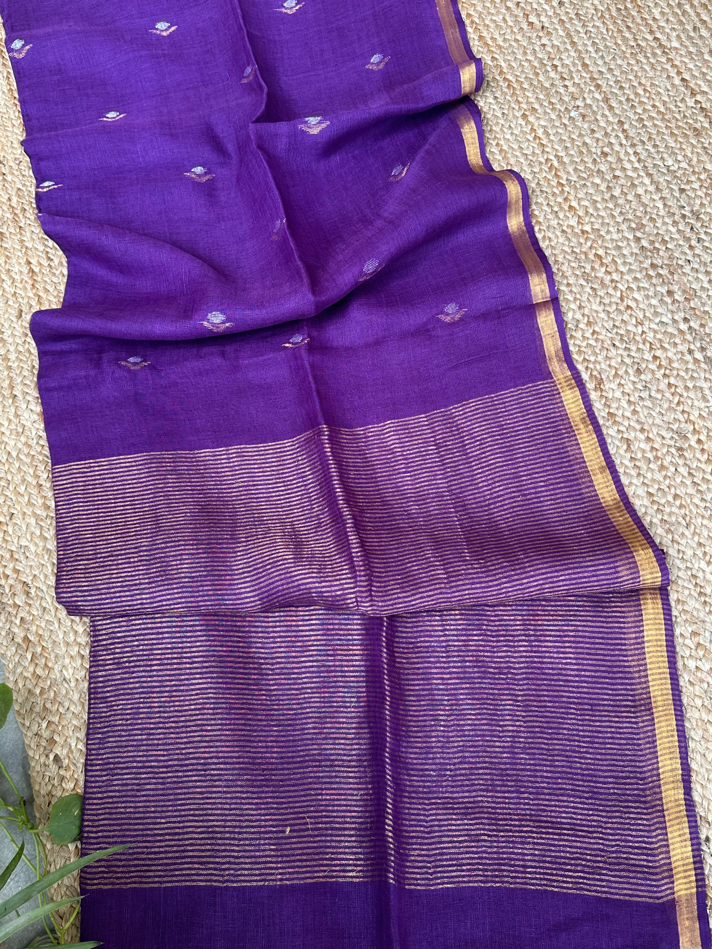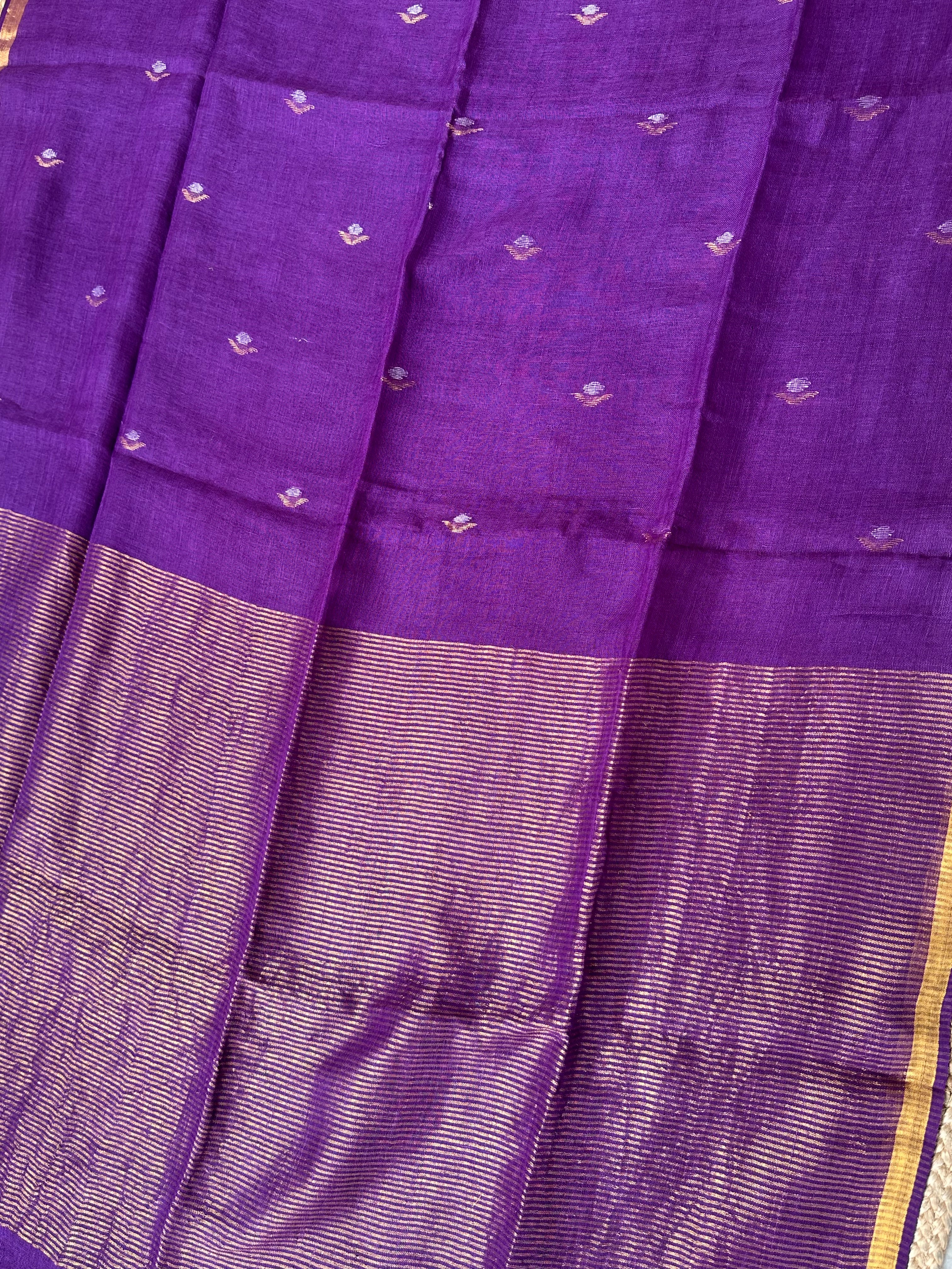 Pure Handloom Saree with Golden Zari bootas- Purple