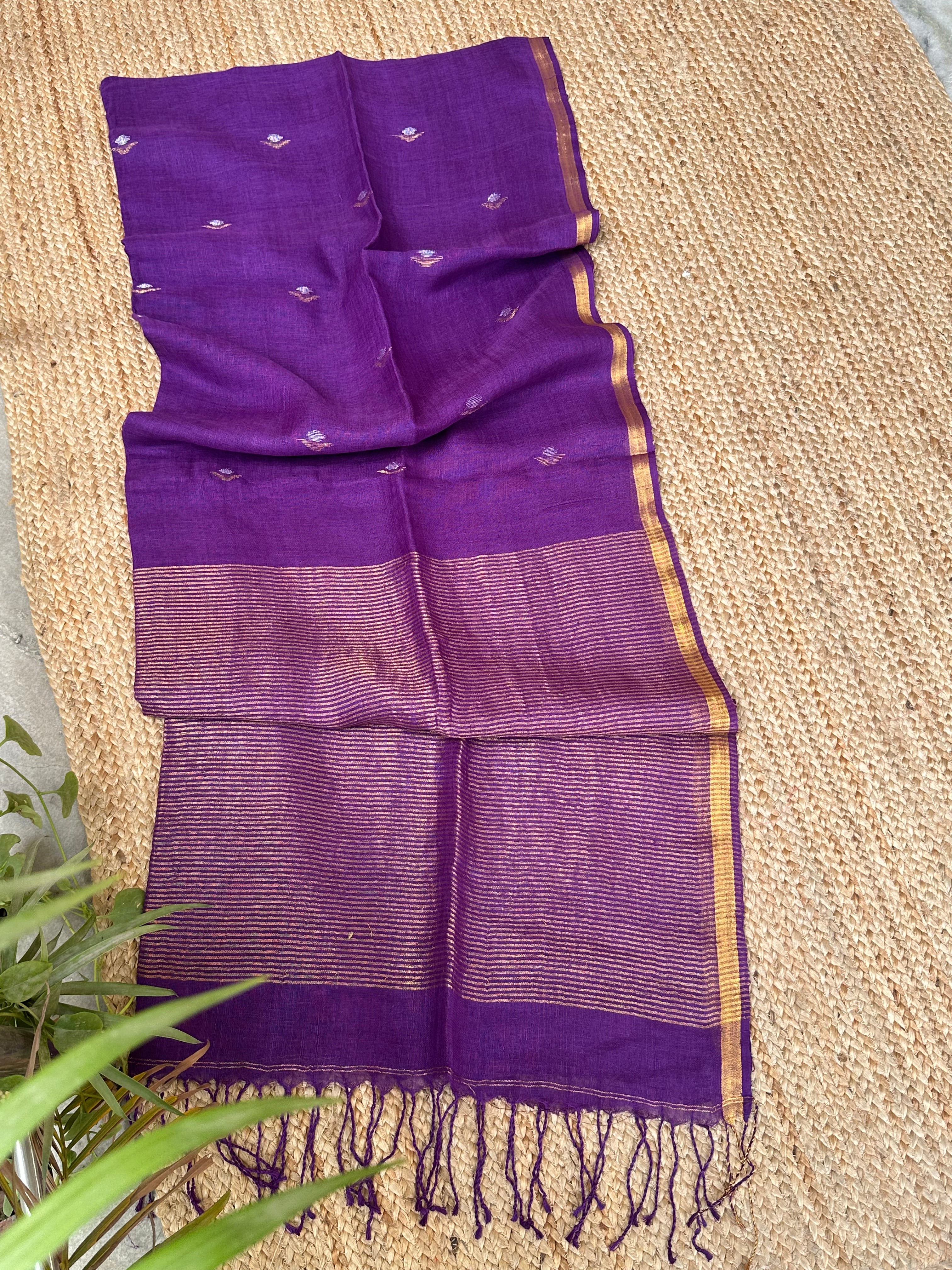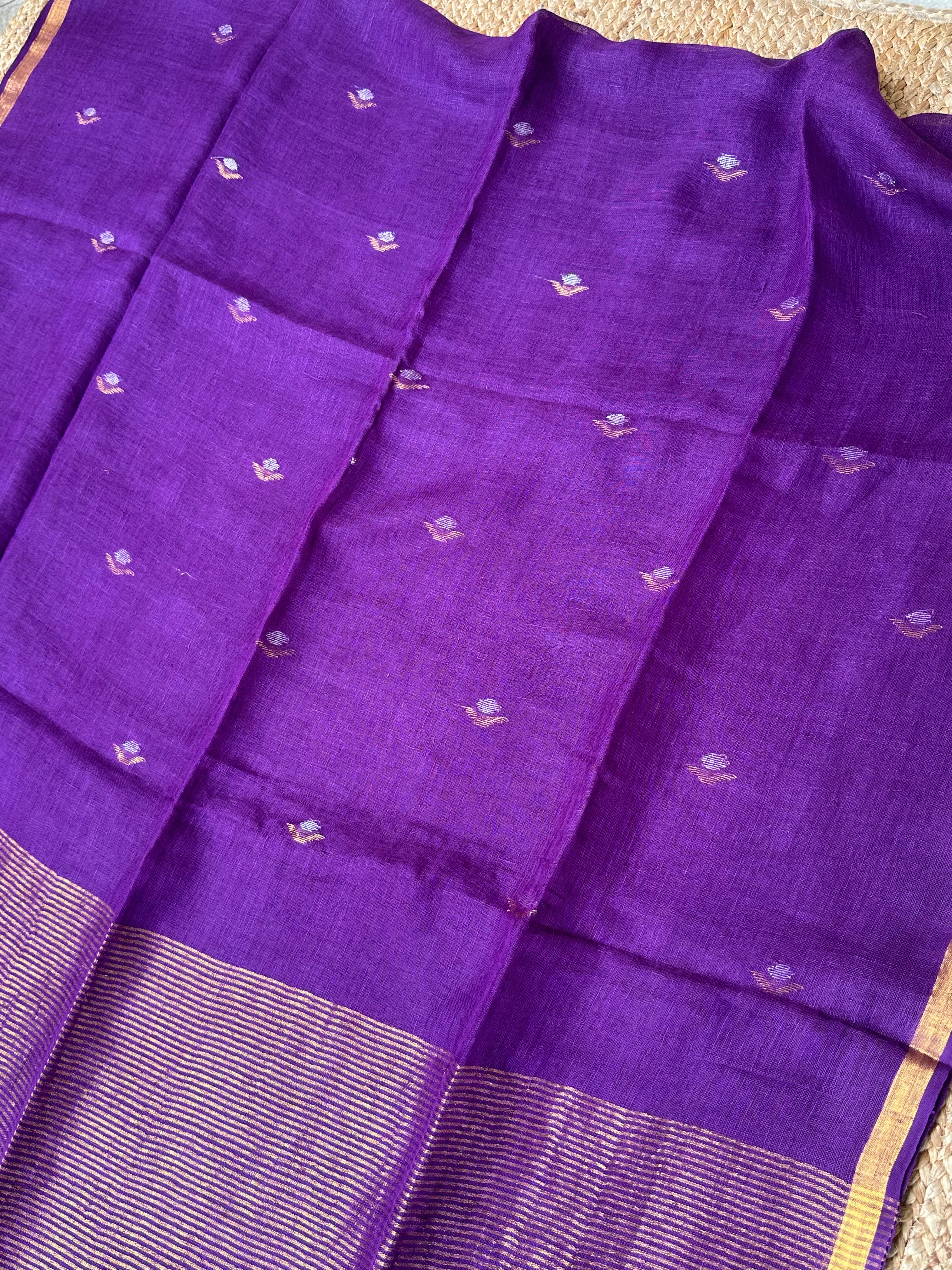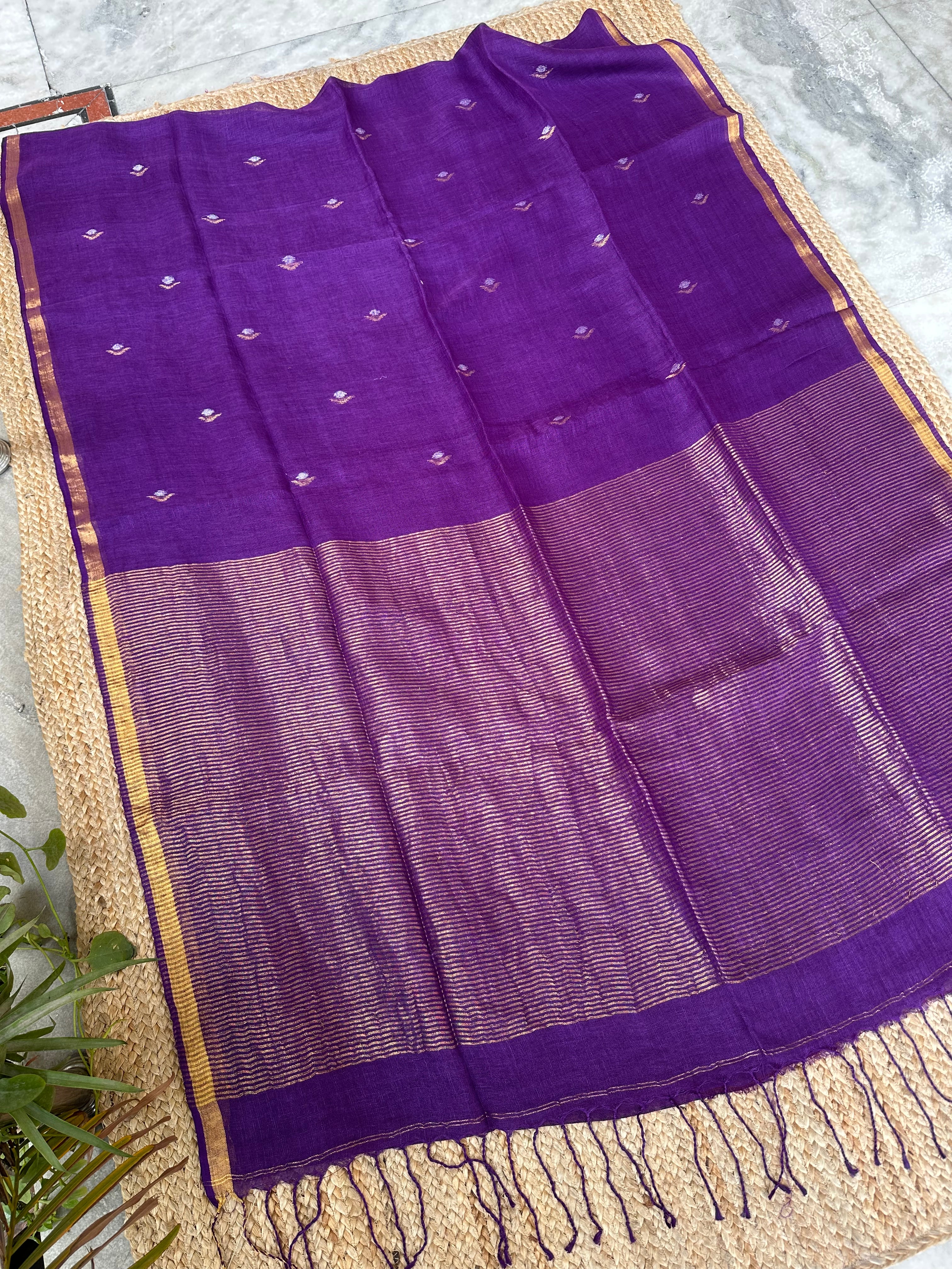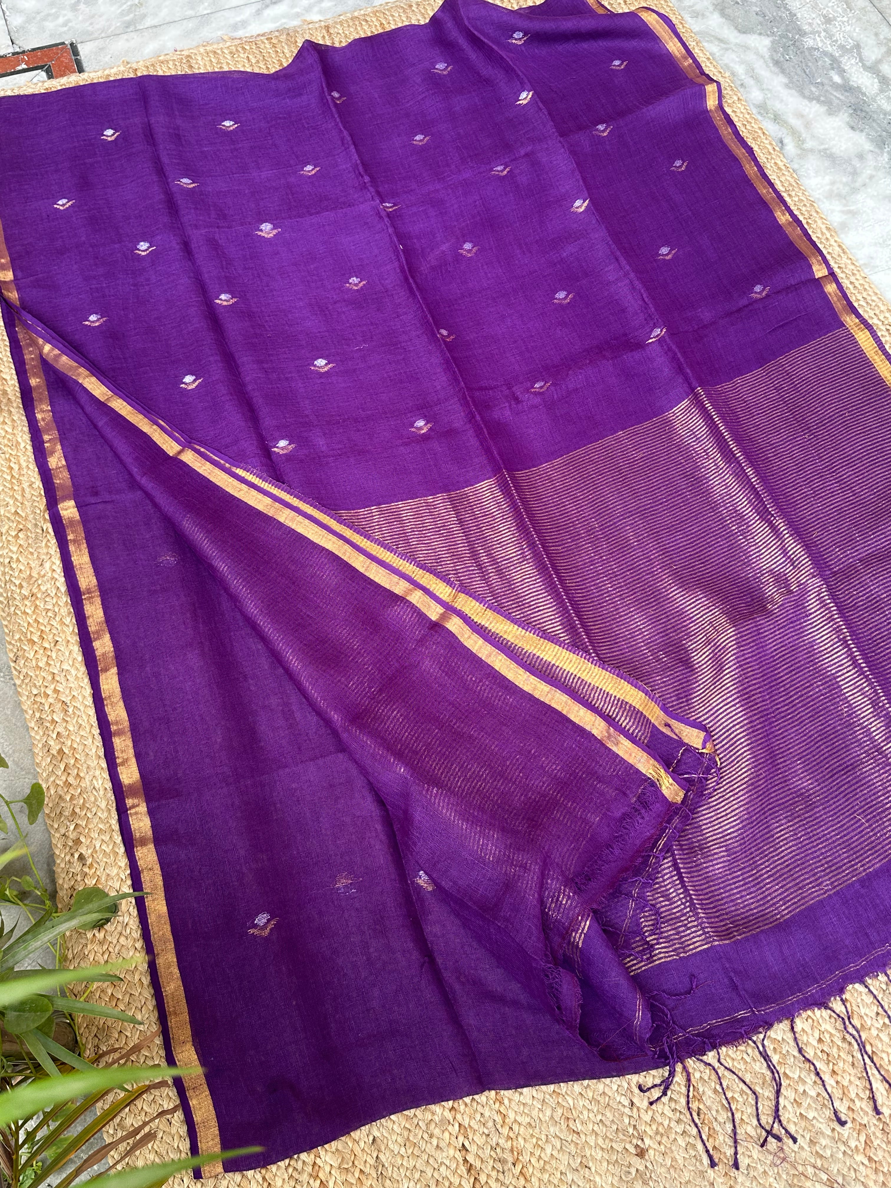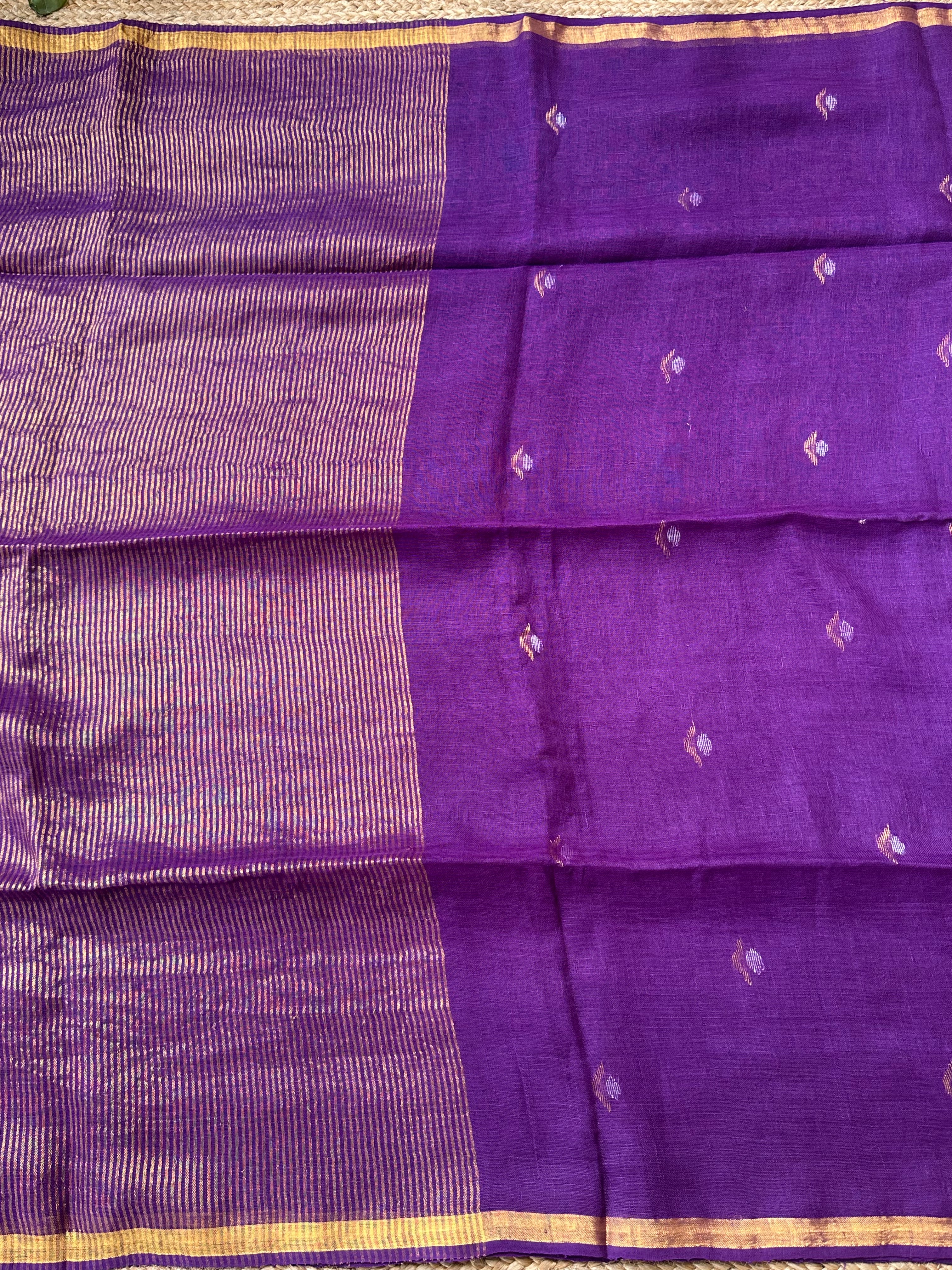 Pure Handloom Saree with Golden Zari bootas- Purple