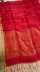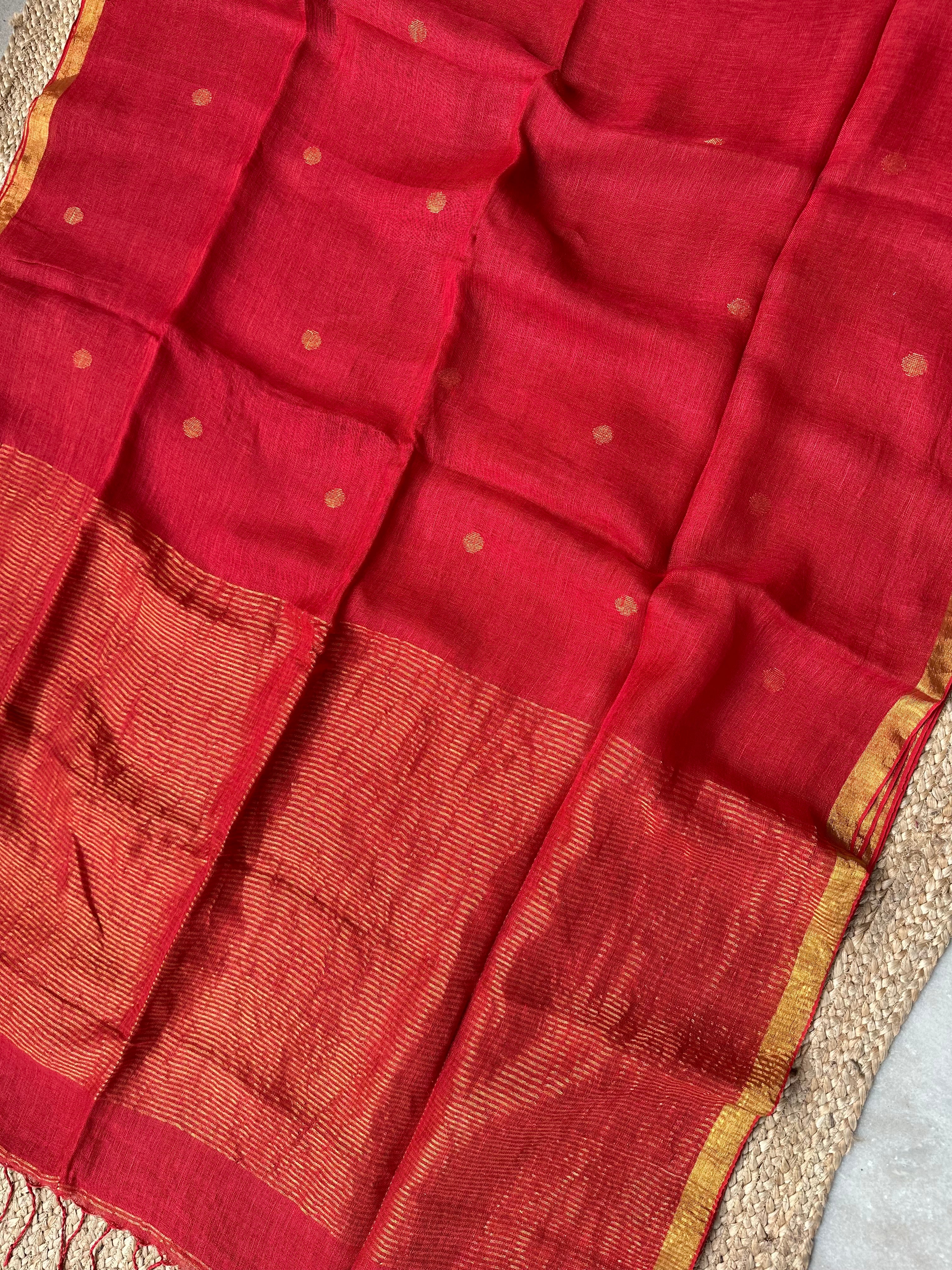 Pure Handloom Saree with Golden Zari circle bootas- Red