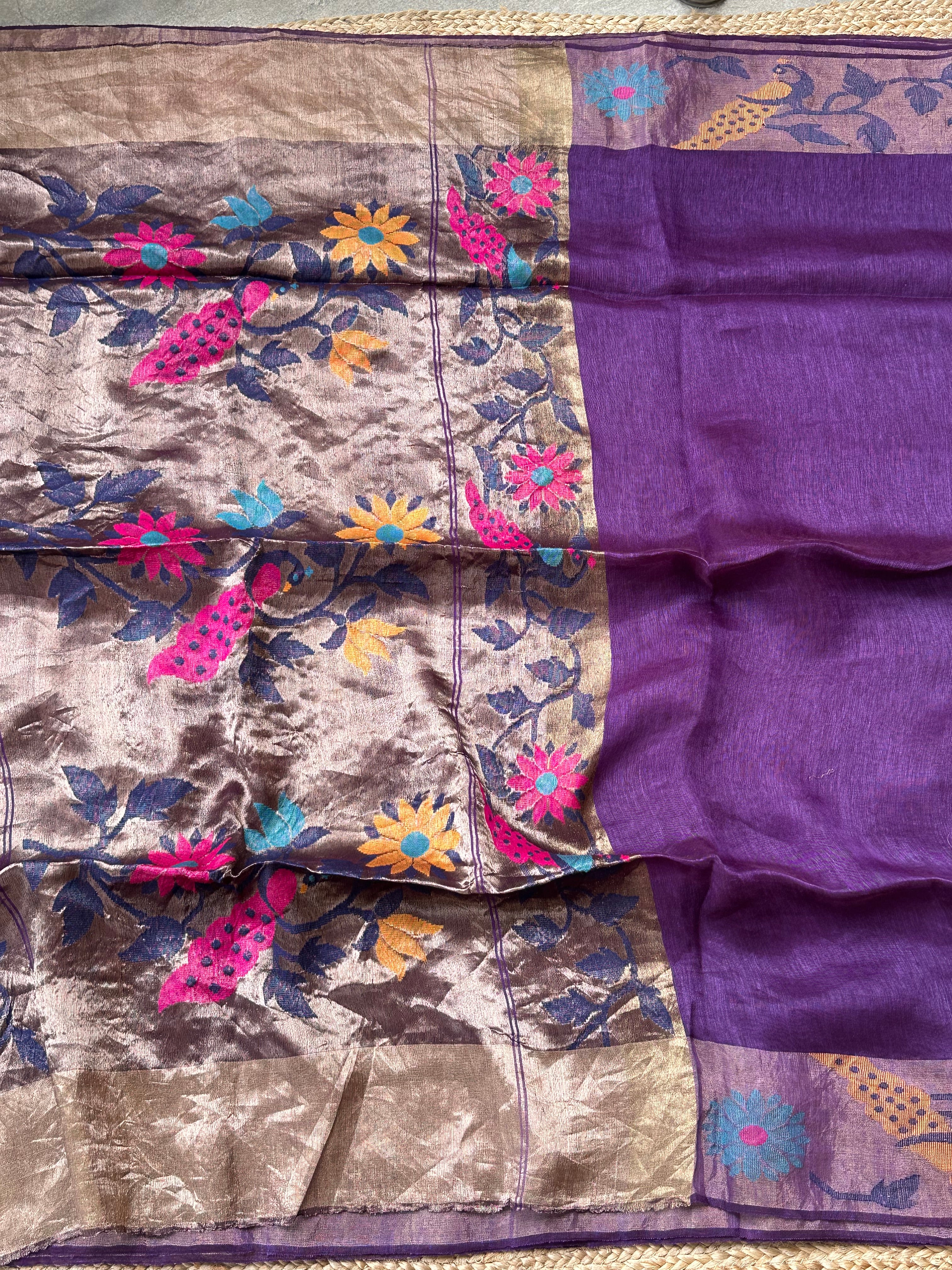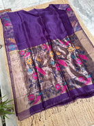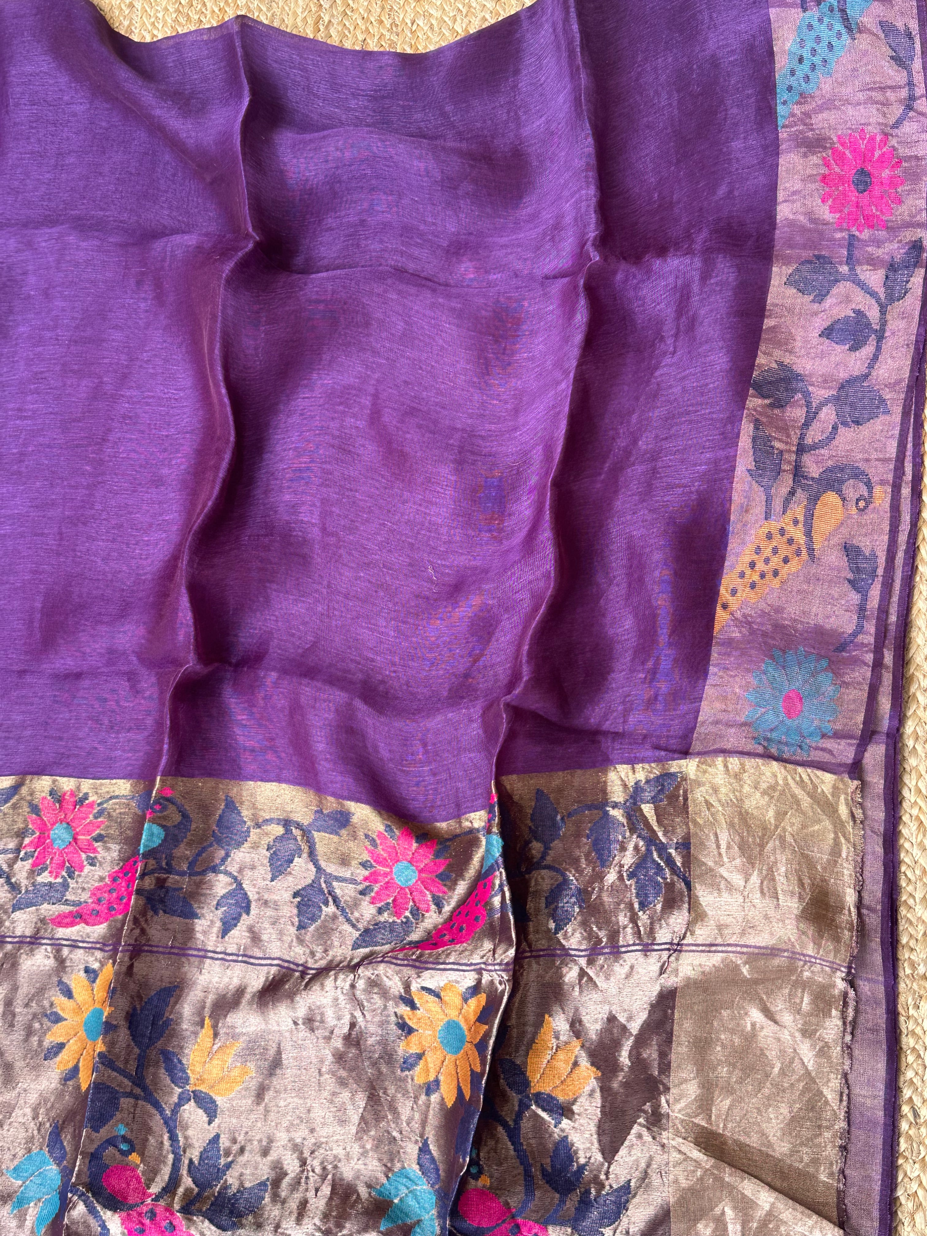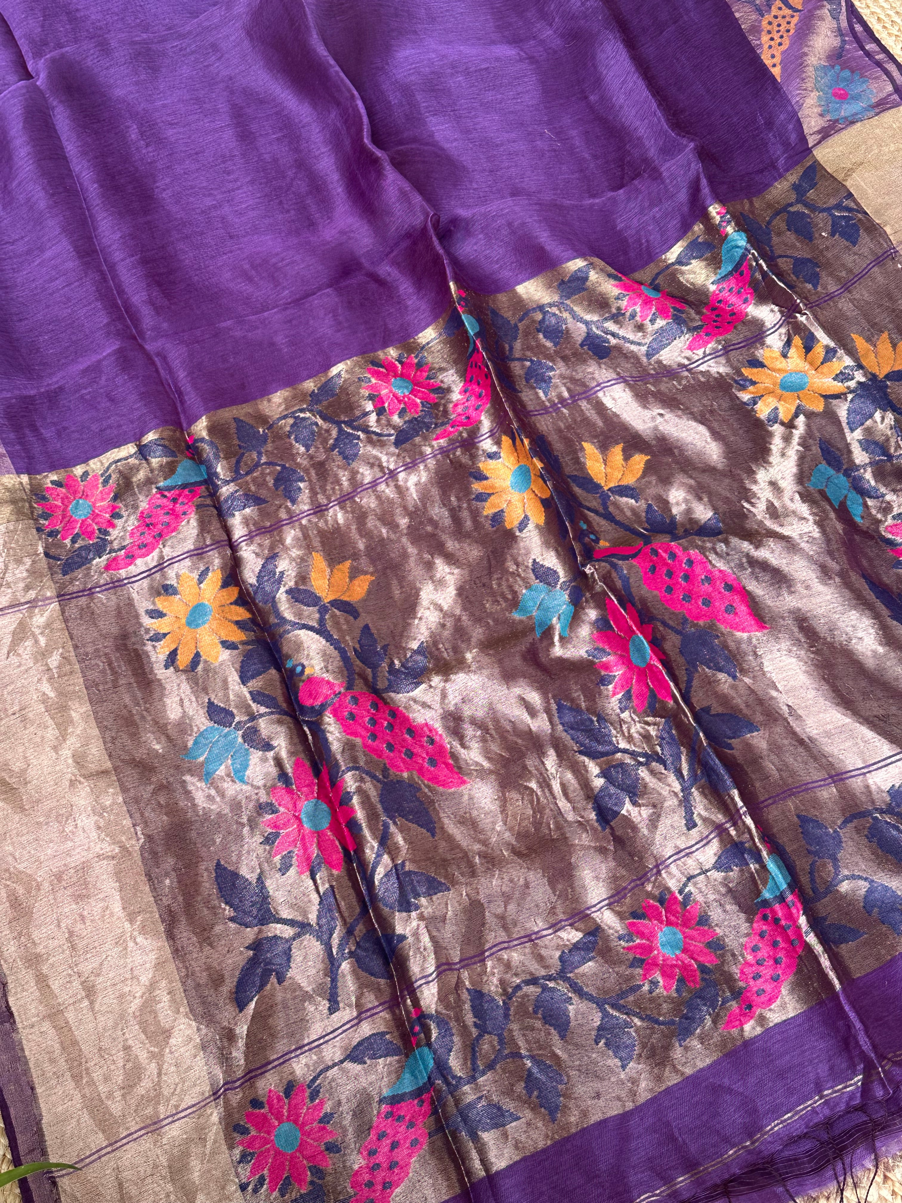 Purple Linen Silk Handloom Silver Pallu Paithani Saree